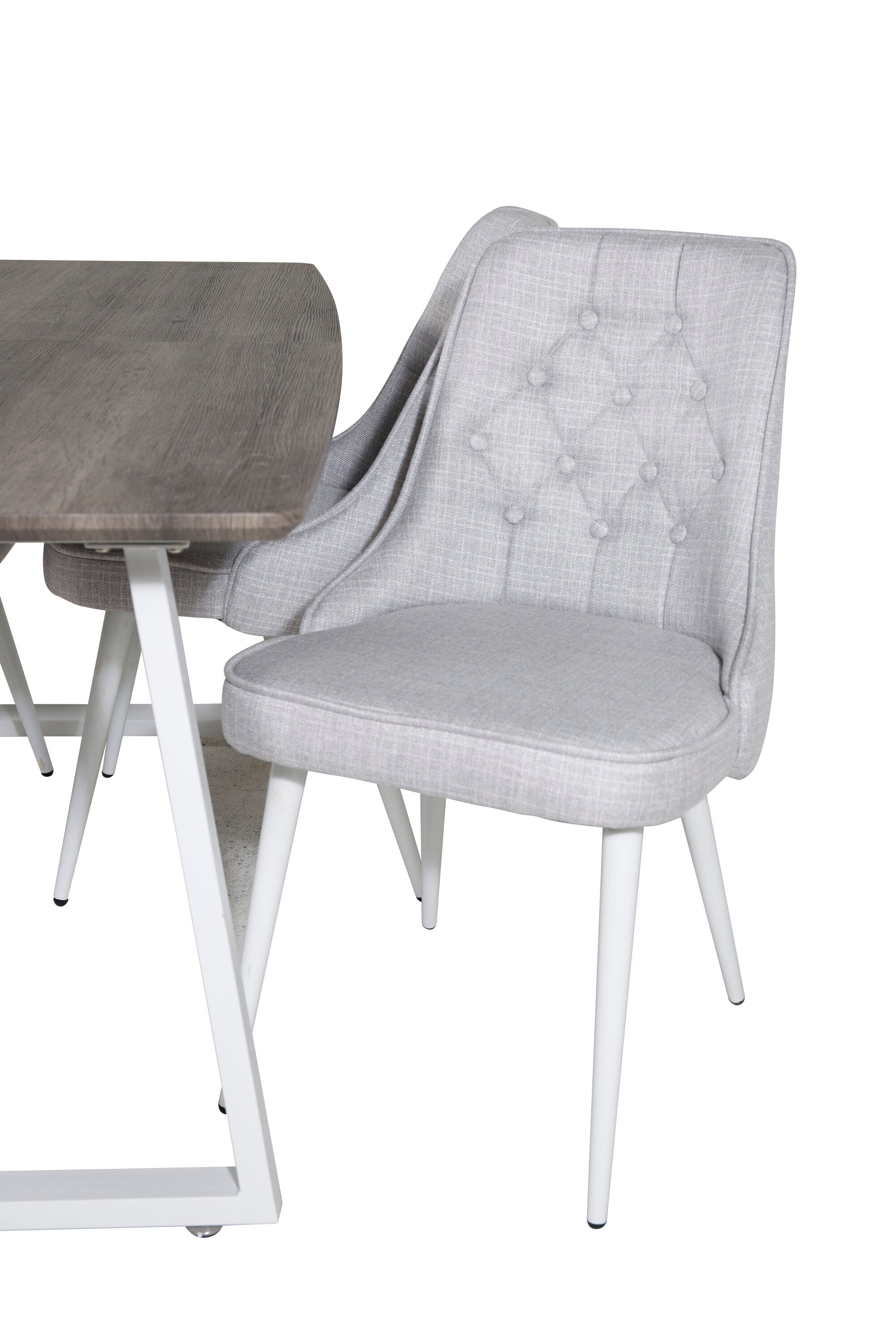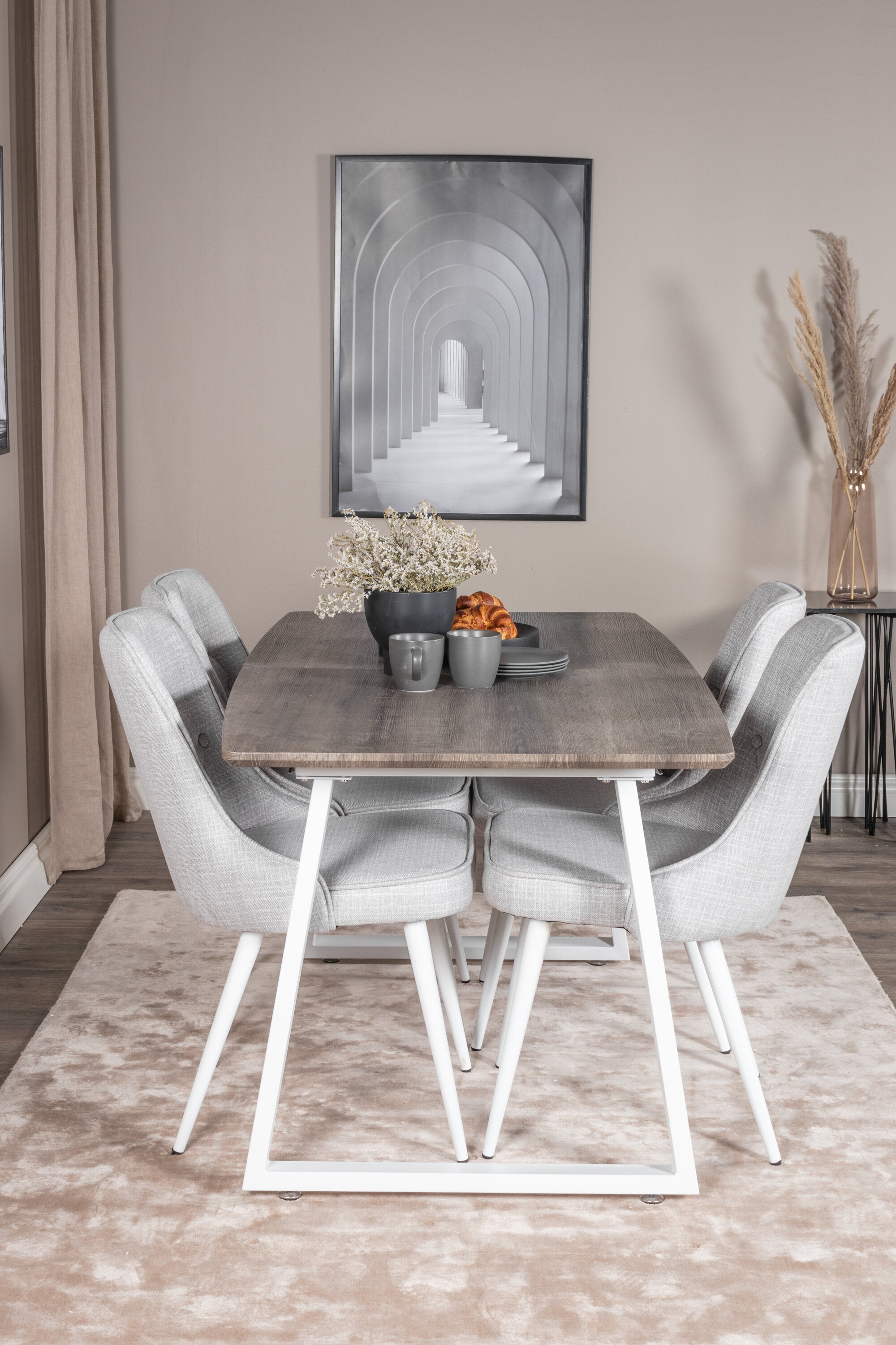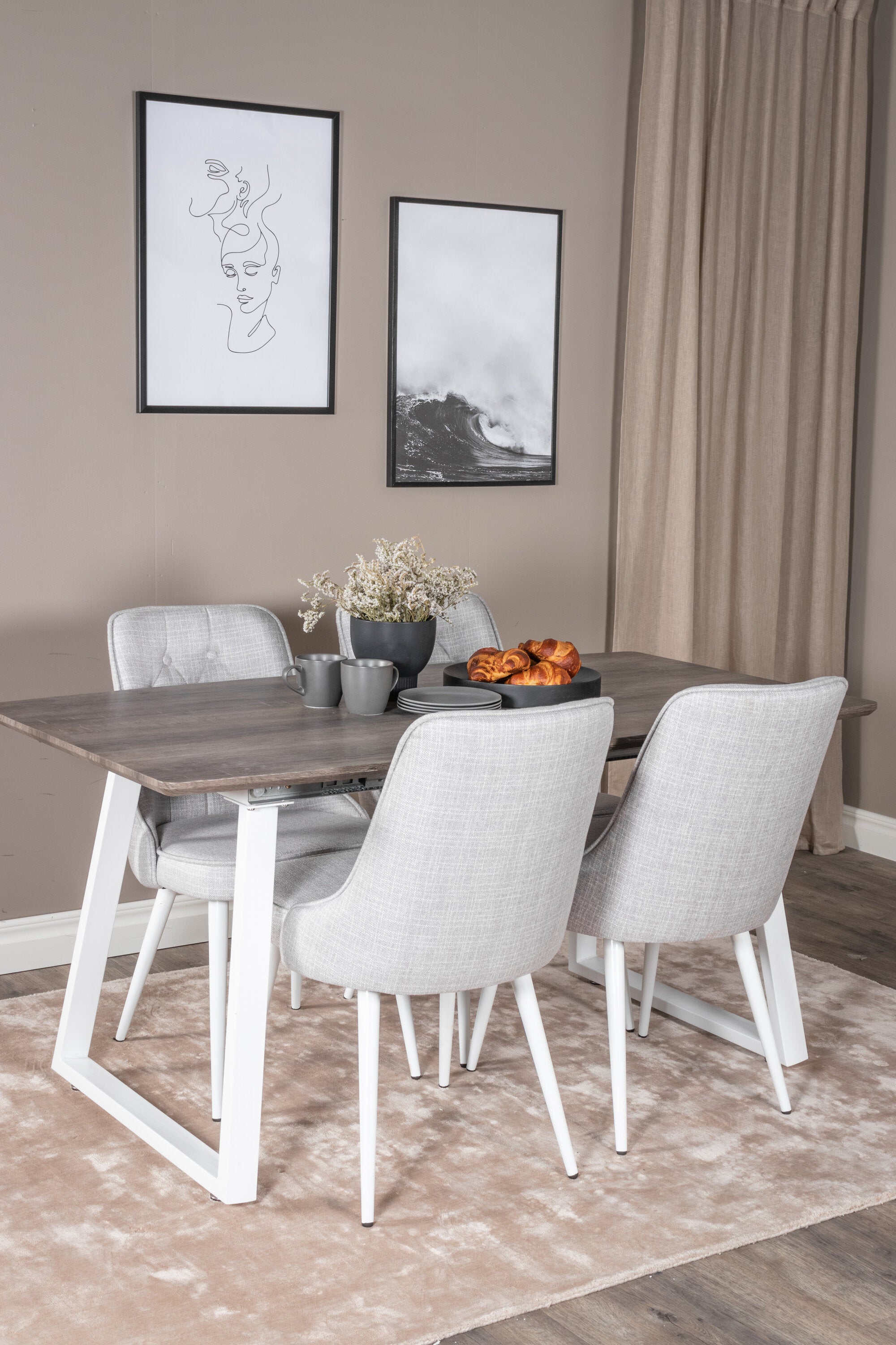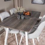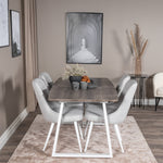 Inca Extentiontable - šedý "dub" / bílá Nohy+Velvet Deluxe Jídelní židle - Bílé nohy - Světle šedá Fabric_4