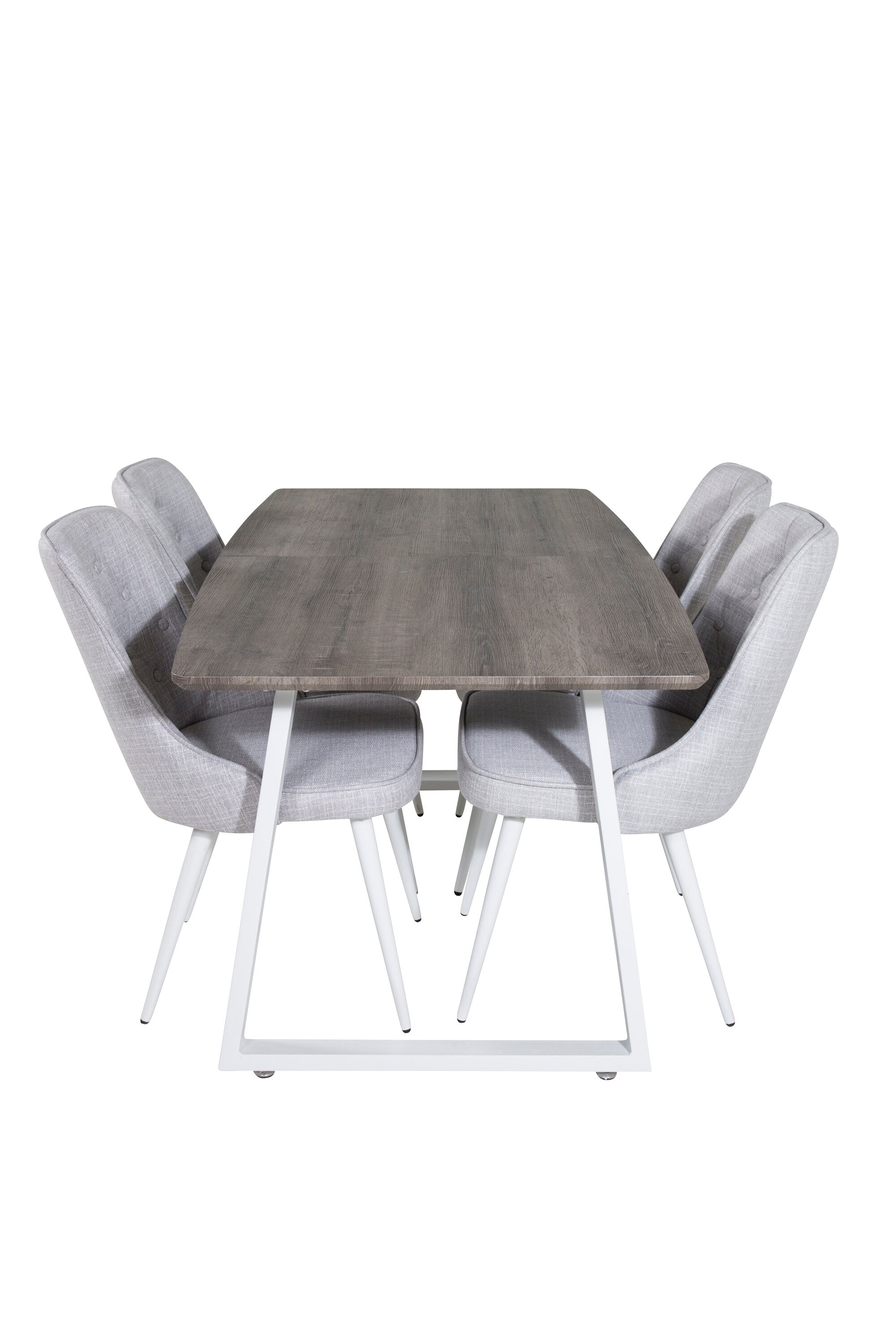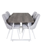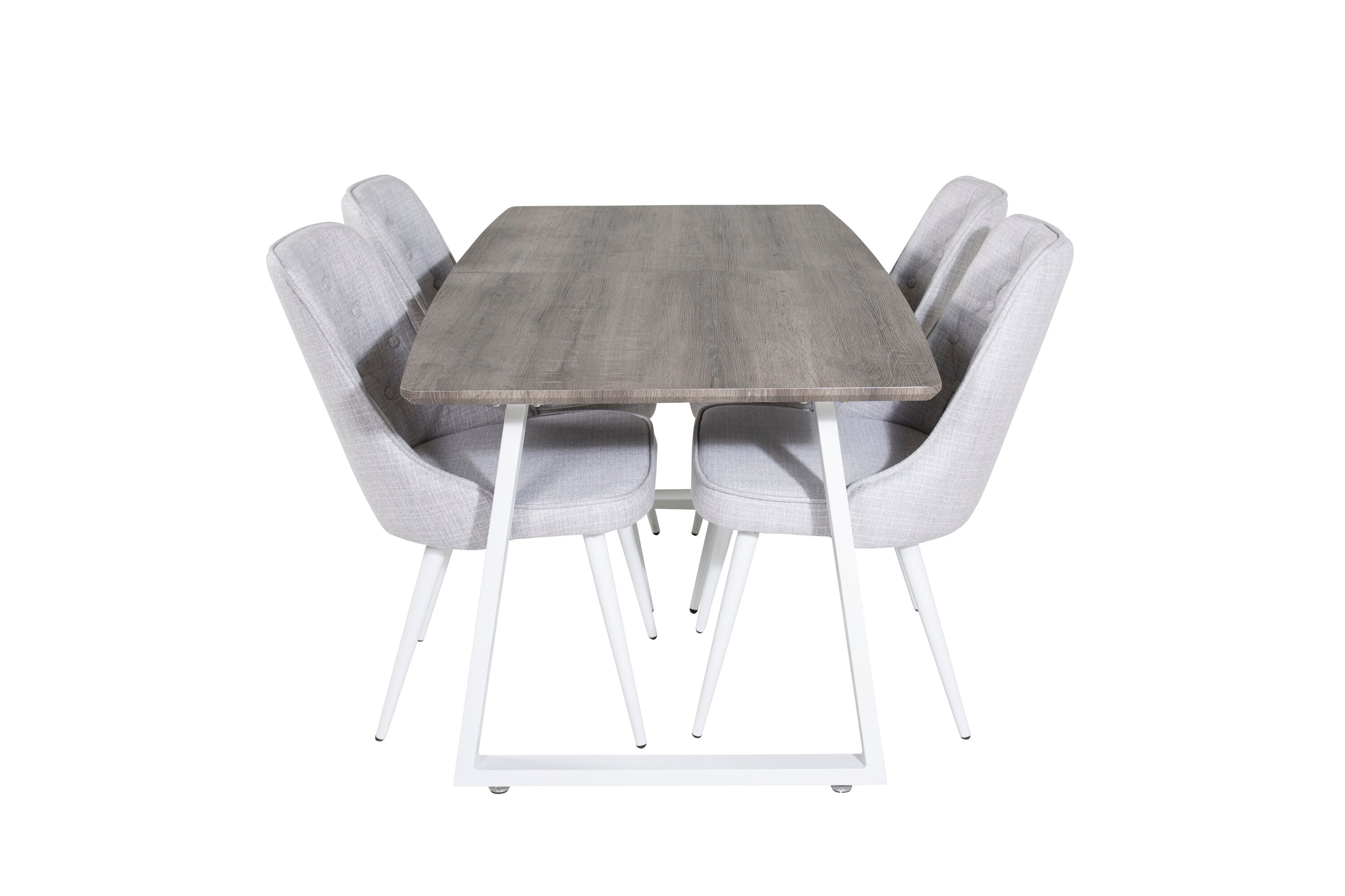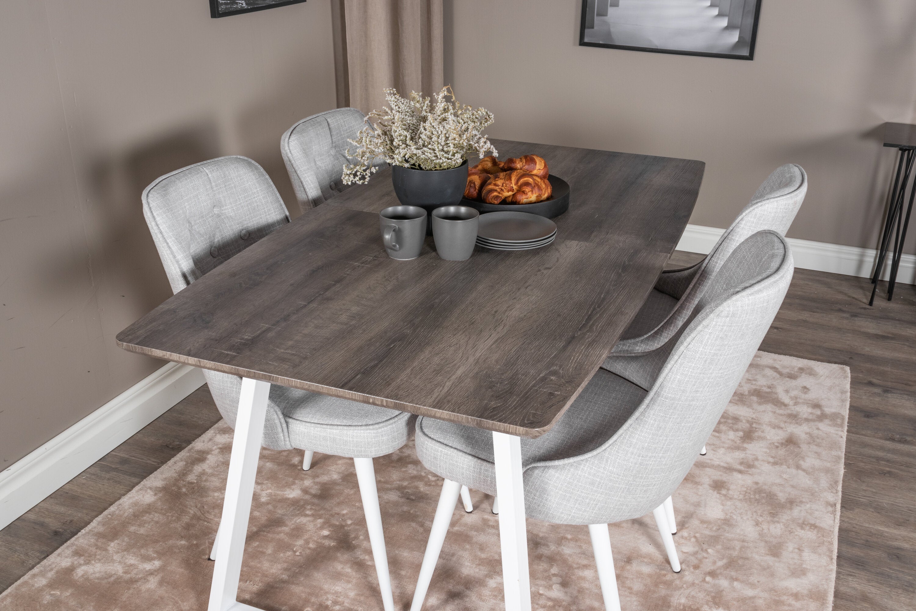 Inca Extentiontable - šedý "dub" / bílá Nohy+Velvet Deluxe Jídelní židle - Bílé nohy - Světle šedá Fabric_4