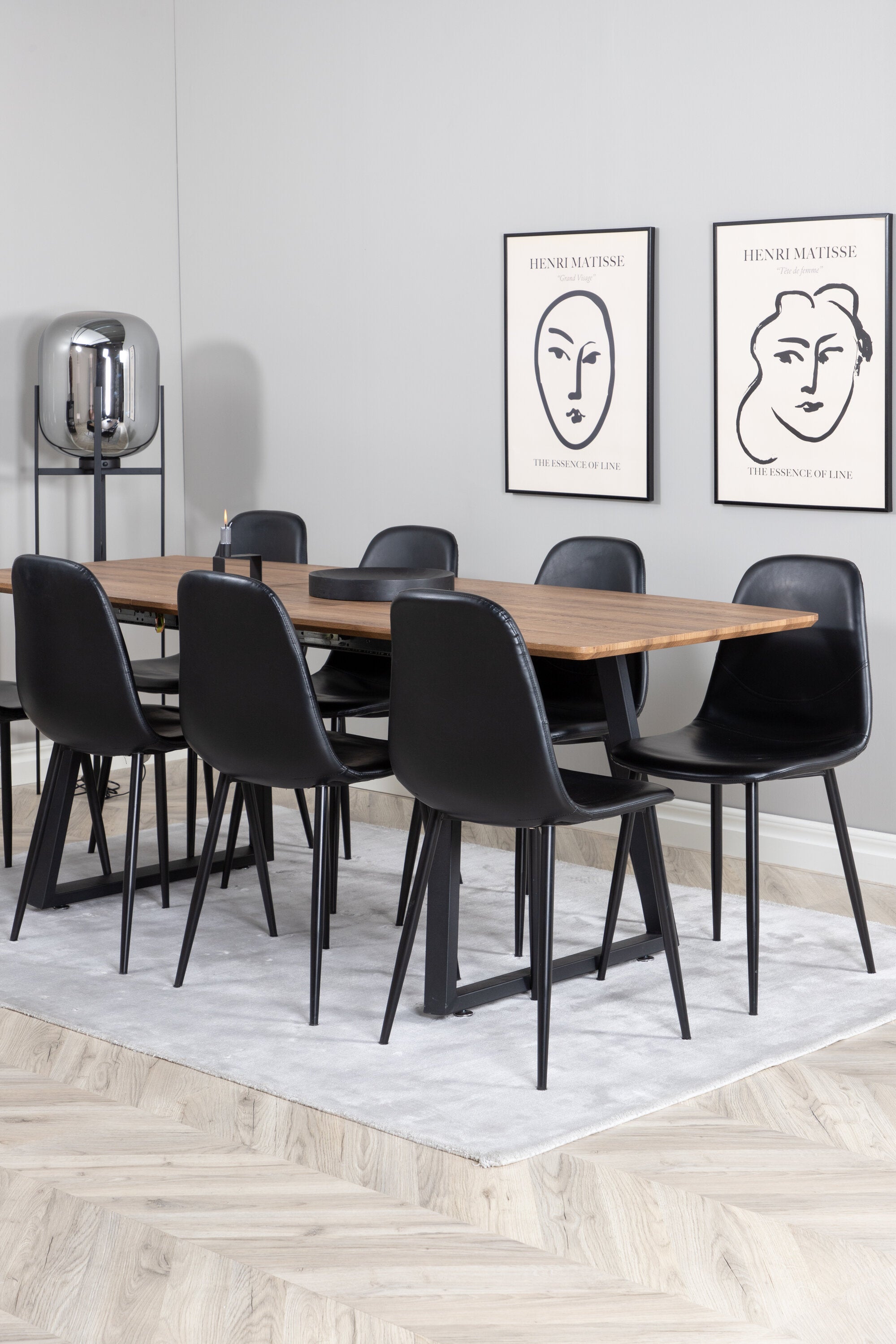 Inca Matbord - Svart / Oljad Ek - 160/200*85*H75+Polar Matstol - Svart / Svart P