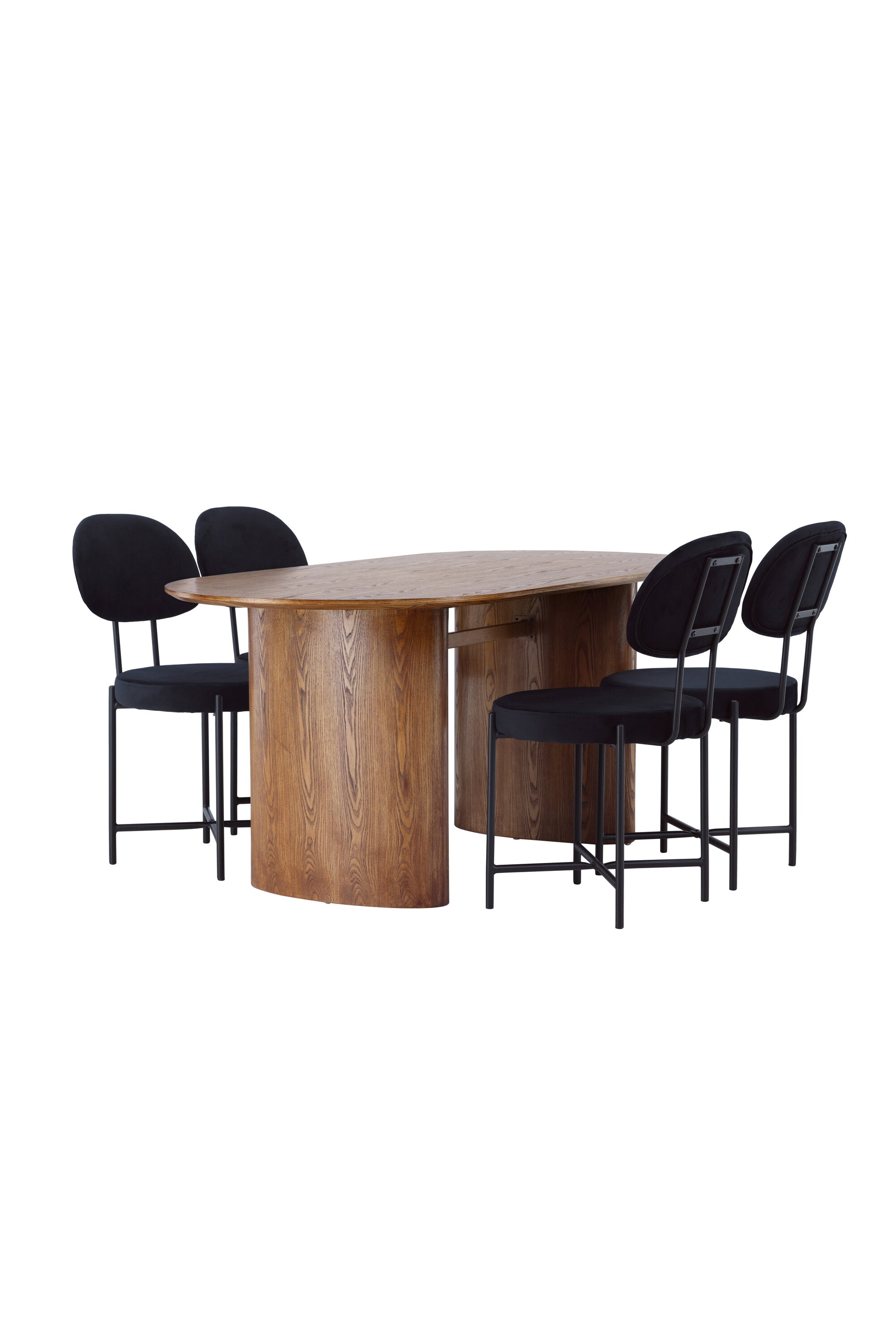 Isolde Jídelní stůl 140*75 - Nature / Nature MDF + Jídelní židle Stella - Black / Black Velvet _4