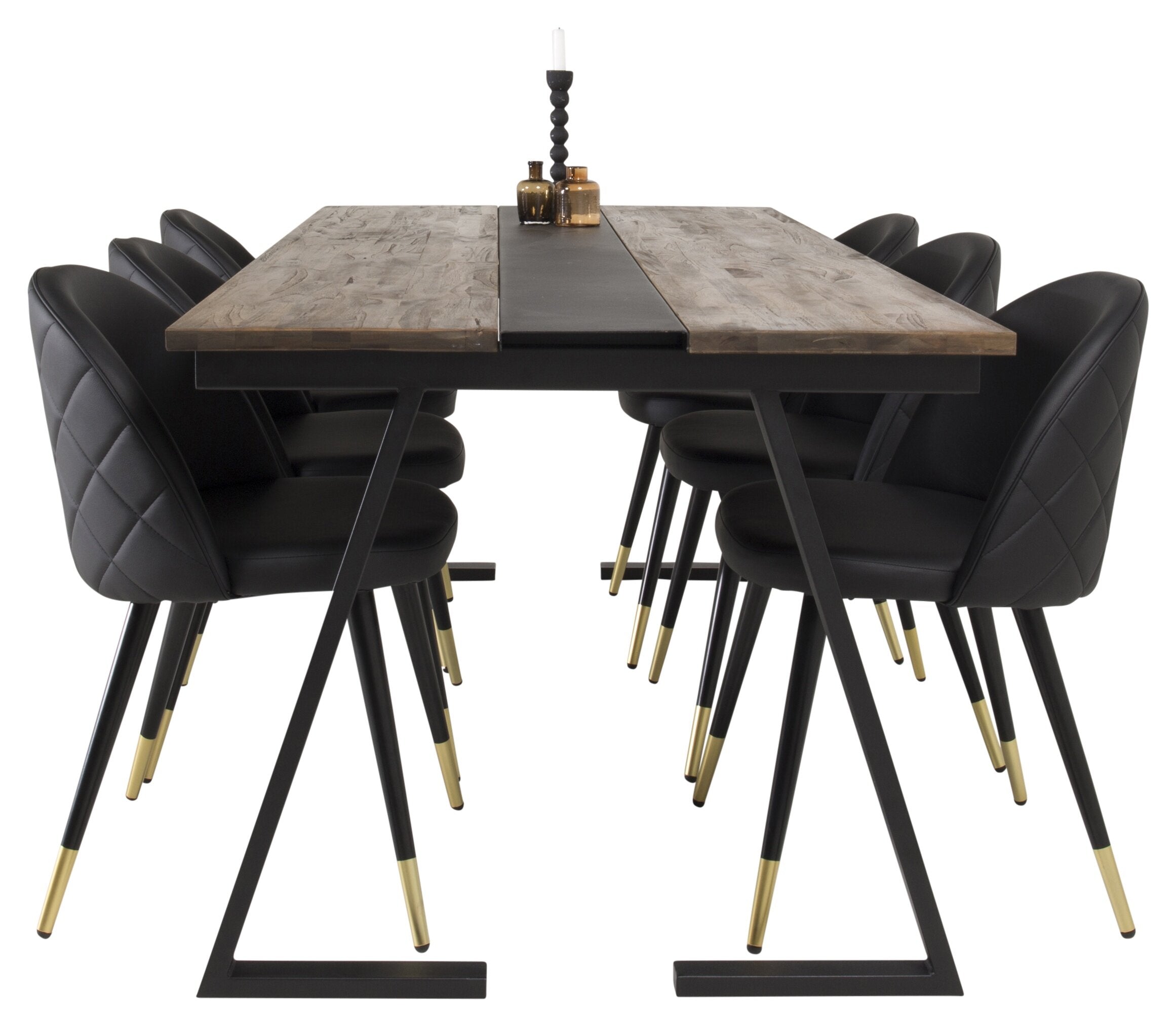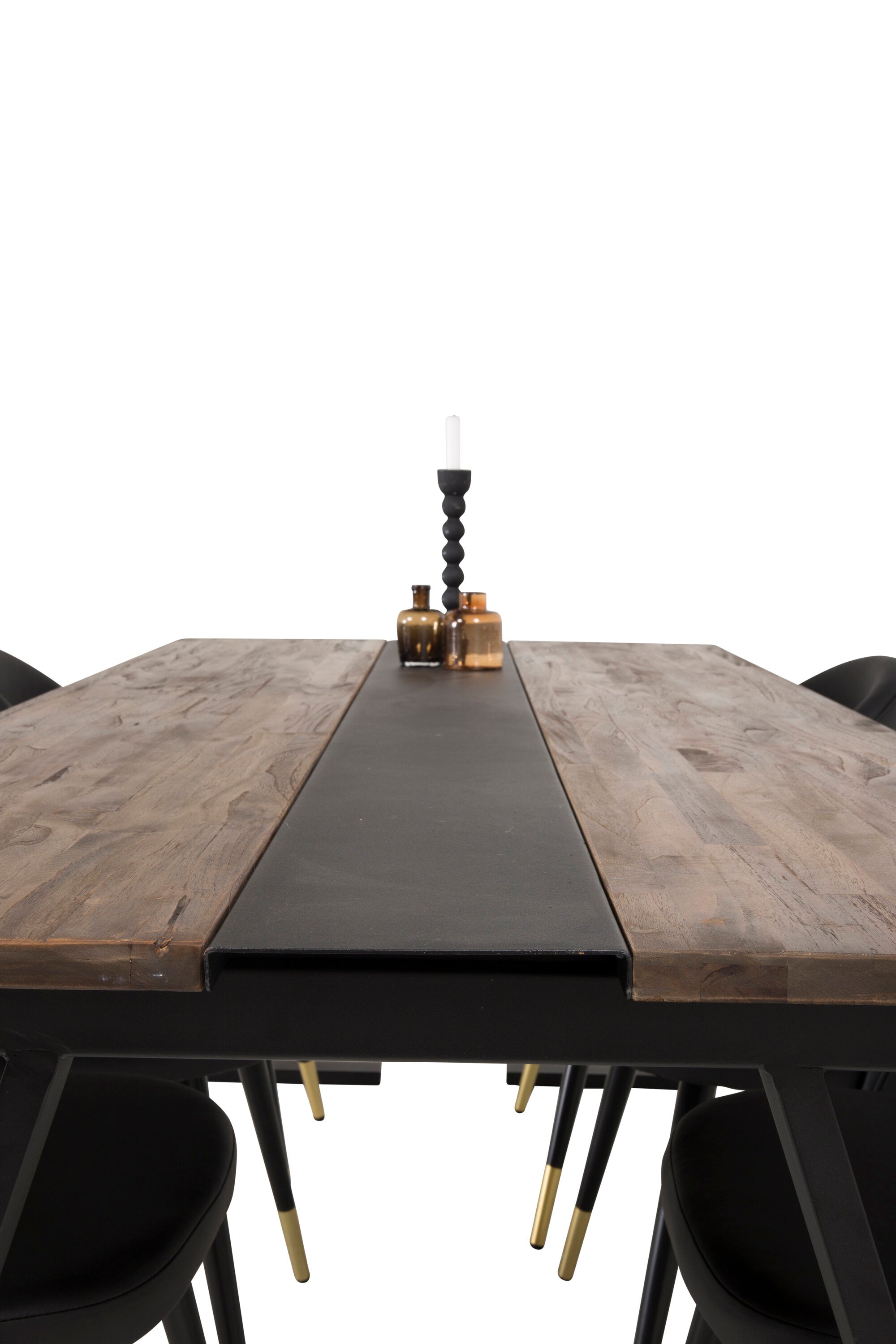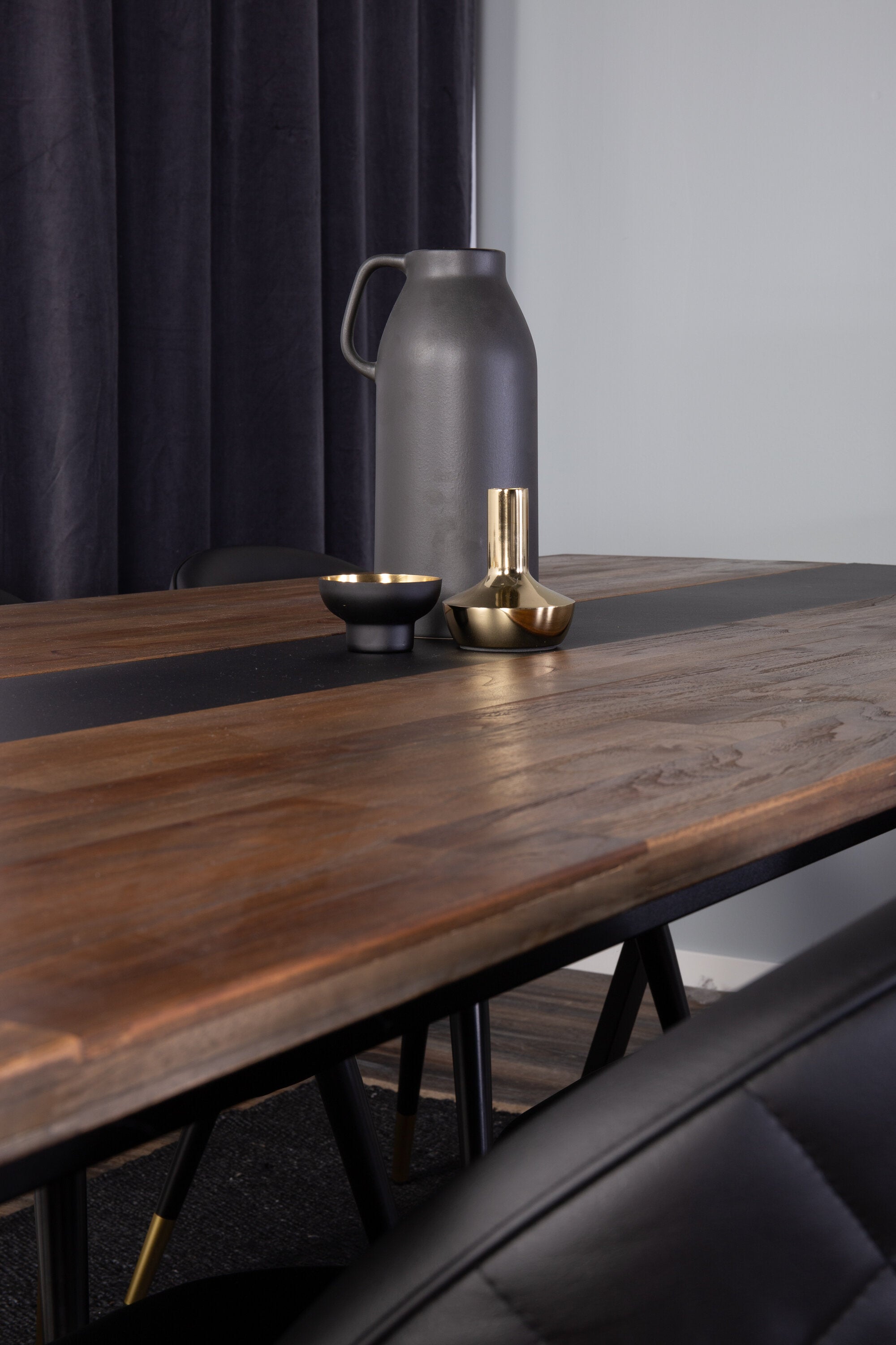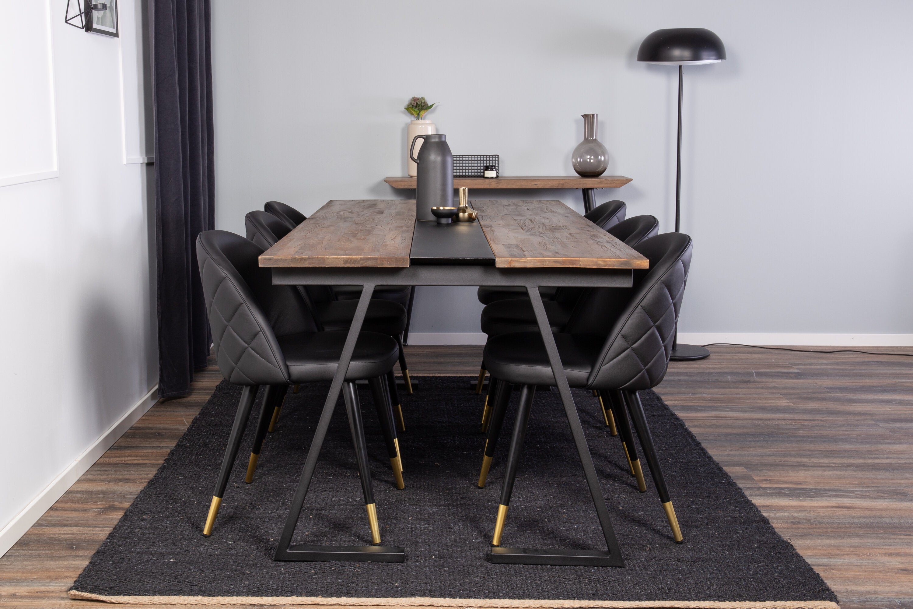 Jakarta Matbord - Svart / mörk Teak - 200*90*H75+Jídelní židle Velvet mosaz š. ulice