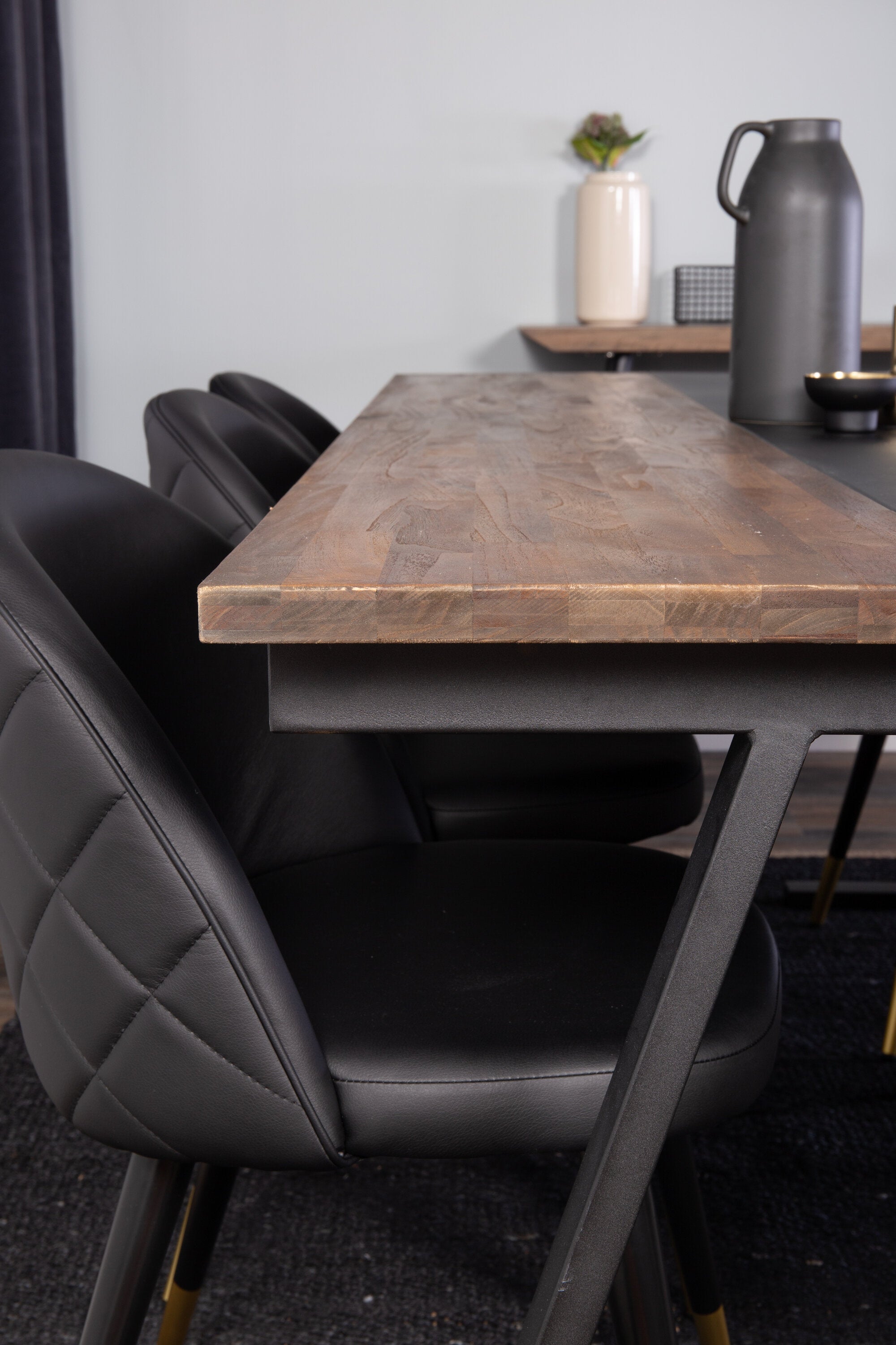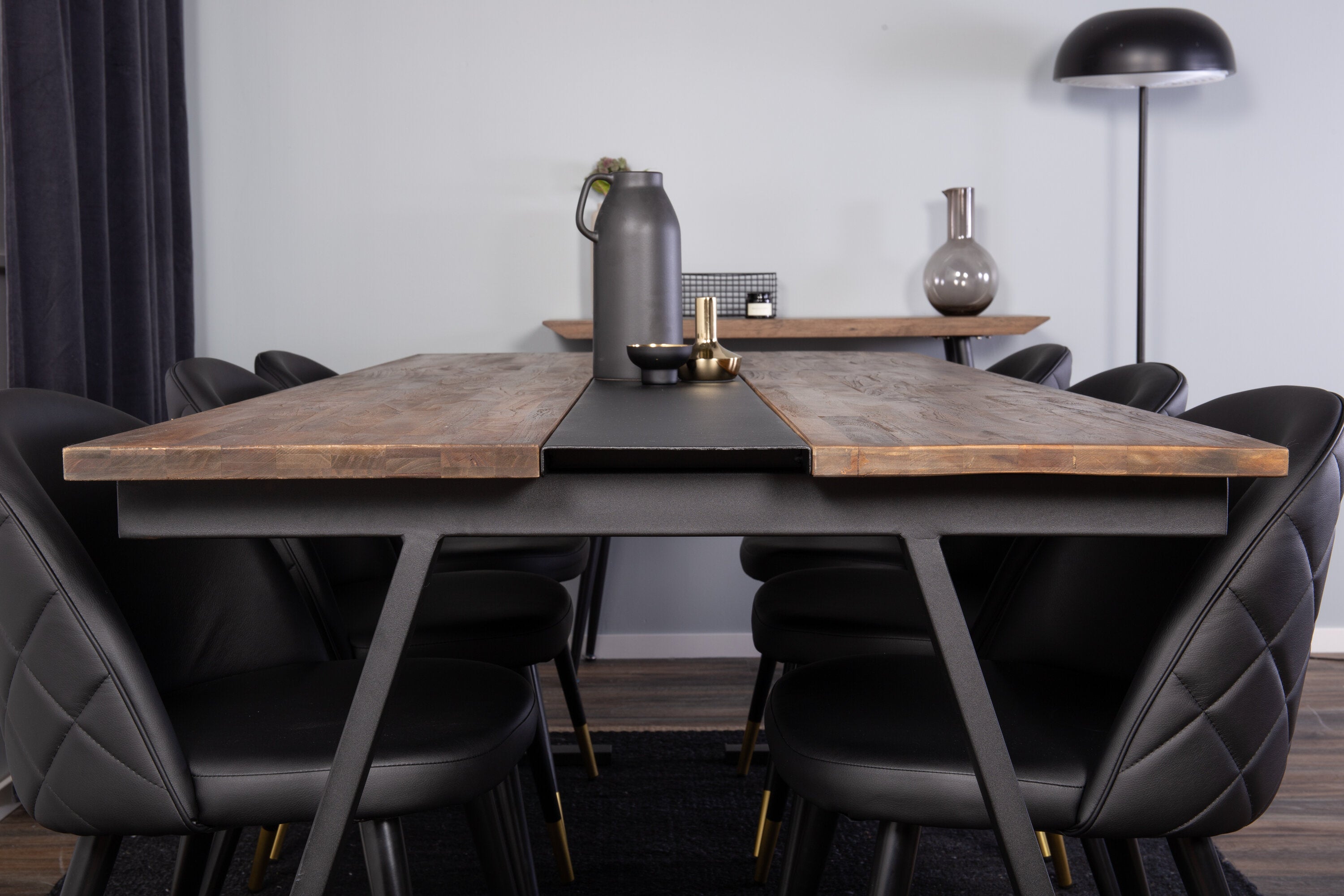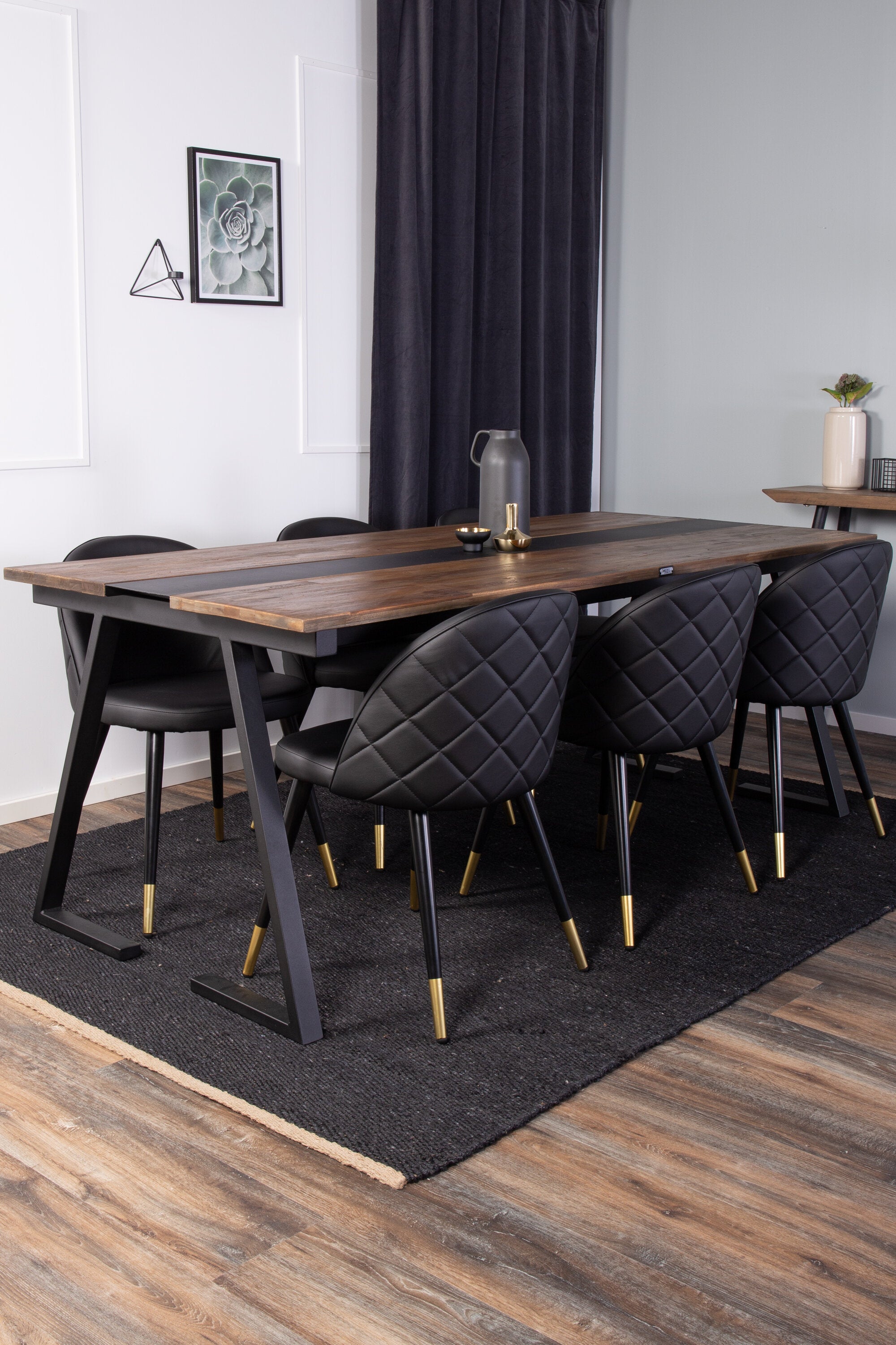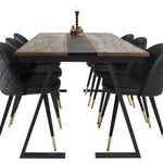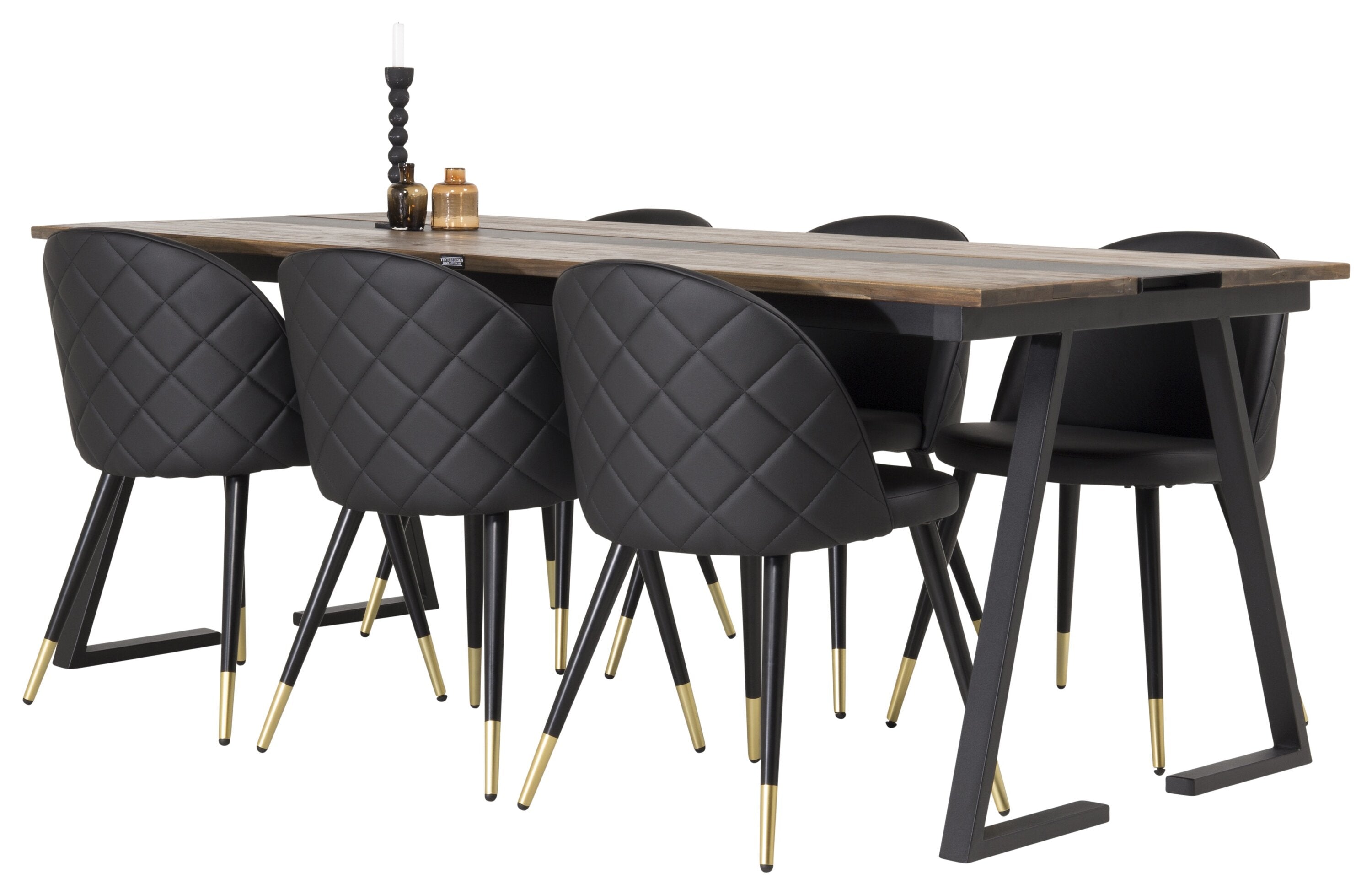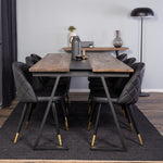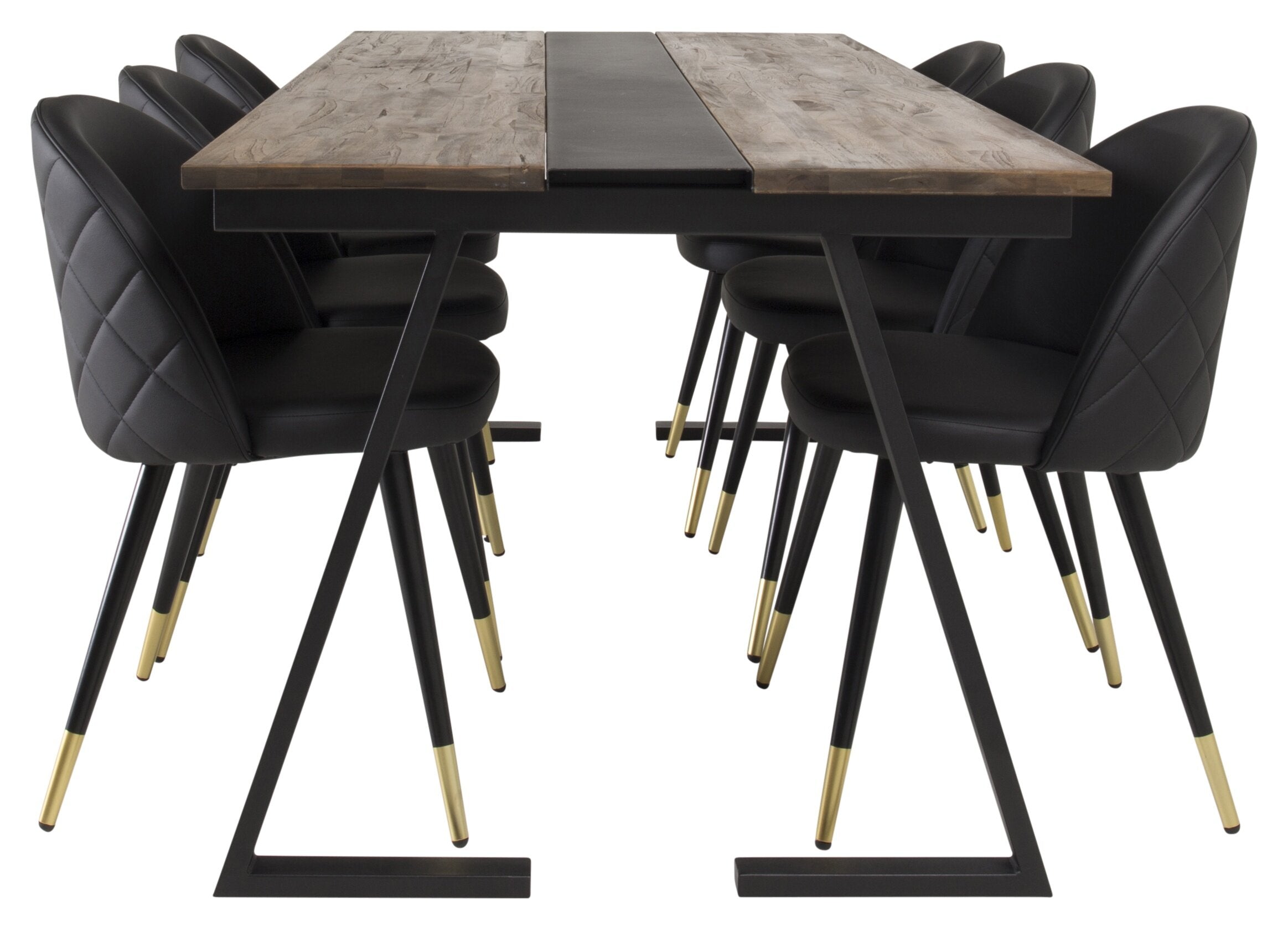 Jakarta Matbord - Svart / mörk Teak - 200*90*H75+Jídelní židle Velvet mosaz š. ulice