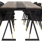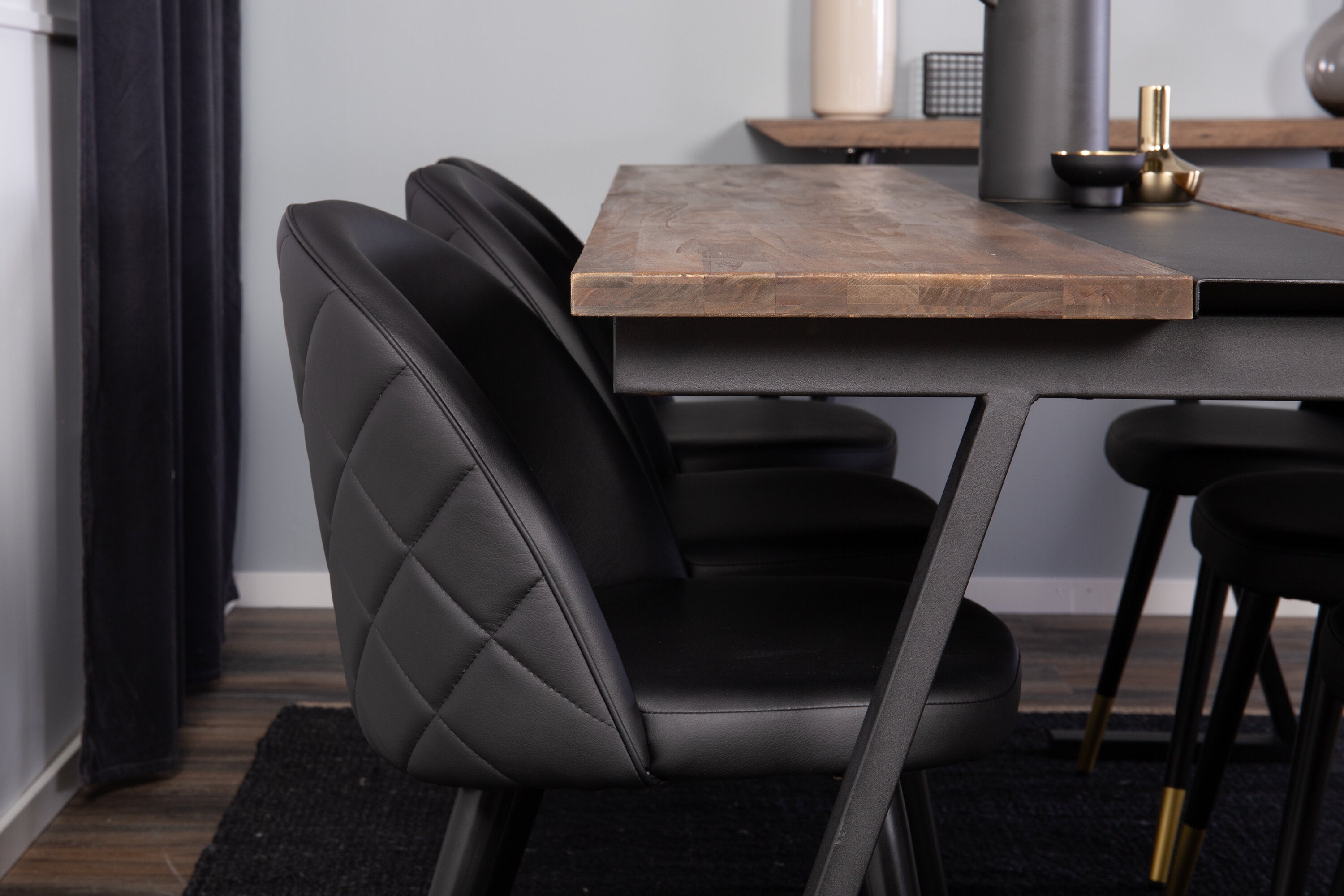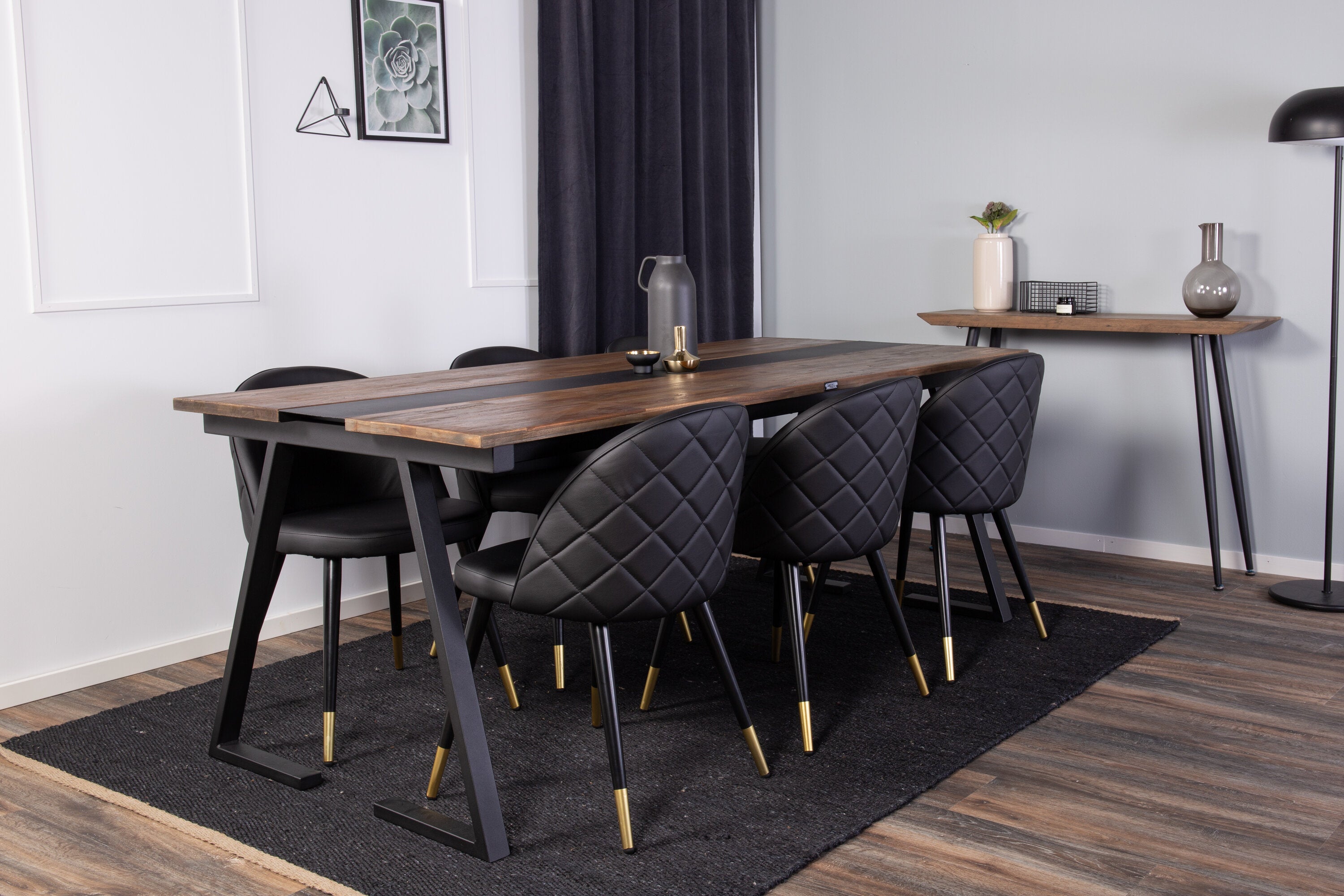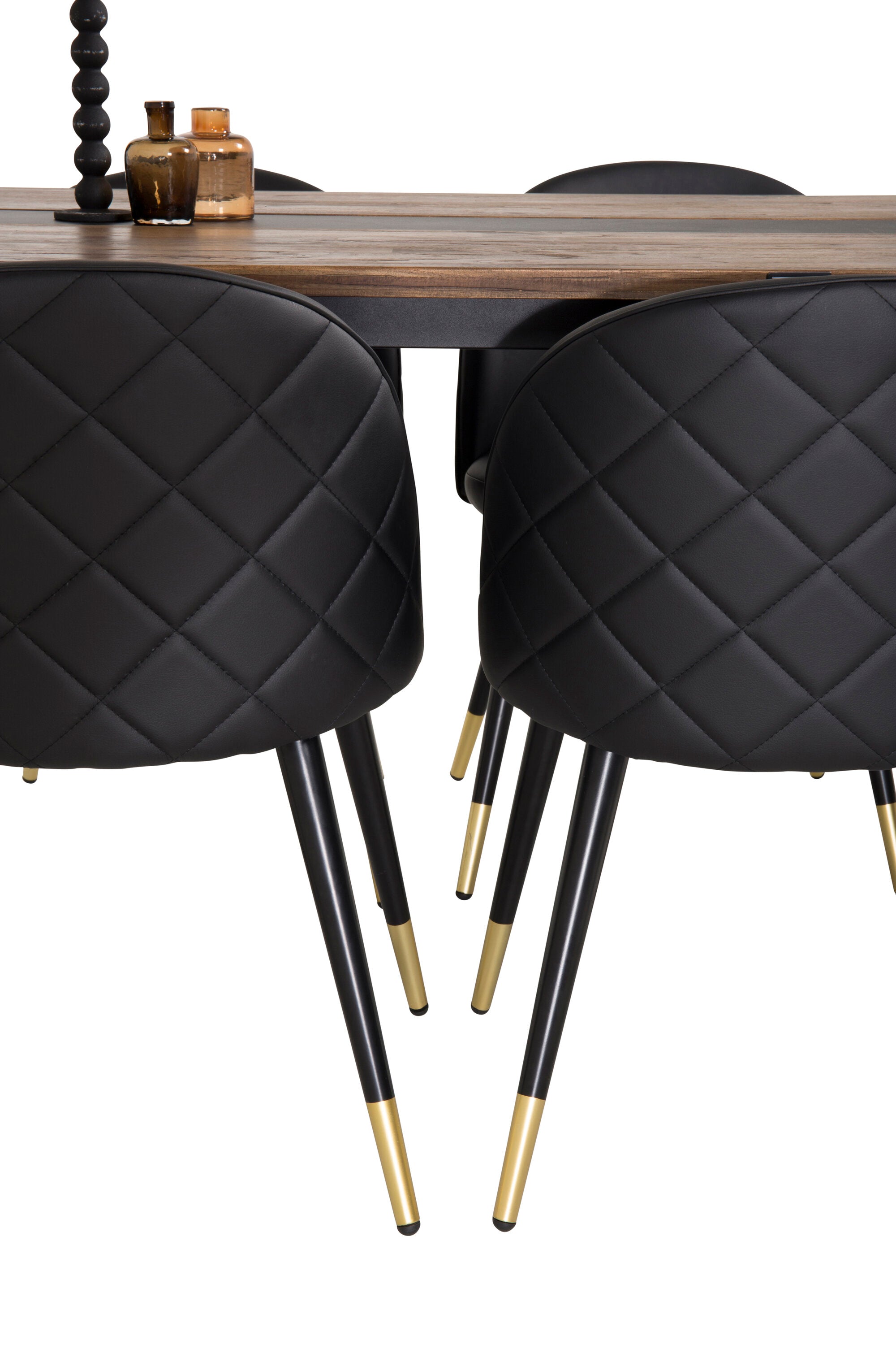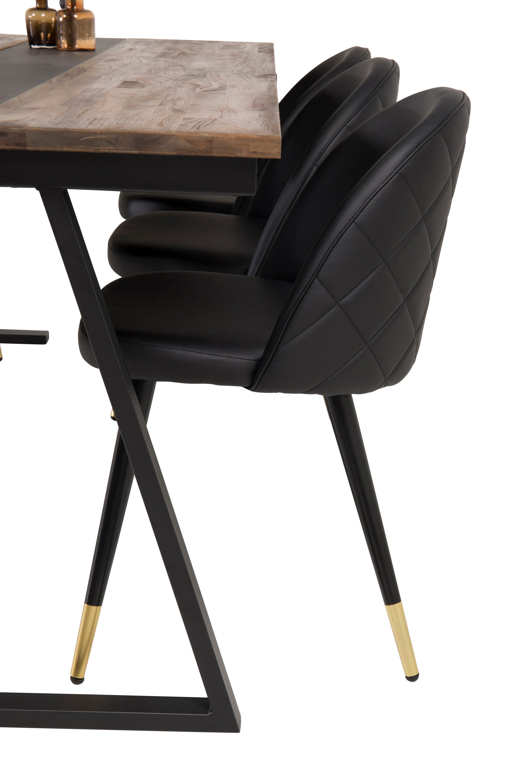 Jakarta Matbord - Svart / mörk Teak - 200*90*H75+Jídelní židle Velvet mosaz š. ulice