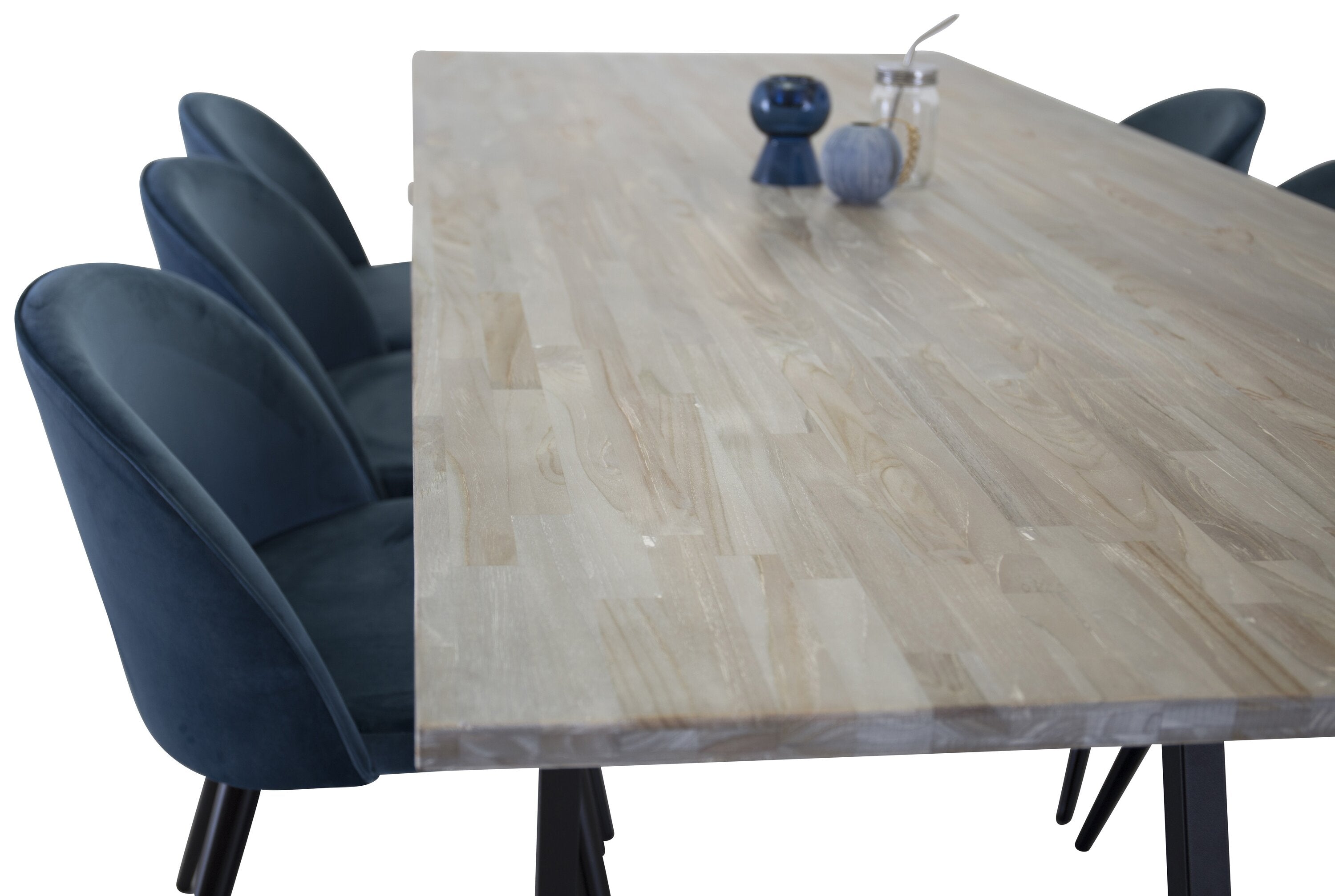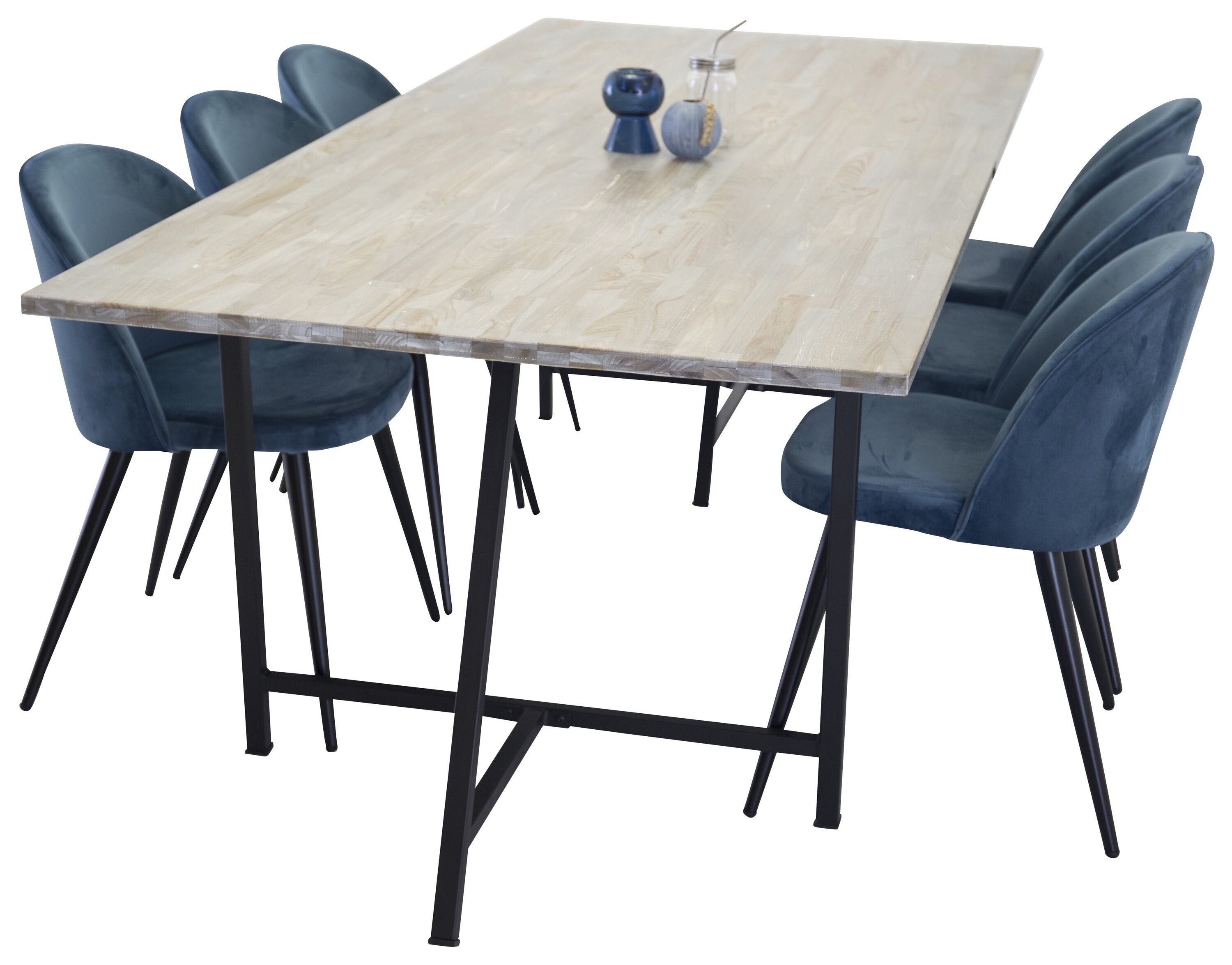 Jepara Matbord - Grå - 250*100*H76+Velvet Matstol - Svart / Blå Sammet_6