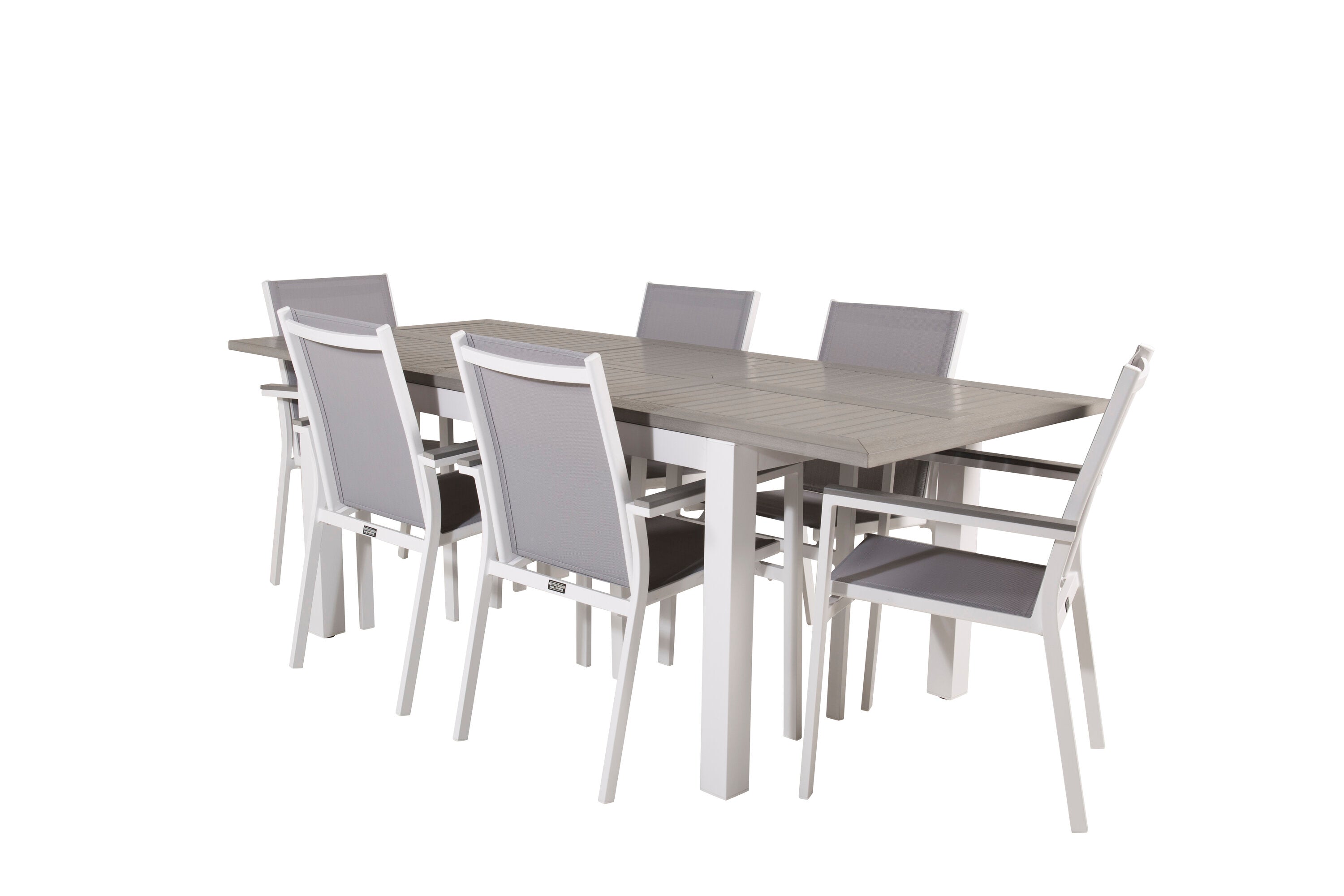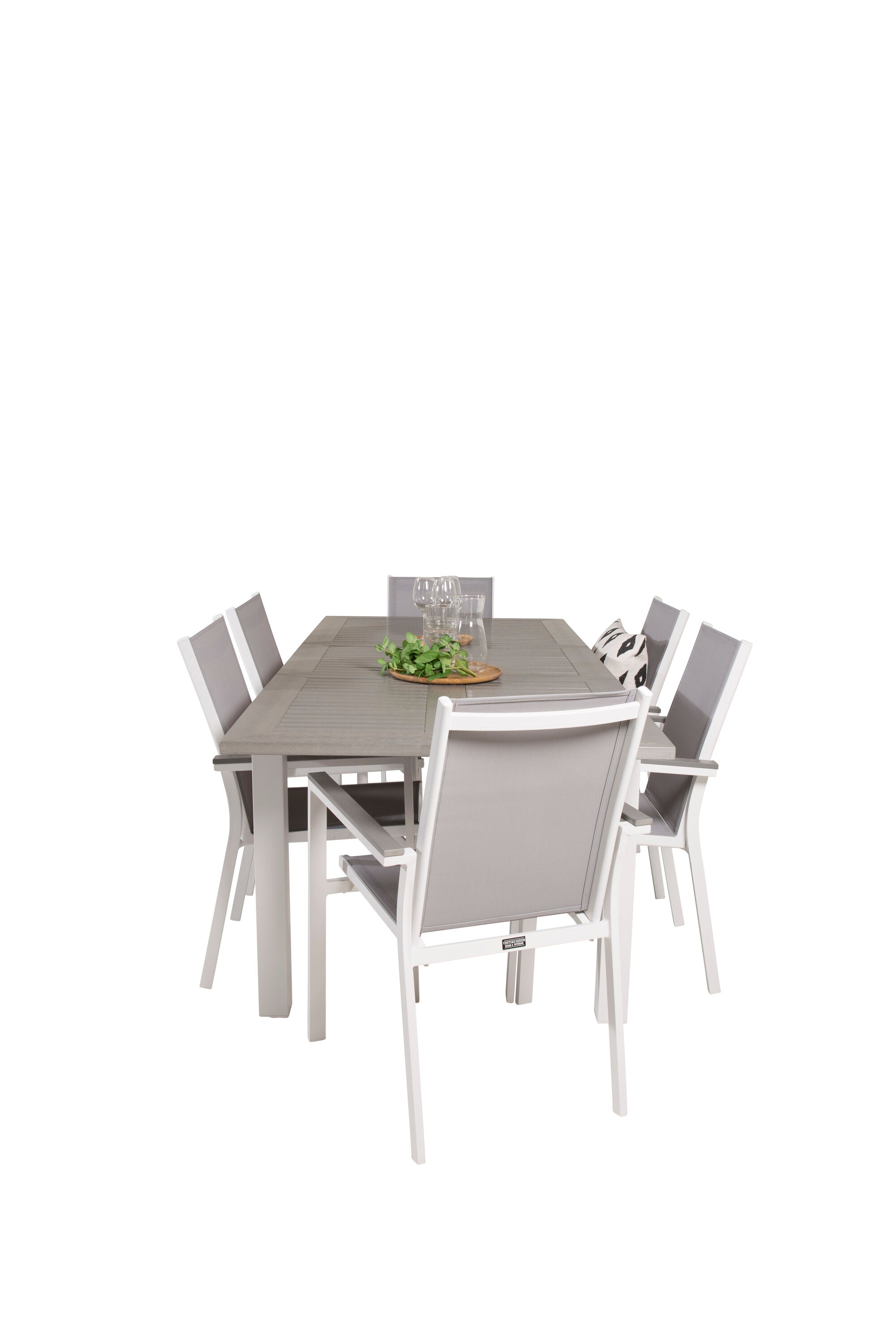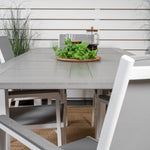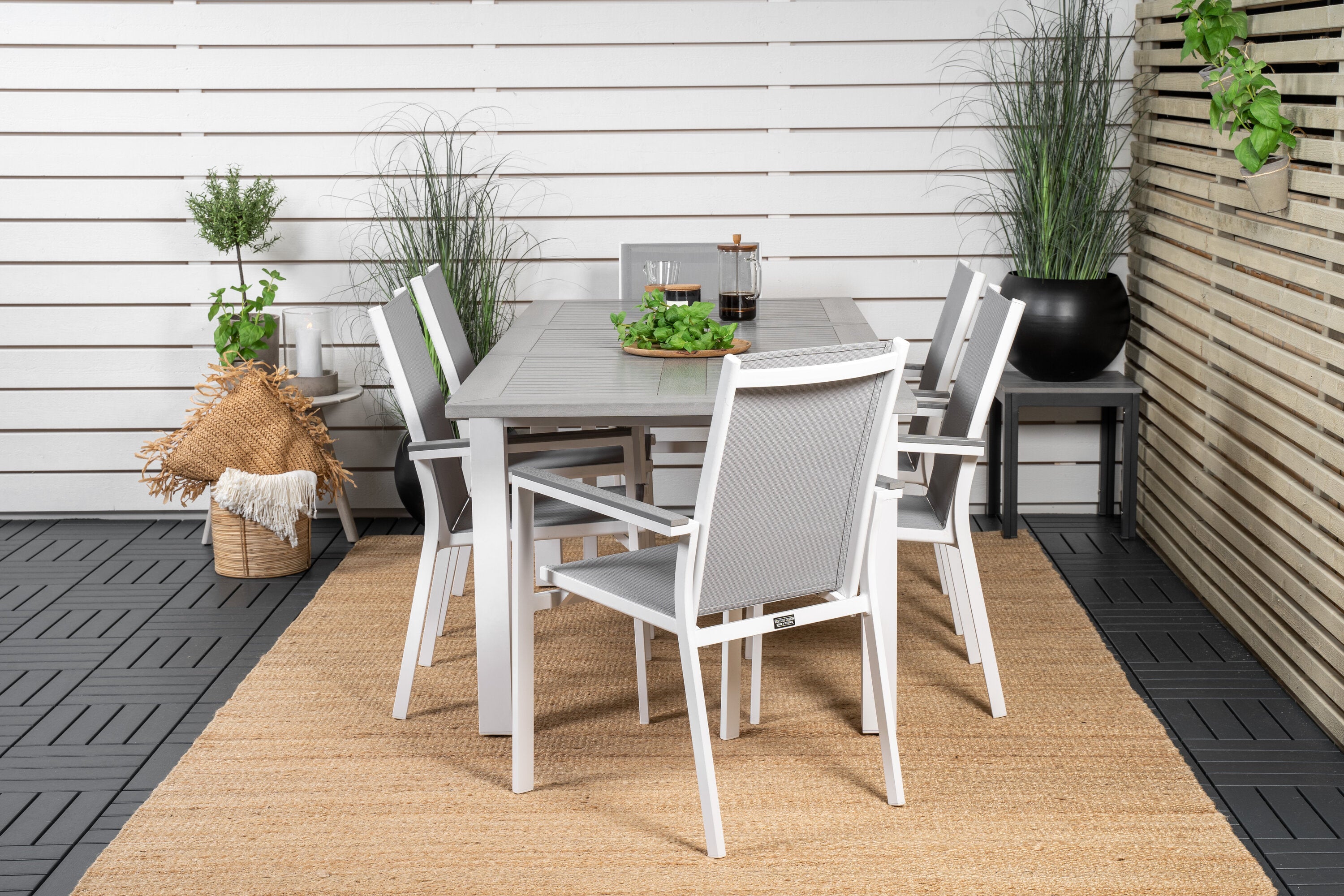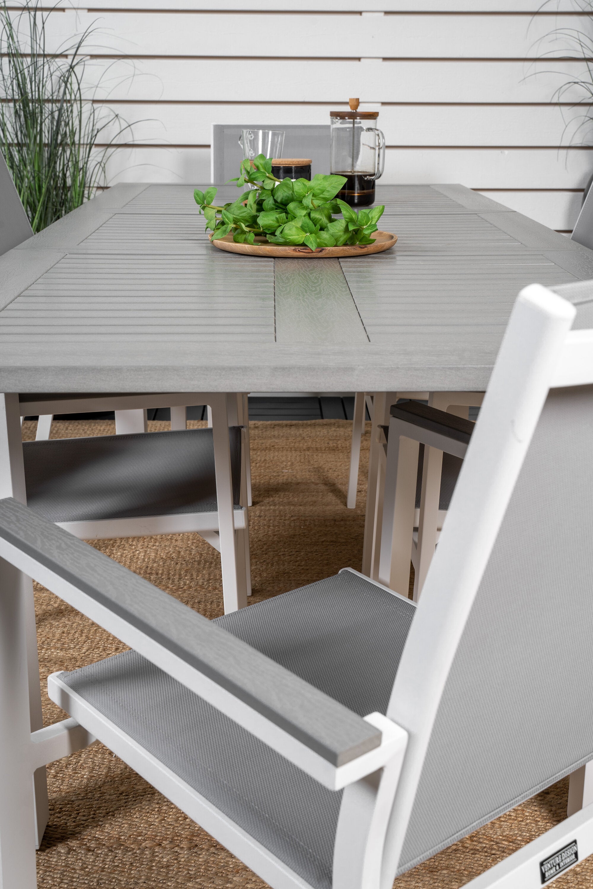 Jídelní stůl Albany 160/240*100 - Bílá Alu / Šedá Aintwood + křeslo Parma (sta
