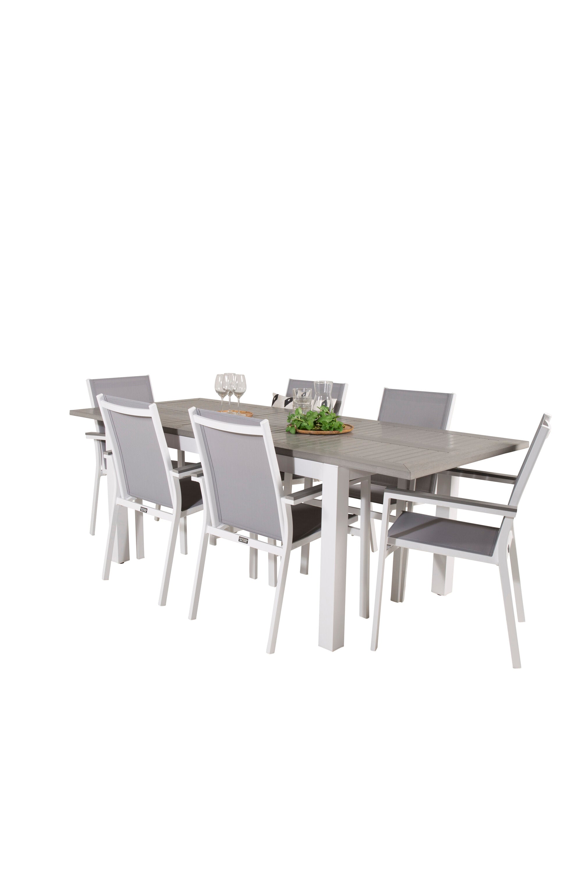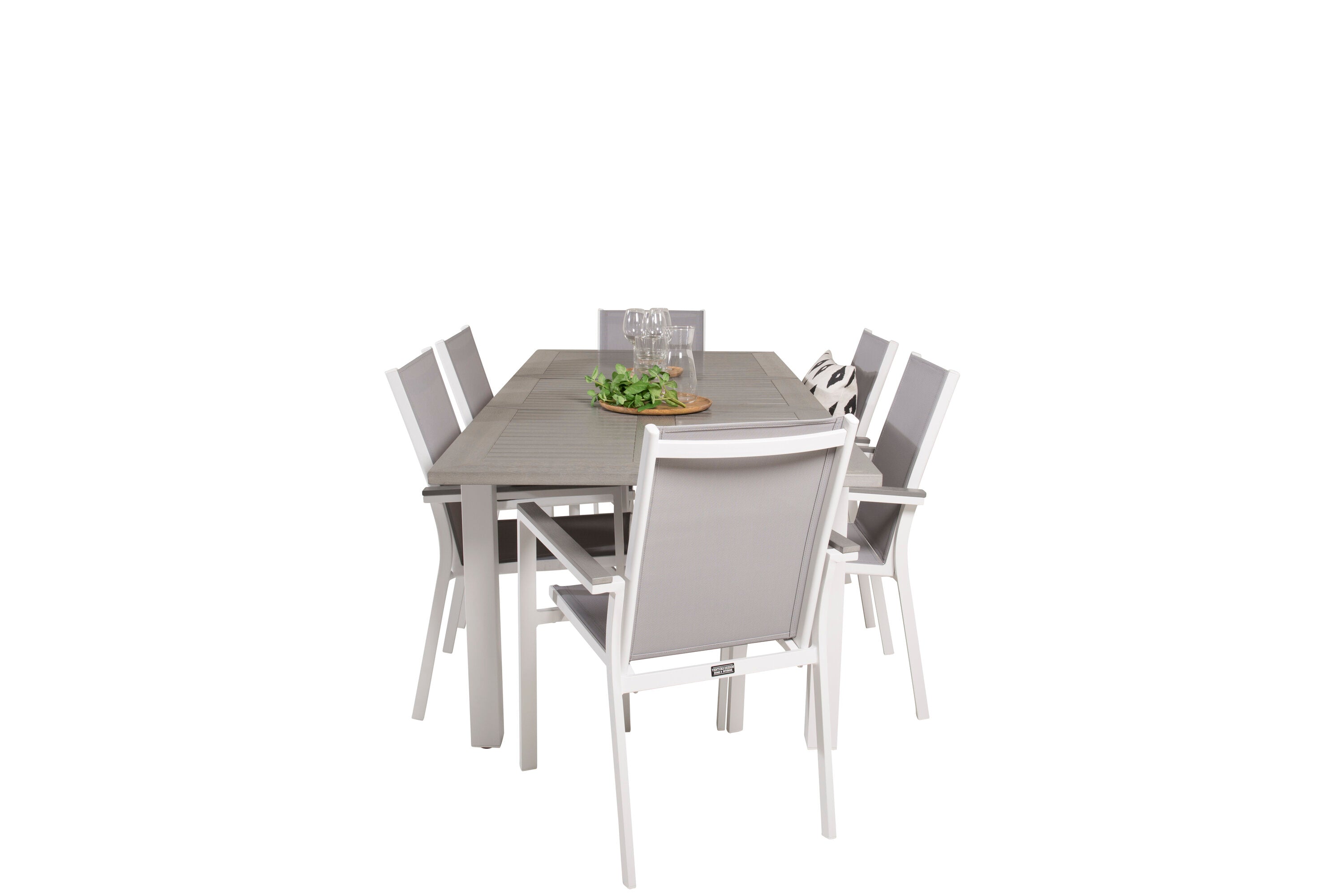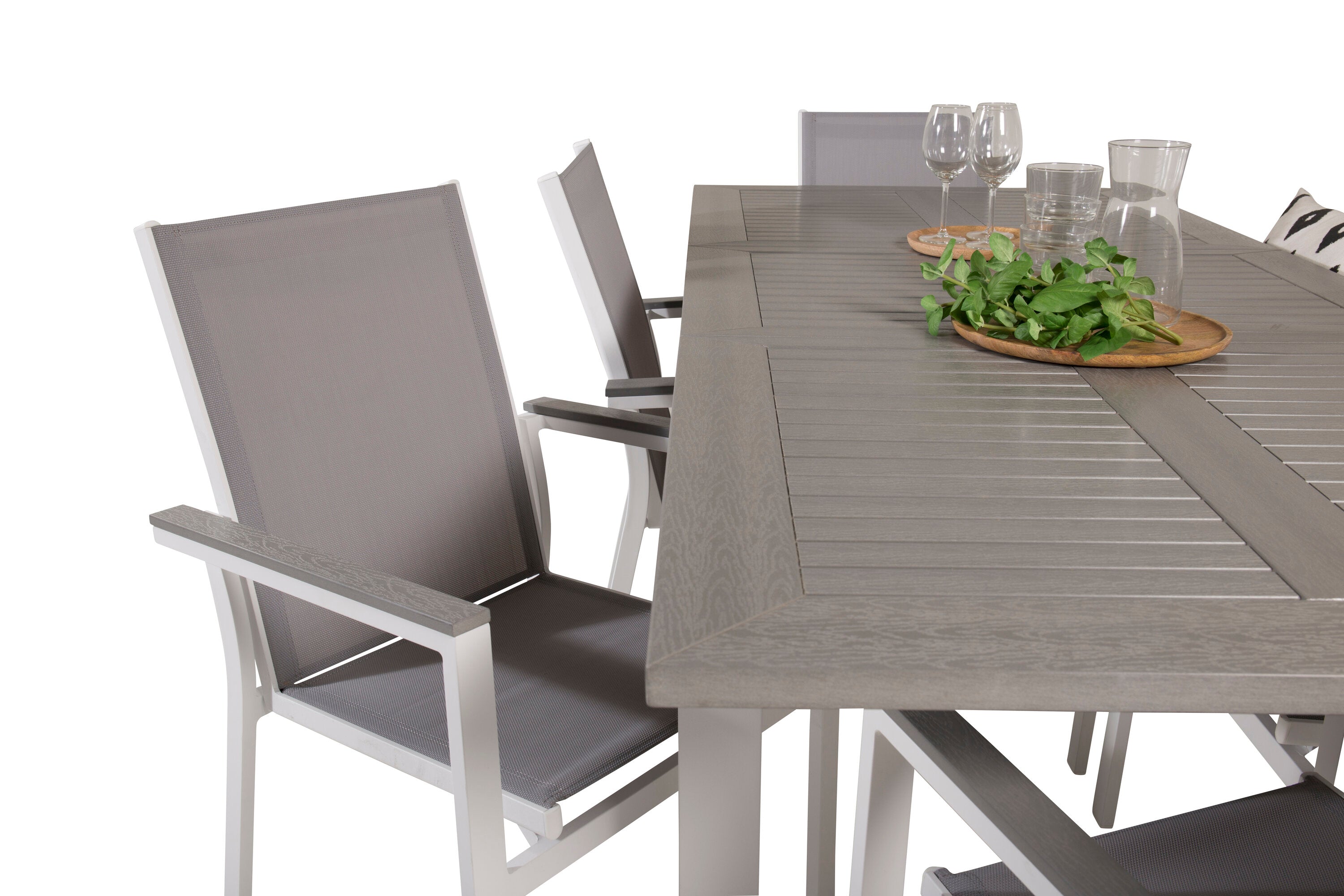 Jídelní stůl Albany 160/240*100 - Bílá Alu / Šedá Aintwood + křeslo Parma (sta