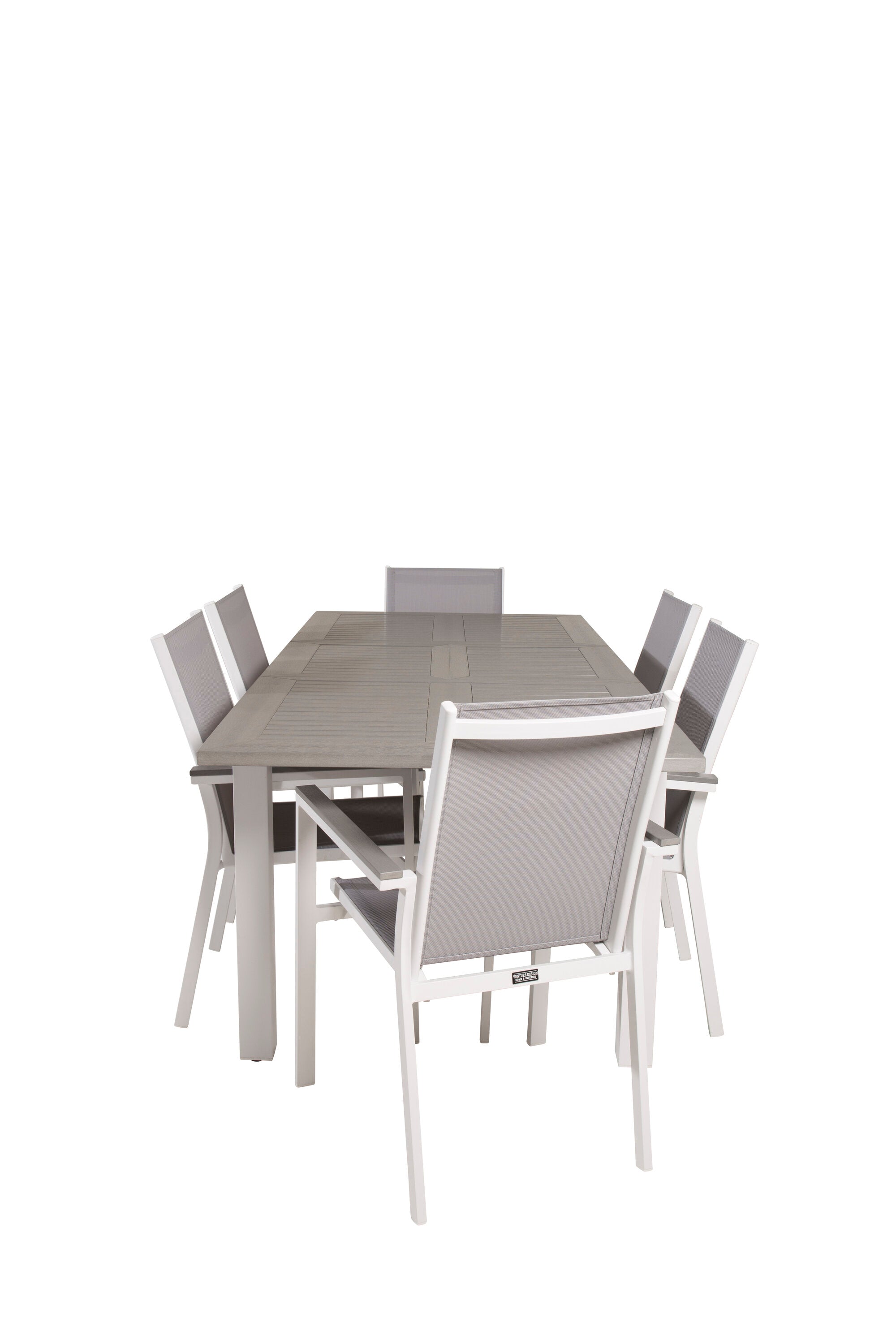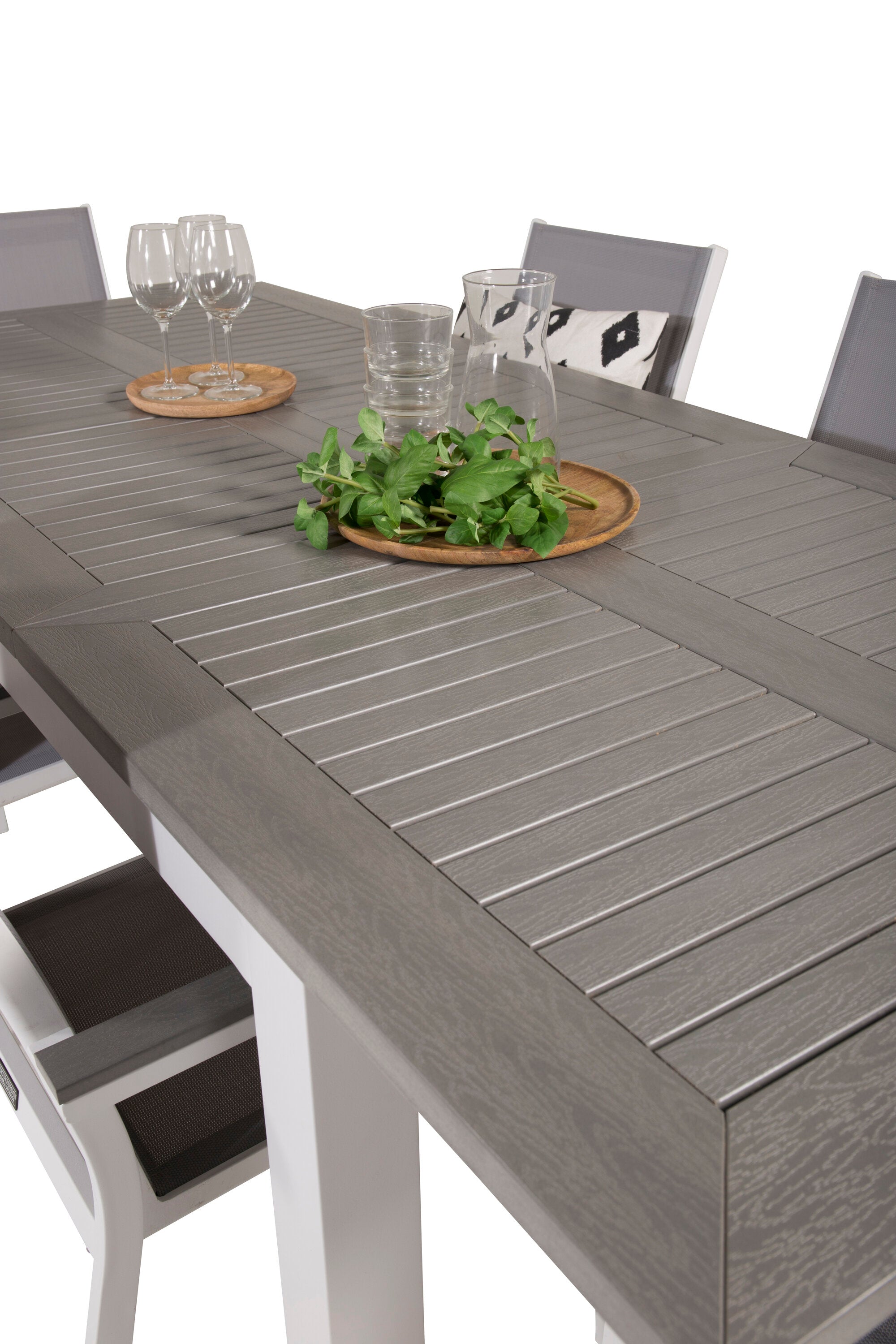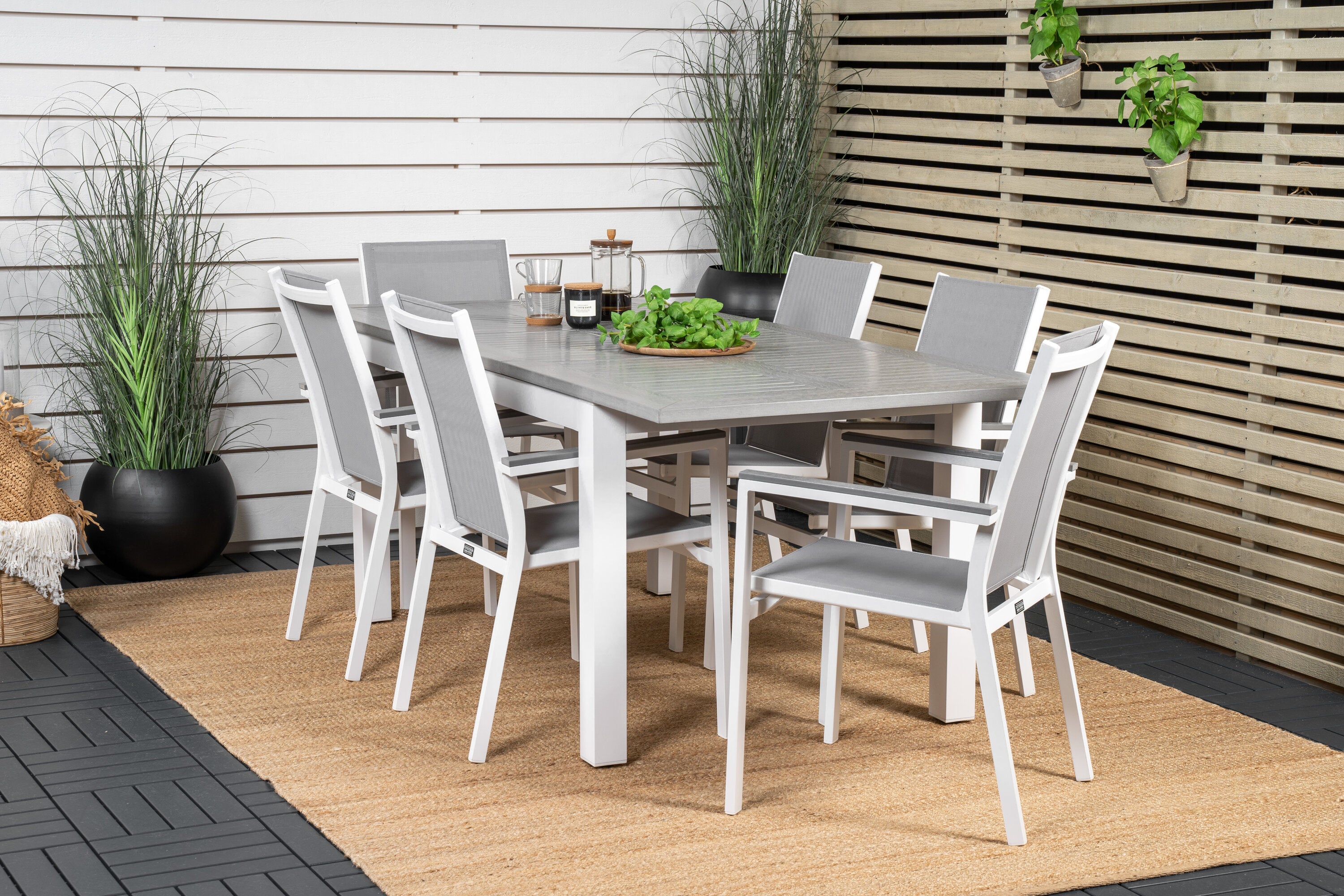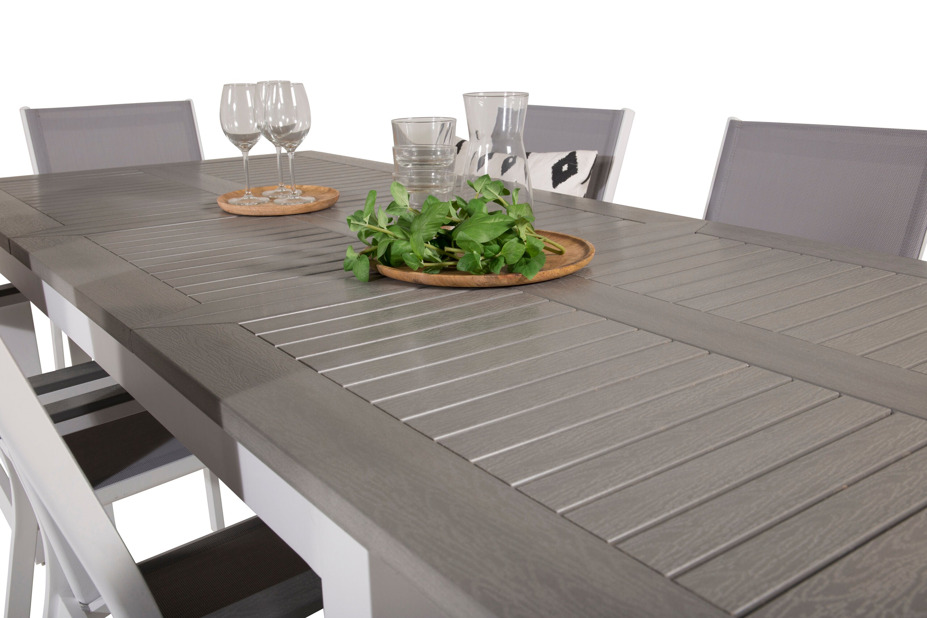 Jídelní stůl Albany 160/240*100 - Bílá Alu / Šedá Aintwood + křeslo Parma (sta