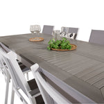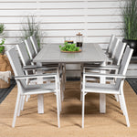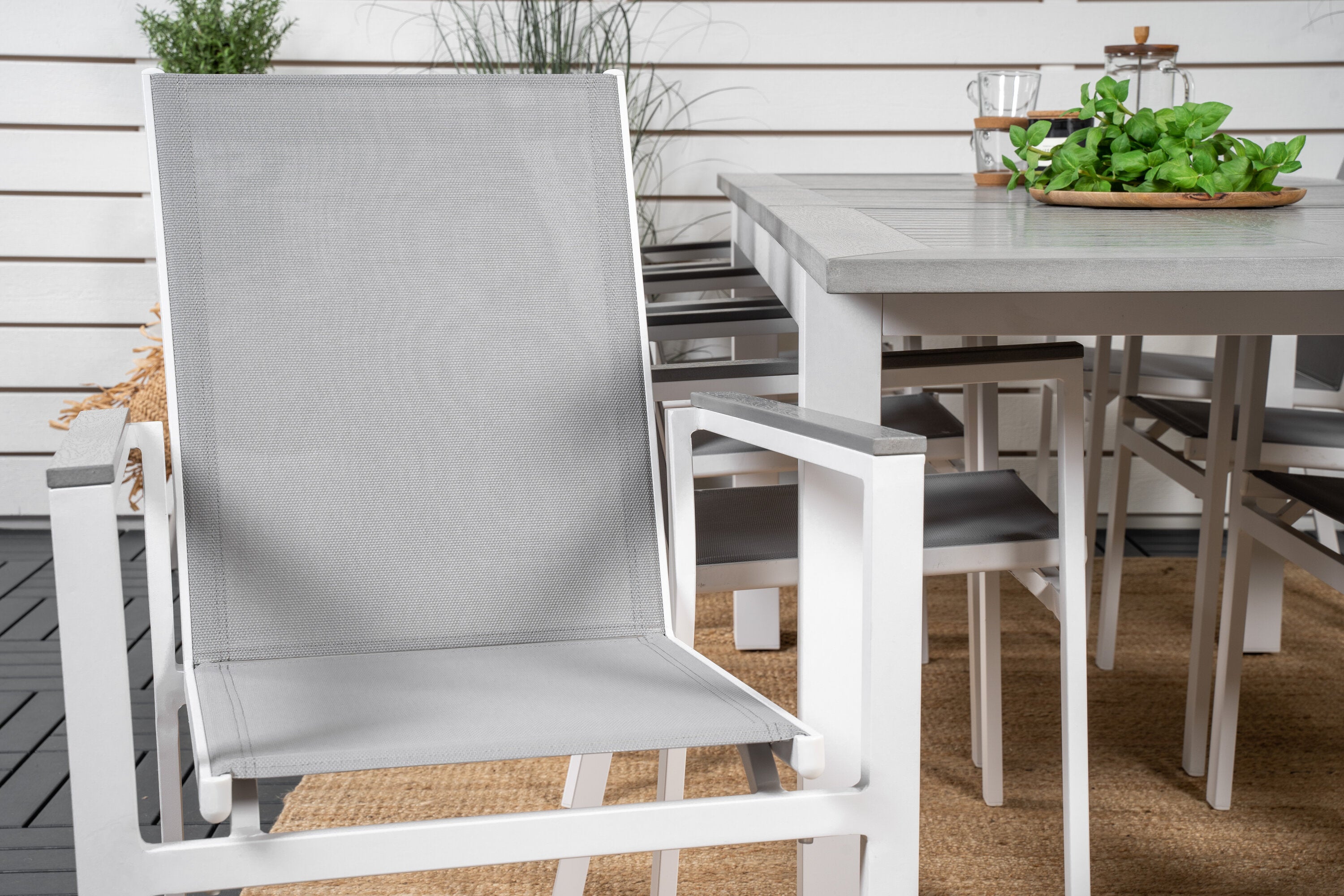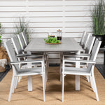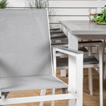 Jídelní stůl Albany 160/240*100 - Bílá Alu / Šedá Aintwood + křeslo Parma (sta