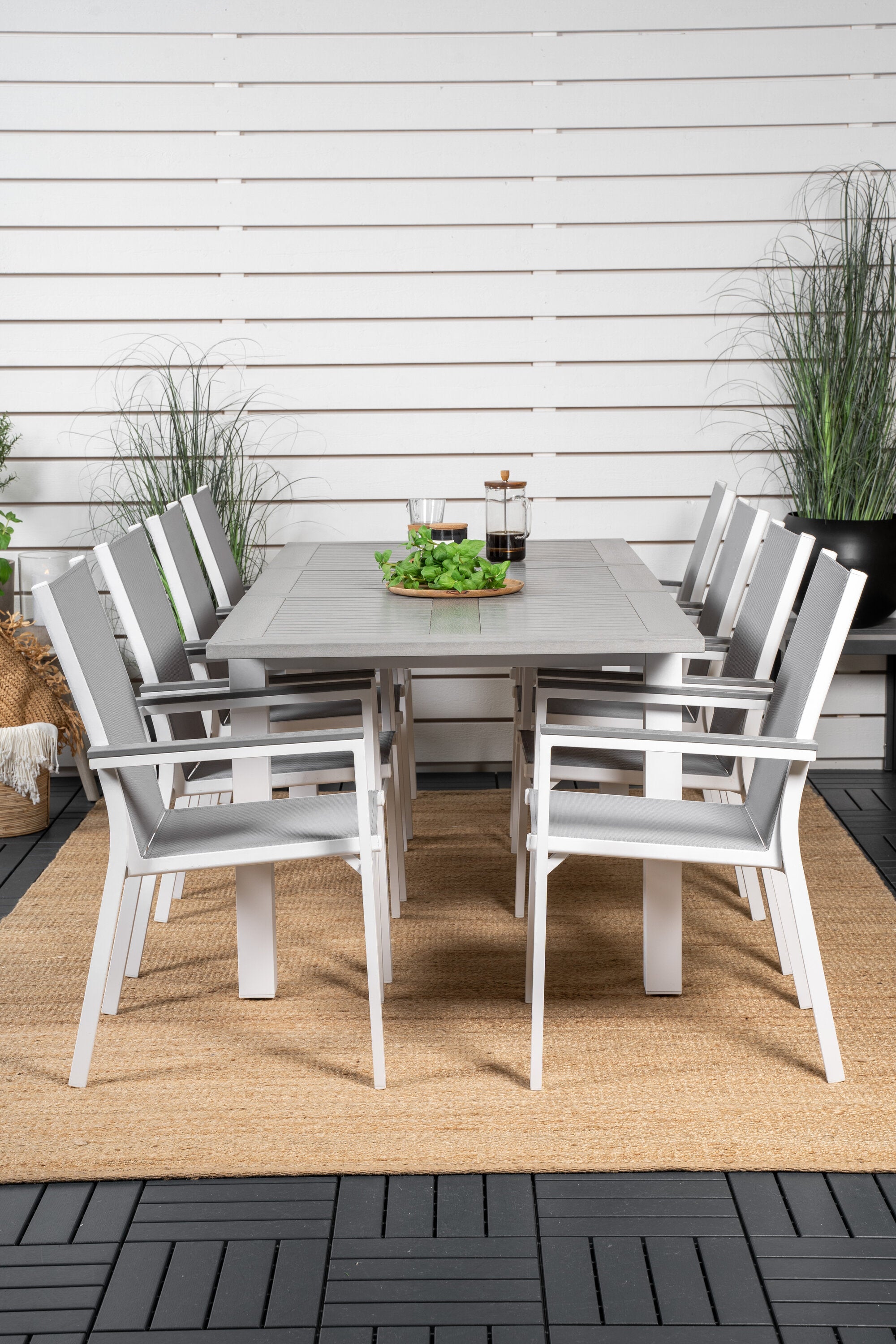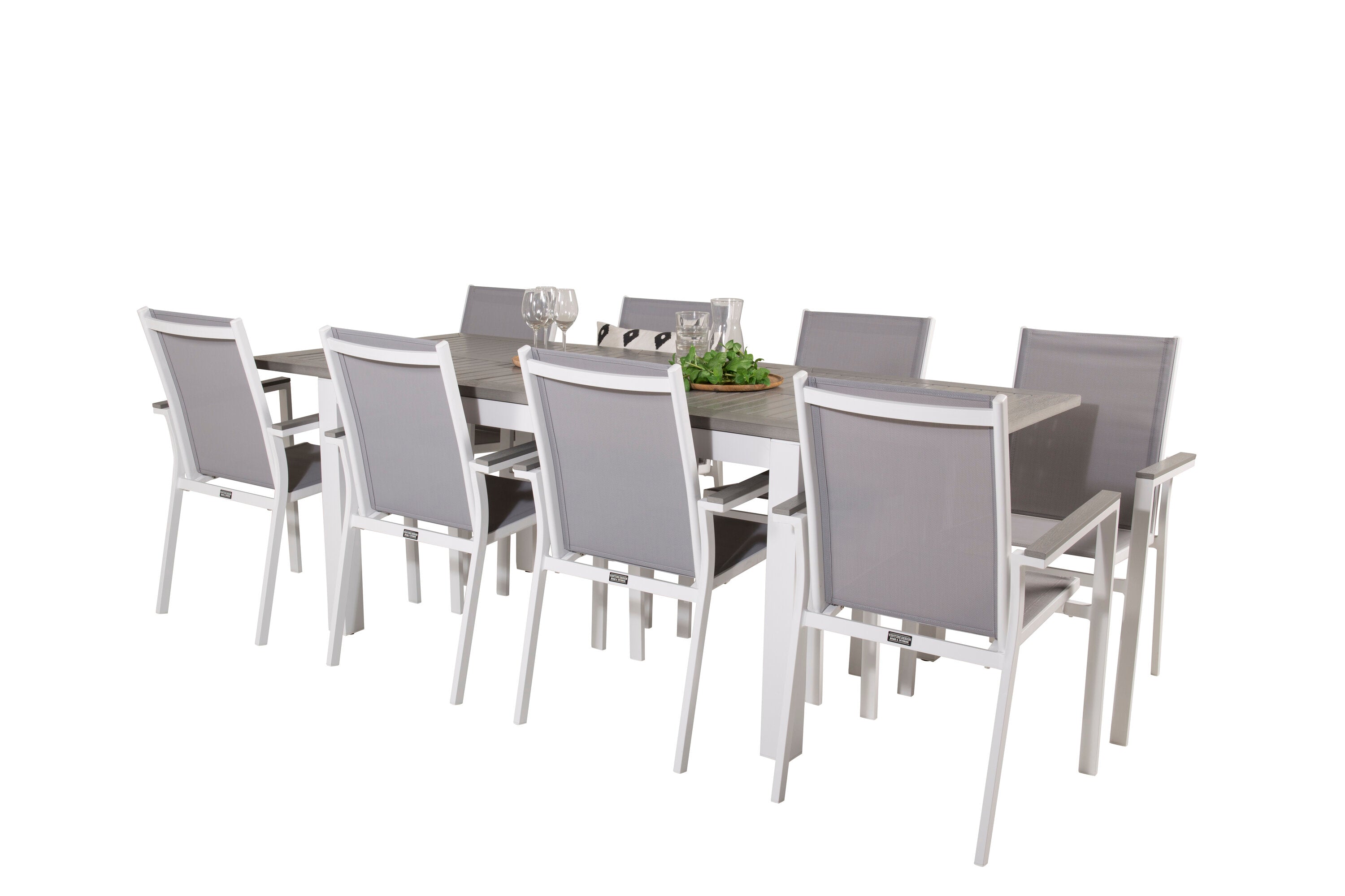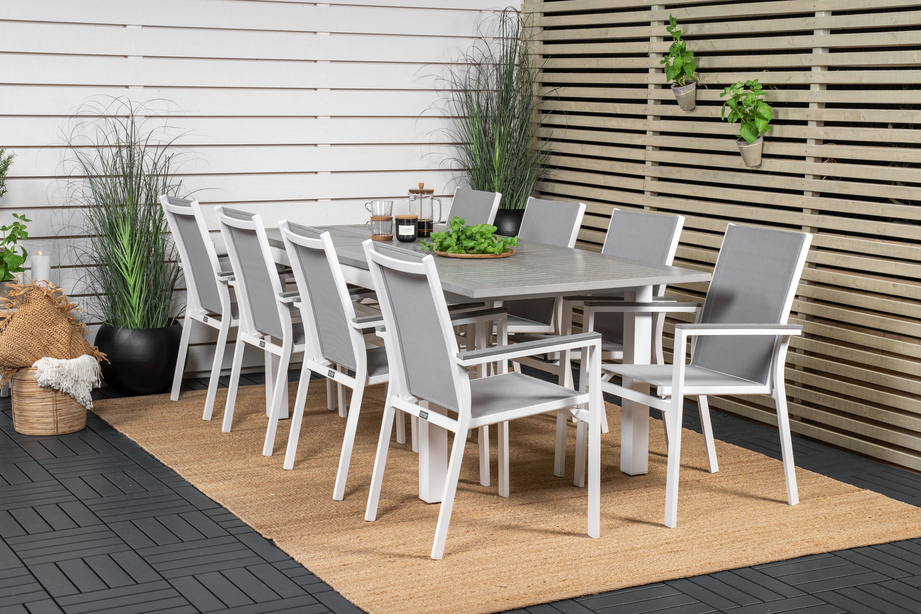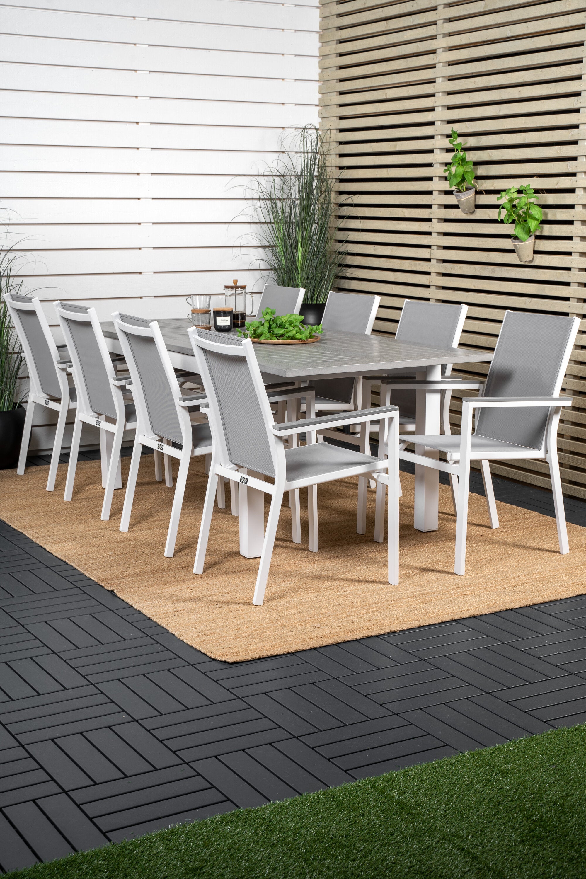 Moderní a útulné! Jídelní stůl Albany s možností prodloužení spolu s jídelními židlemi Panama vám poskytne pěknou sestavu jídel do venkovního prostoru. Kombinace, která se hodí na každou terasu!