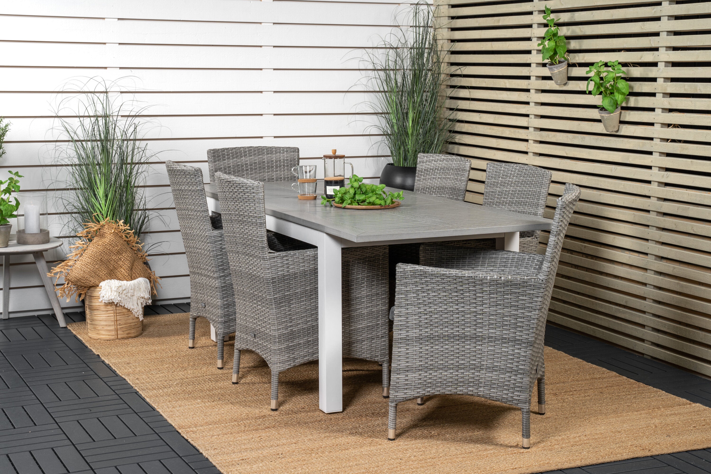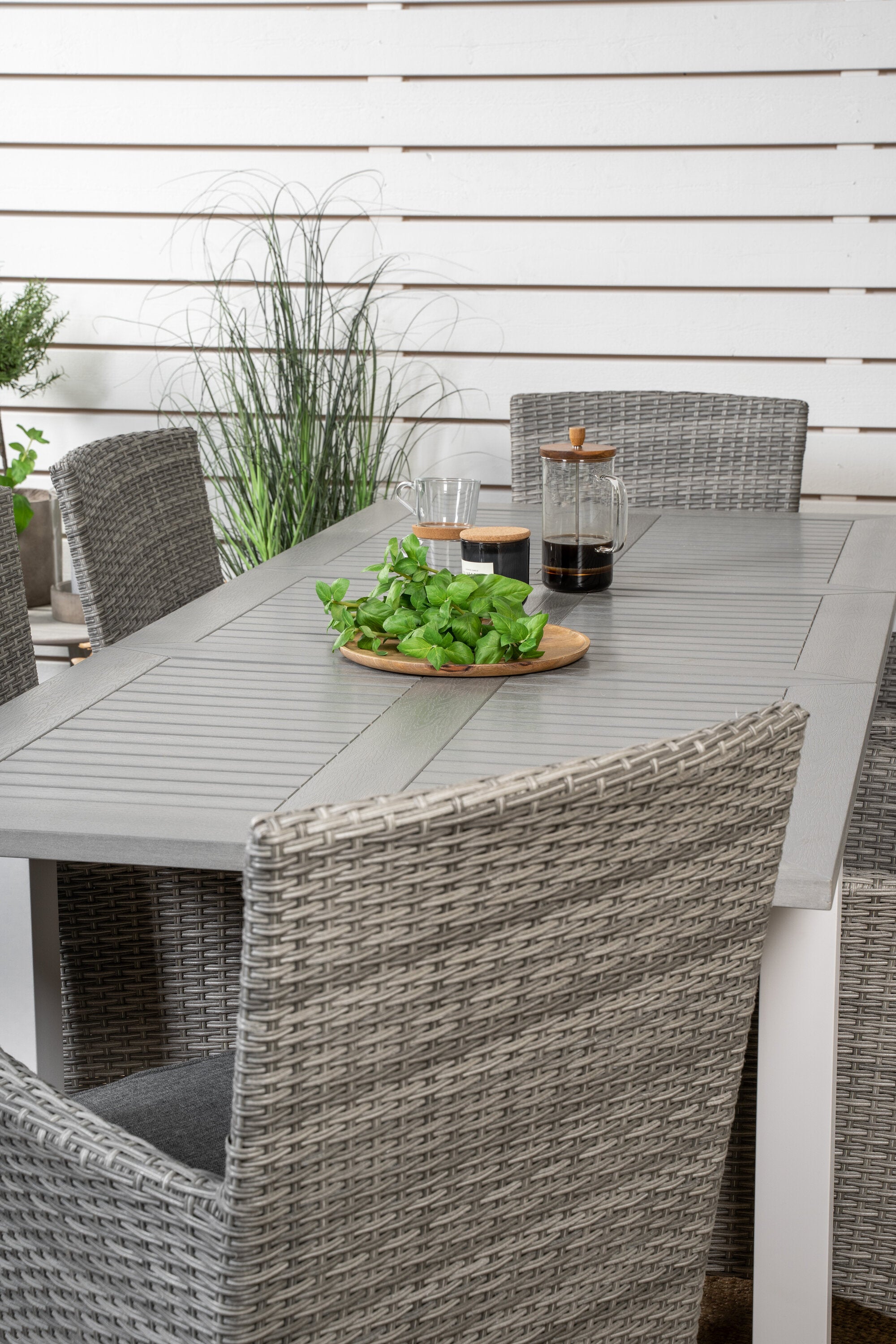 Jídelní stůl Albany 160/240*100 - Bílá Alu / Šedá Aintwood+Malin Područková židle s polštářem - Šedá / Šedá cushion_6