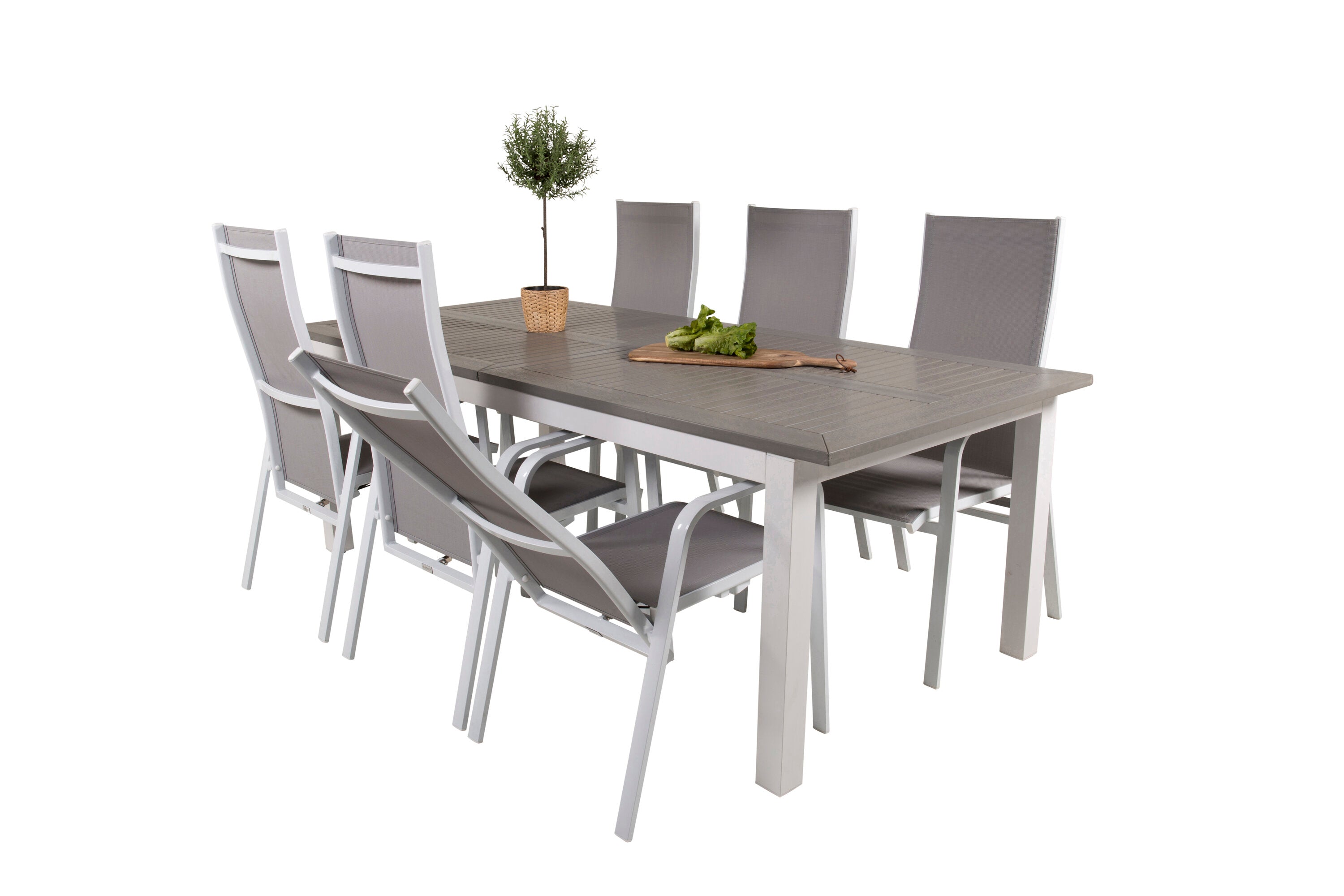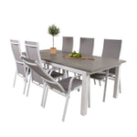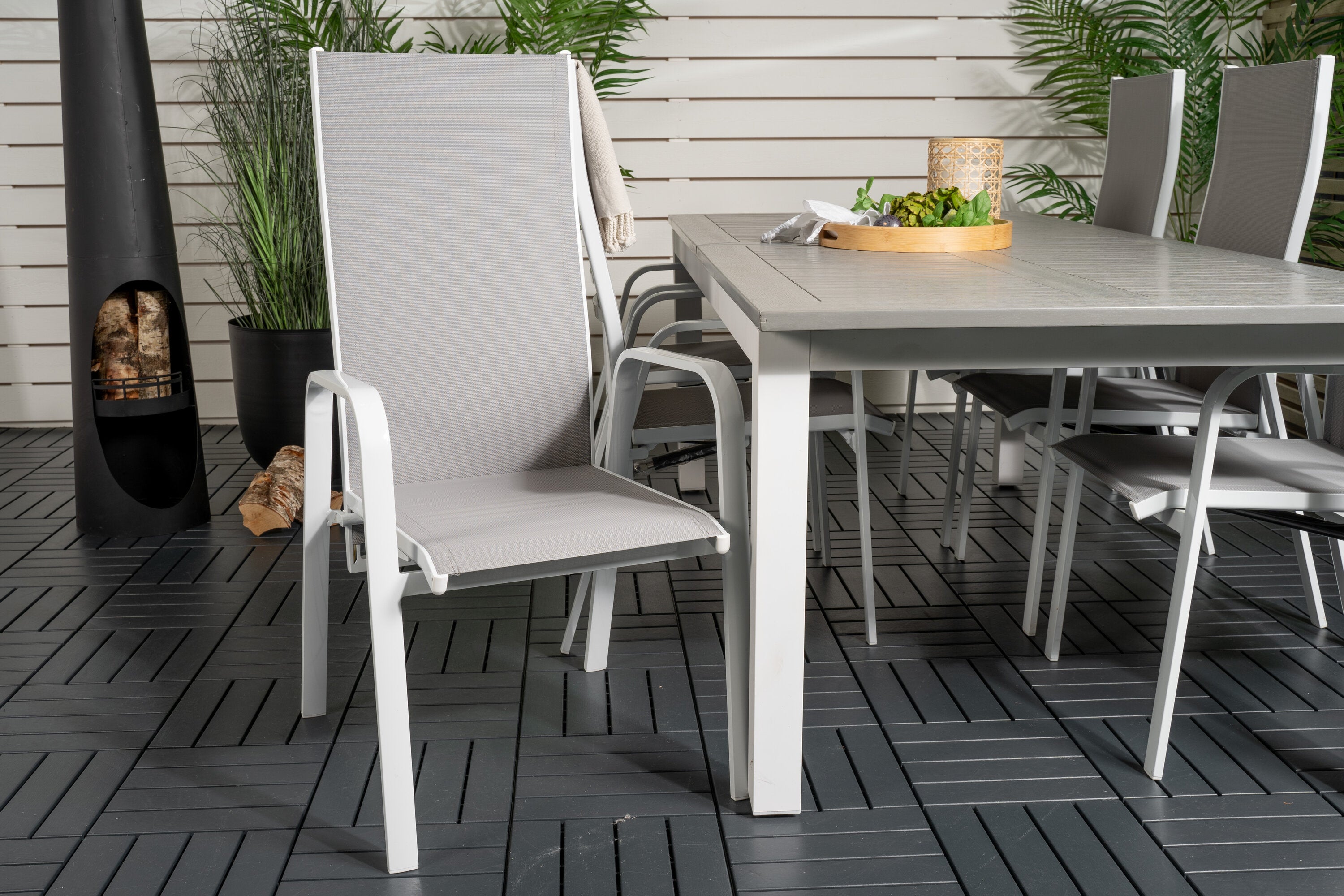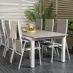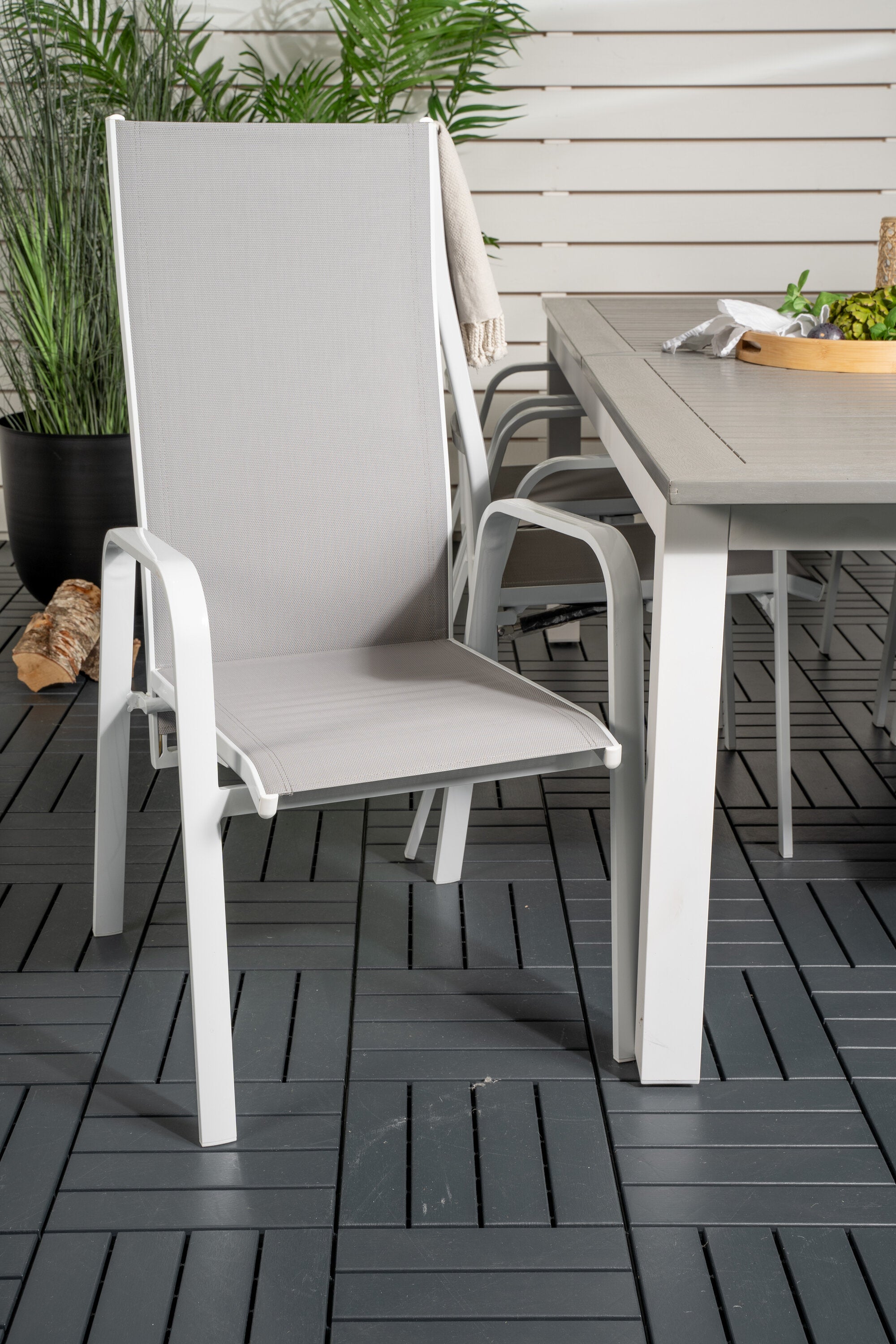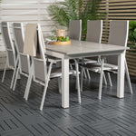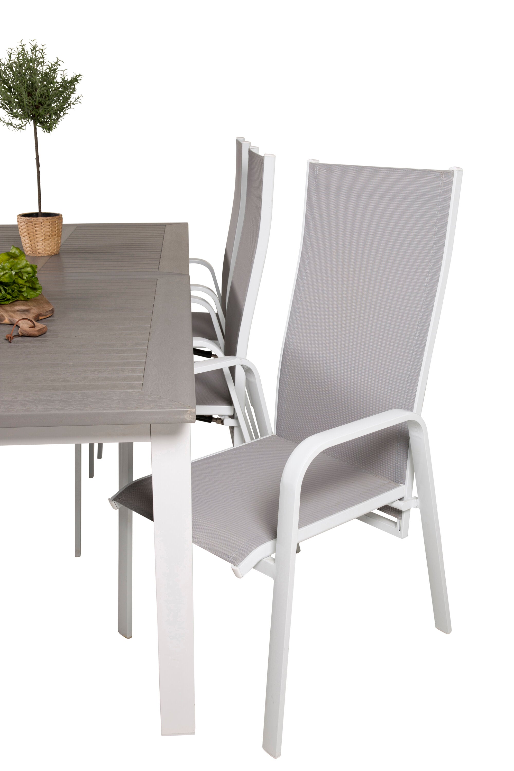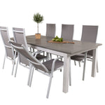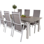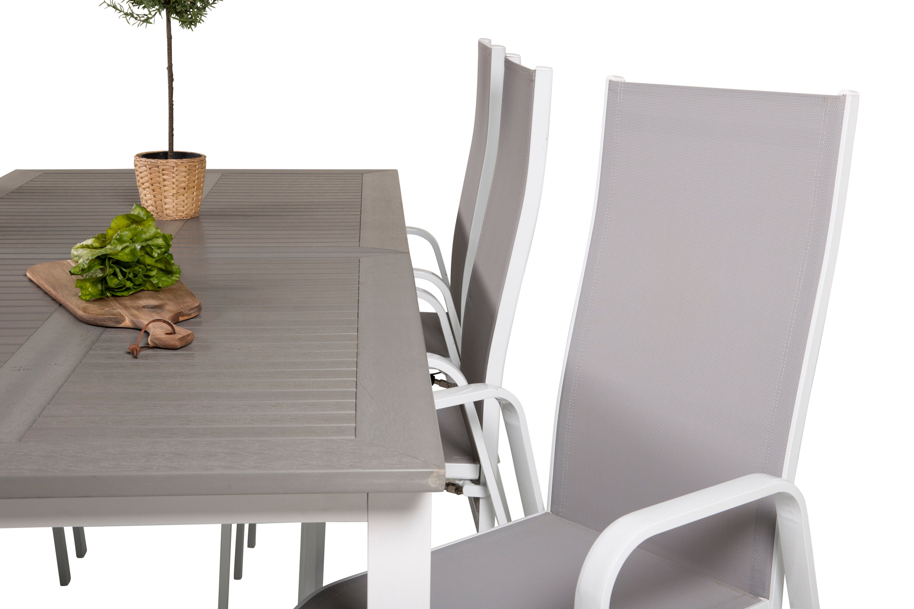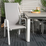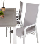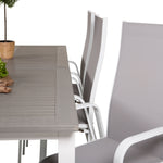 Jídelní stůl Albany 224/324*100 - Bílá Alu / Šedá Aintwood+Copacabana Polohovací křeslo (stohovatelné) - Bílá Alu / Šedá Textilene_6