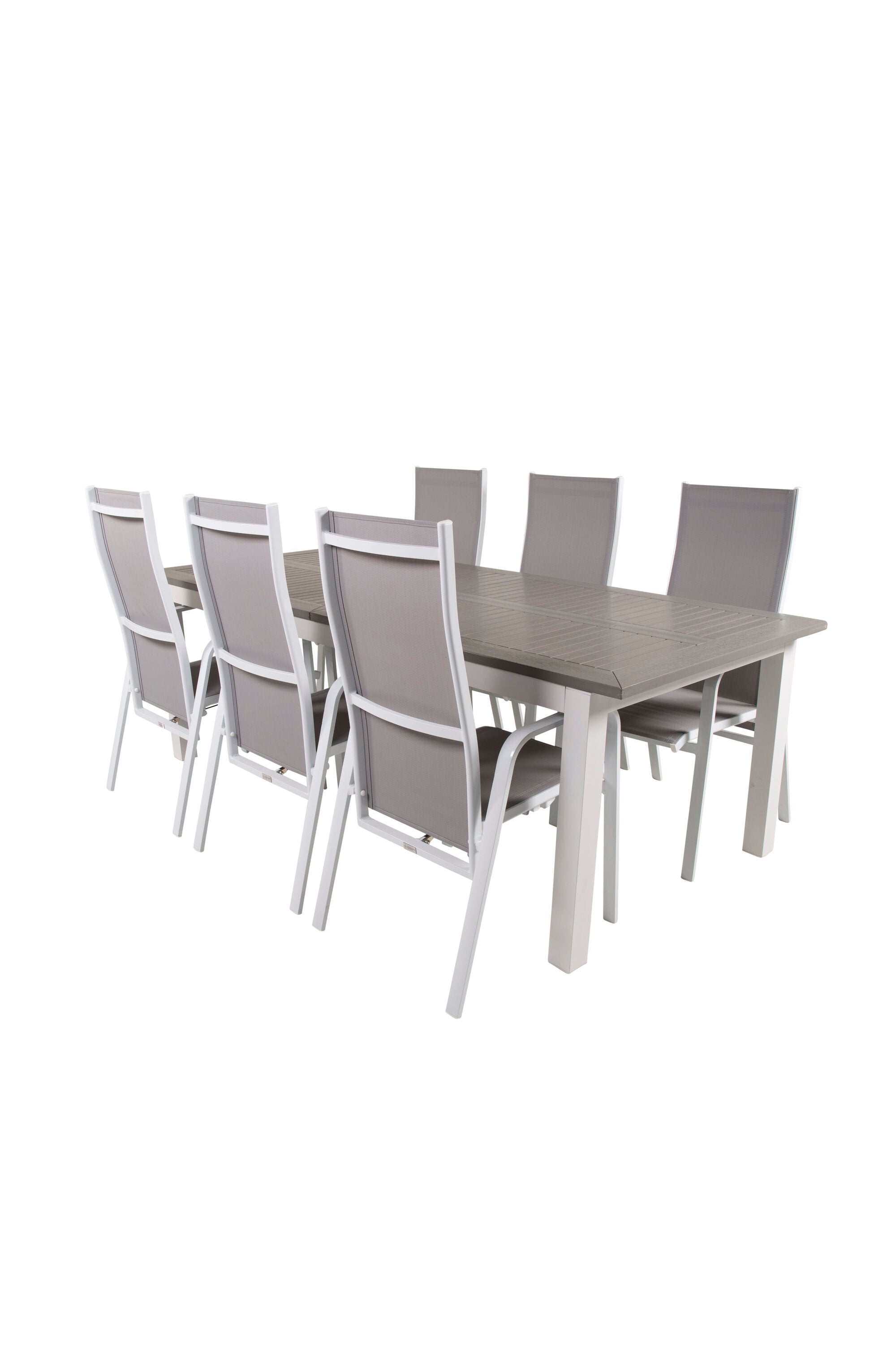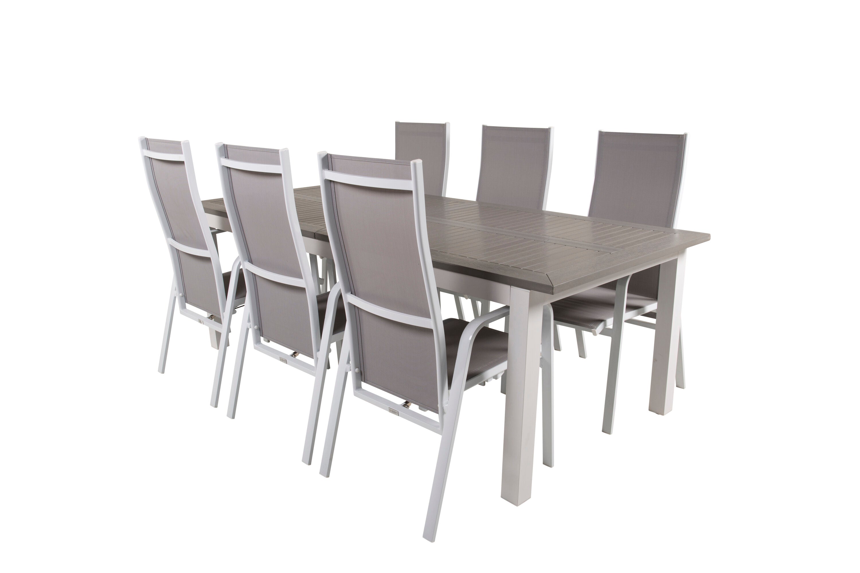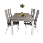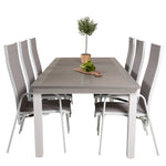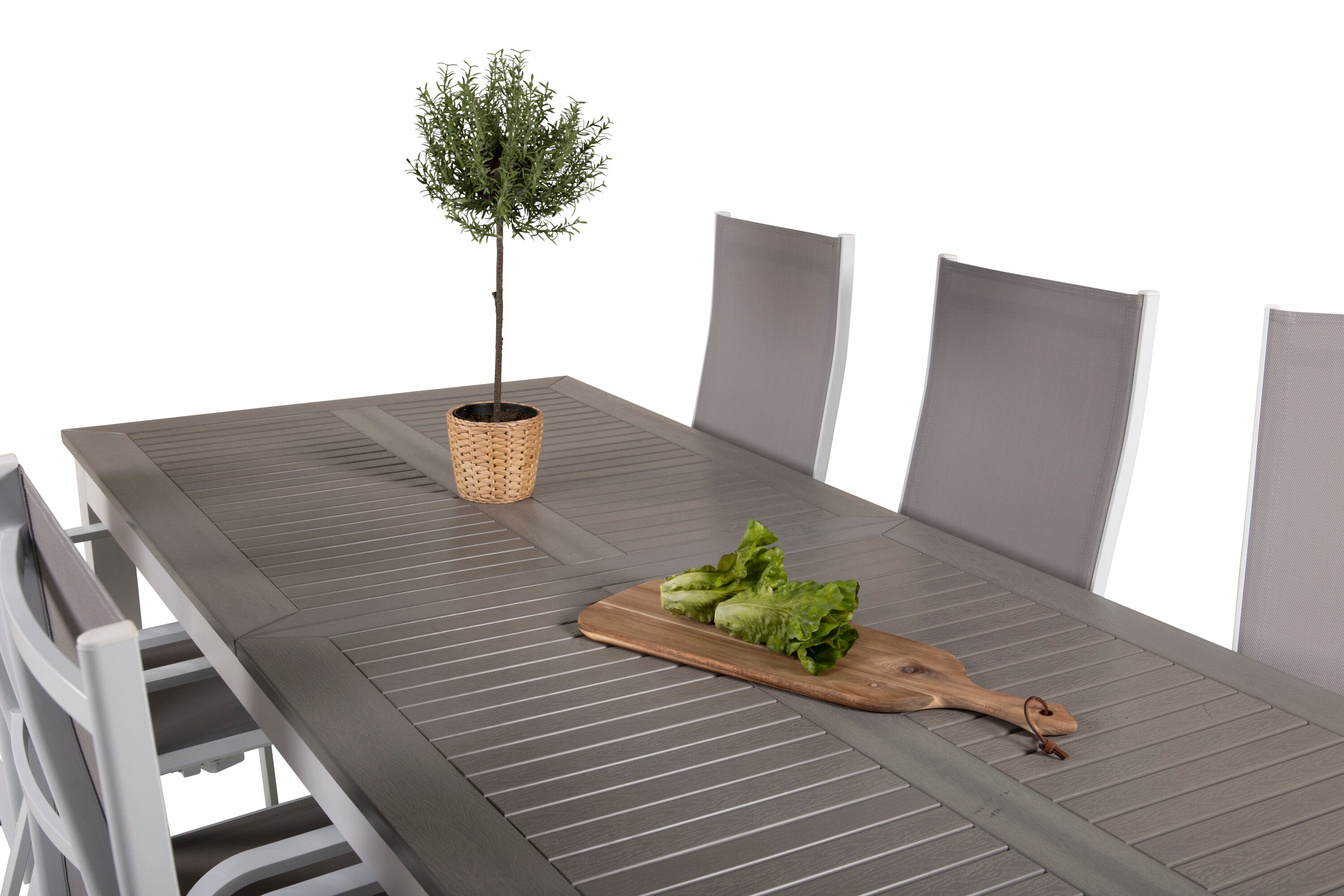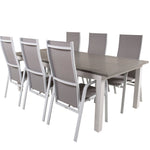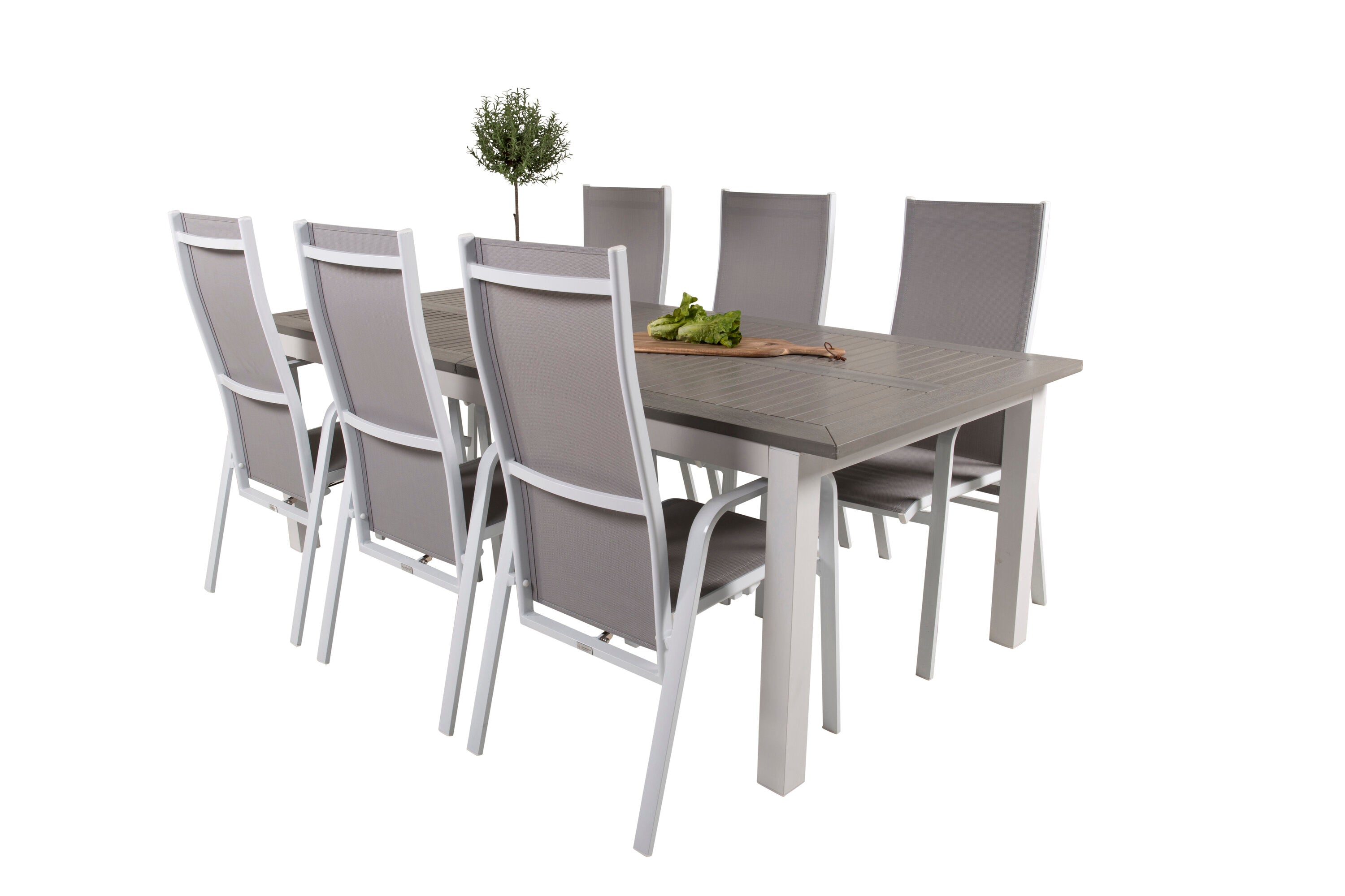 Jídelní stůl Albany 224/324*100 - Bílá Alu / Šedá Aintwood+Copacabana Polohovací křeslo (stohovatelné) - Bílá Alu / Šedá Textilene_6