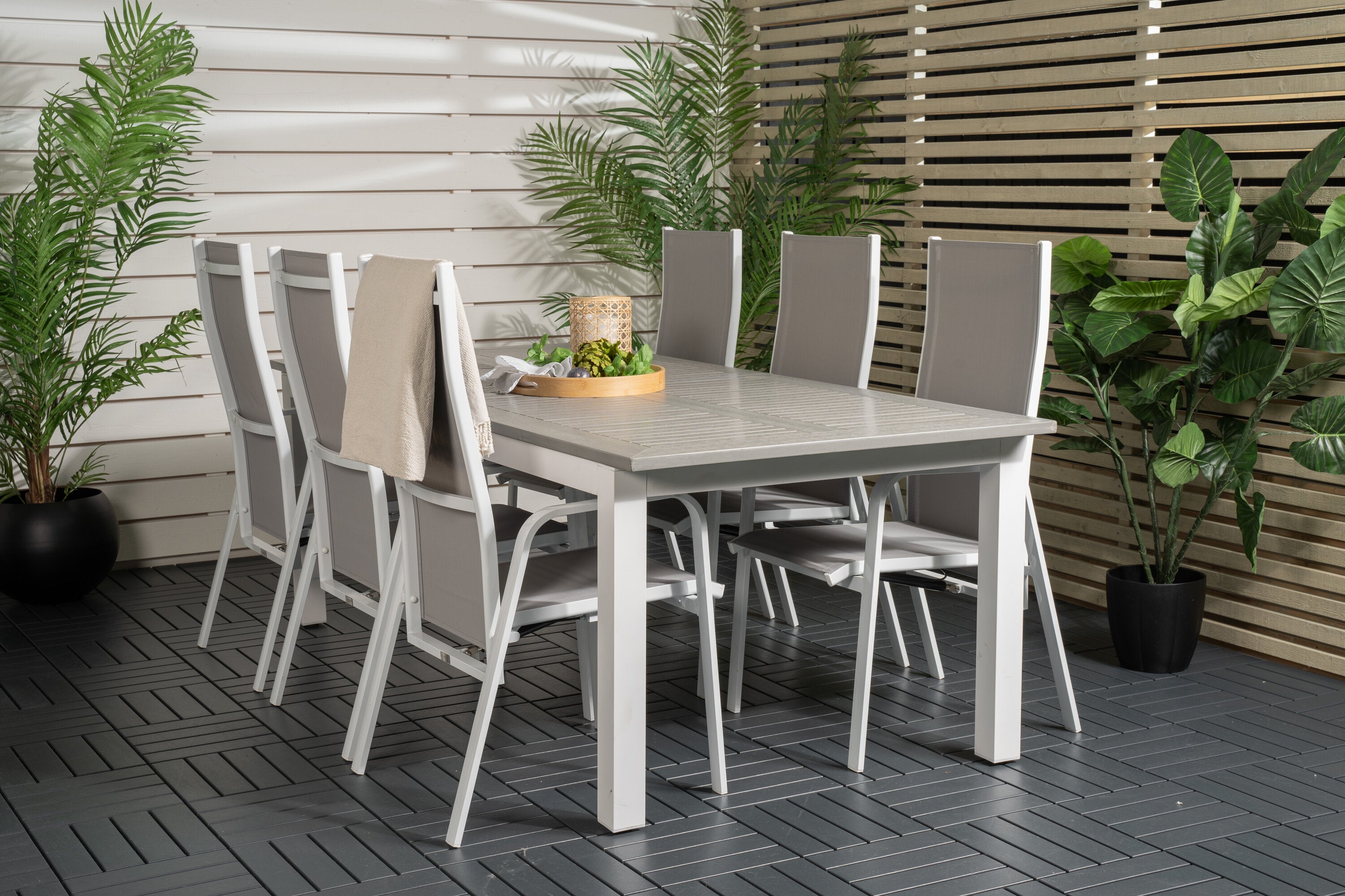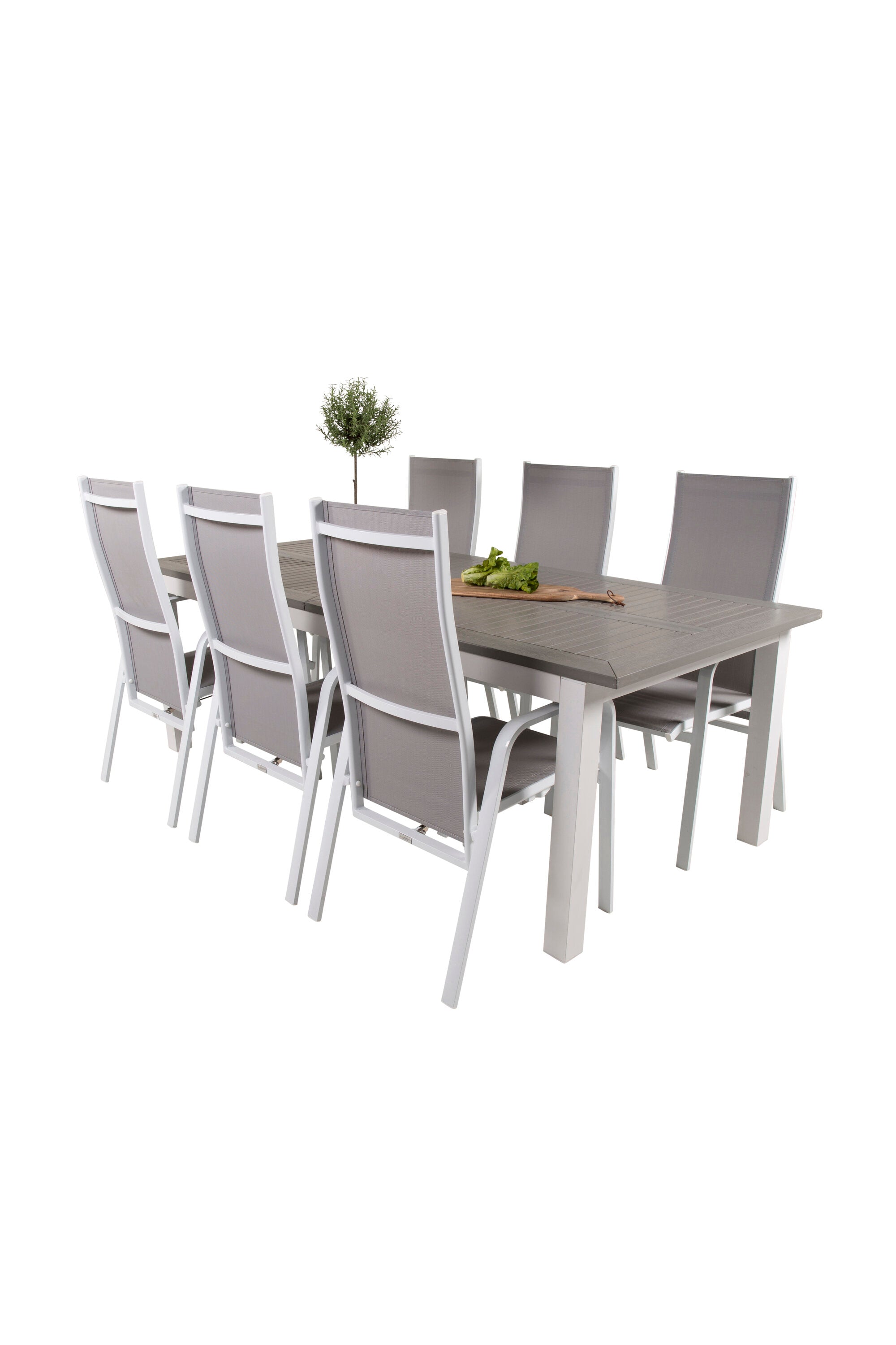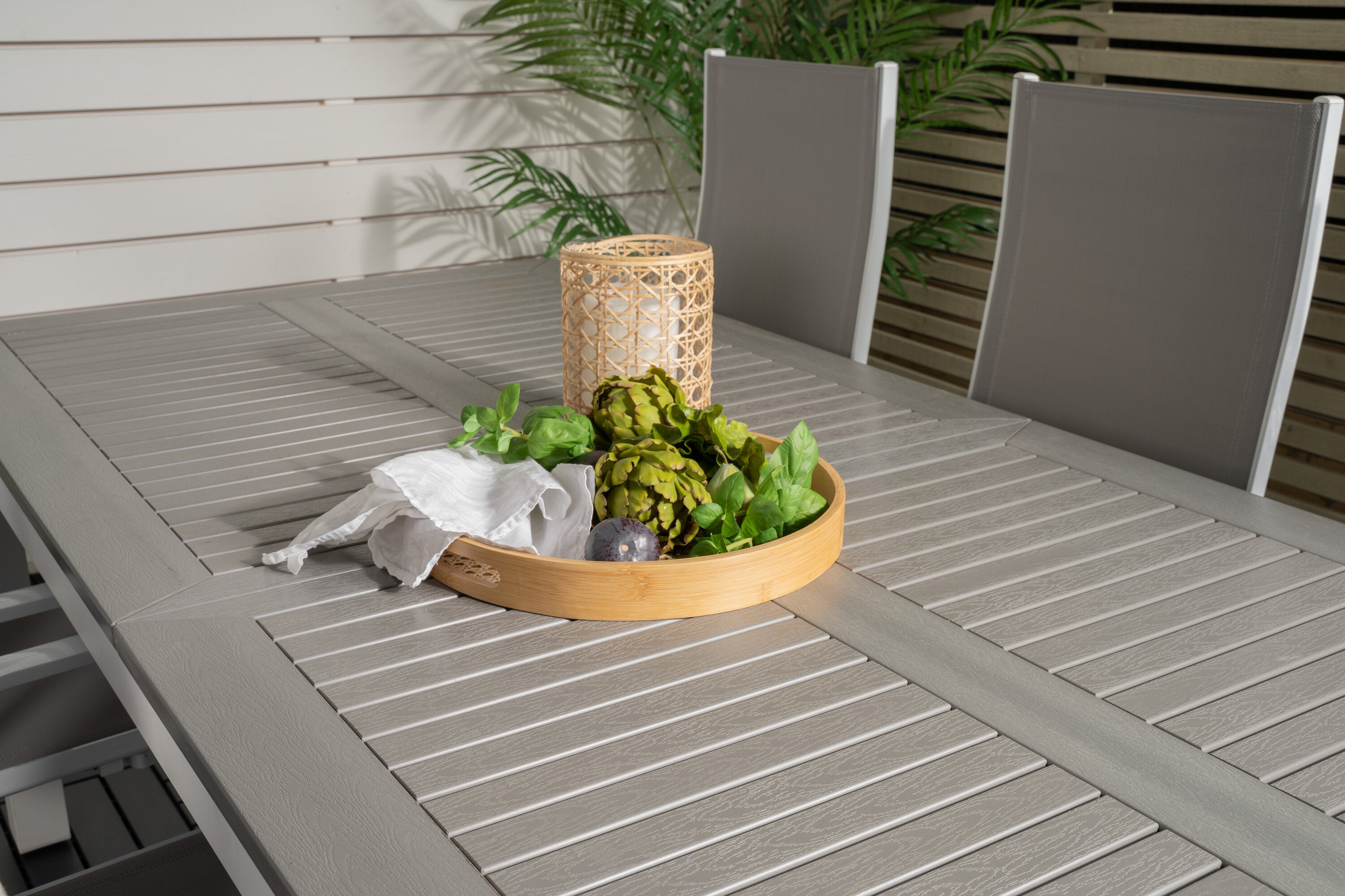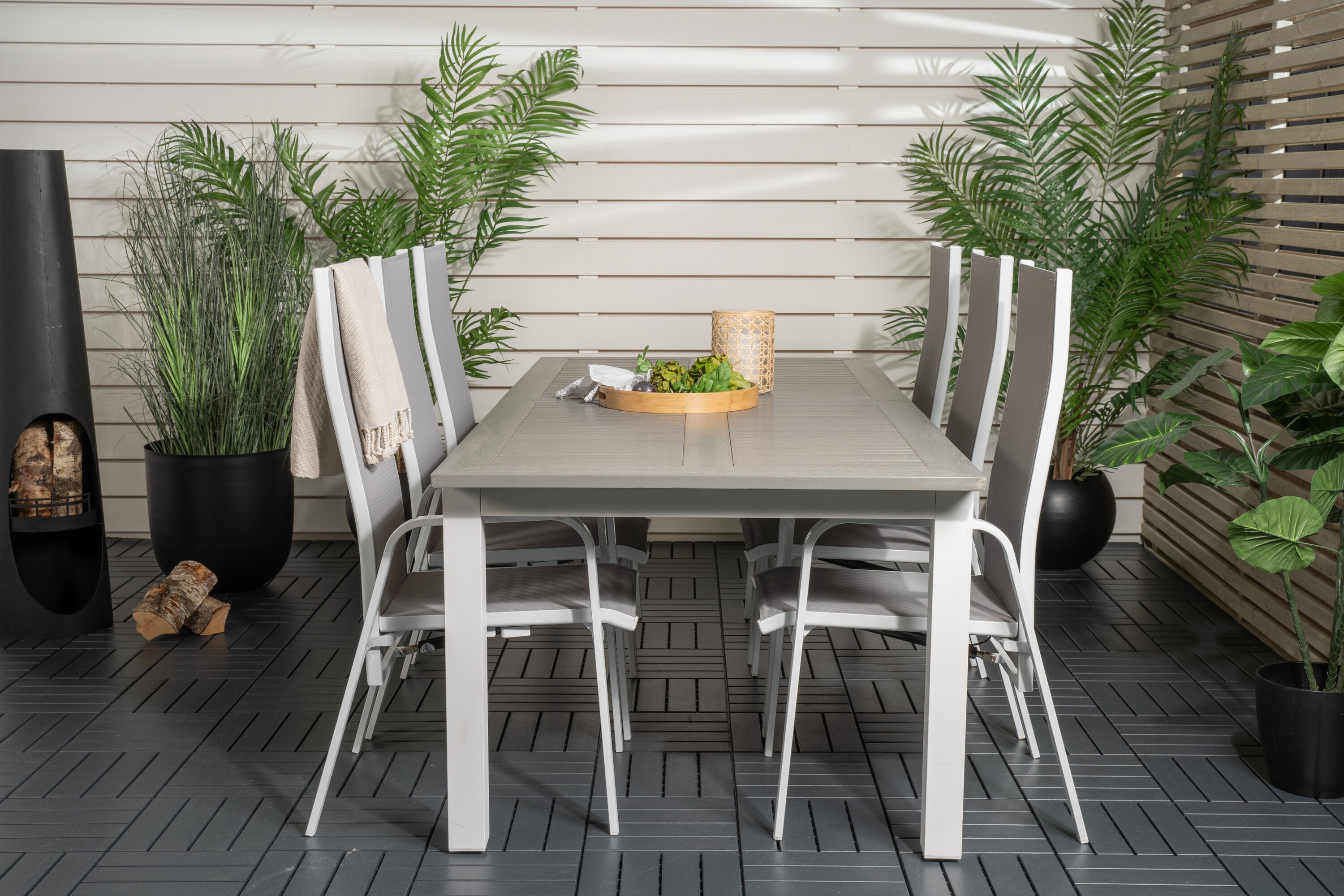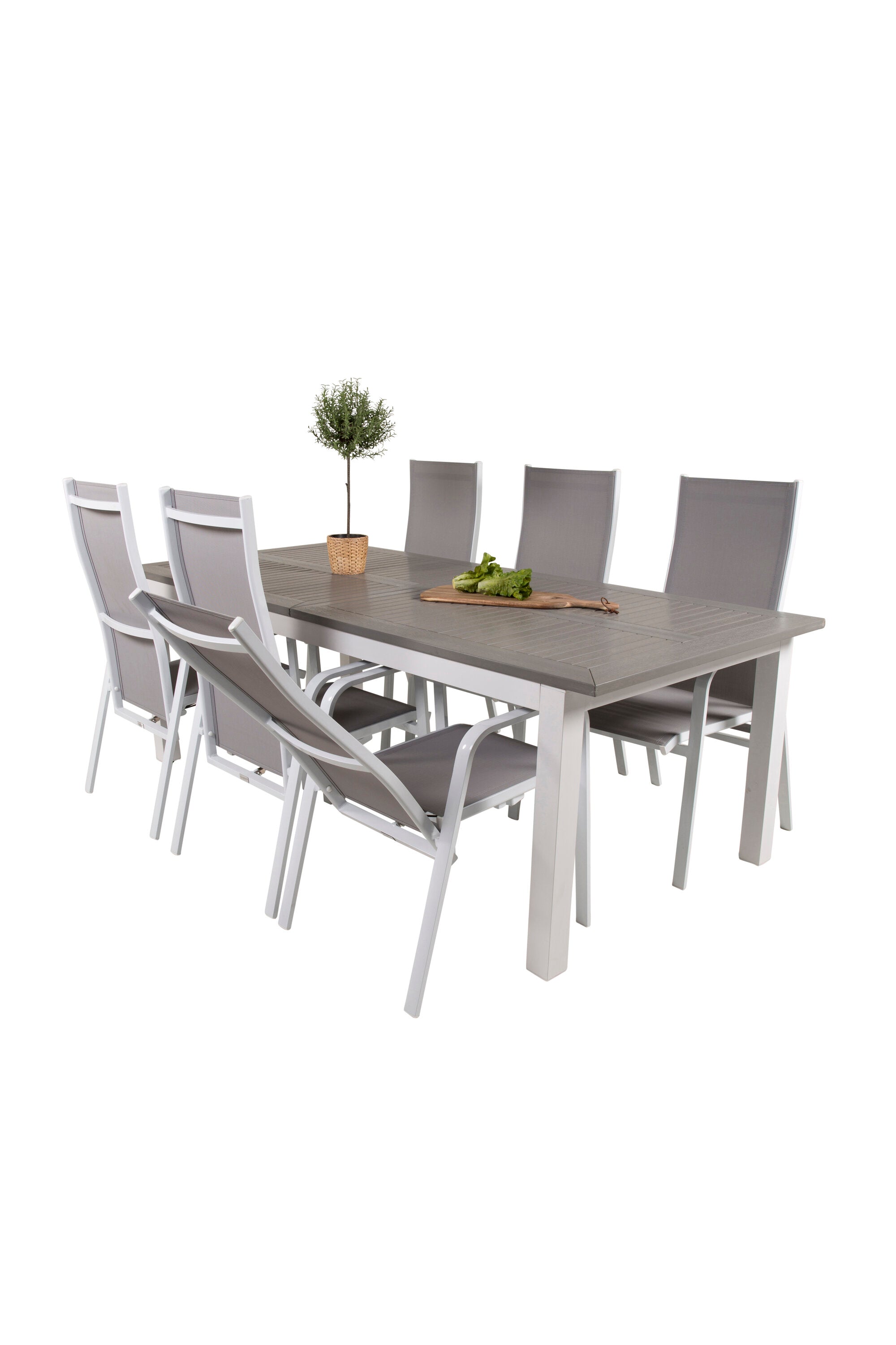 Jídelní stůl Albany 224/324*100 - Bílá Alu / Šedá Aintwood+Copacabana Polohovací křeslo (stohovatelné) - Bílá Alu / Šedá Textilene_6