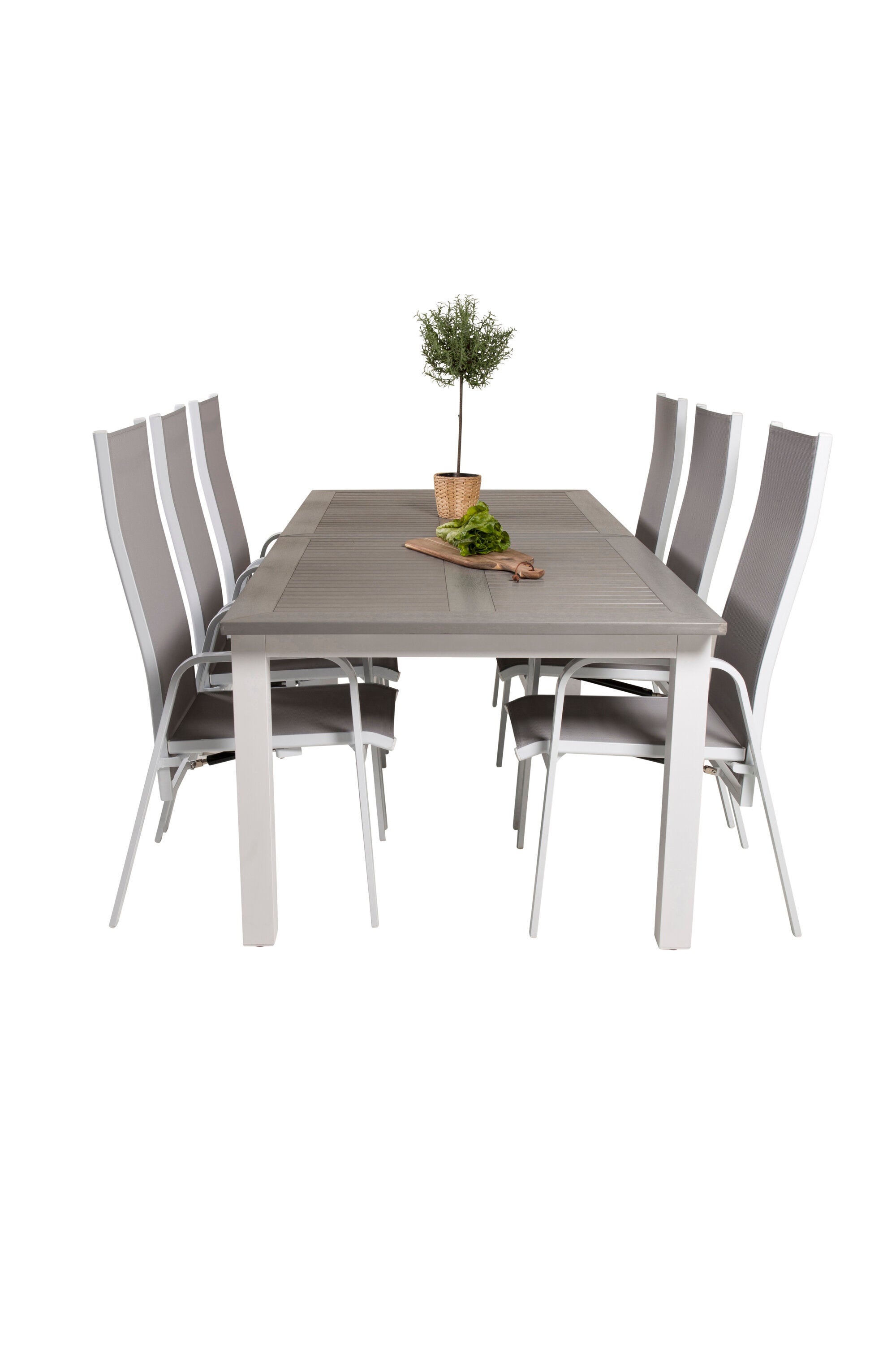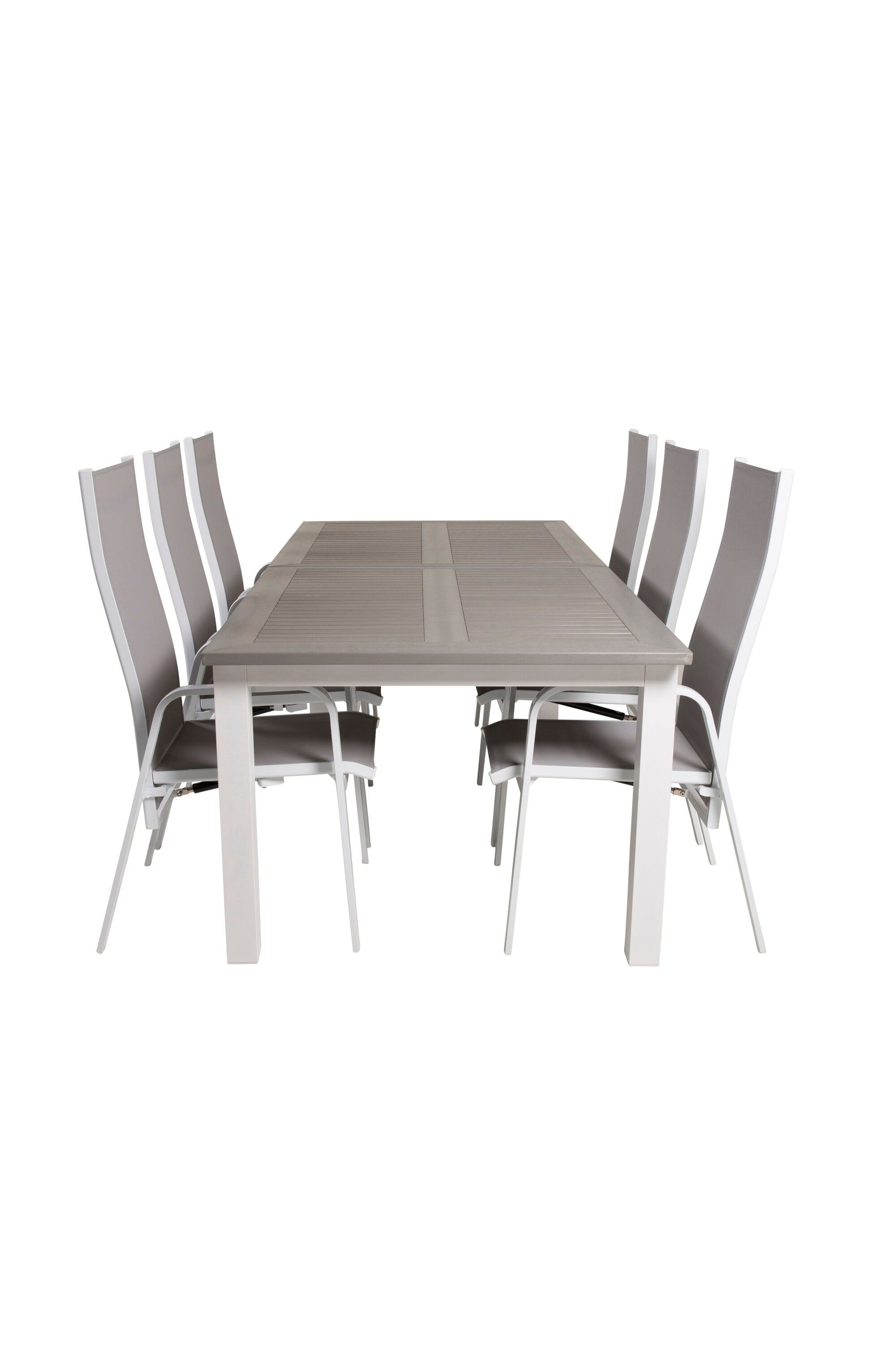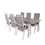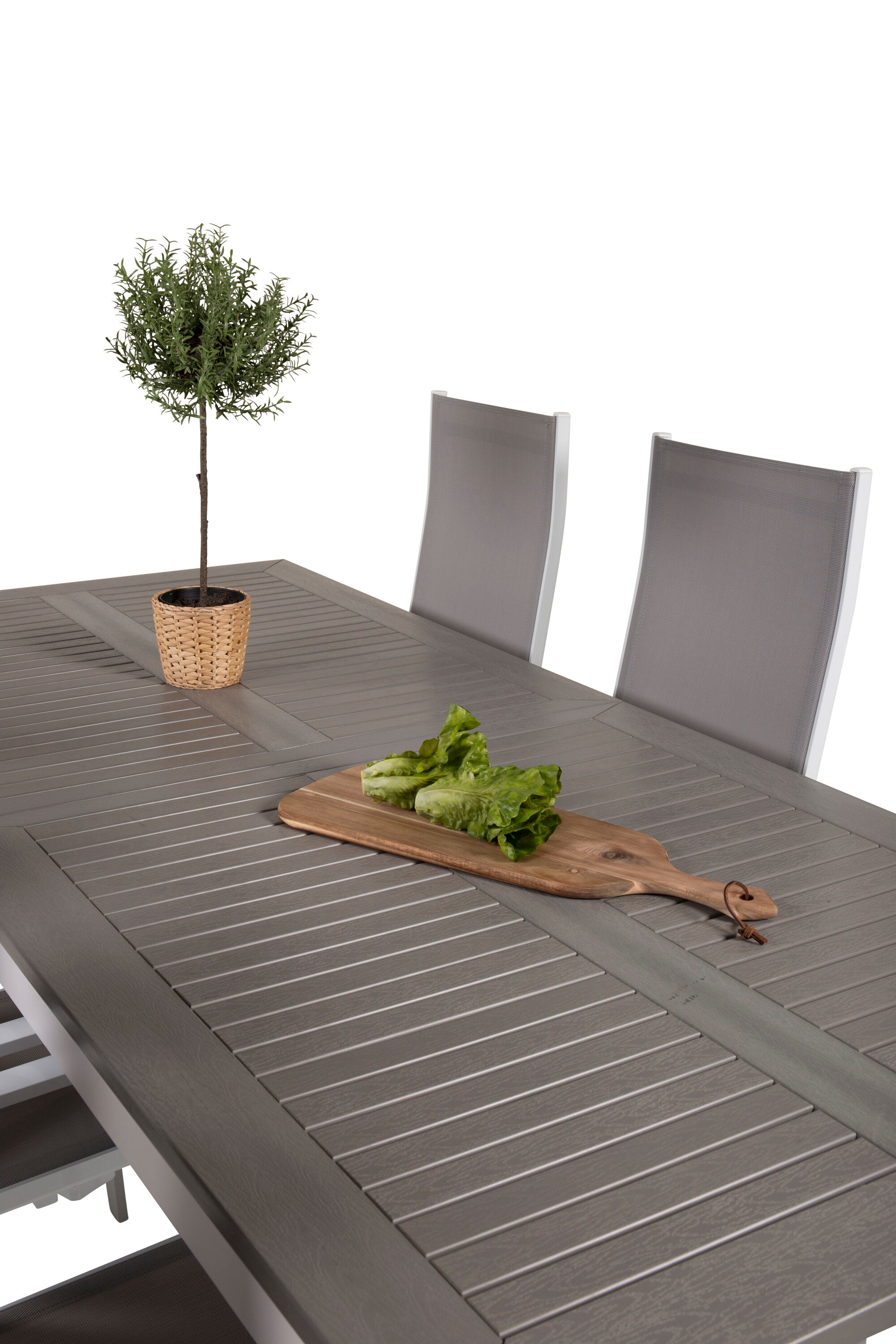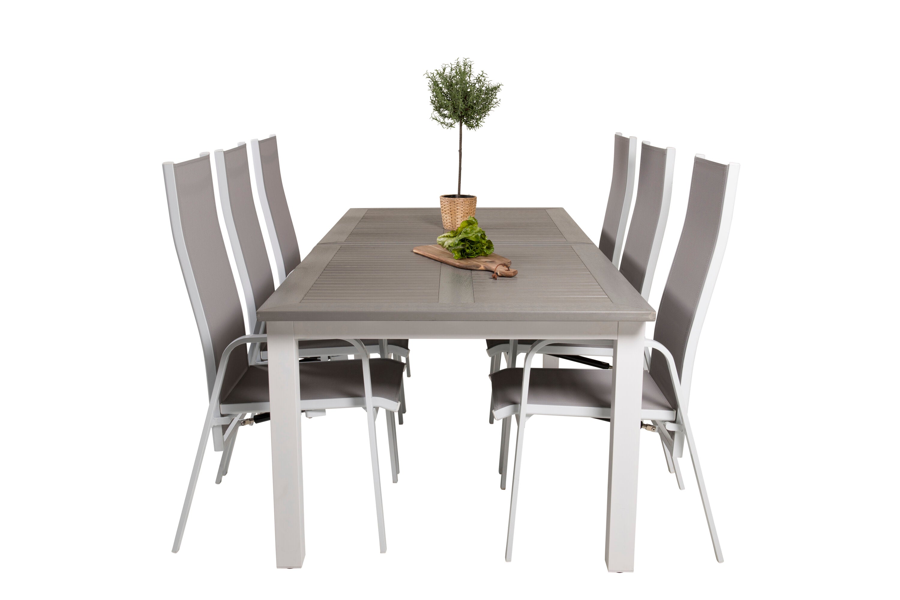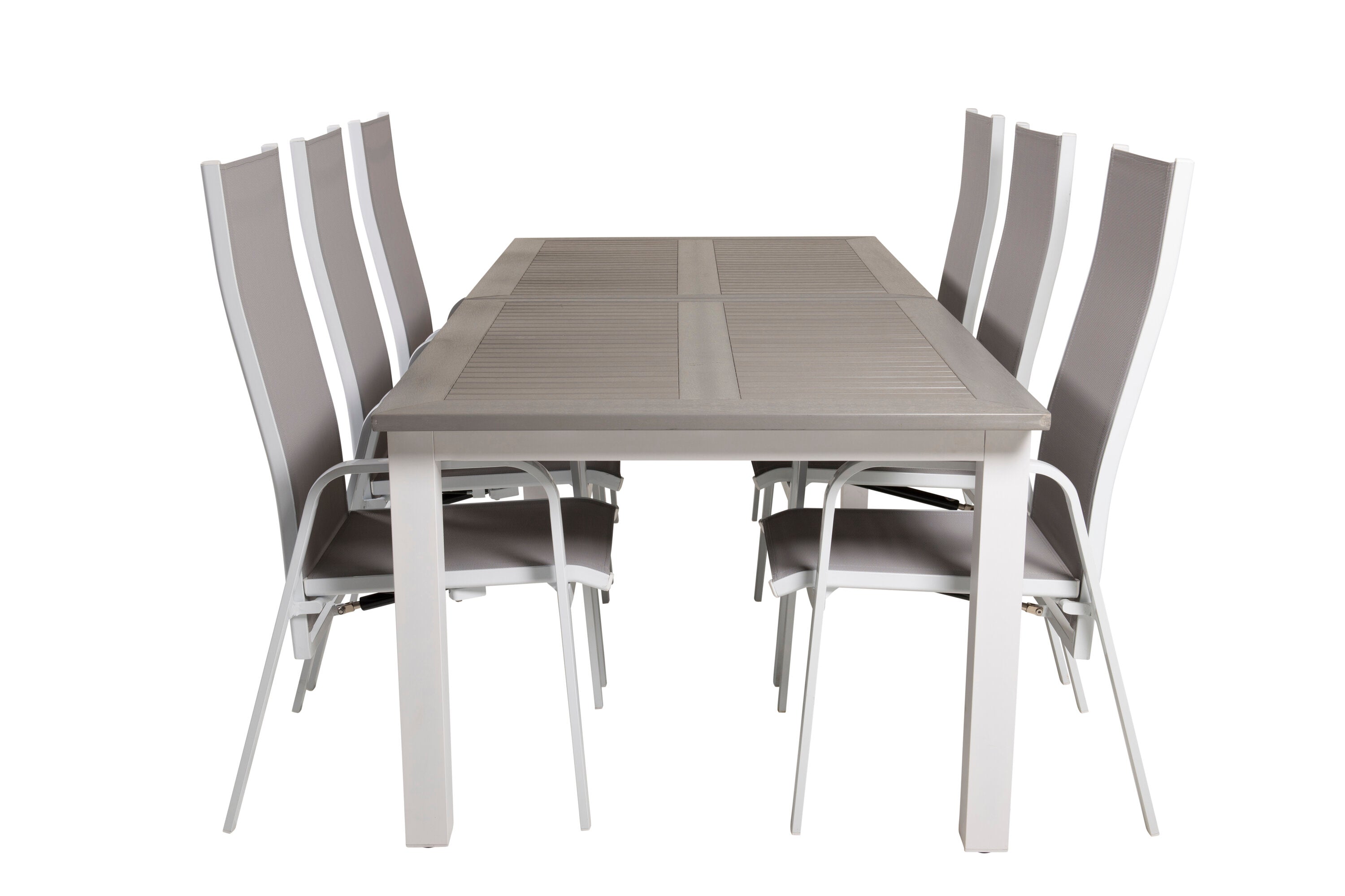 Jídelní stůl Albany 224/324*100 - Bílá Alu / Šedá Aintwood+Copacabana Polohovací křeslo (stohovatelné) - Bílá Alu / Šedá Textilene_6