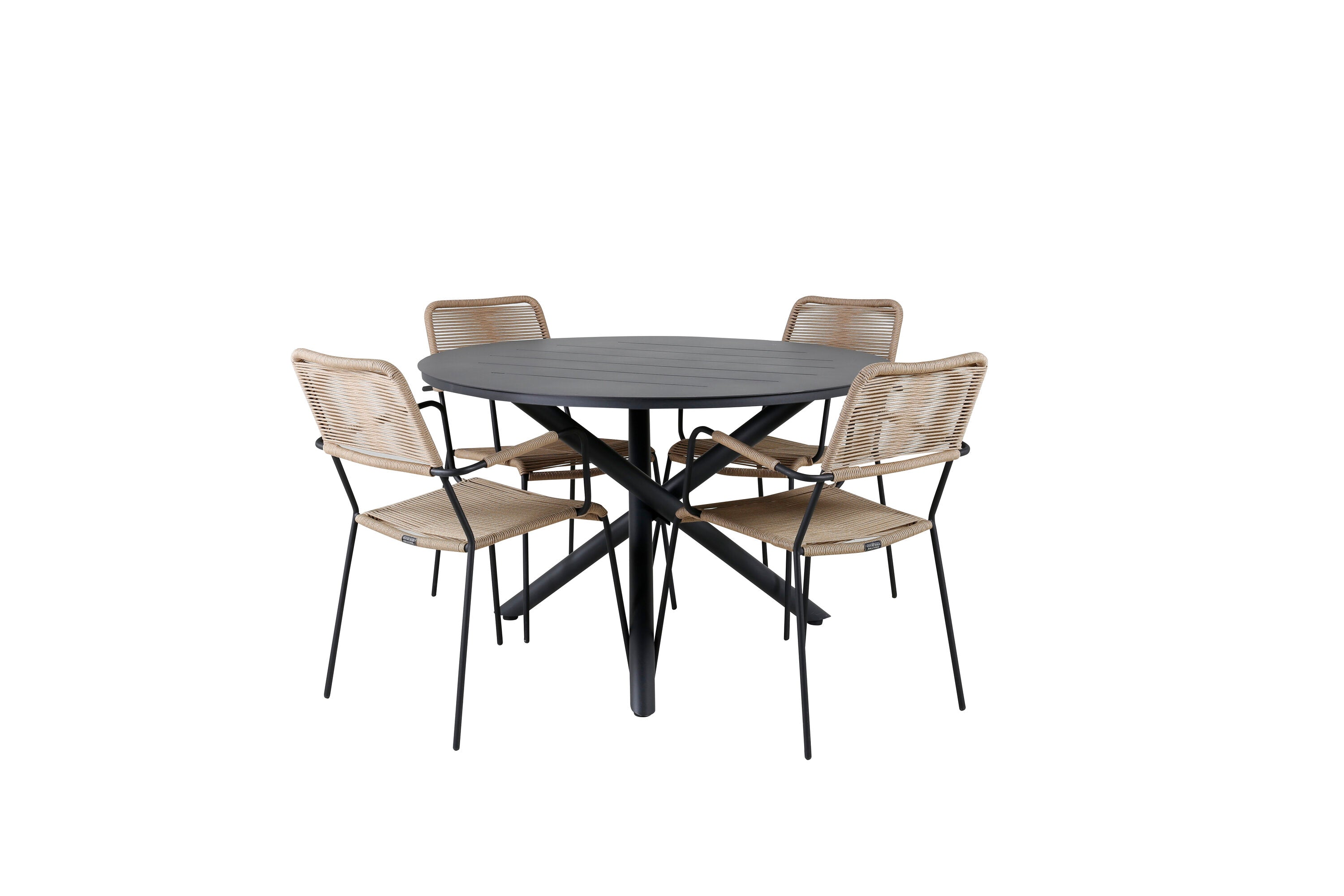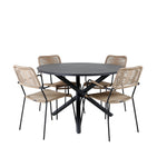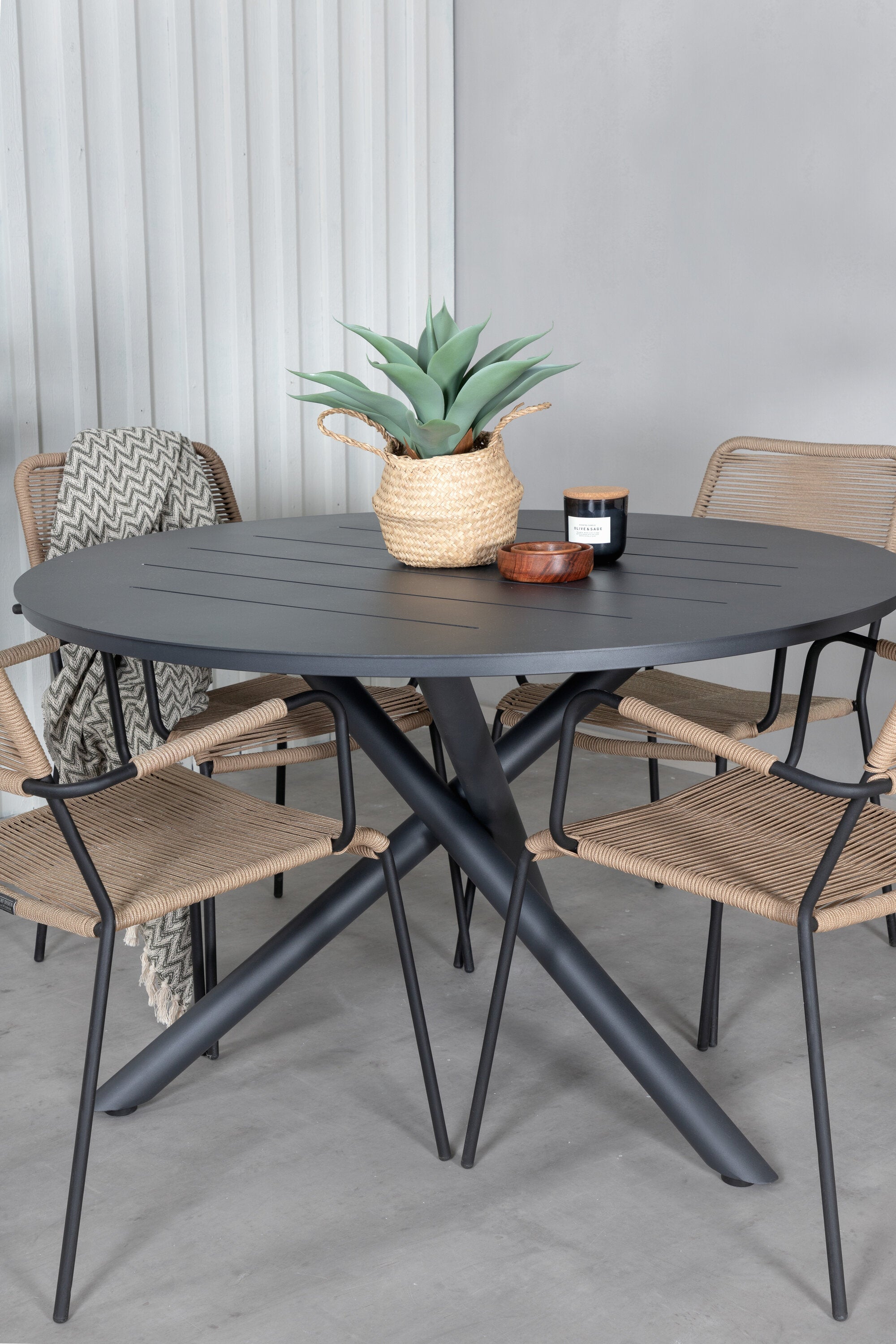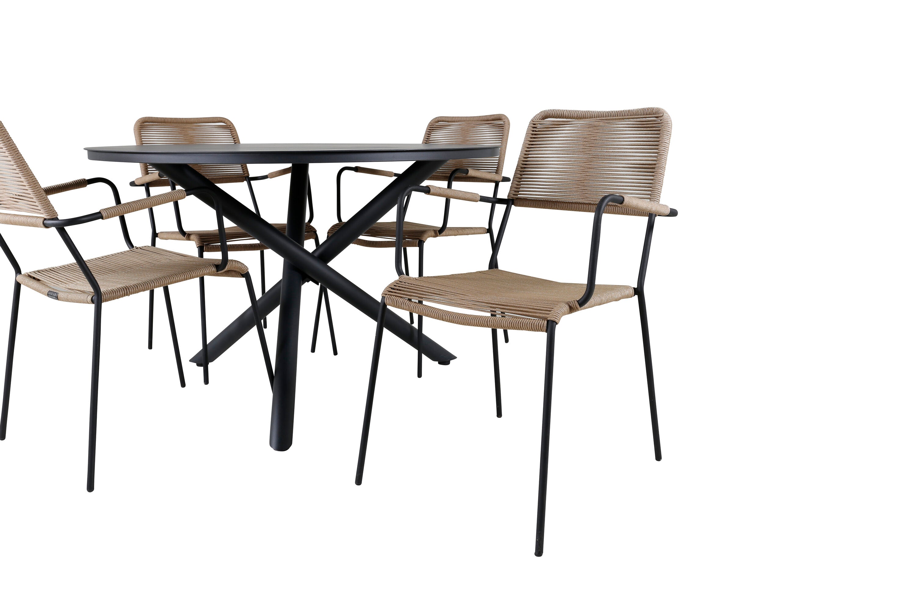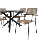 Jídelní stůl Alma - Black Alu - ø120cm+Lindos - Křeslo - Black Alu / Latte Rope_4