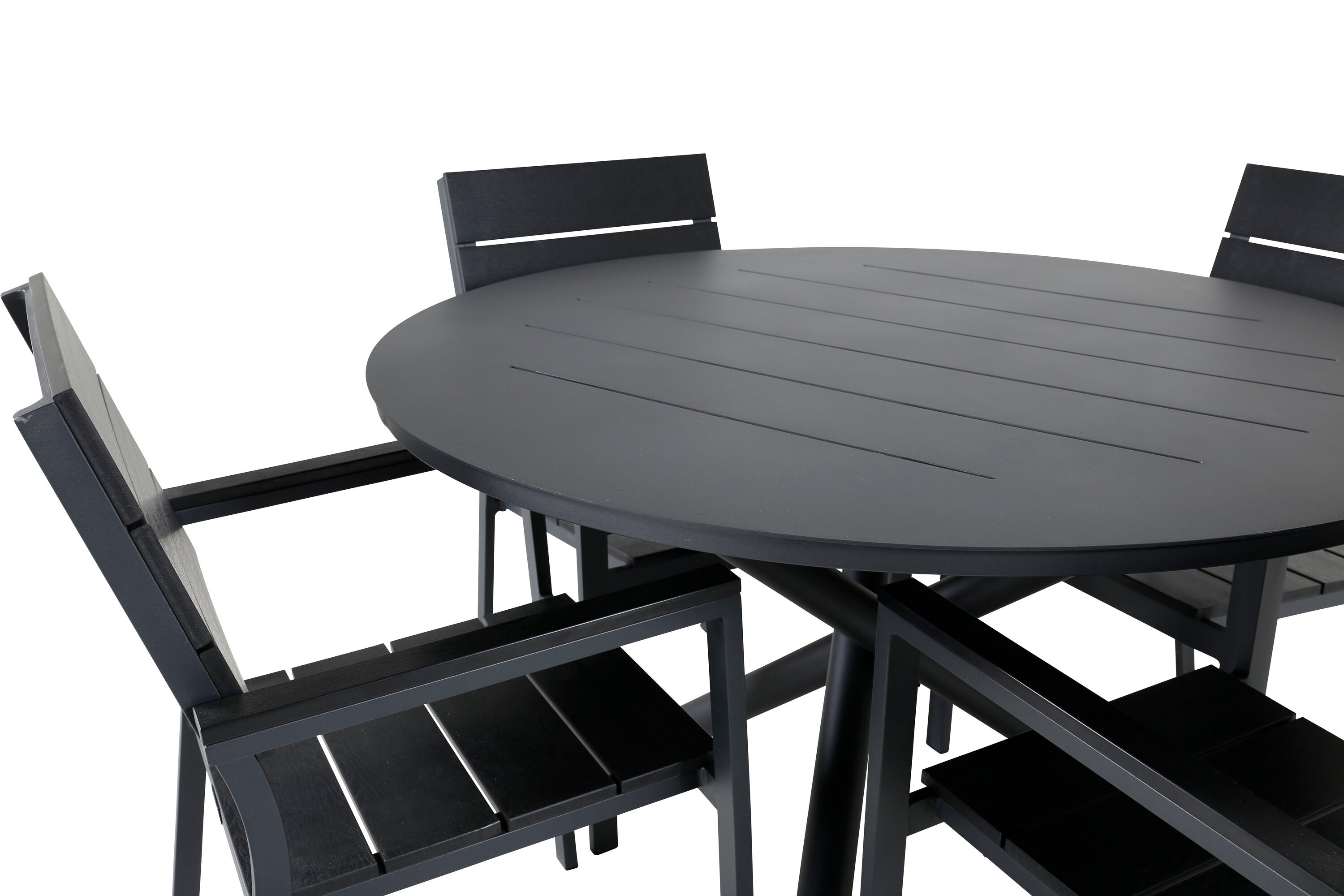 Jídelní stůl Alma - černý Alu - ø120cm + židle na výšku (stohovatelné) - Black Alu / Black Aintwood_4