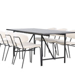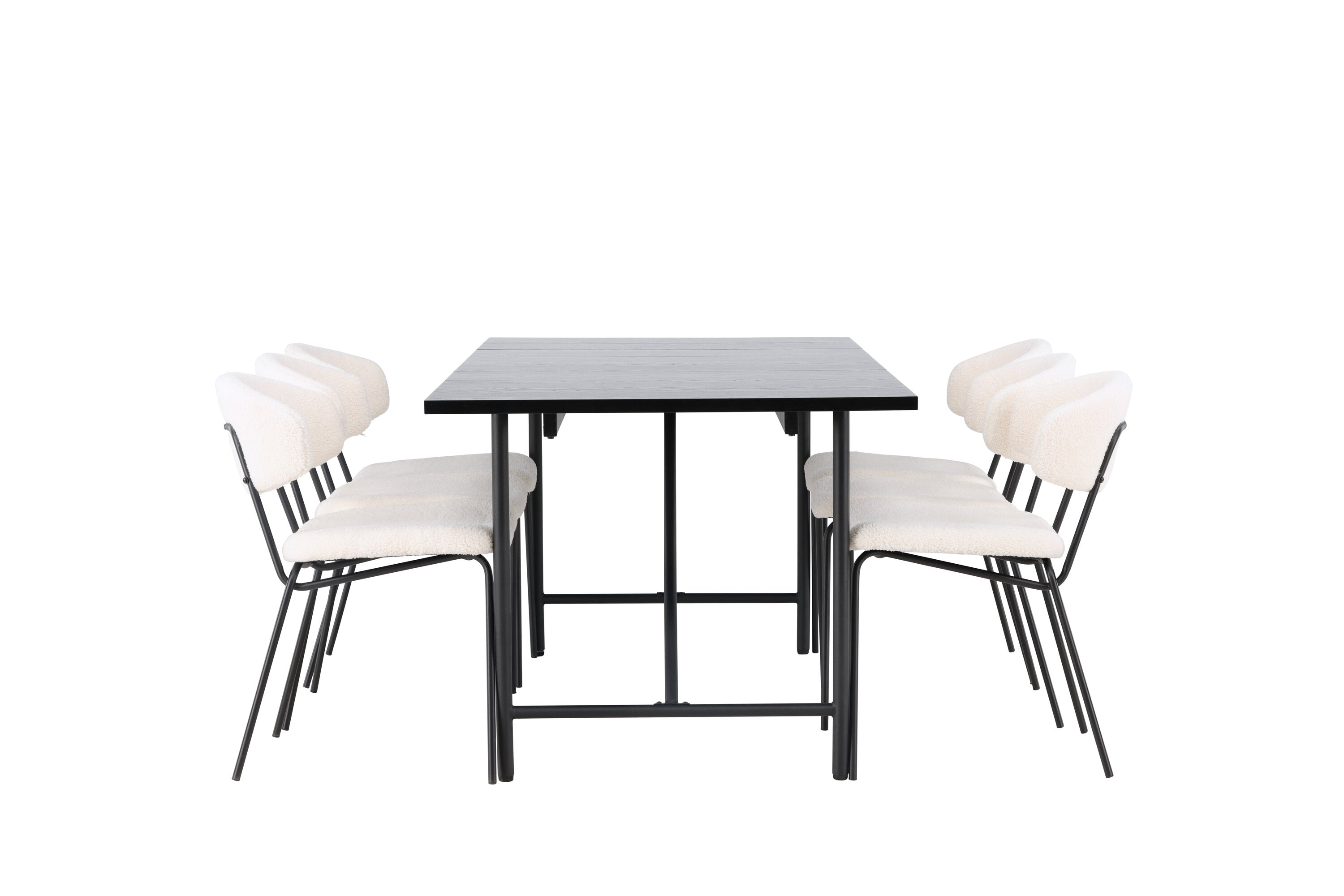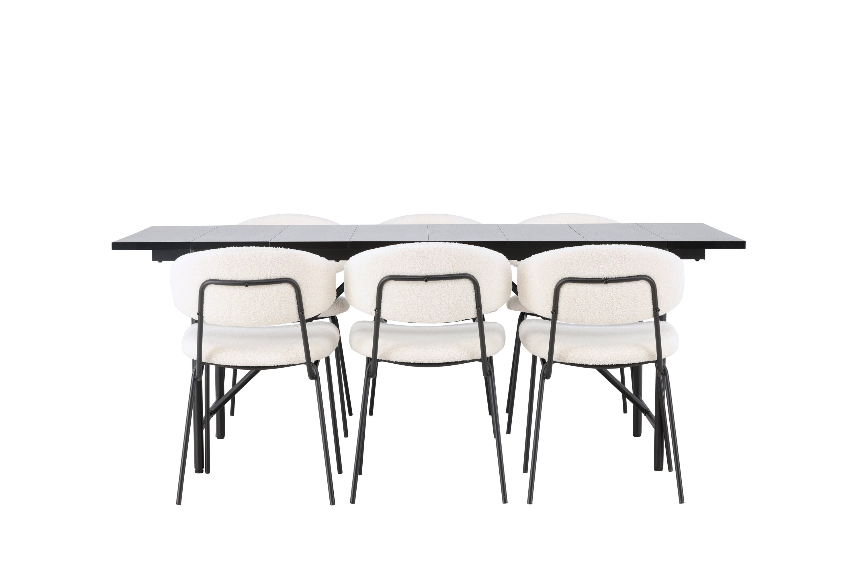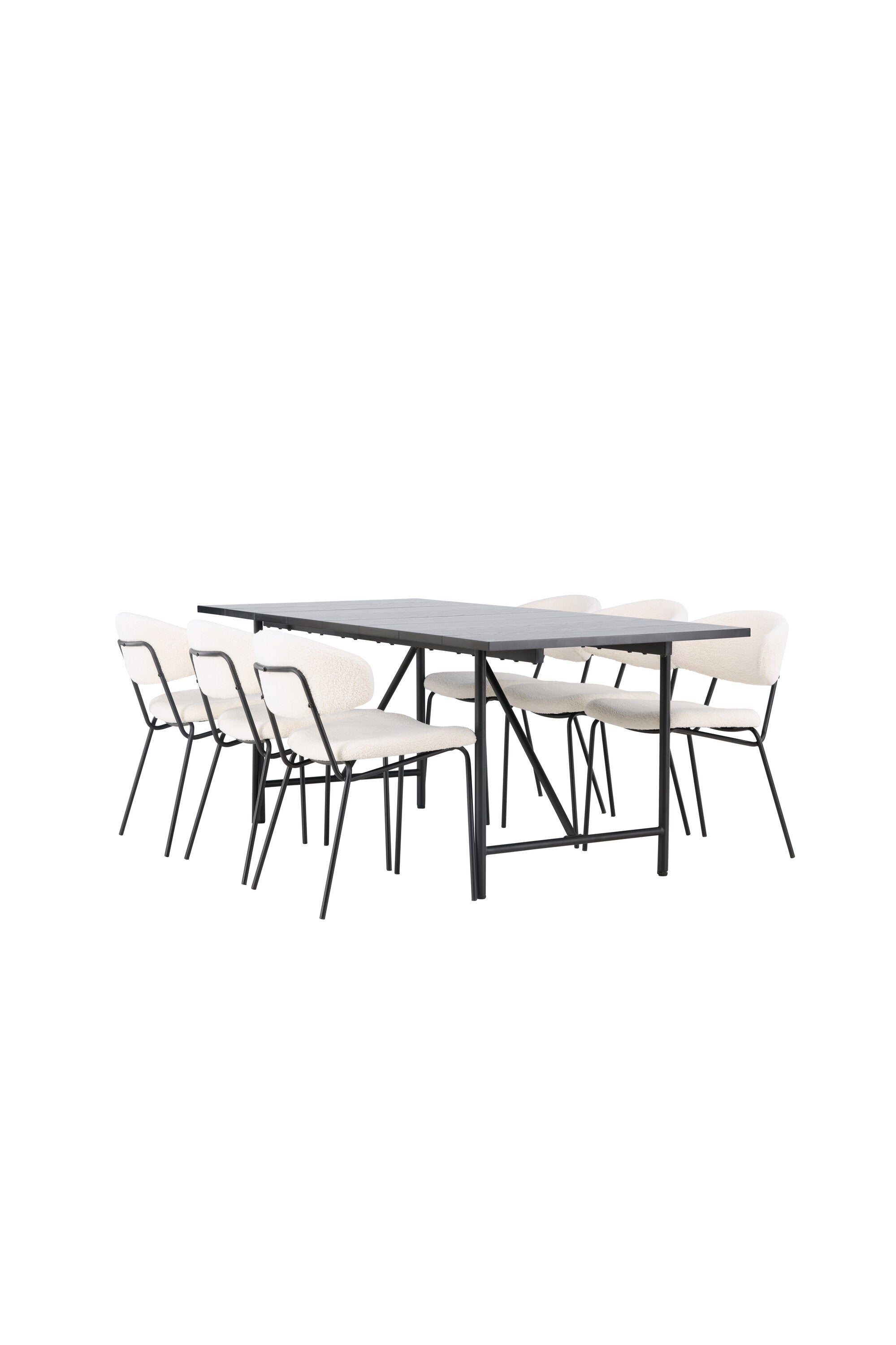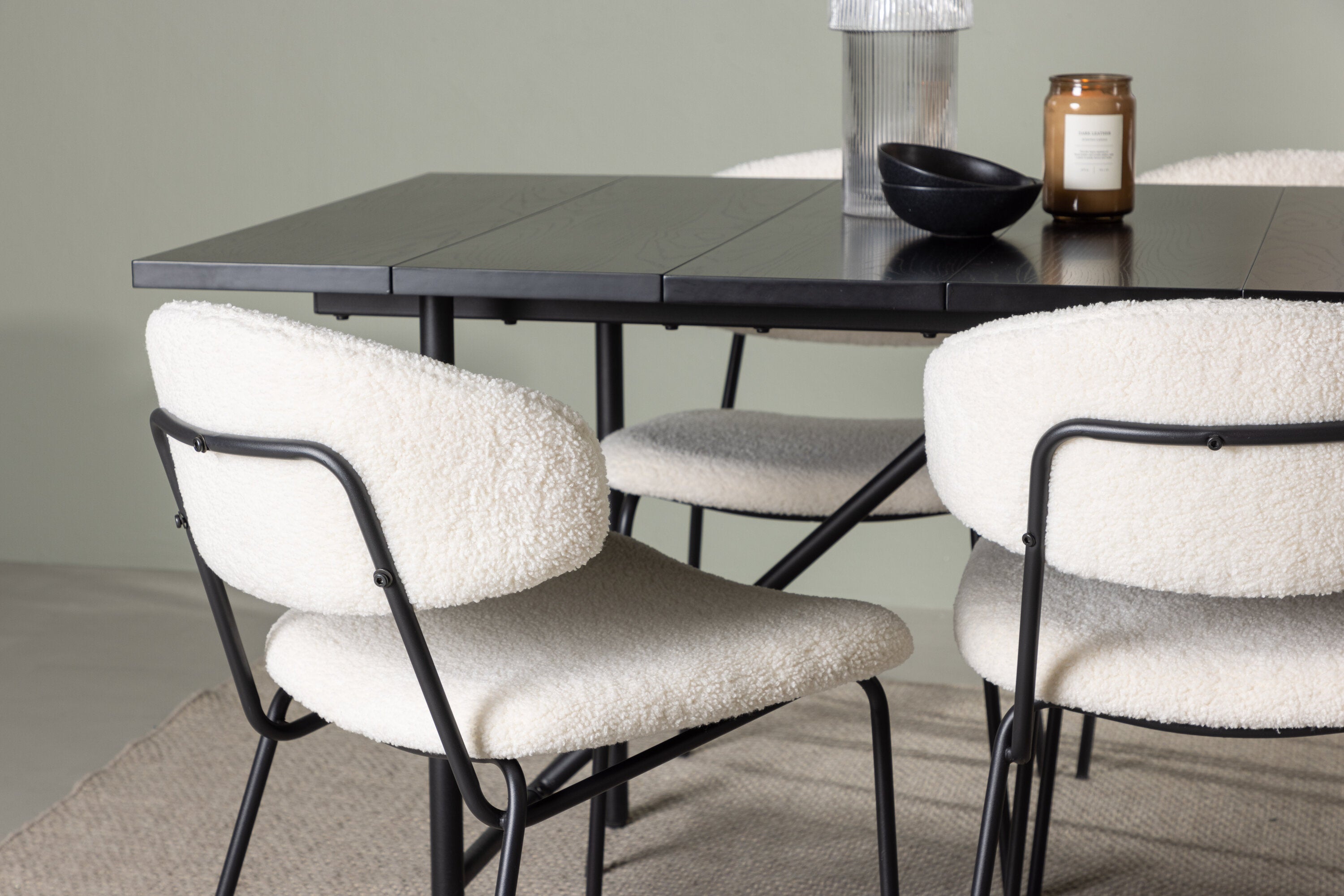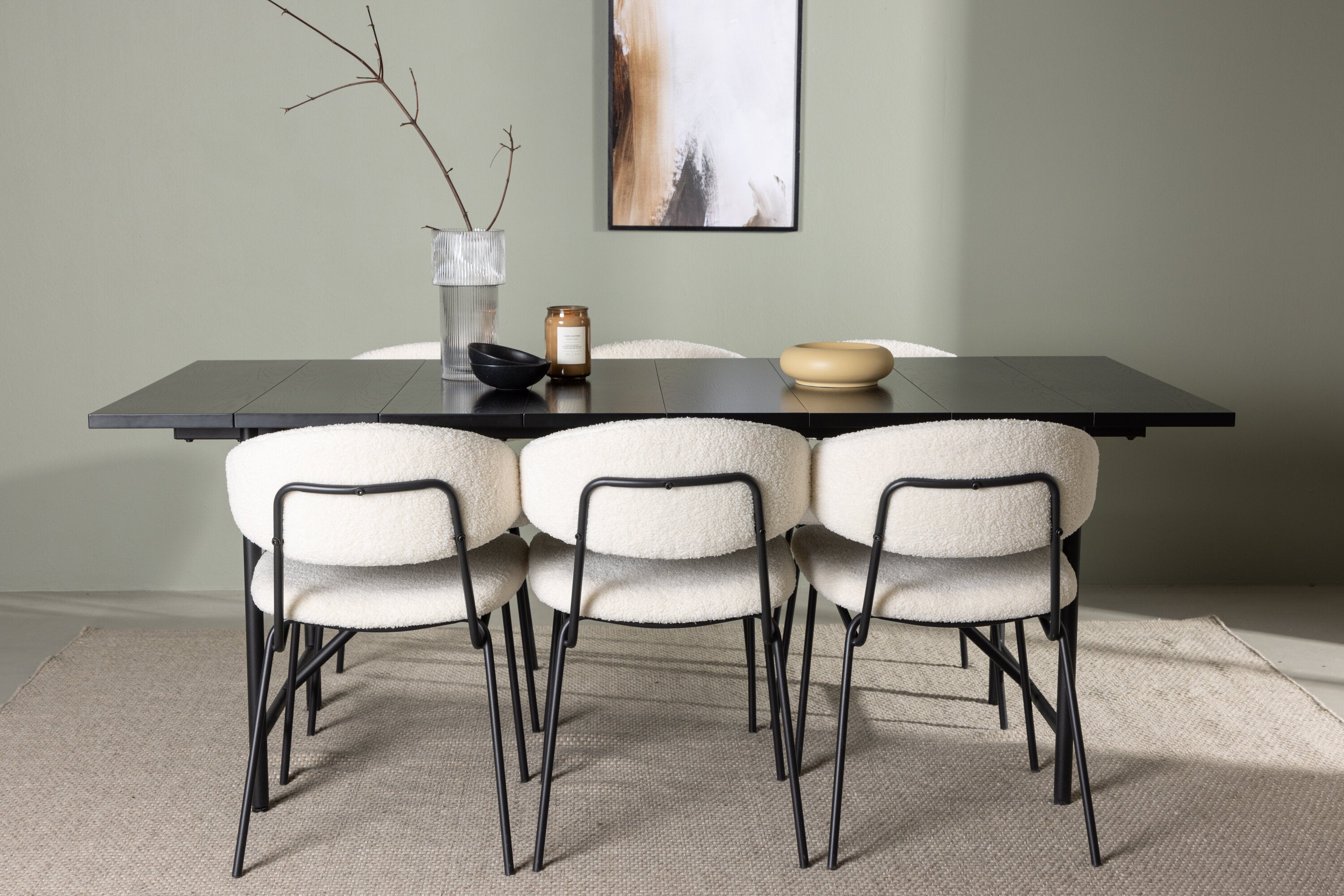 Jídelní stůl Astrid 200*75 - Matná černá / Matná černá MDF s dýhou +Chico Jídelní židle - Černá / Bílá Boucle _6
