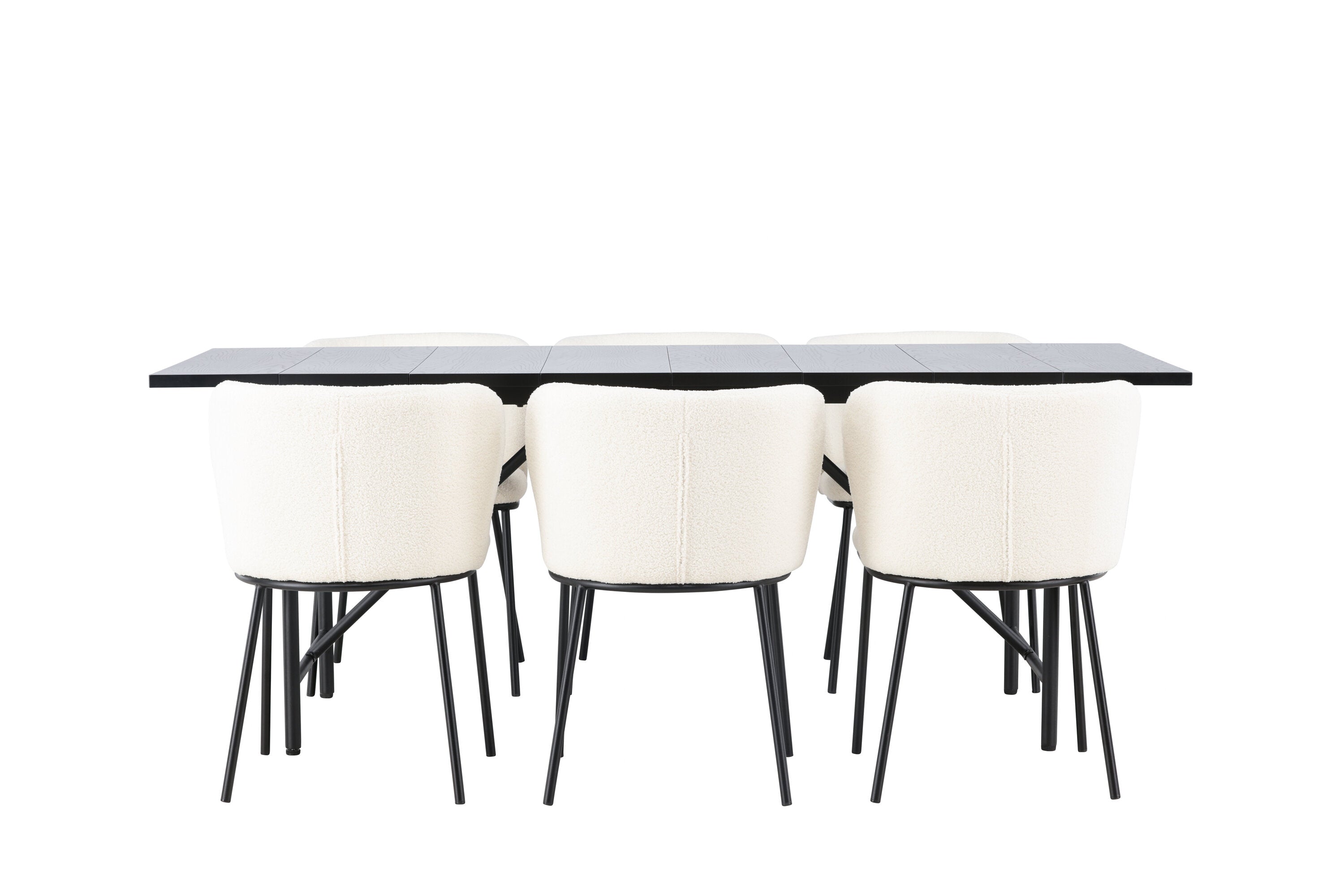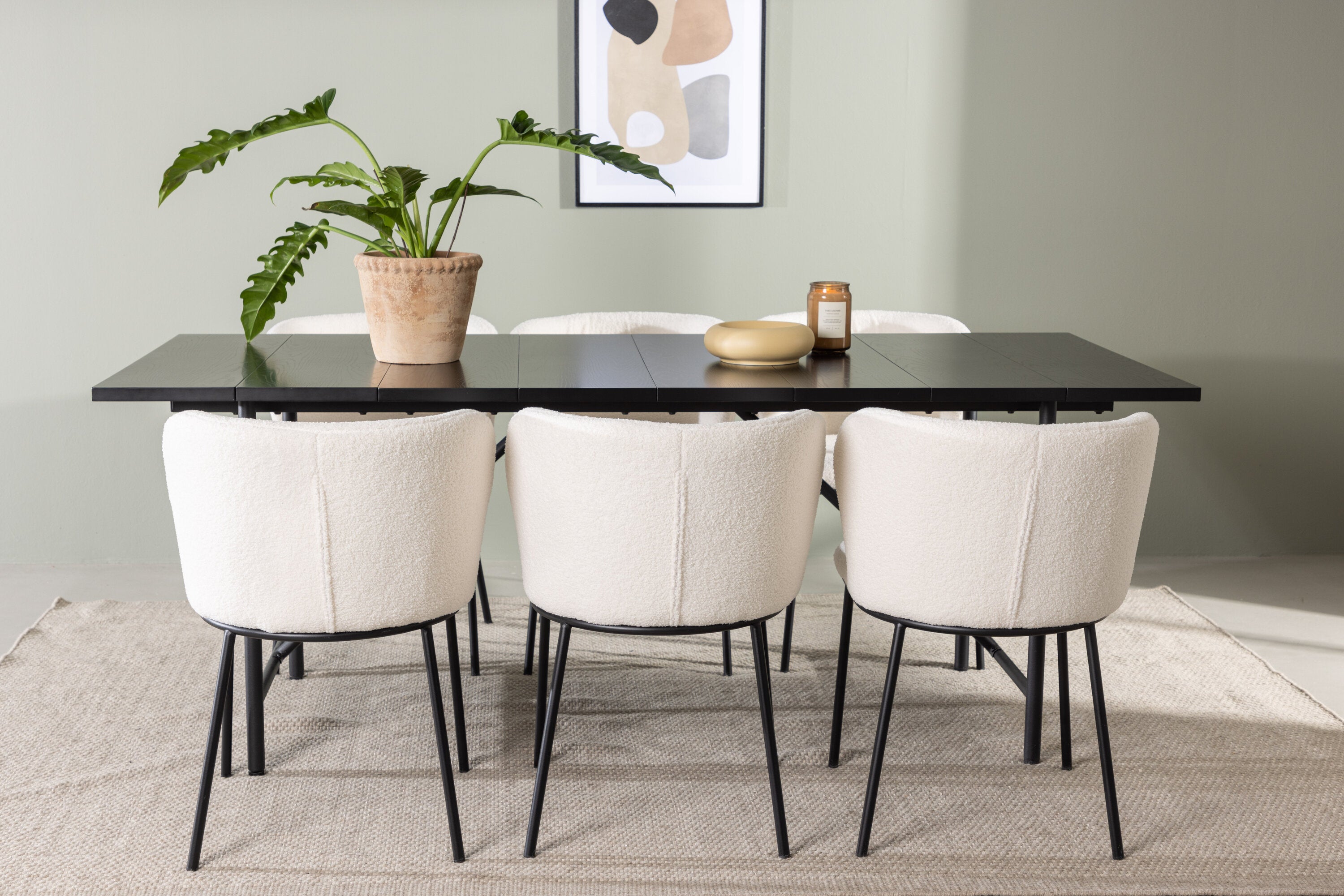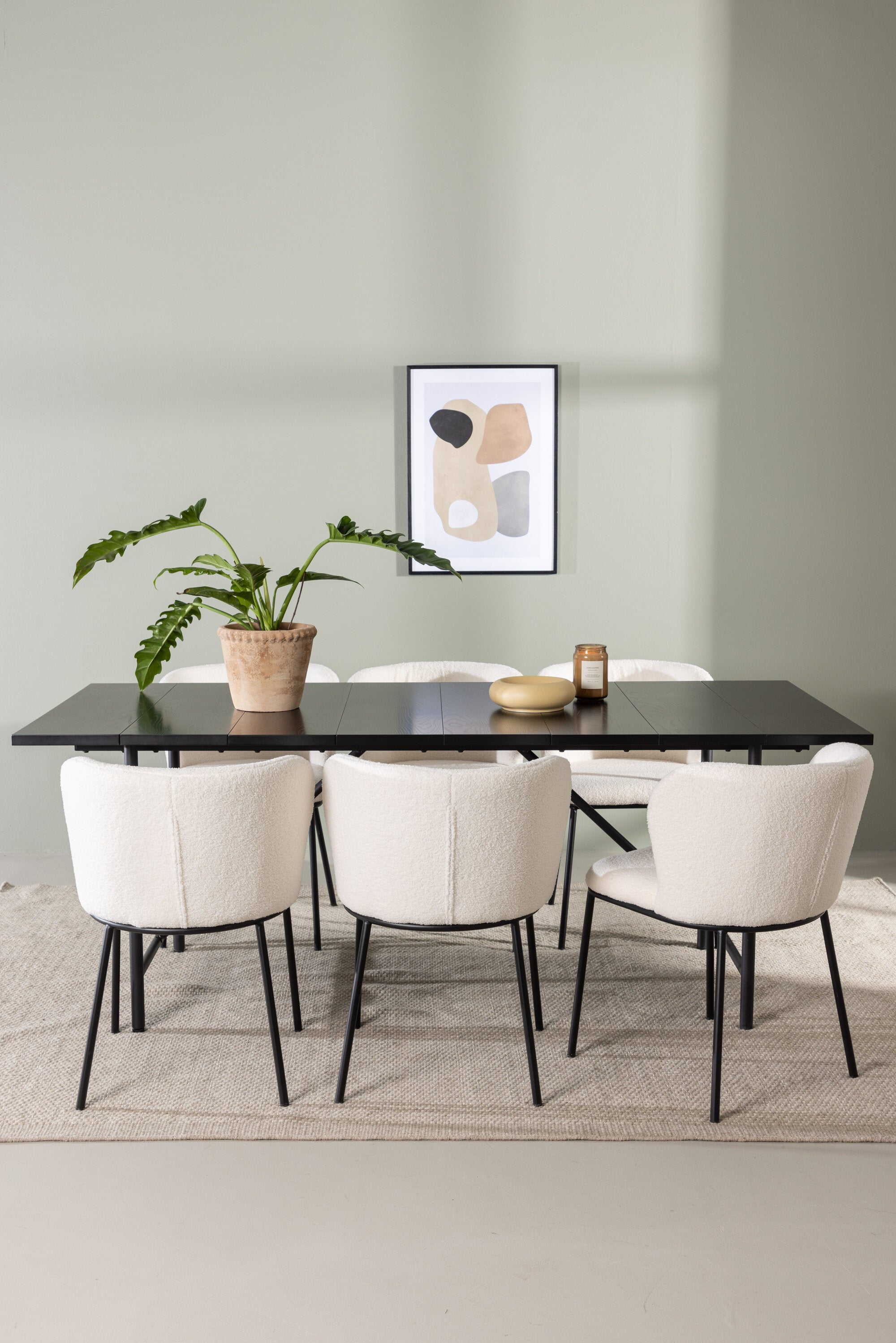 Jídelní stůl Astrid 200*75 - Matná černá / Matná černá MDF s dýhou + Jídelní židle Edina - Černá / Bílá Boucle _6