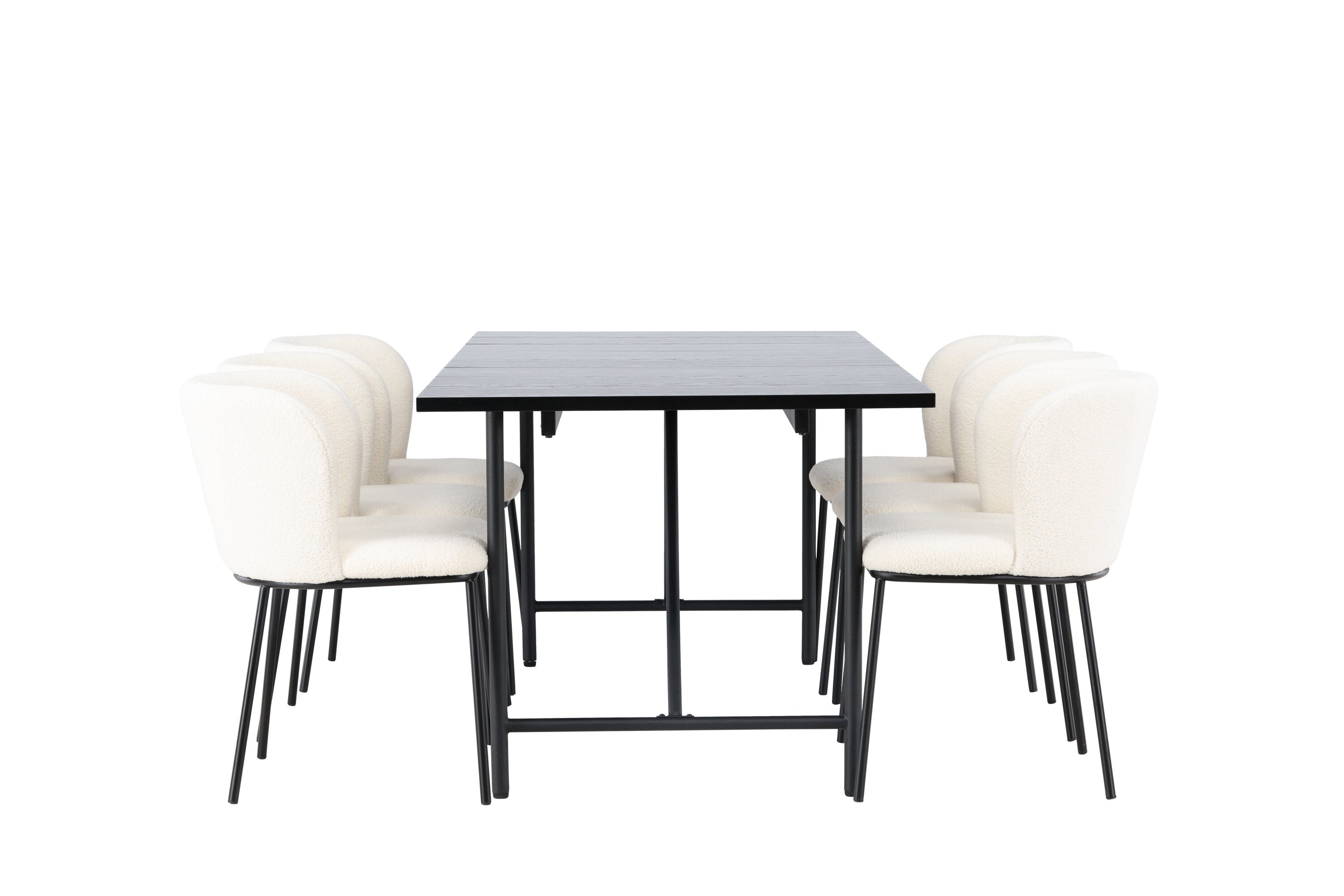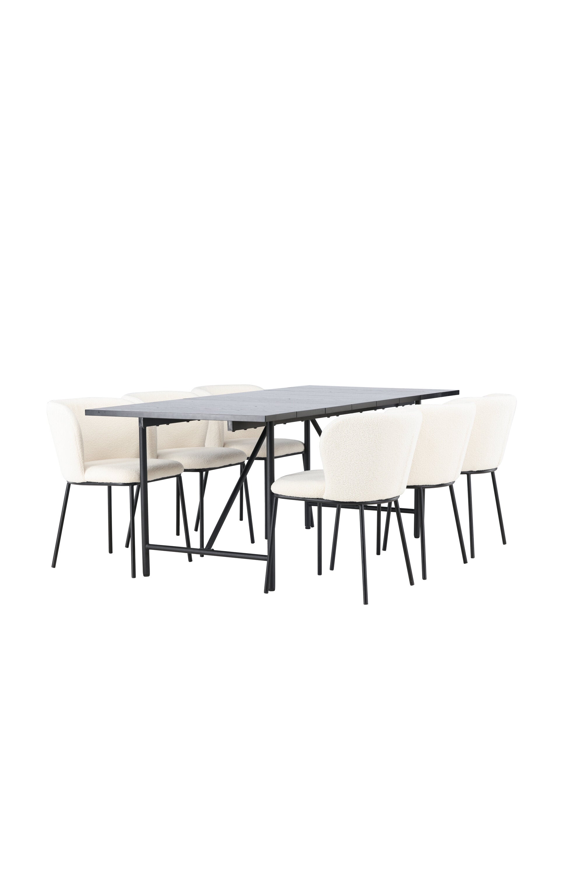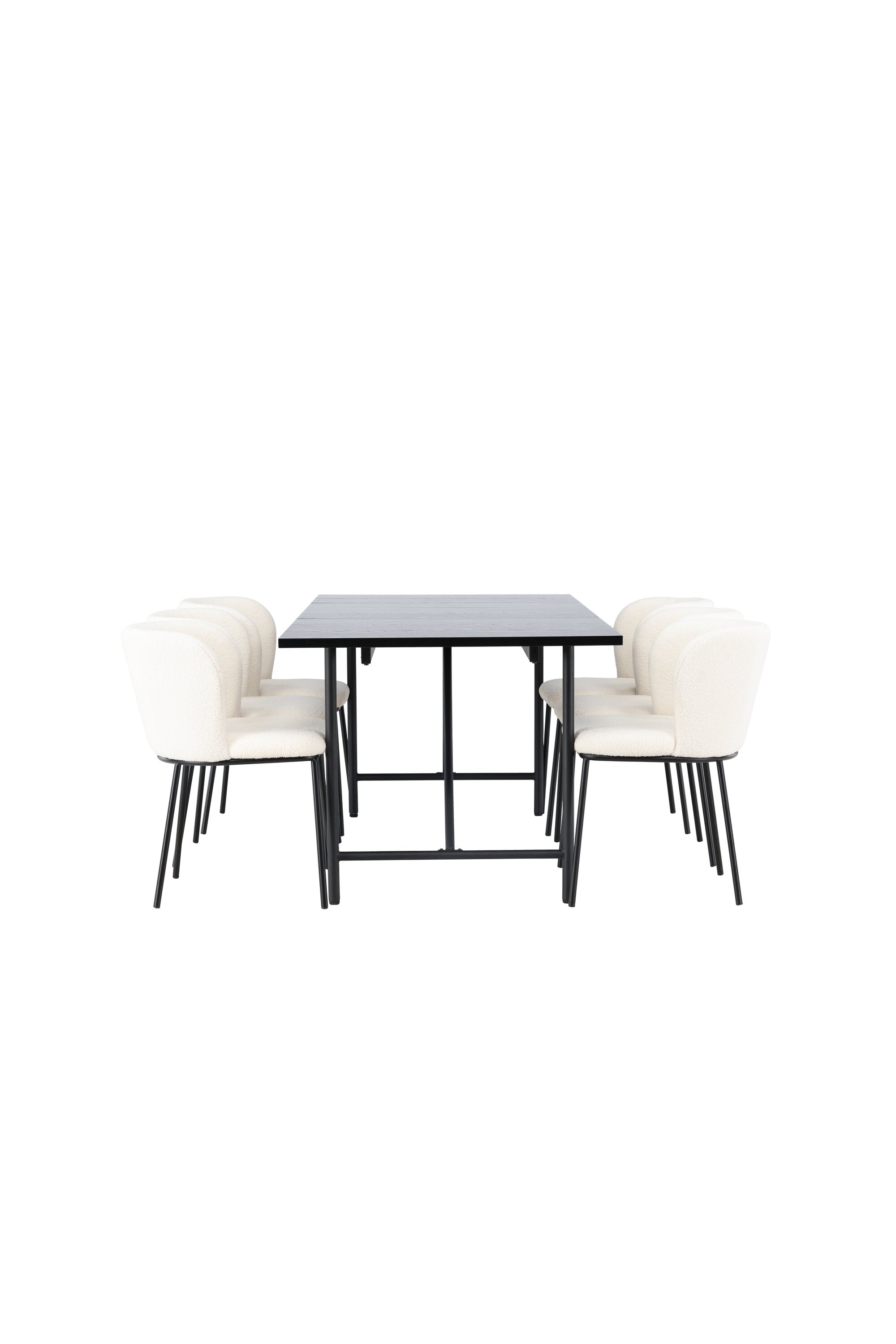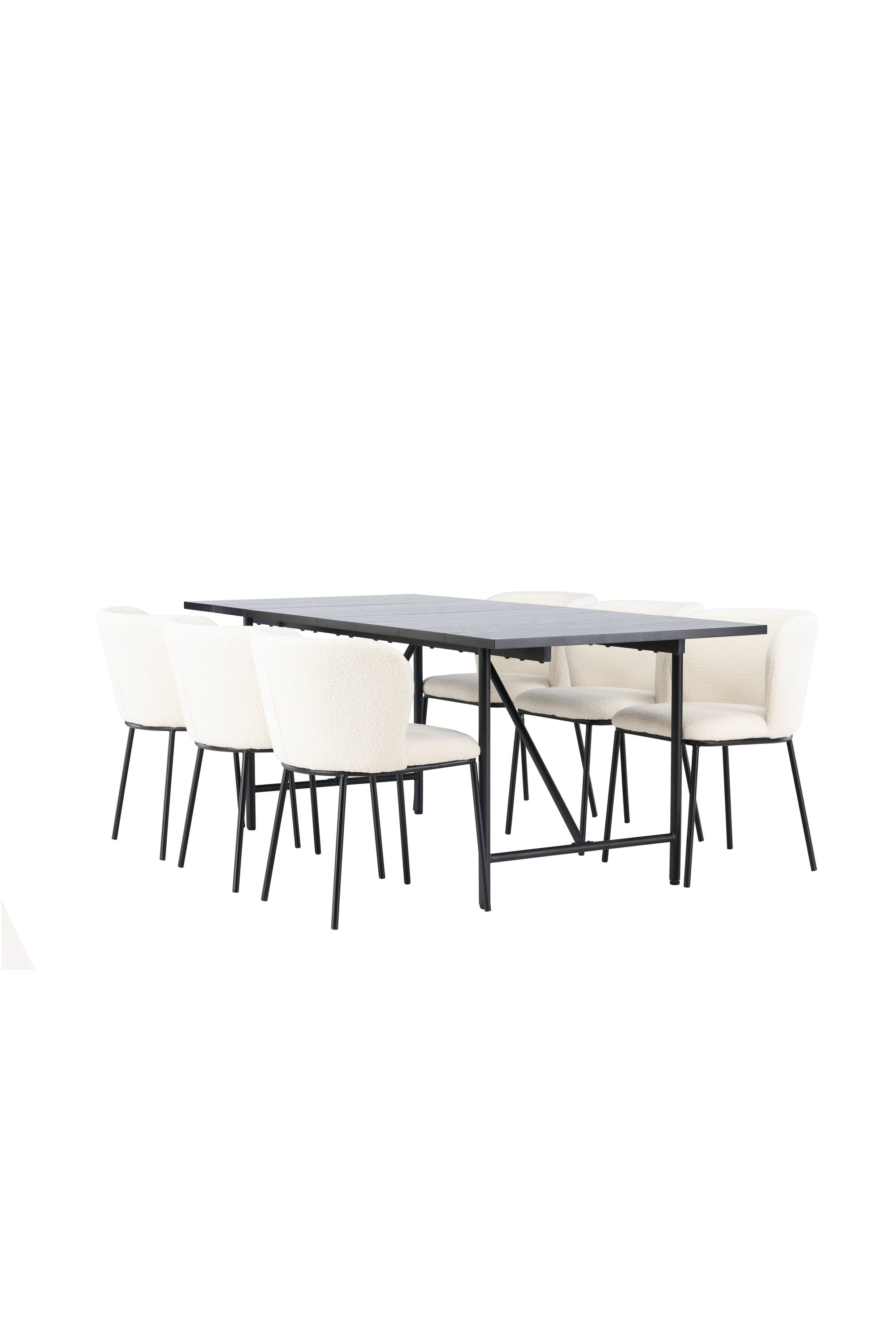 Jídelní stůl Astrid 200*75 - Matná černá / Matná černá MDF s dýhou + Jídelní židle Edina - Černá / Bílá Boucle _6