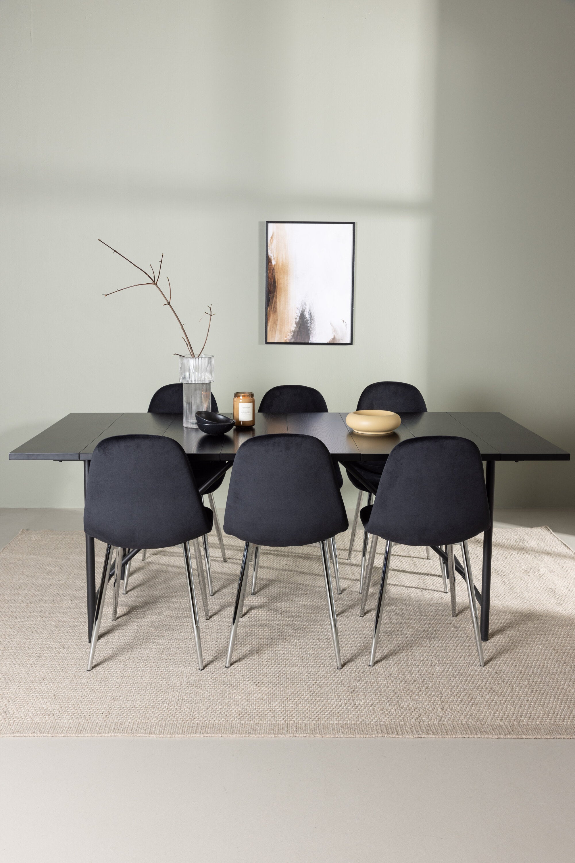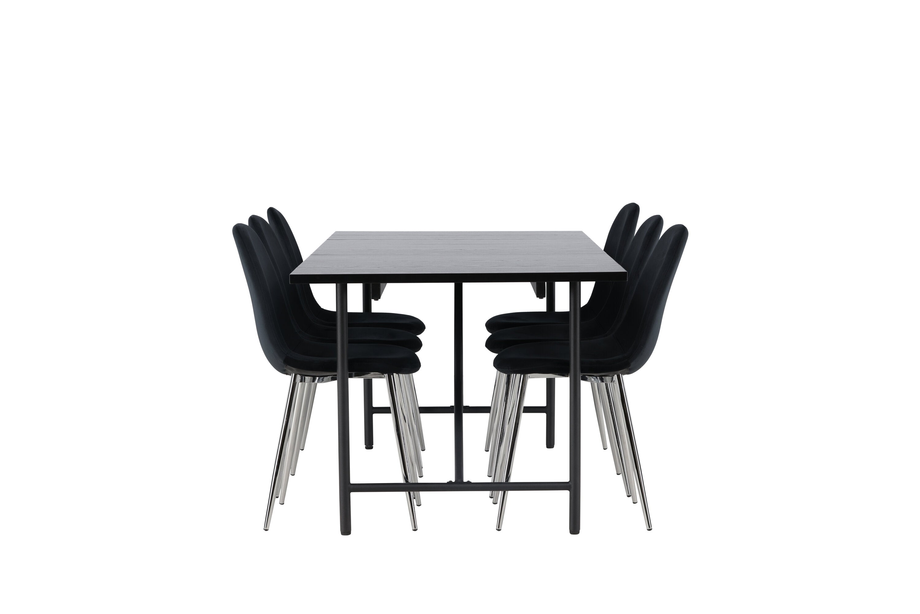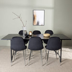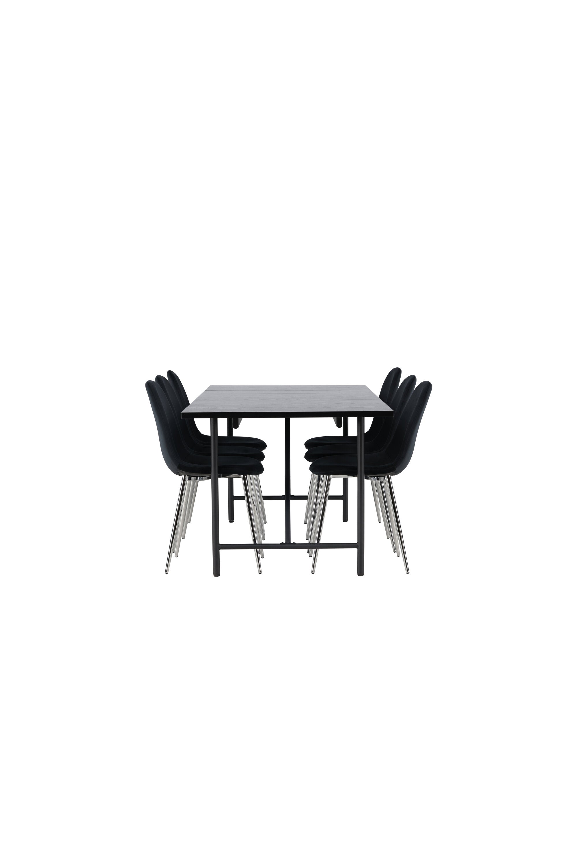 Vítejte ve světě stylu a pohodlí s touto moderní jídelní soupravou v černé barvě. S tímto krásným jídelním stolem a luxusními židlemi ze série Polar můžete vylepšit svůj domov způsobem, který udělá dojem na rodinu i přátele!