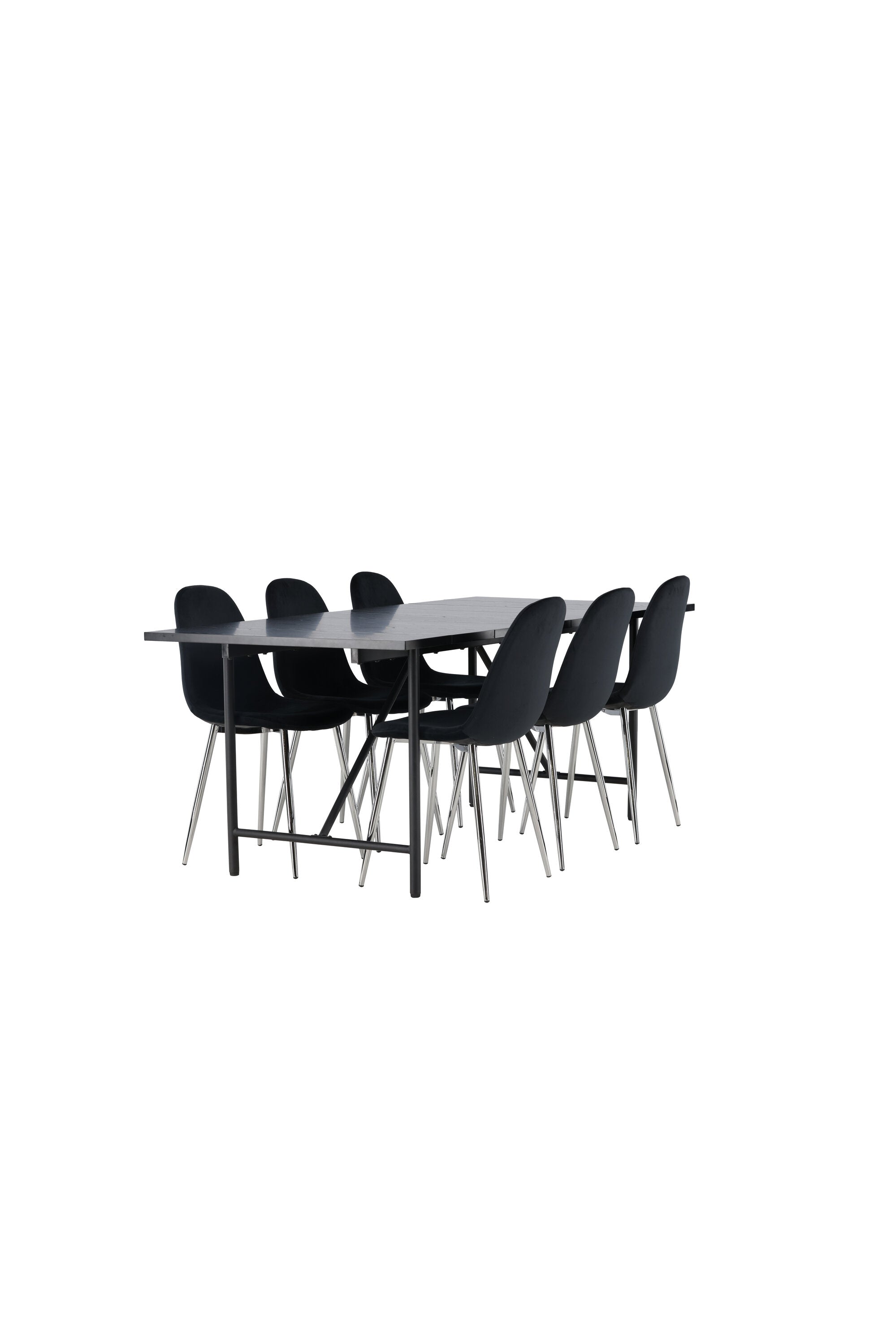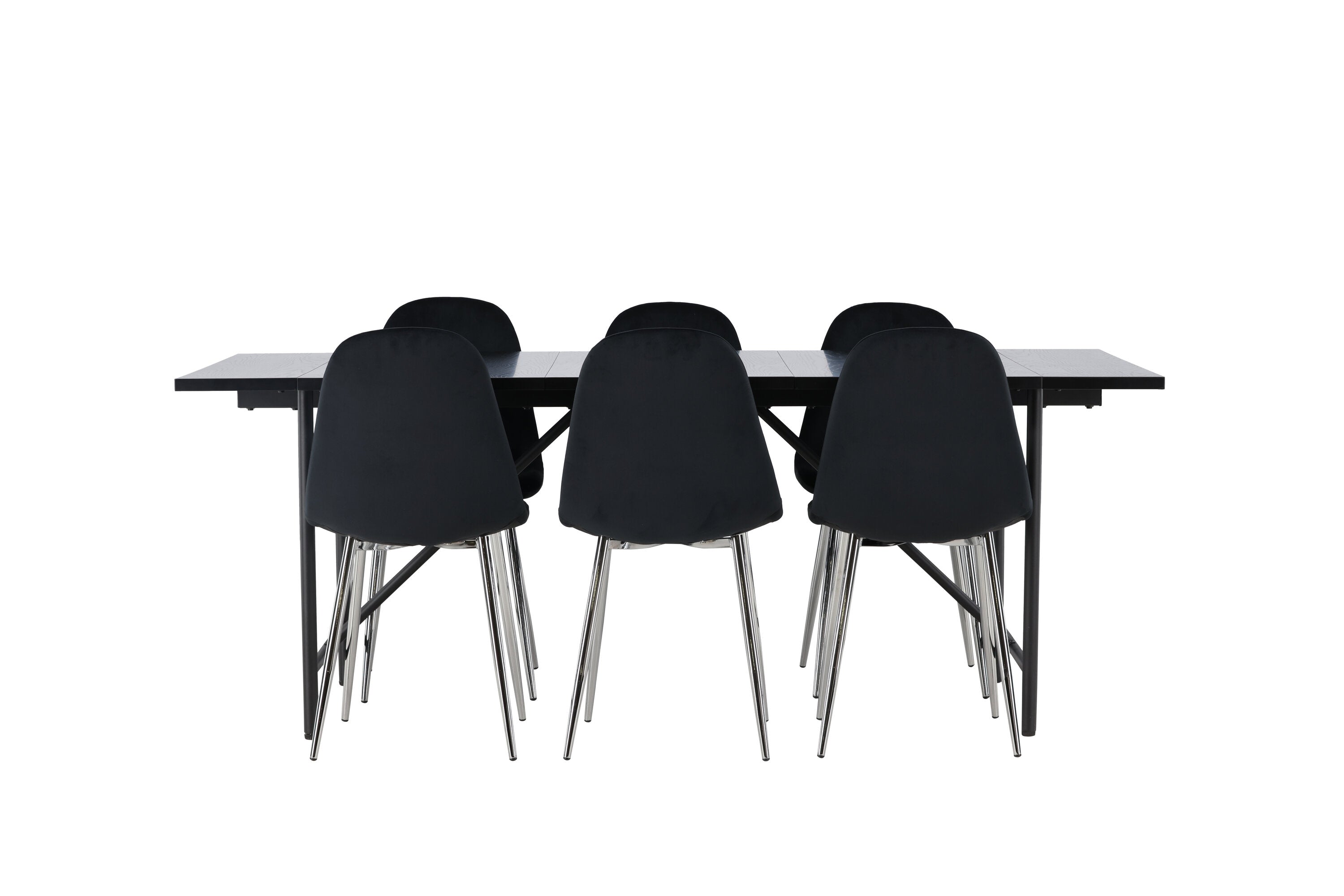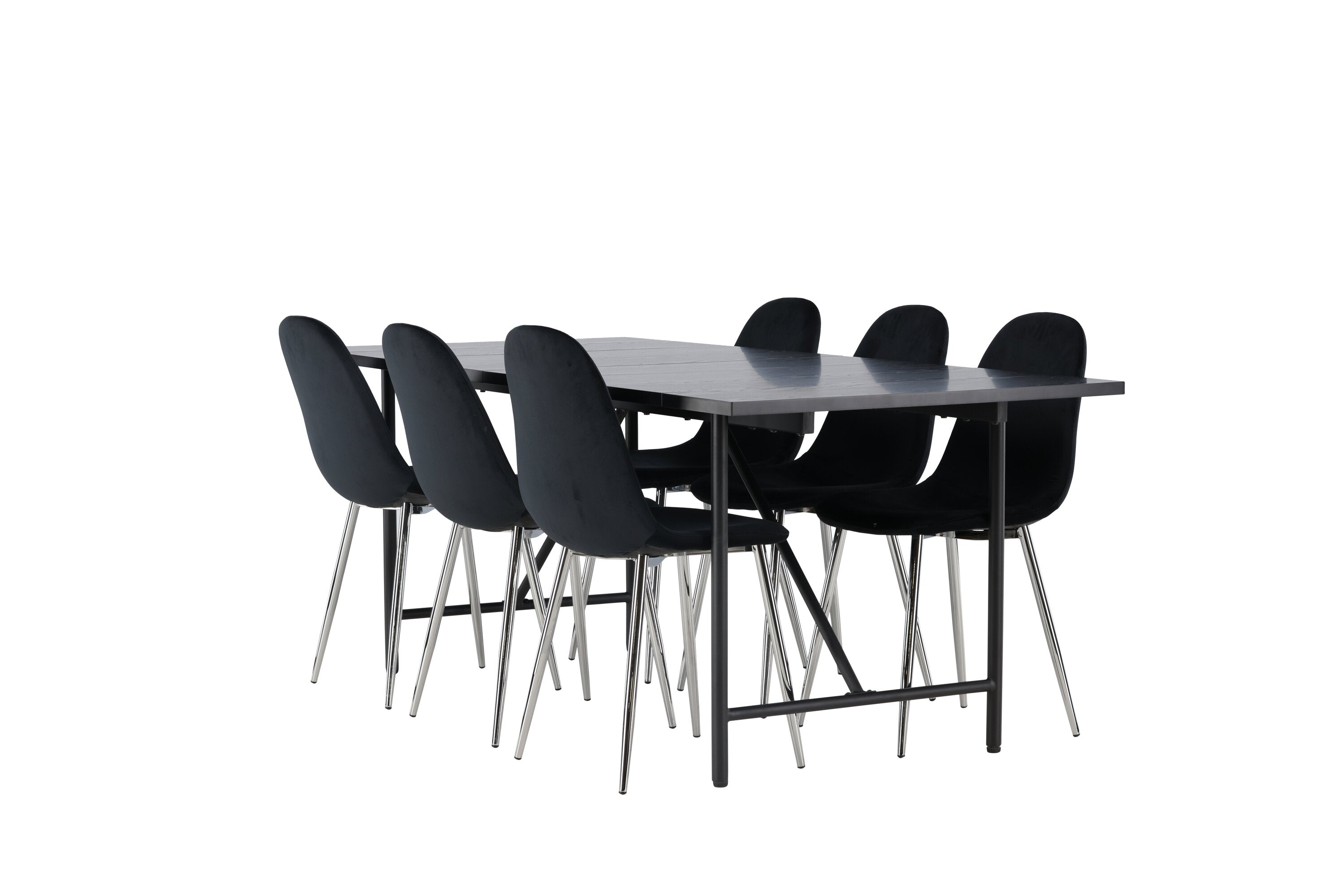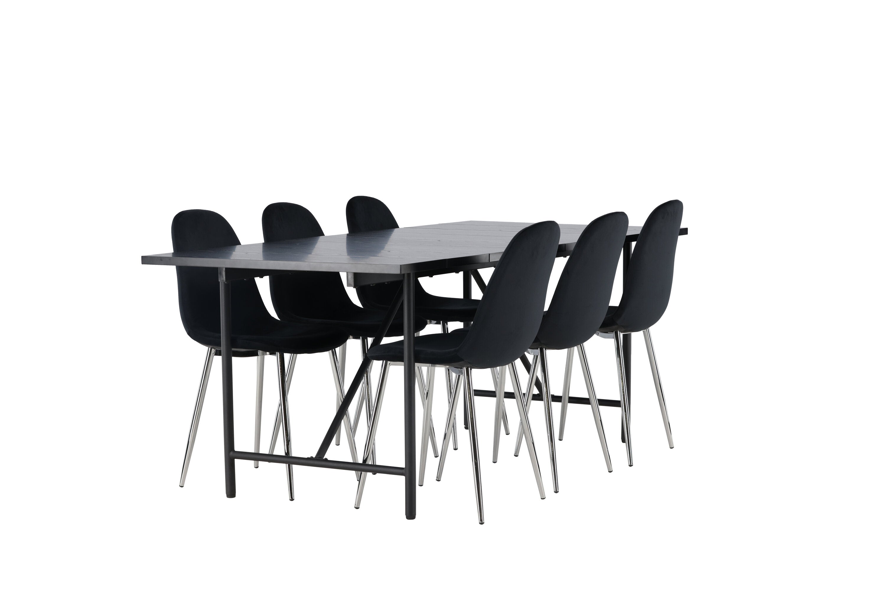 Vítejte ve světě stylu a pohodlí s touto moderní jídelní soupravou v černé barvě. S tímto krásným jídelním stolem a luxusními židlemi ze série Polar můžete vylepšit svůj domov způsobem, který udělá dojem na rodinu i přátele!