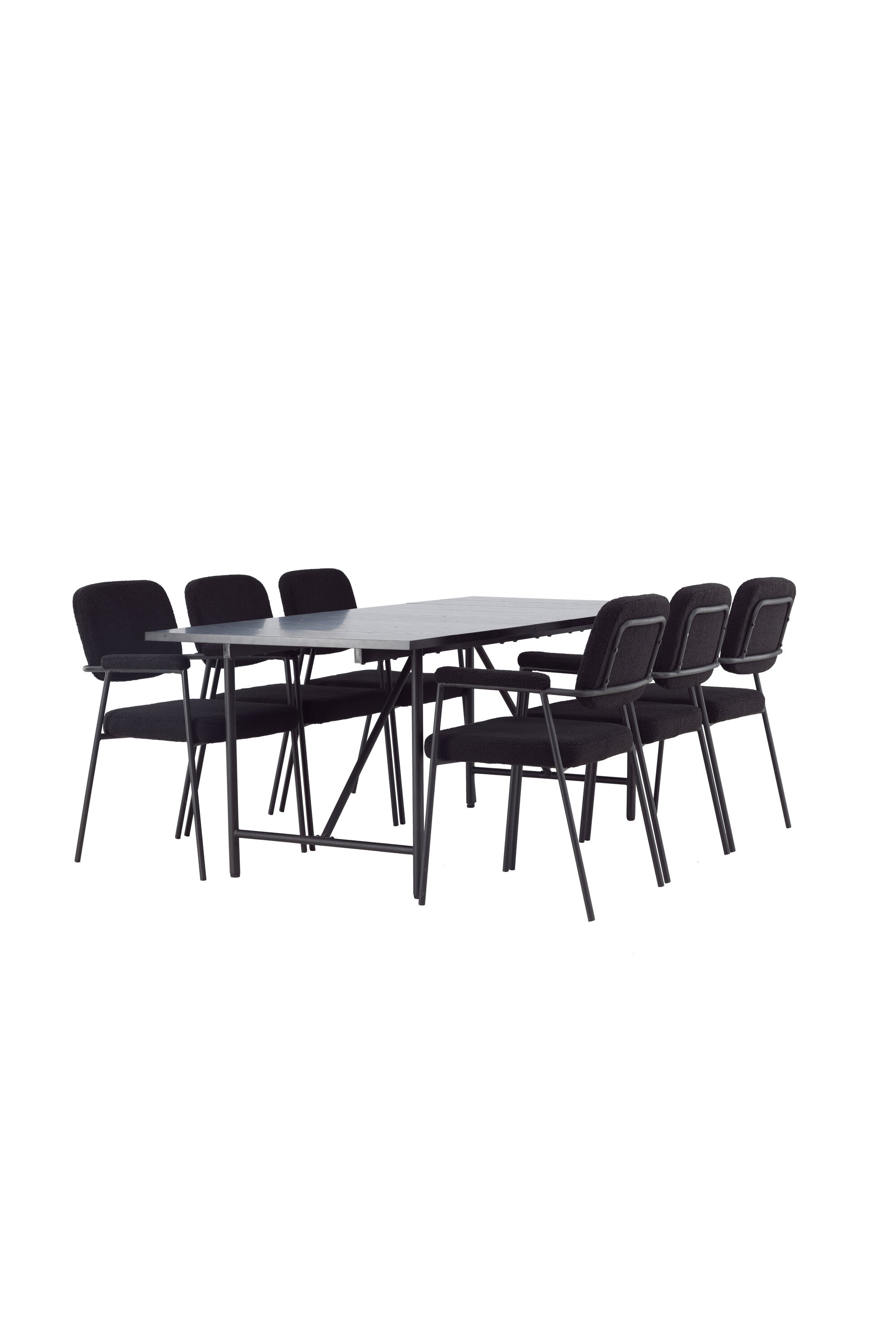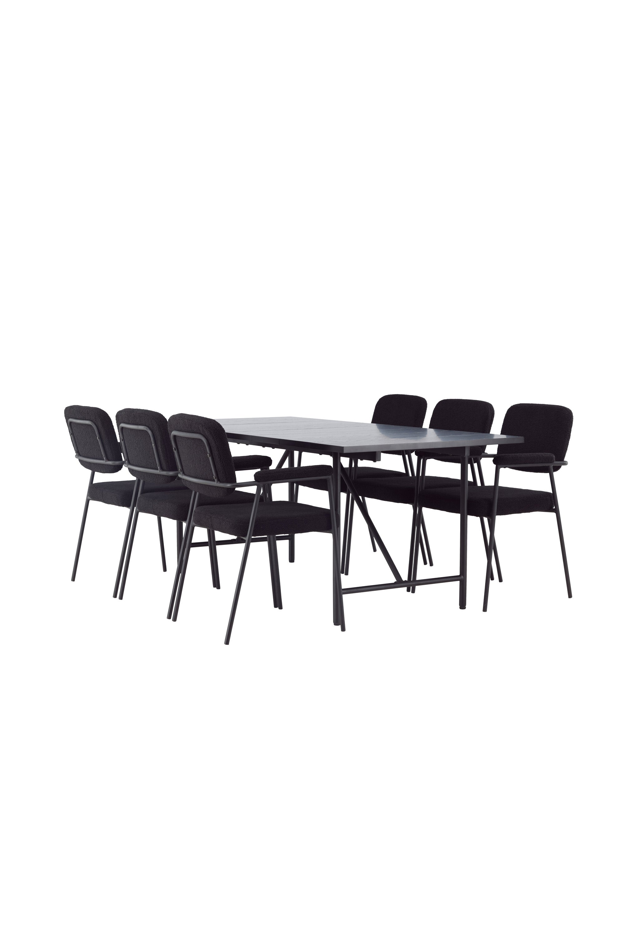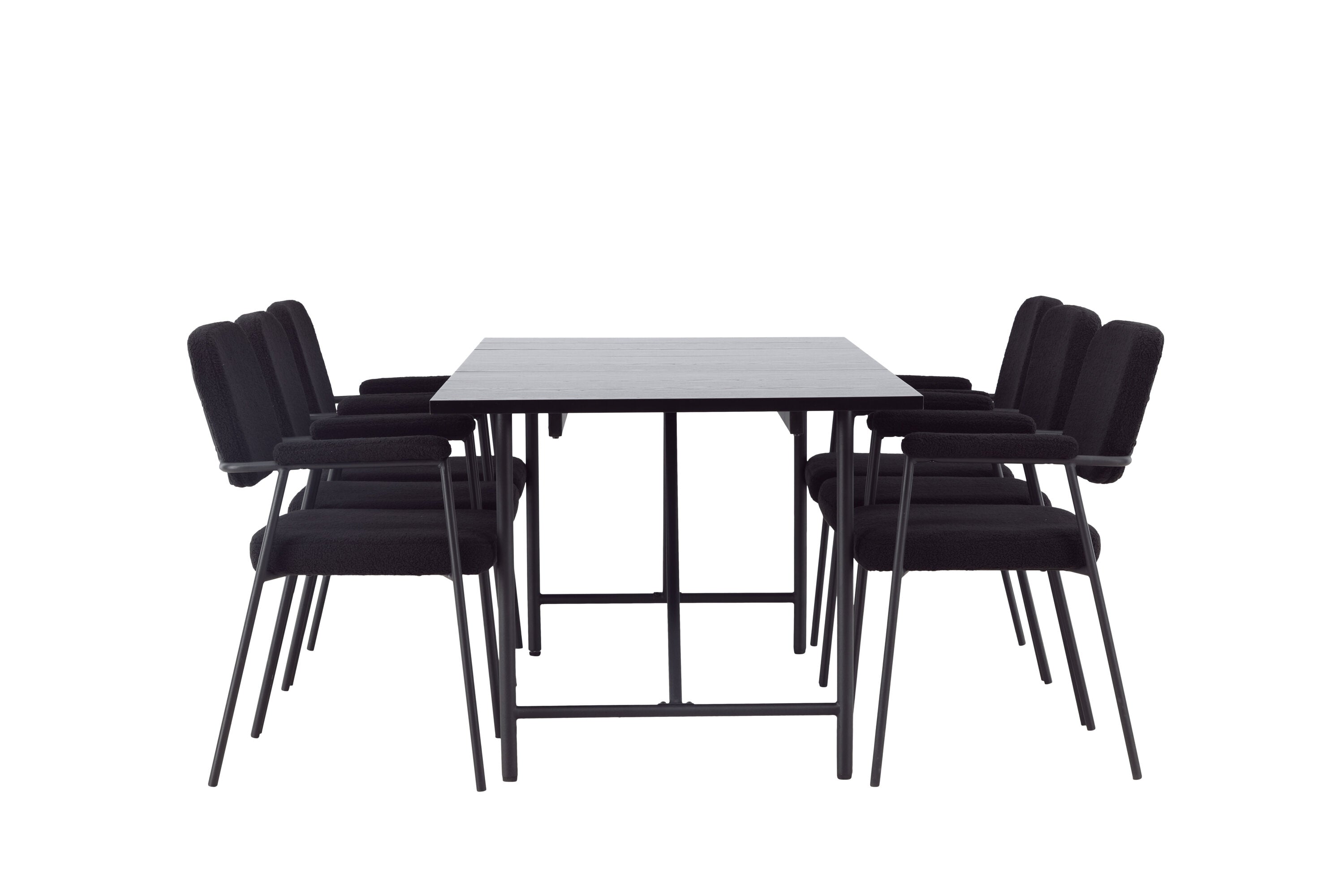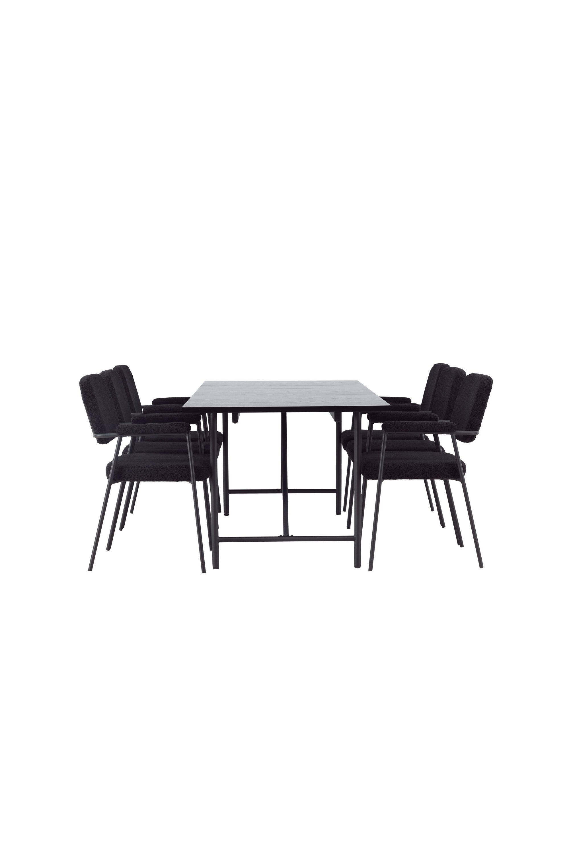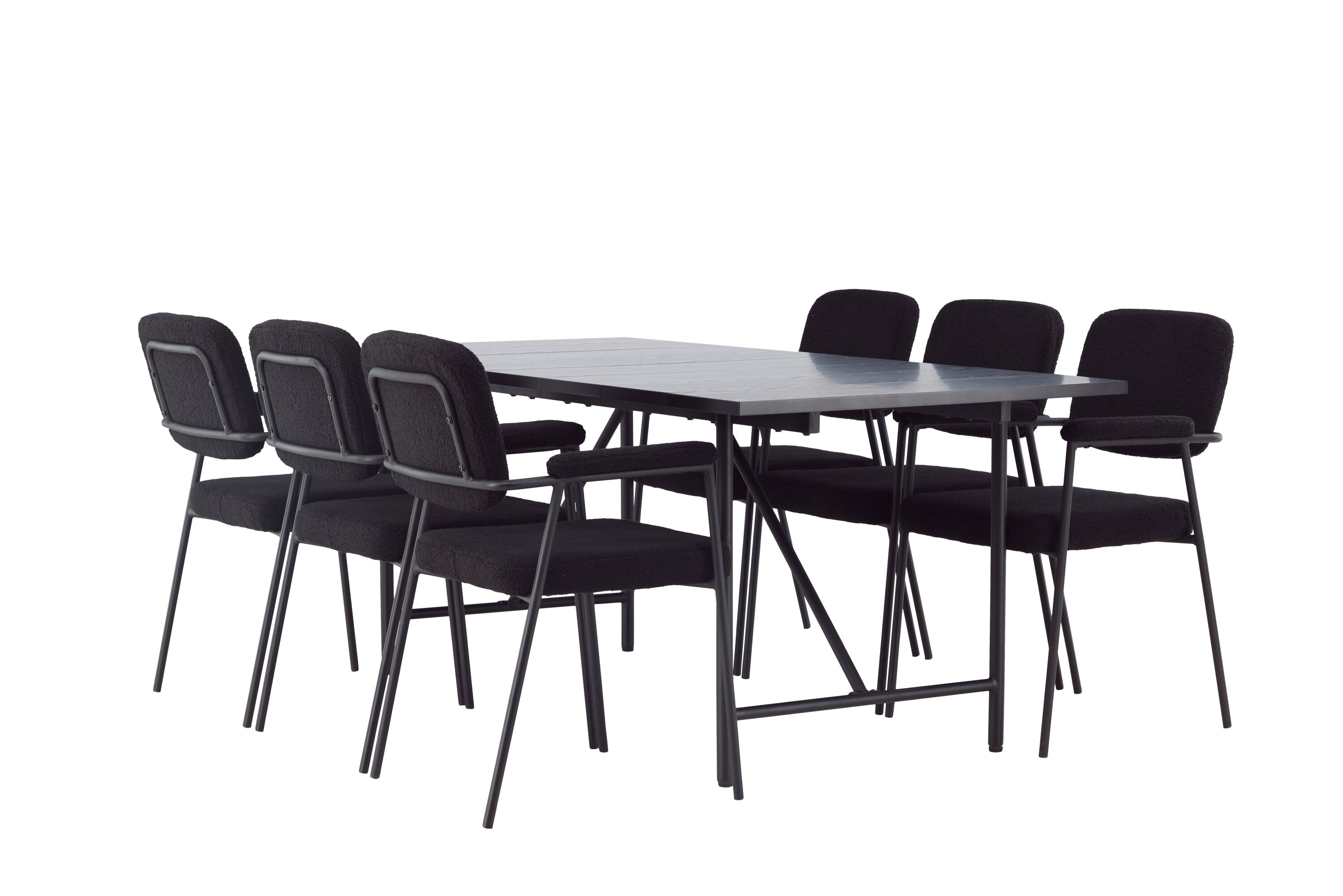 Jídelní stůl Astrid 200*75 - Matná černá / Matná černá MDF s dýhou + Jídelní židle Yesterday - Černá / Černá Boucle _6