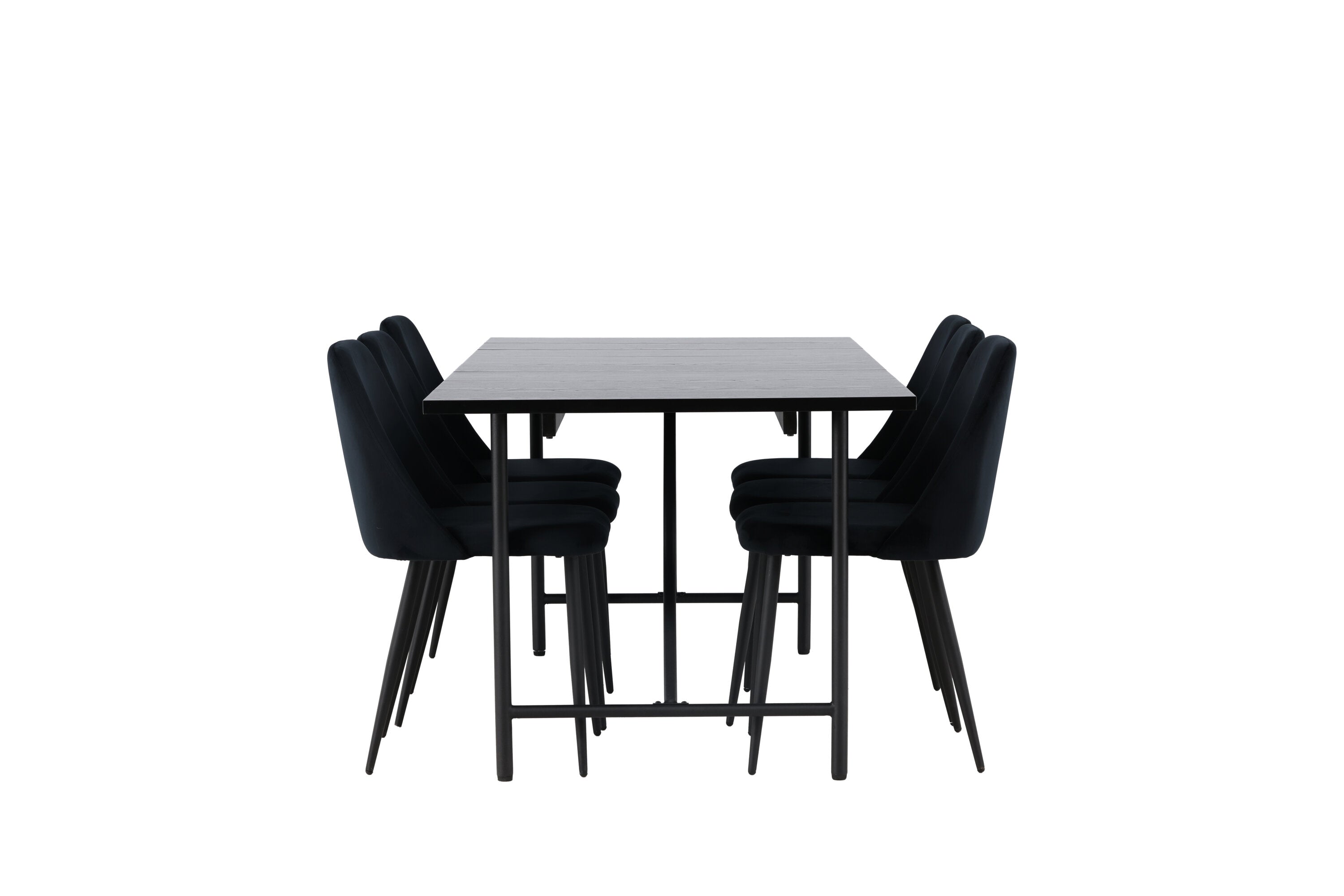 Vytvořte ve svém obývacím pokoji moderní, minimalistické a módní ústřední místo s velkým černým jídelním setem, který vyzařuje promyšlený design a vysoký komfort!