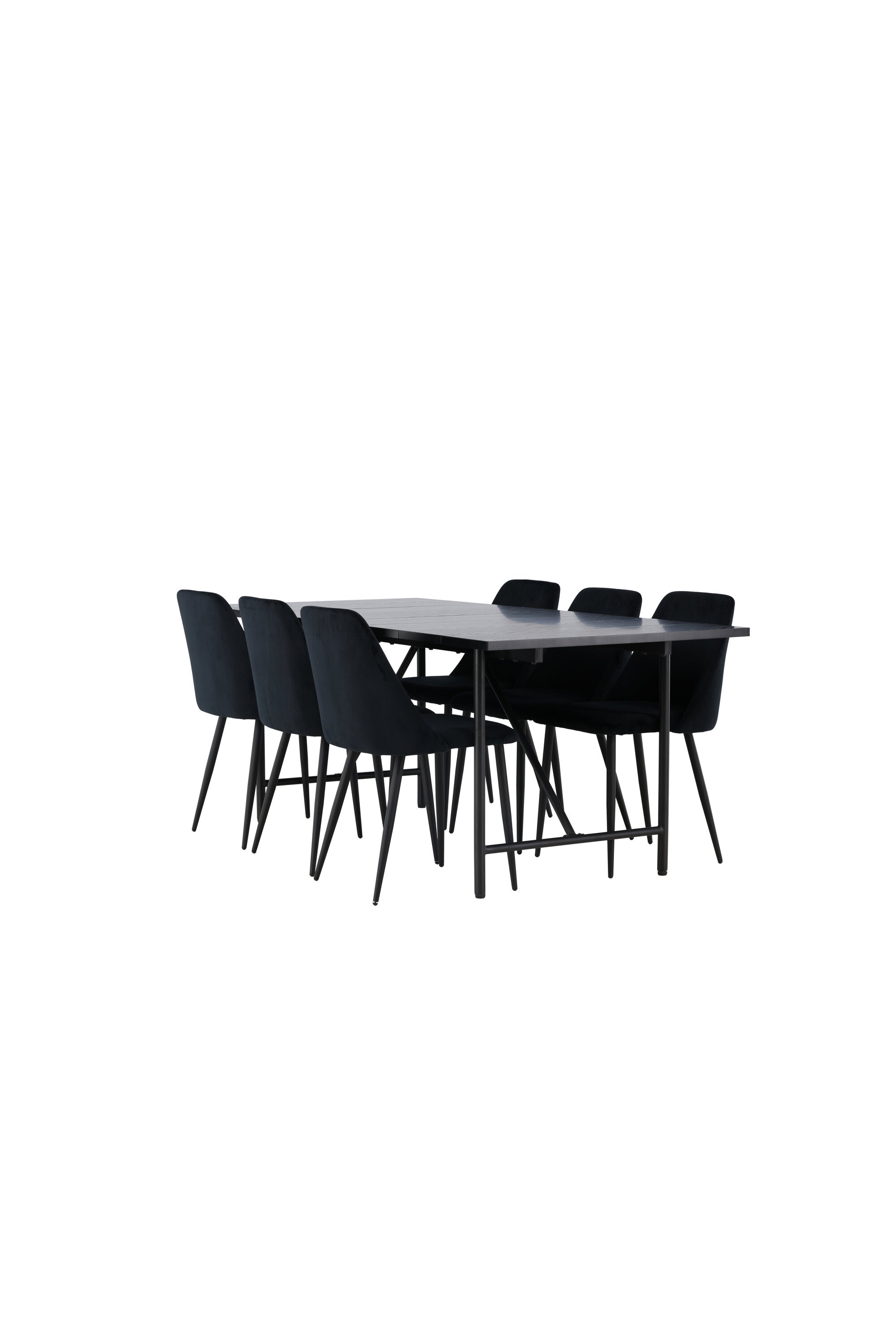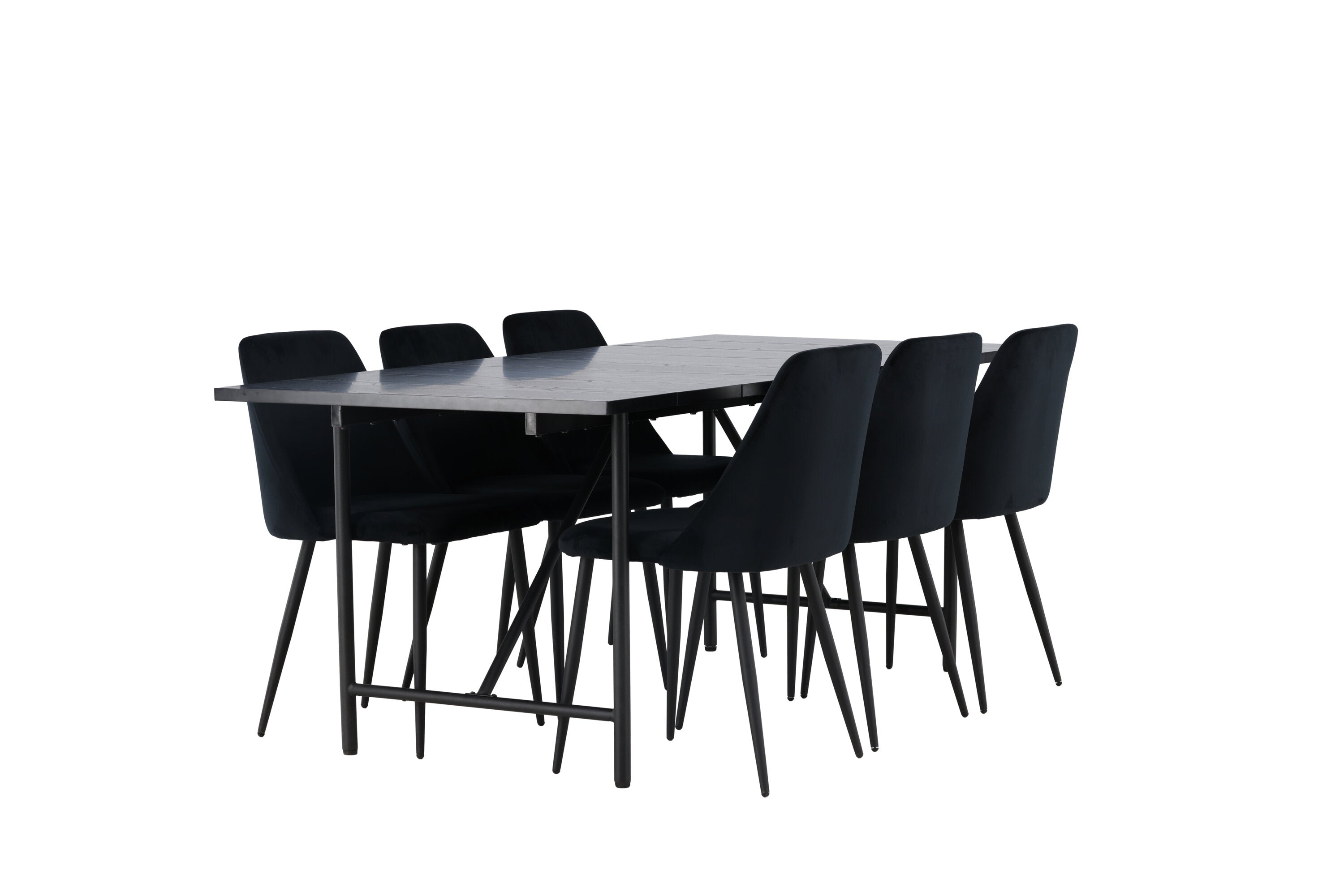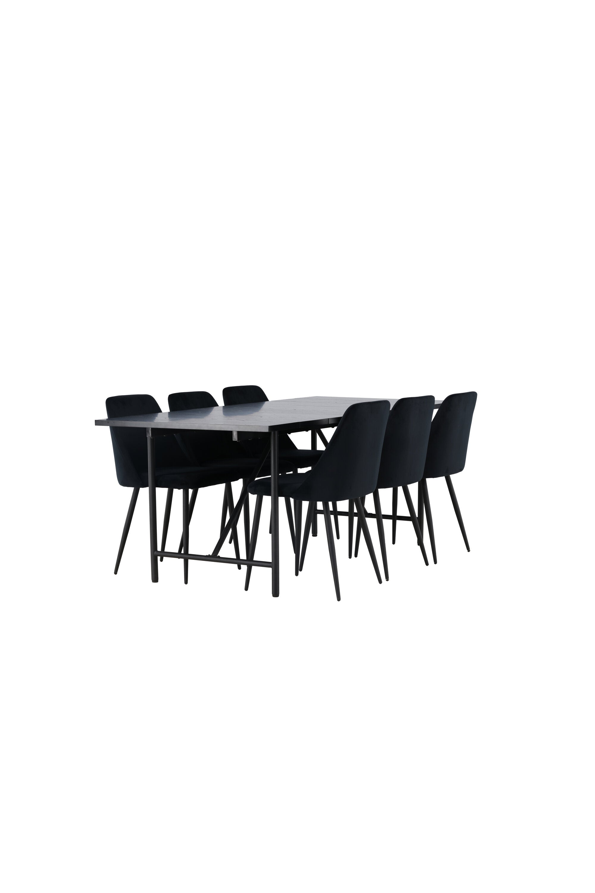 Jídelní stůl Astrid 200*75 - Matná černá / Matná černá MDF s dýhou + Noční jídelní židle - Černá / Black Velvet _6