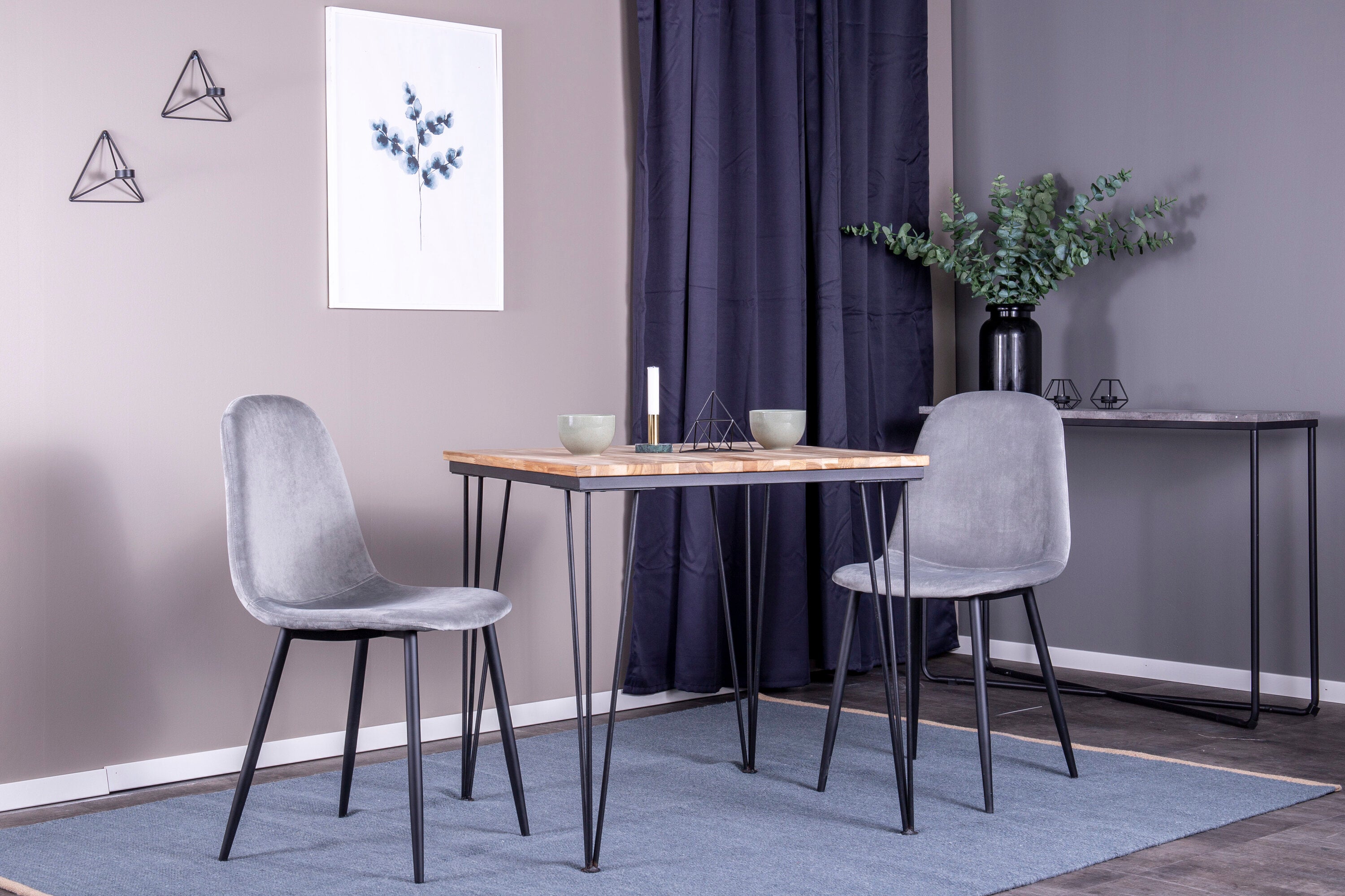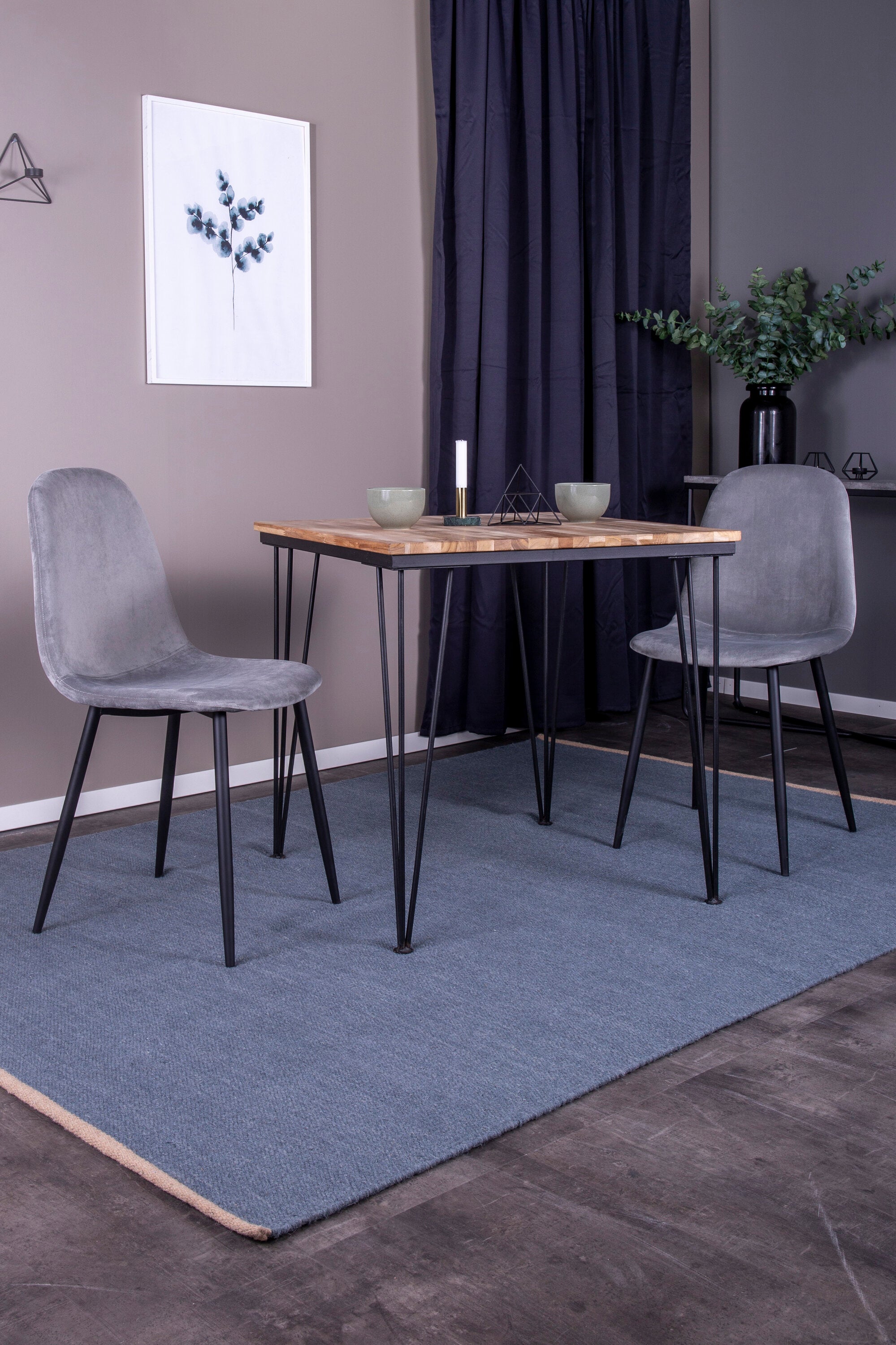 Jídelní stůl Bali - 80*80cm - Teak / Jídelní židle Black+Polar - Černé nohy / Světle šedá Velvet_2