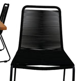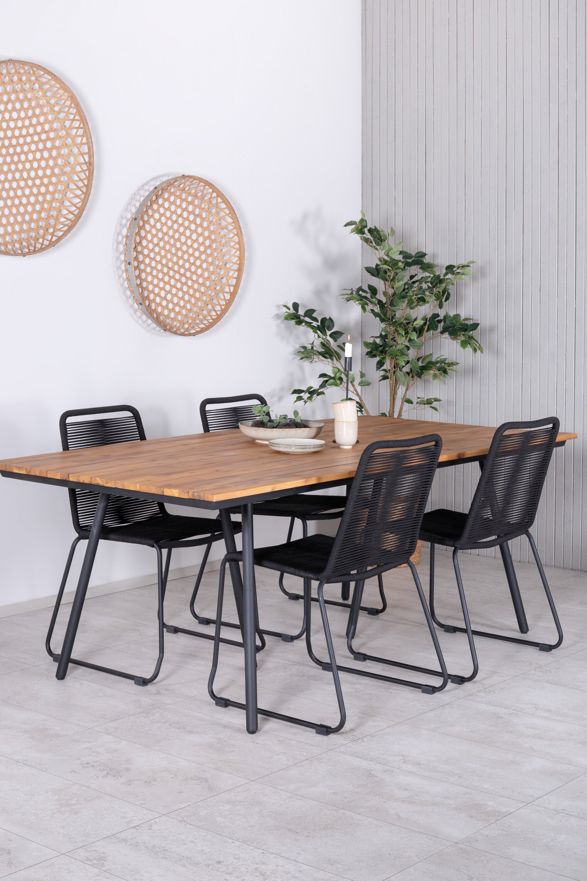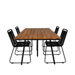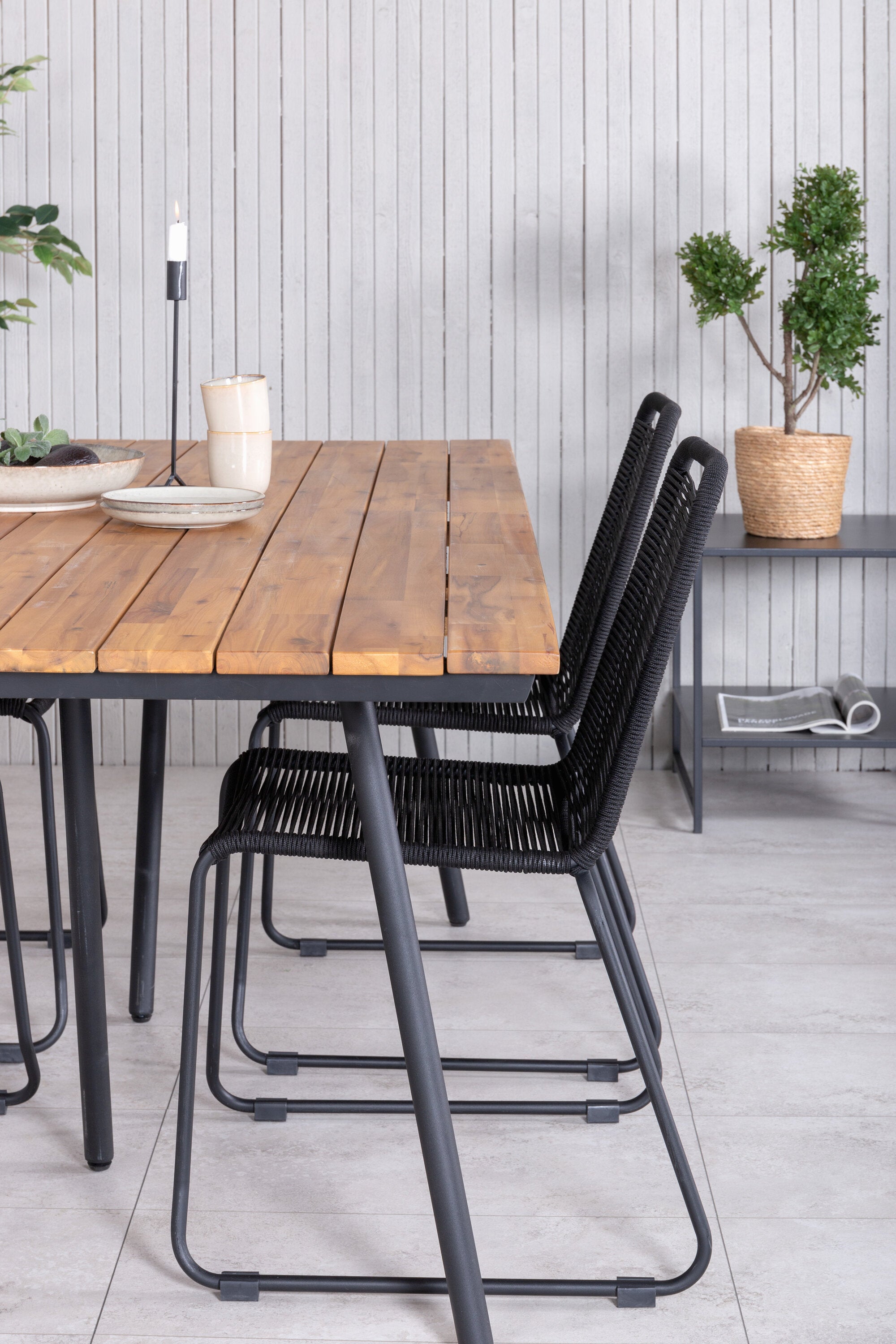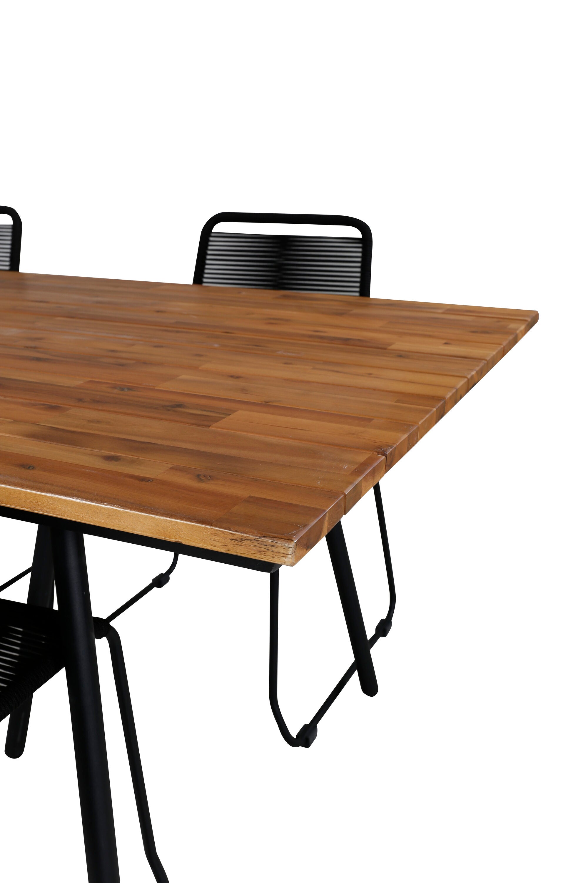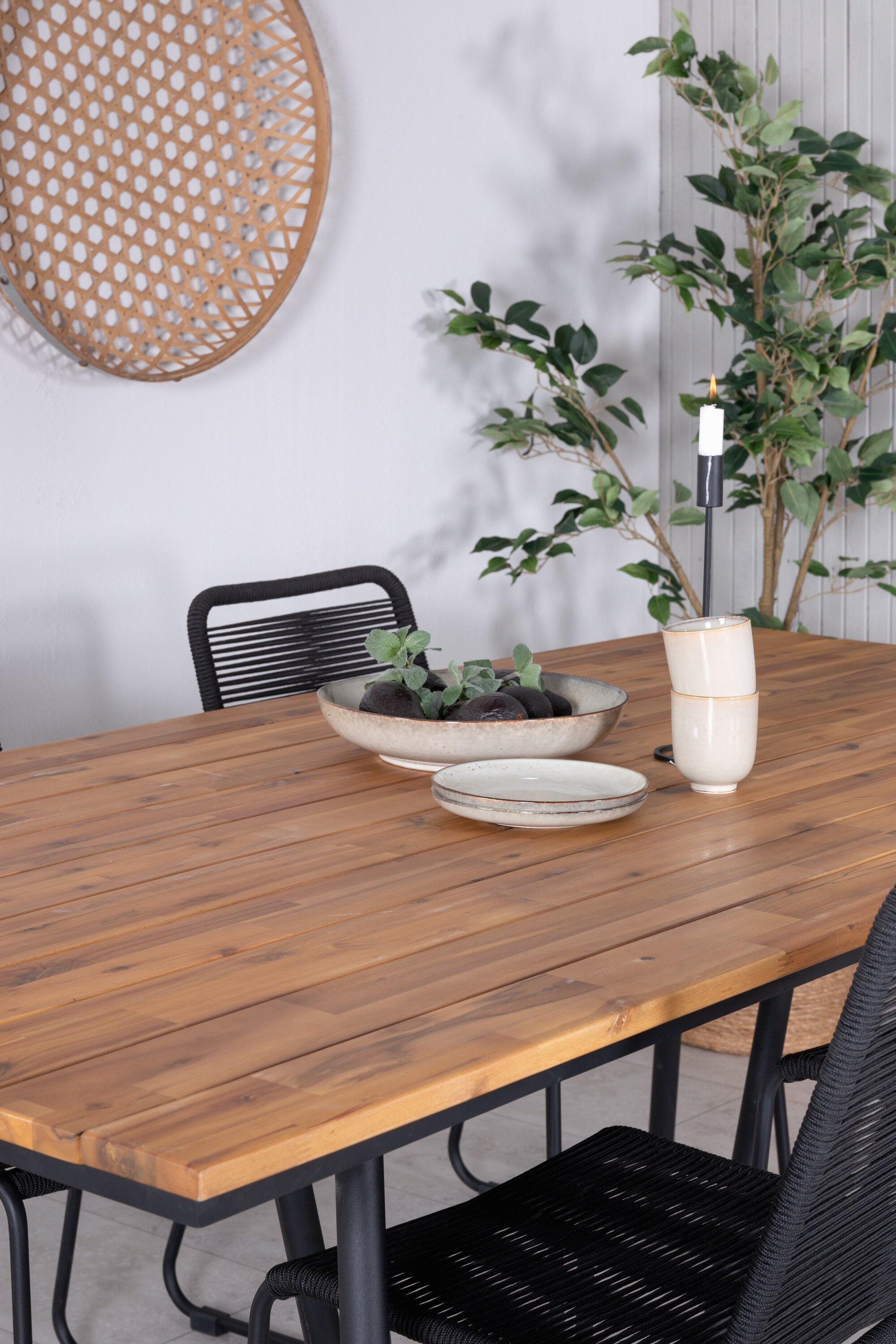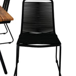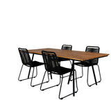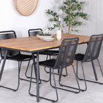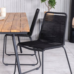 Jídelní stůl Chan - černá ocel / akácie (týkový vzhled) - 200 cm + stohovací židle Lindos - černá Alu / černé lano_4