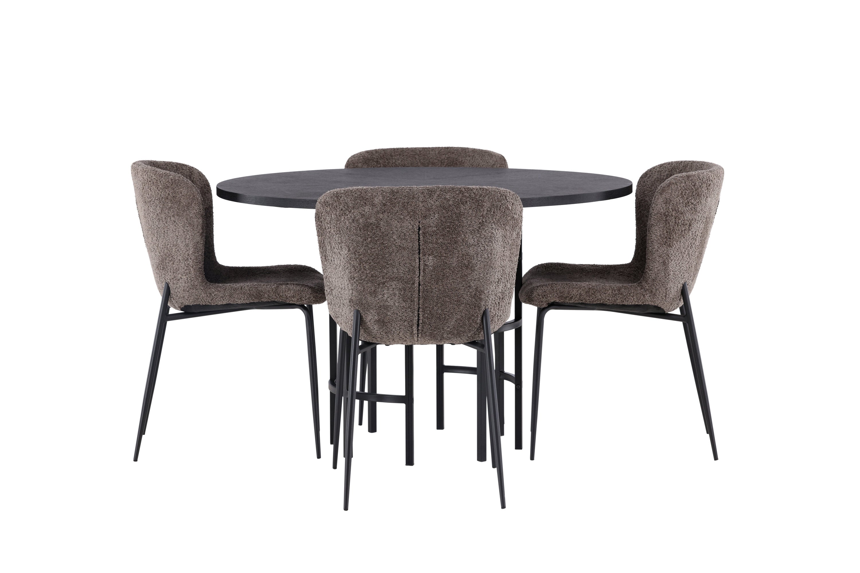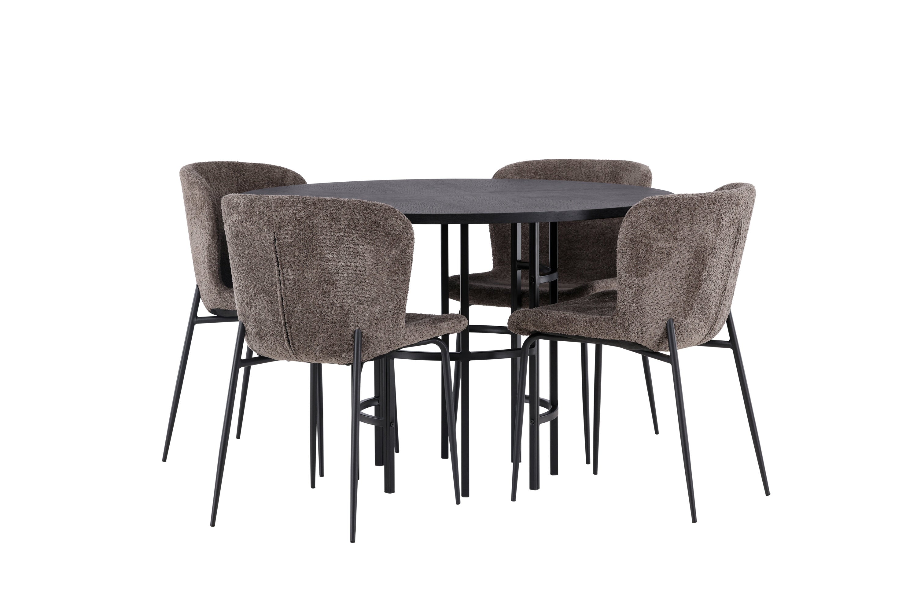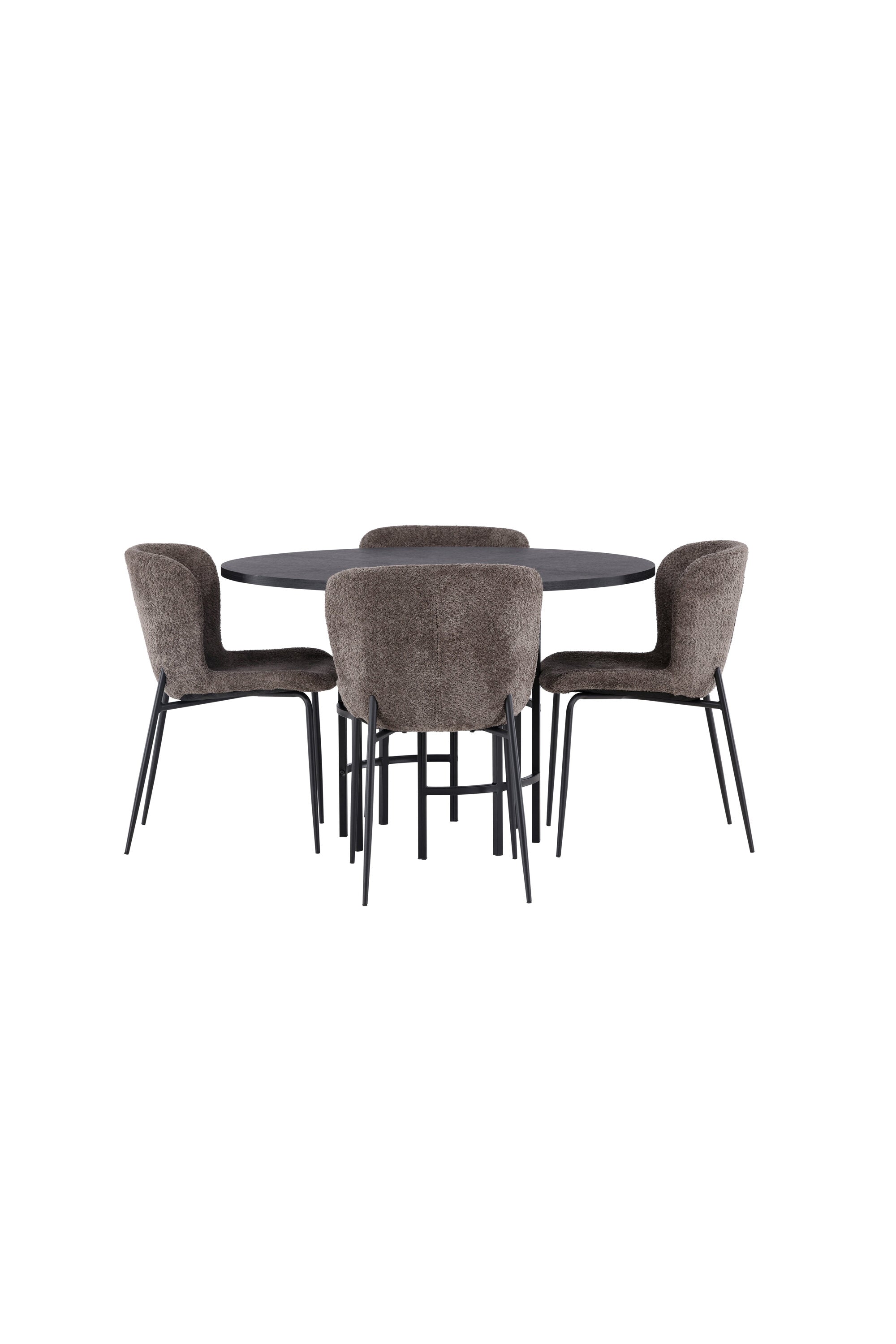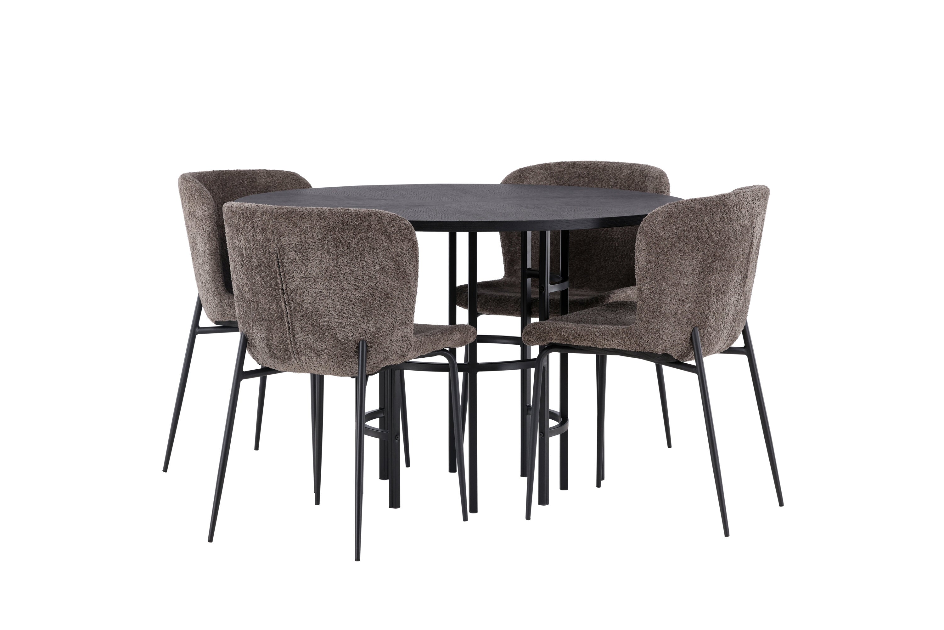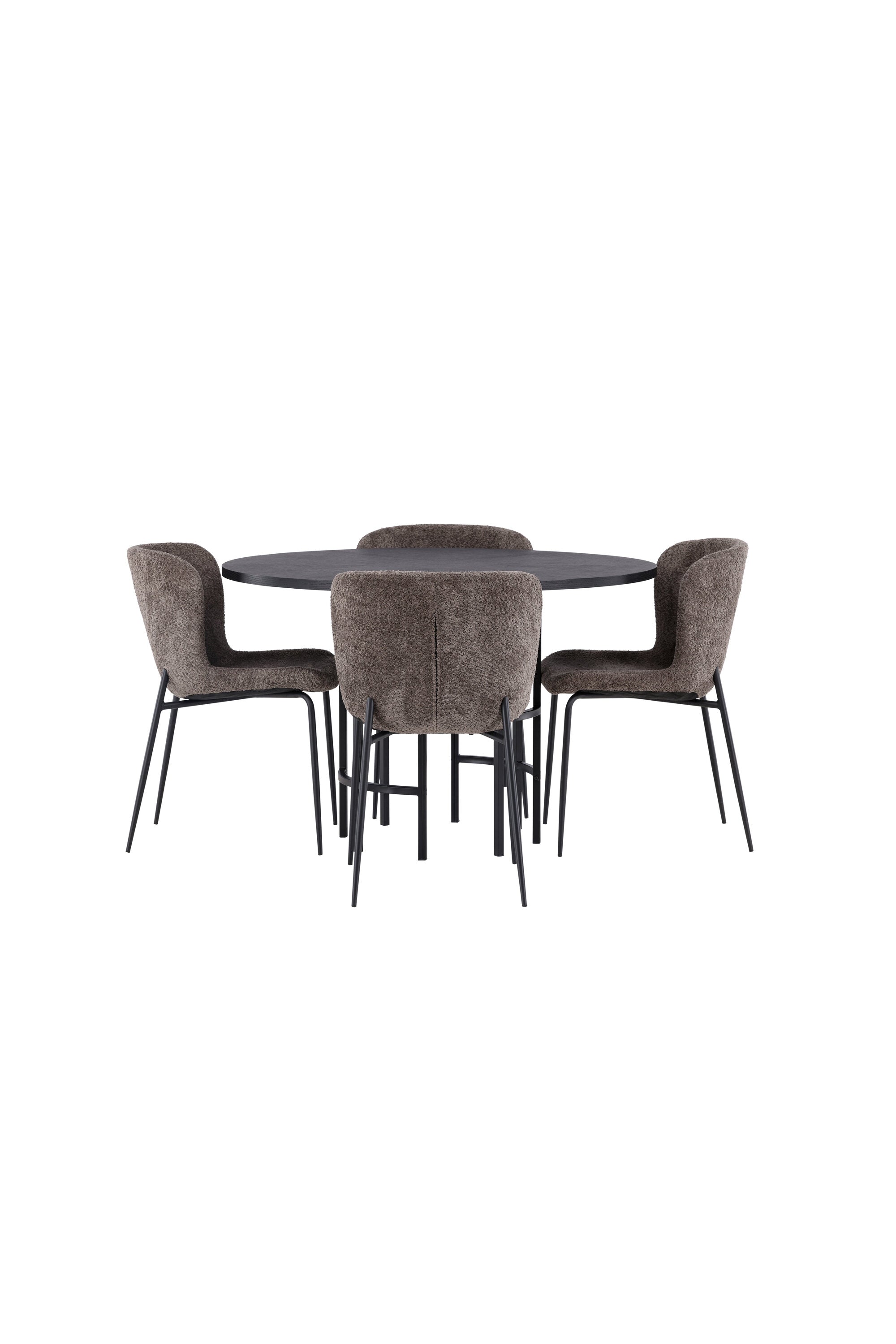 Zde se průmyslový design setkává s měkkými formami! Náš kulatý jídelní stůl Copenhagen má elegantní černou desku stolu z MDF a ozdobnou válcovou základnu z černého kovu. Zde ve stylové kombinaci s našimi trendy jídelními židlemi ze série Modesto. Židle je celočalouněná béžovou chlupatou látkou se stylovými úzkými nohami v černém kovu. Mírně zaoblená záda a čalouněný sedák poskytují extra pohodlí a rozšiřují příjemné jídlo kolem jídelního stolu. Sedněte si pohodlně a trendy vpřed! Rozměry stolu: 115 cm.