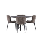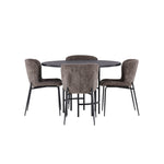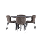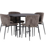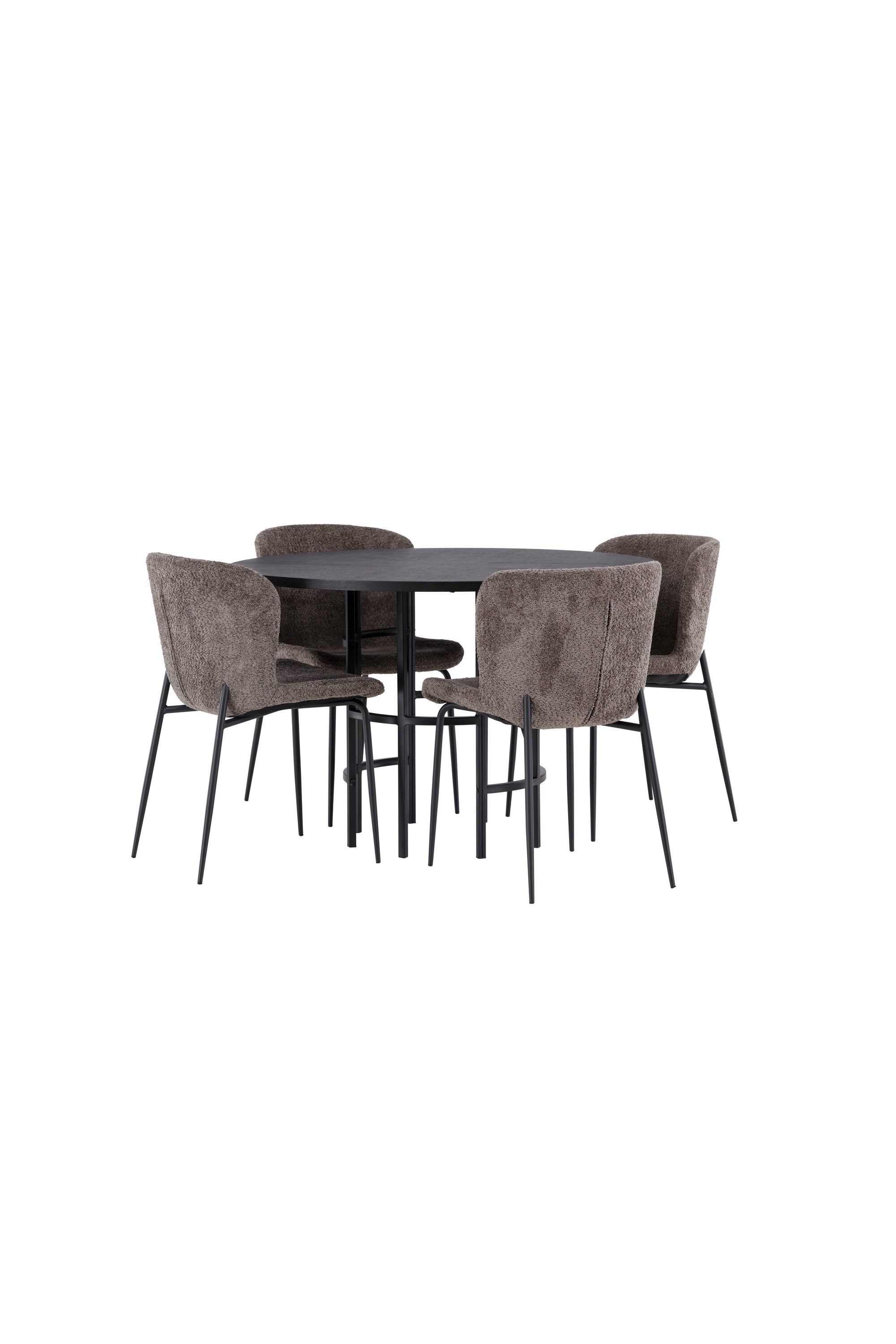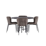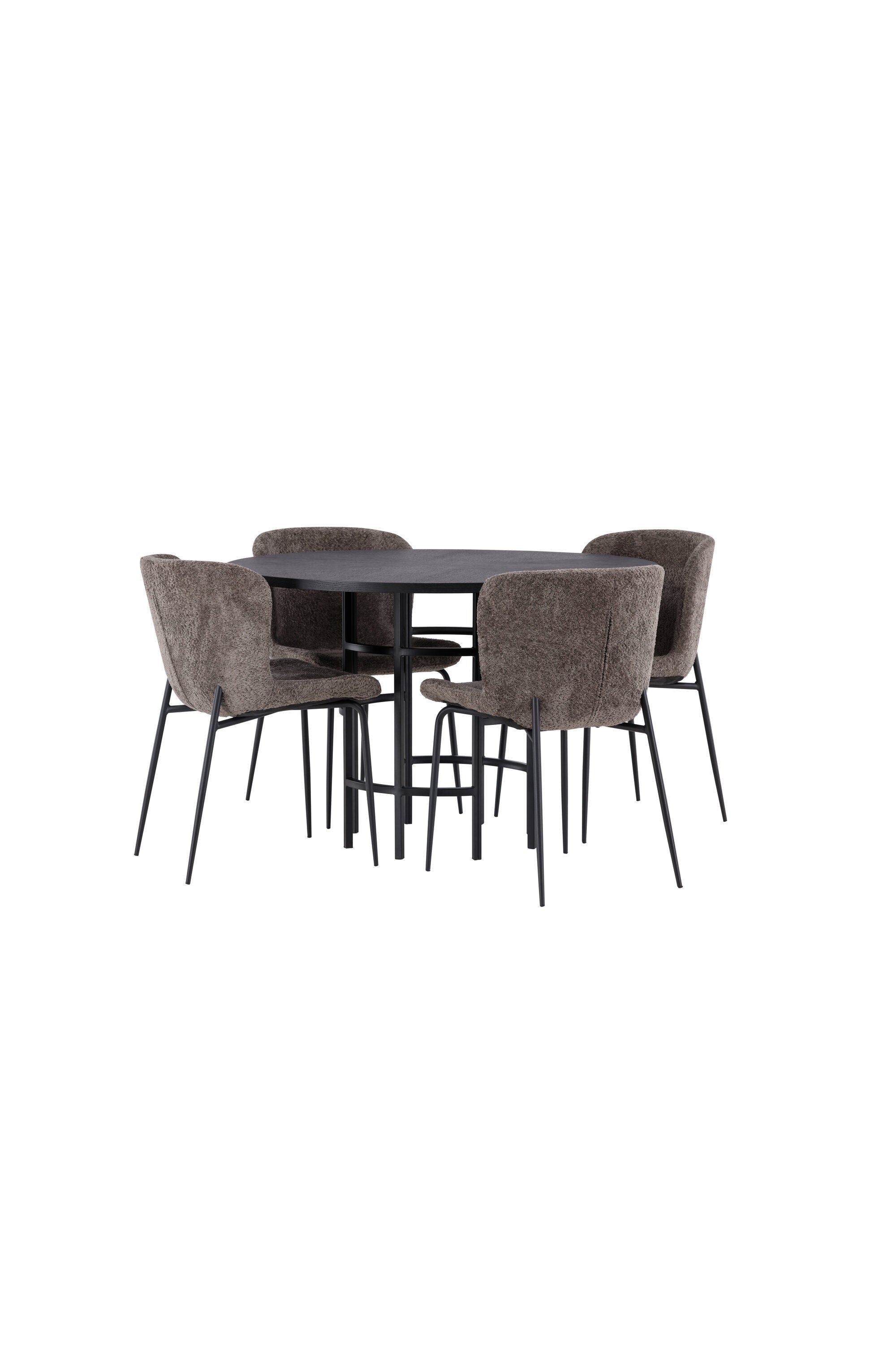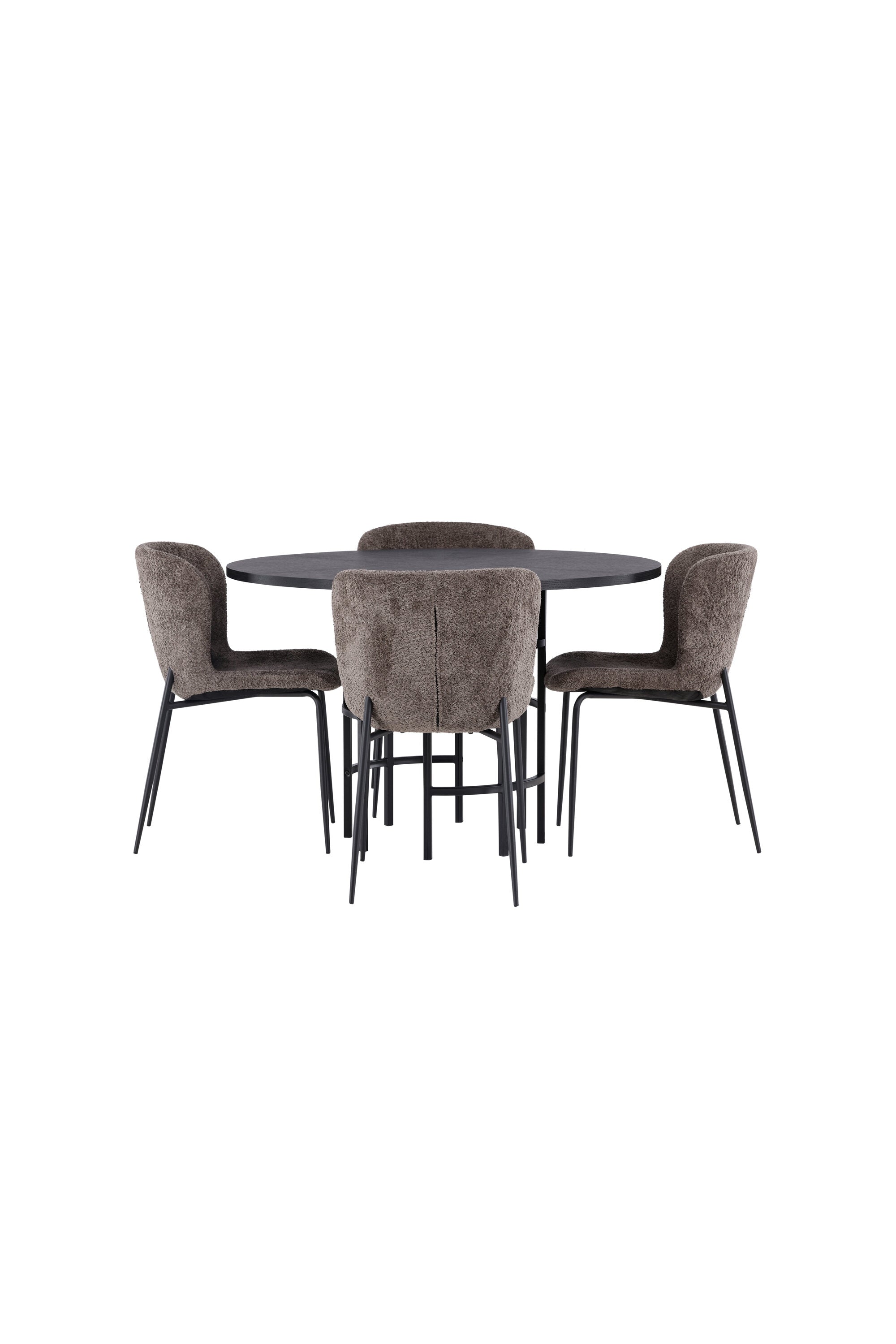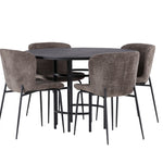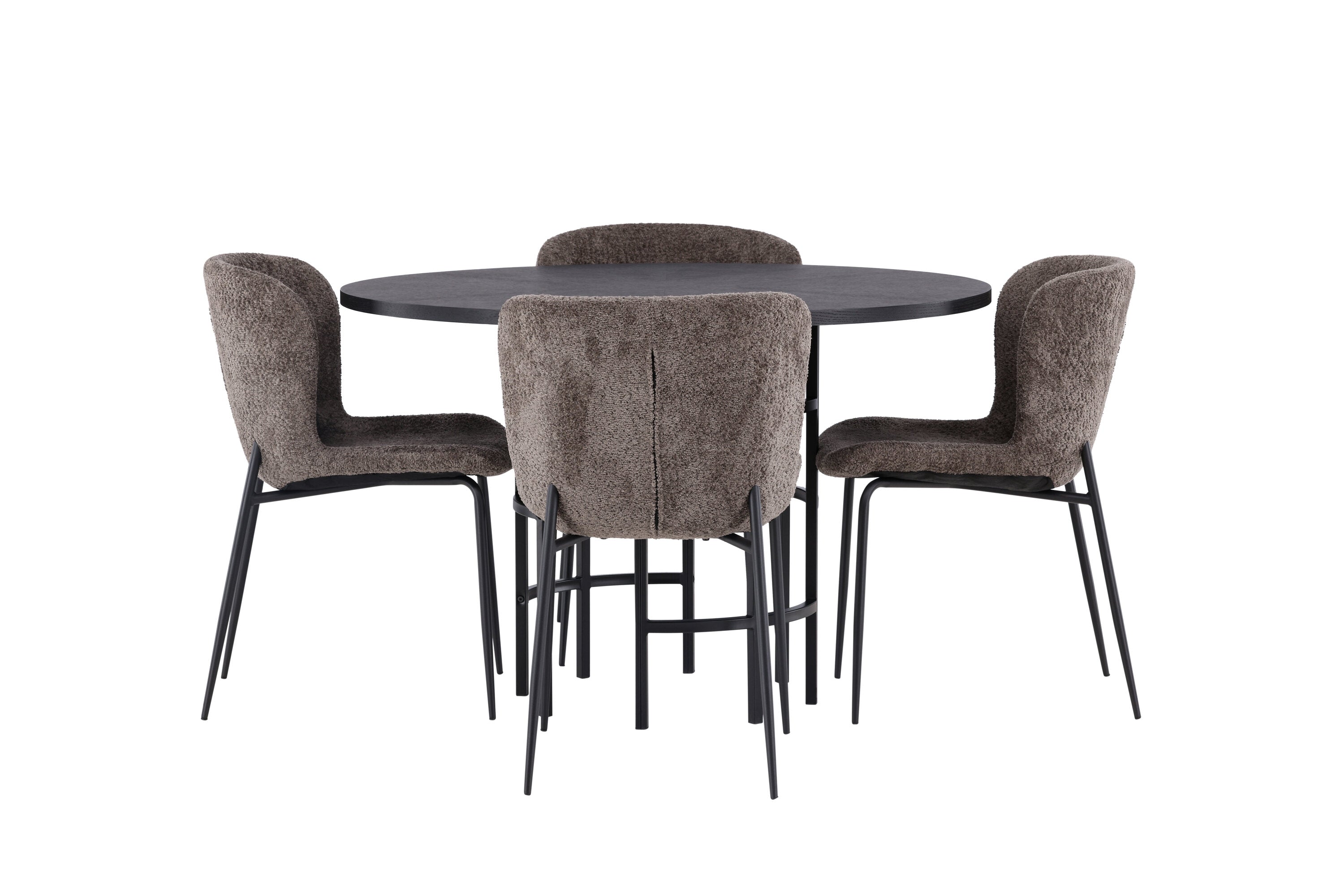 Zde se průmyslový design setkává s měkkými formami! Náš kulatý jídelní stůl Copenhagen má elegantní černou desku stolu z MDF a ozdobnou válcovou základnu z černého kovu. Zde ve stylové kombinaci s našimi trendy jídelními židlemi ze série Modesto. Židle je celočalouněná béžovou chlupatou látkou se stylovými úzkými nohami v černém kovu. Mírně zaoblená záda a čalouněný sedák poskytují extra pohodlí a rozšiřují příjemné jídlo kolem jídelního stolu. Sedněte si pohodlně a trendy vpřed! Rozměry stolu: 115 cm.