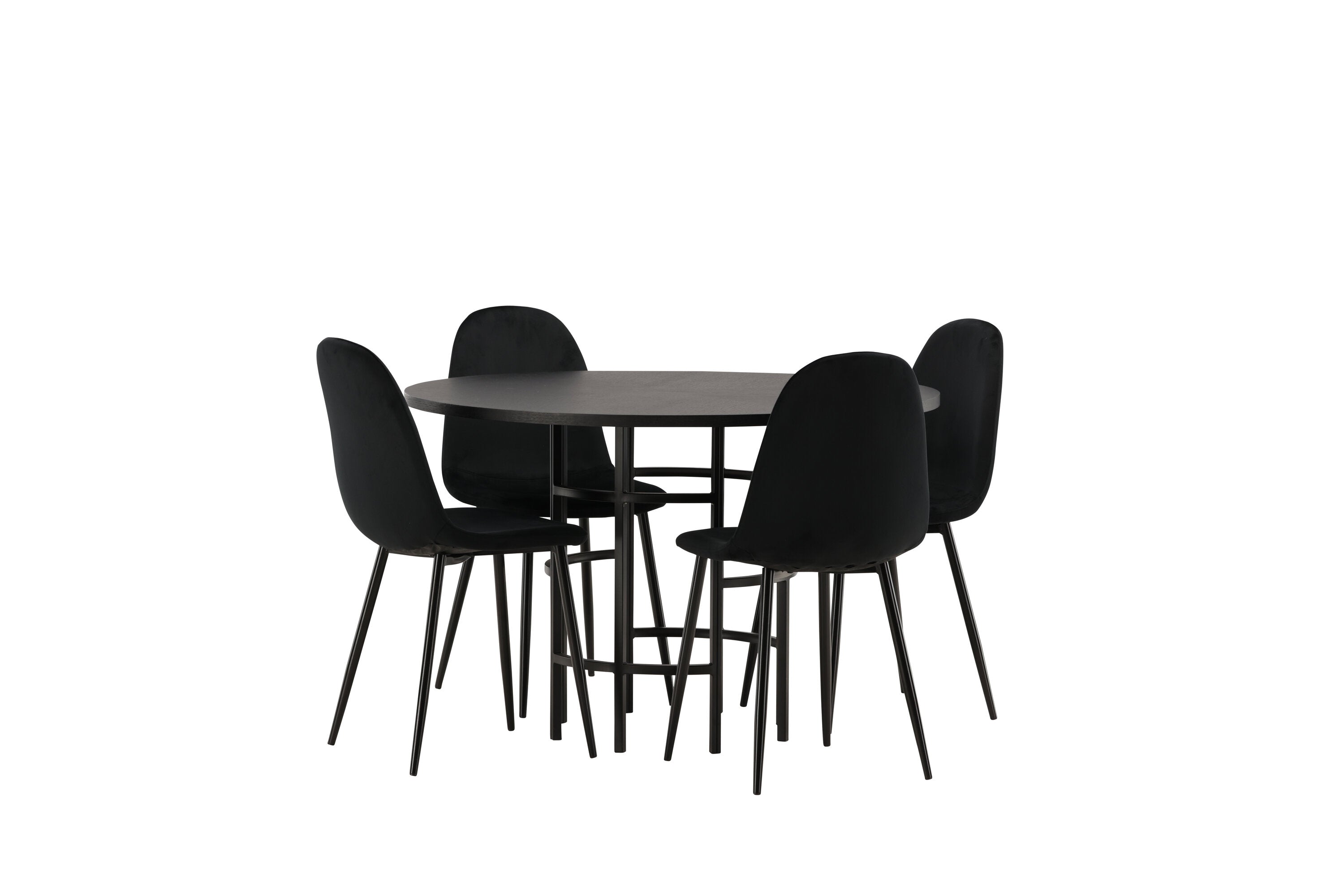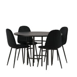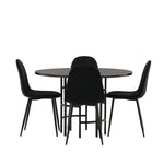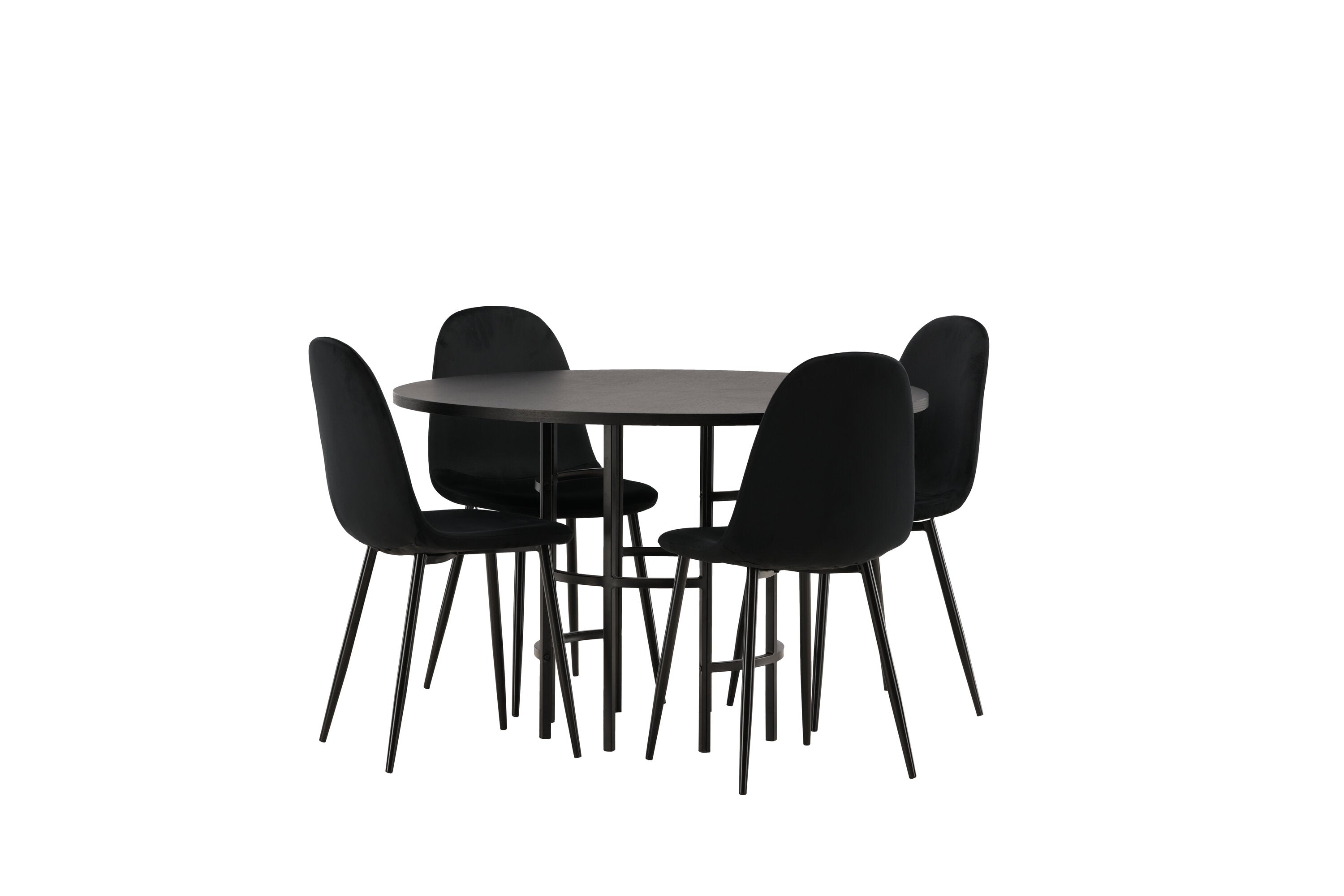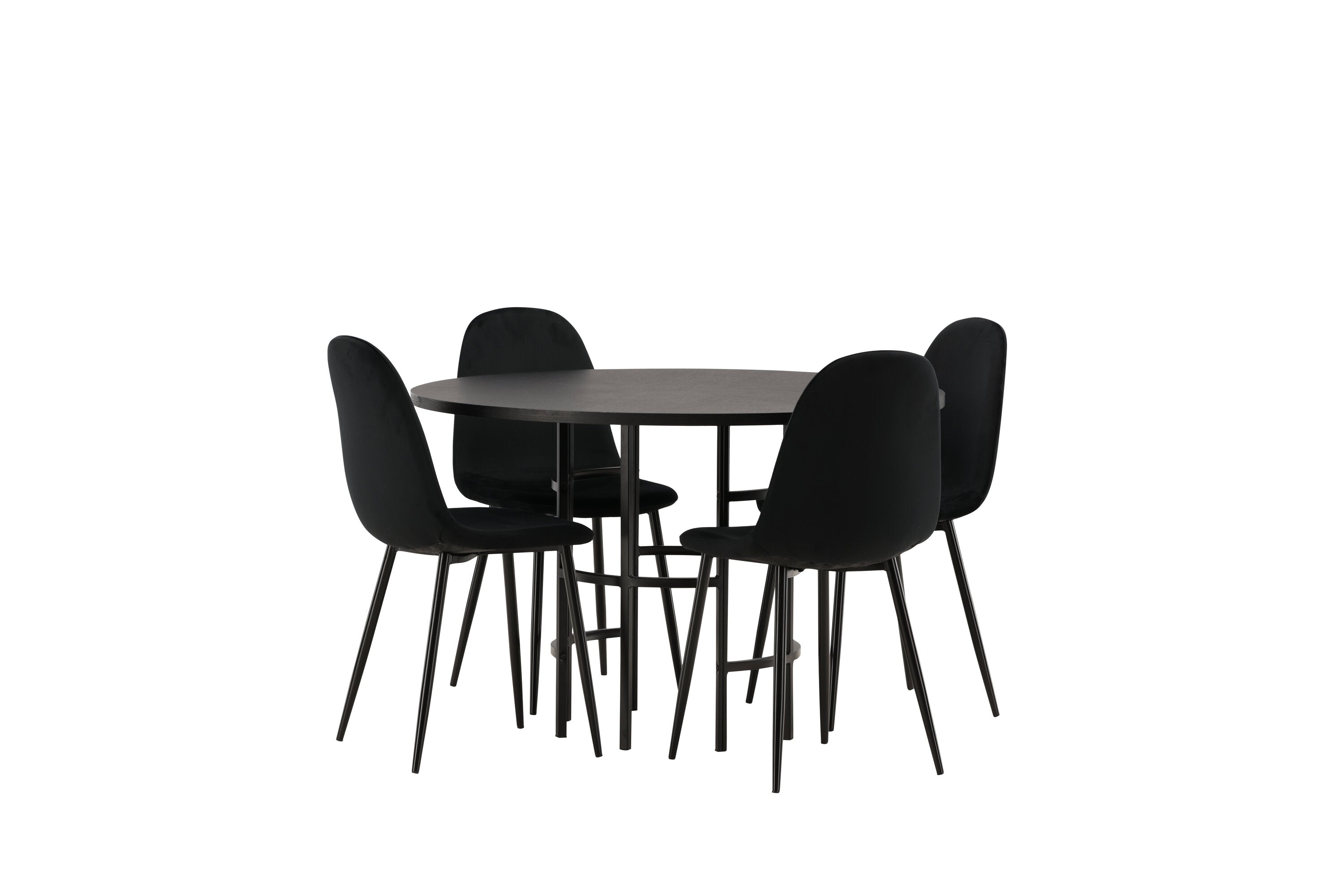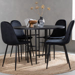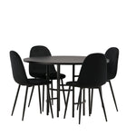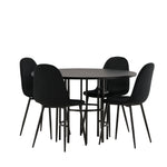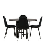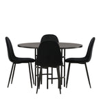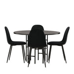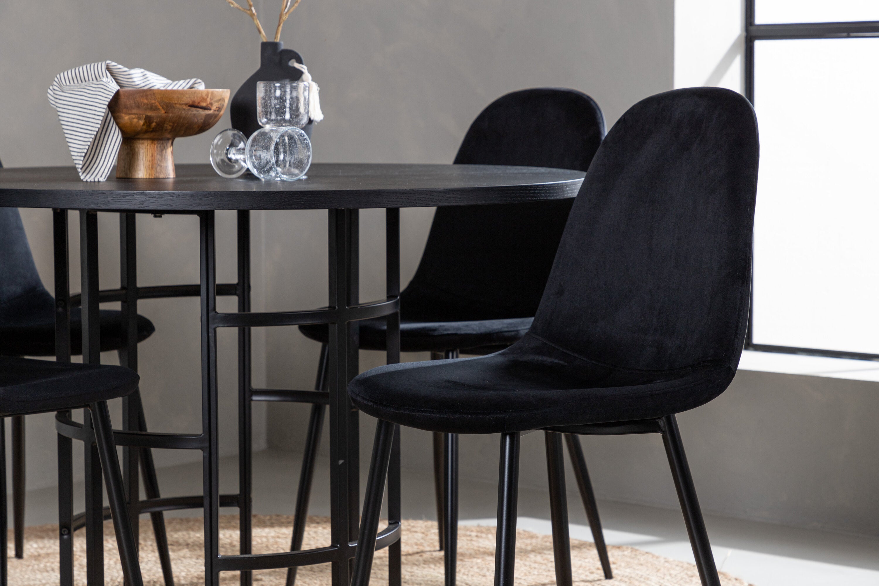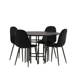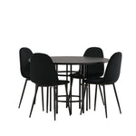 Stylový, moderní a nadčasový – jídelní skupina, která udělá dojem na vaše hosty! Tento trendový jídelní stůl ze série Copenhagen patří do kolekce Furniture Fashion a má ušpiněnou černou desku stolu z MDF s dýhou a dekorativní podnož ve tvaru válce z černého kovu. Zde společně s našimi pohodlnými jídelními židlemi ze série Polar. Židle má celočalouněný design se zaobleným opěradlem a sedákem z černé sametové látky s měkkým polstrováním a nohami z černého kovu s práškovým nástřikem. Nedělejte kompromisy mezi pohodlím a designem!