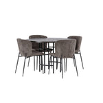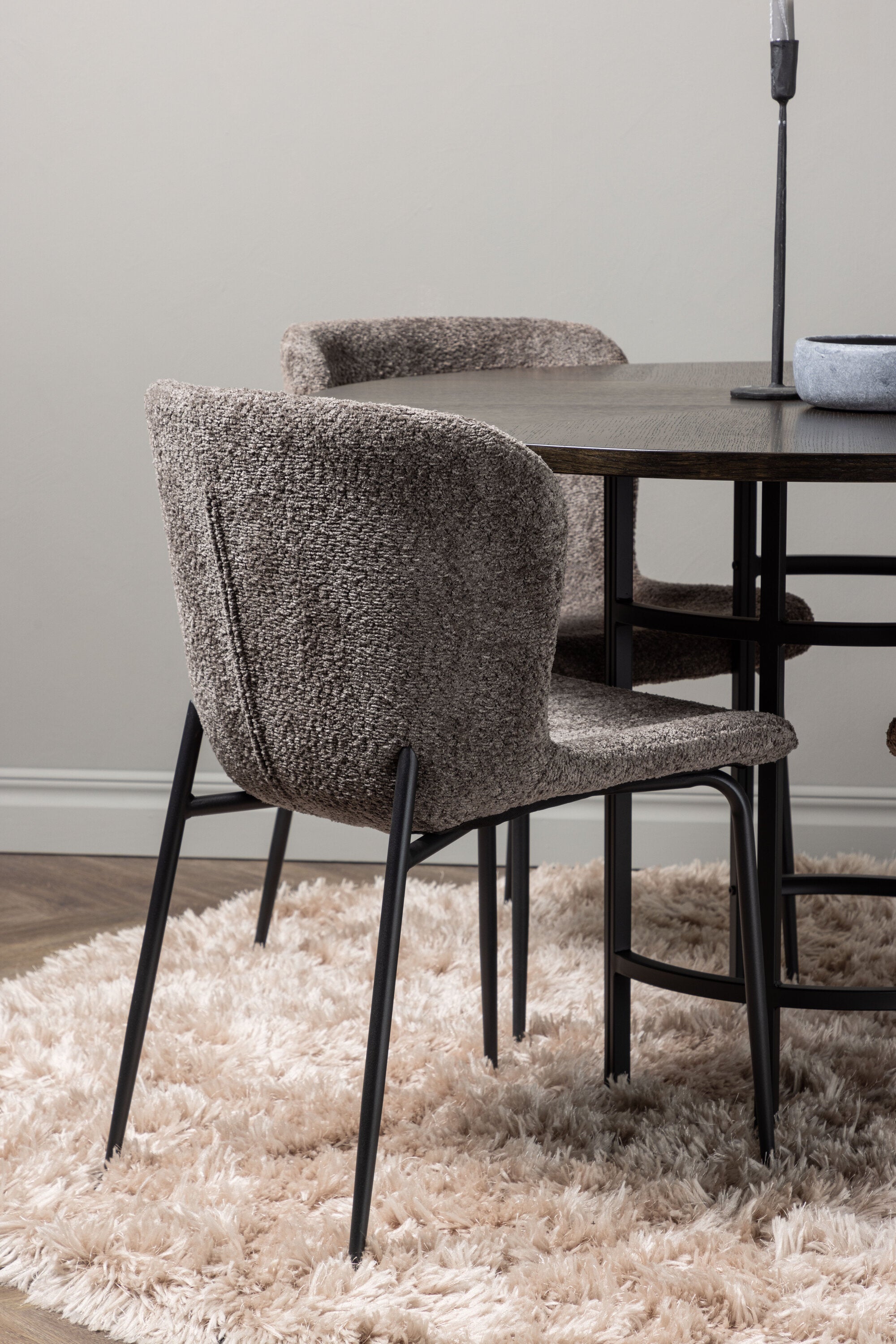 Jídelní stůl Copenhagen – černá / mocca dýha + jídelní židle Modesto – šedá / kouřová černá Boucle _4