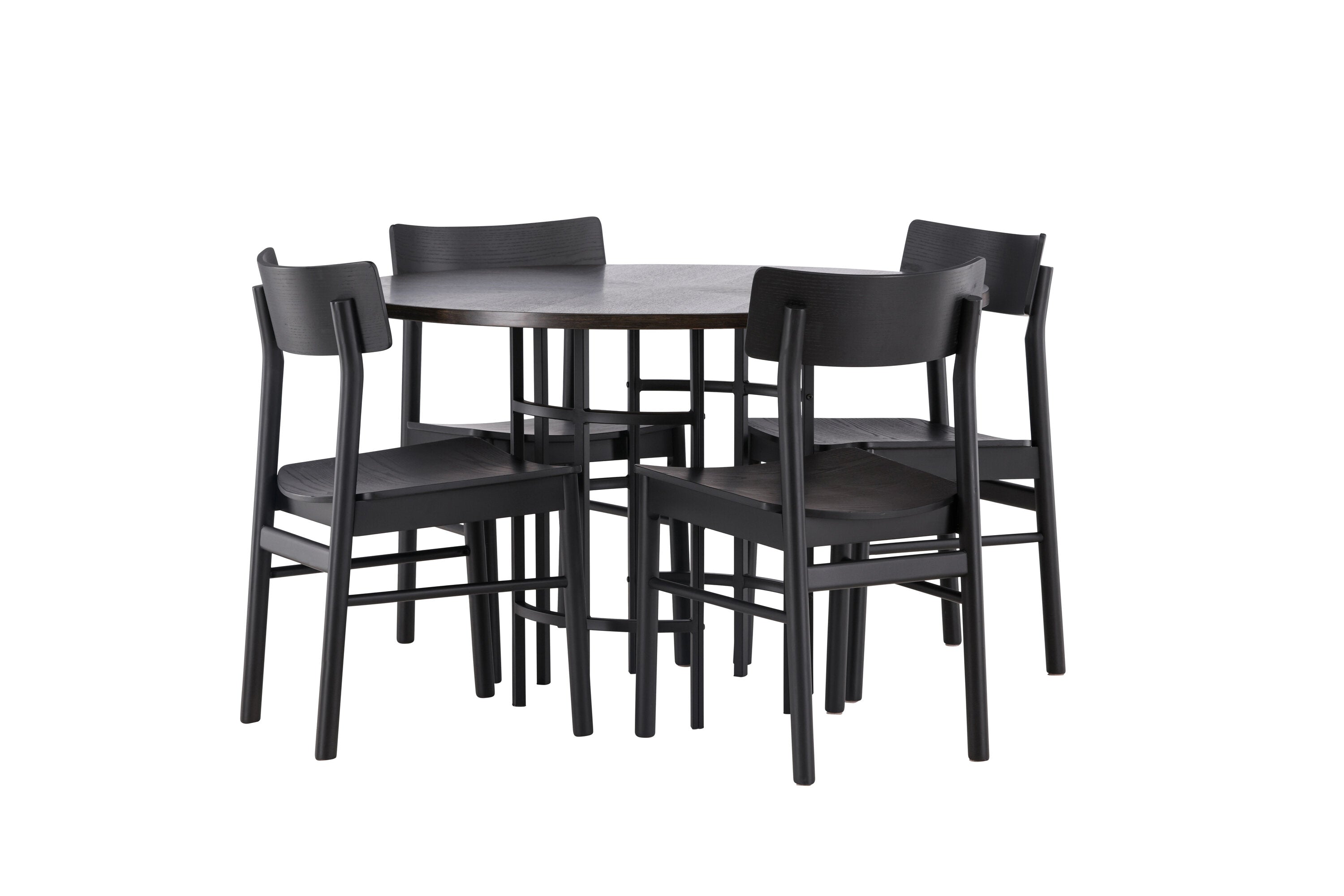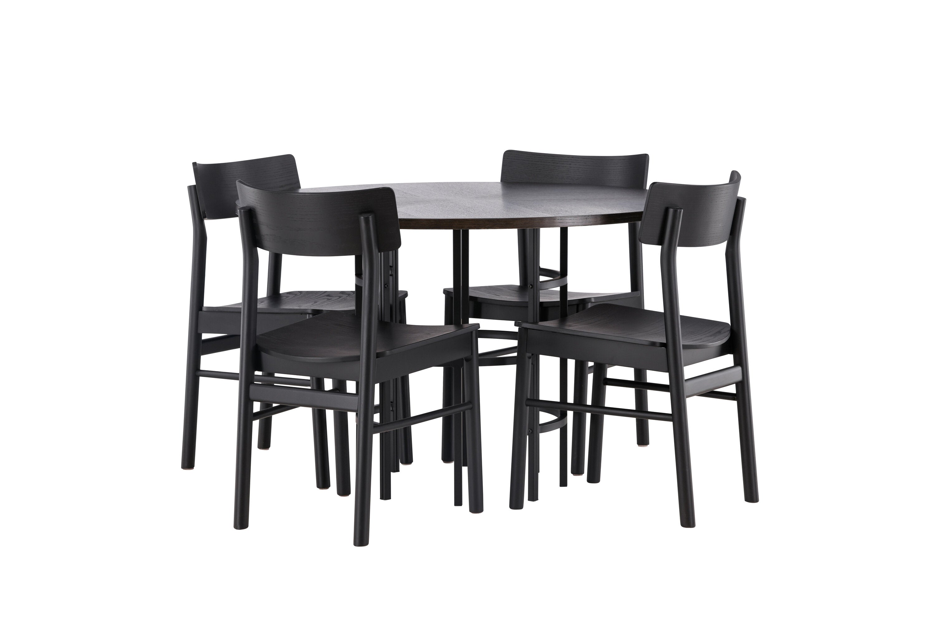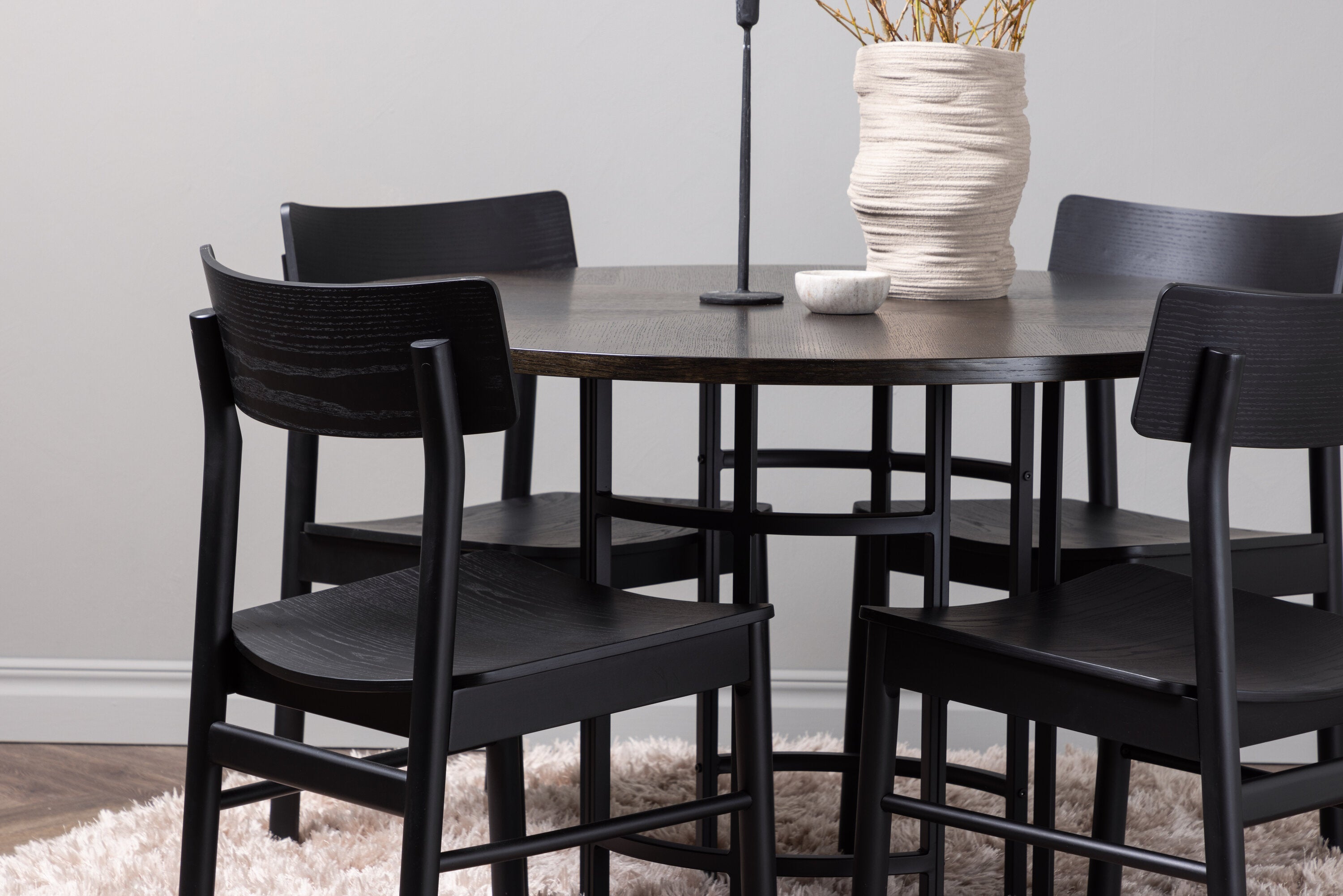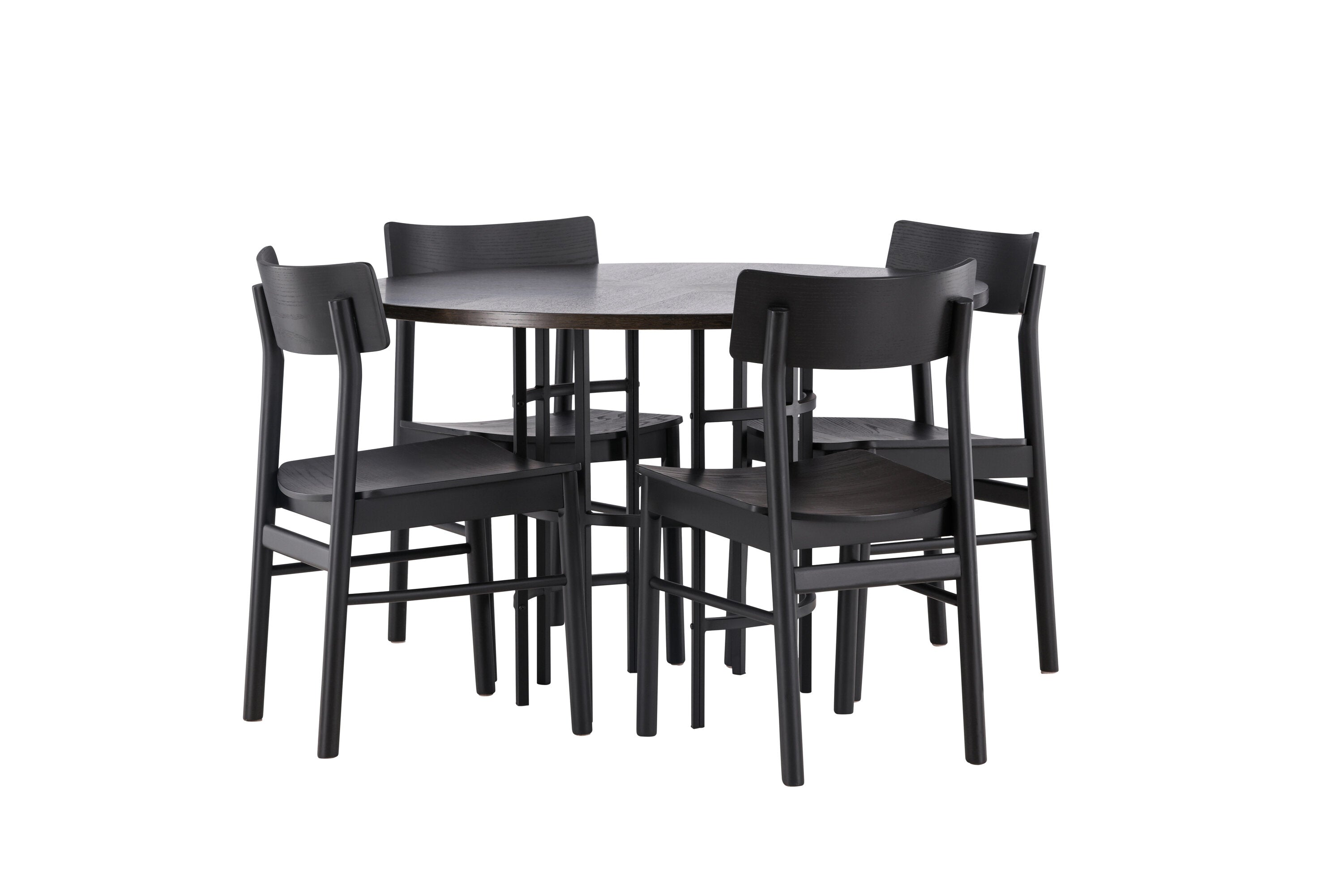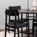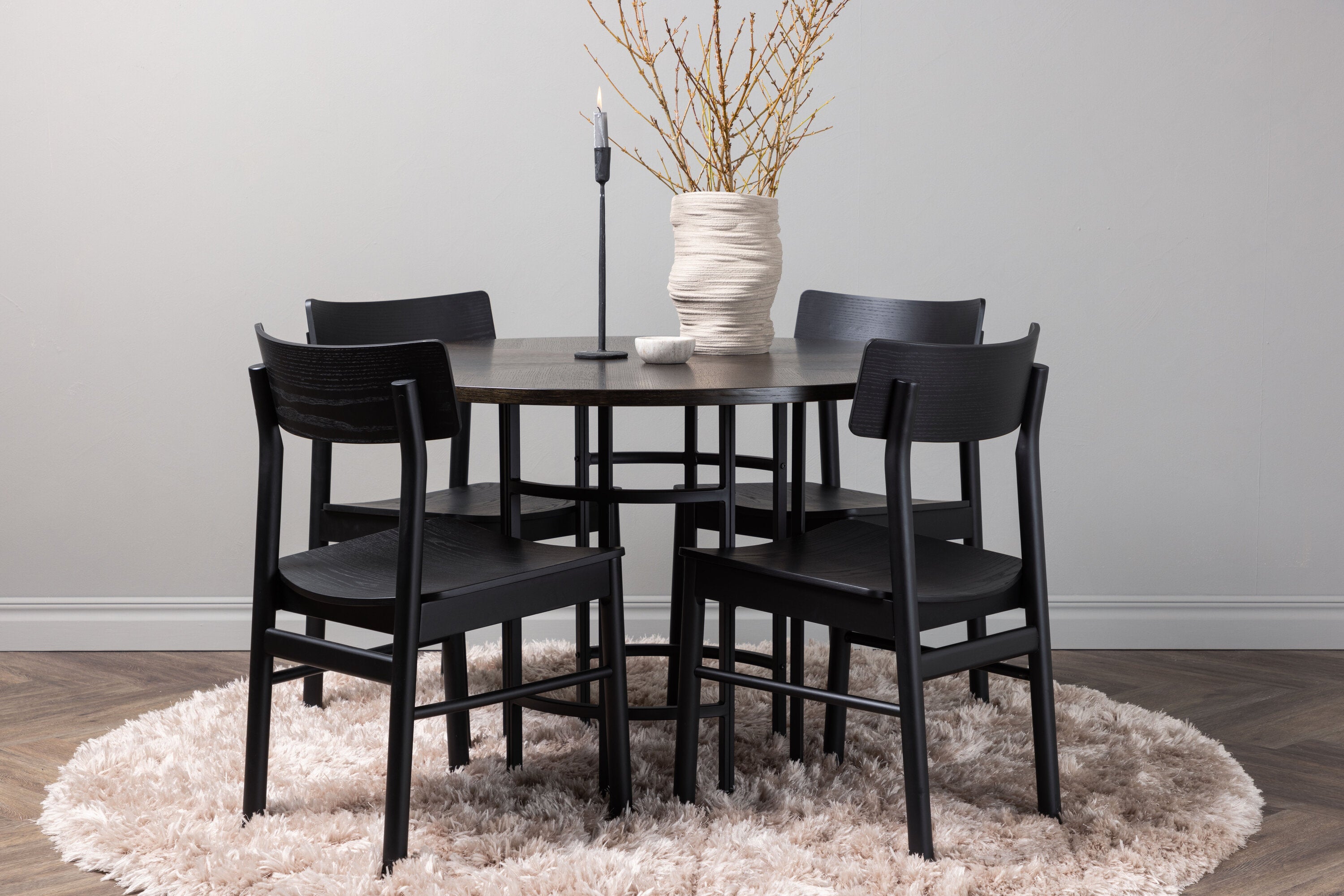 Židle Montros skvěle doplňují stůl svým jednoduchým a elegantním designem. Jsou vyrobeny z březového dřeva a sladěné v sofistikované černé barvě a dodávají celému jídelnímu setu nadčasový a elegantní vzhled. Tyto židle také nabízejí pohodlné sezení při dlouhém a uvolněném jídle s rodinou a přáteli.