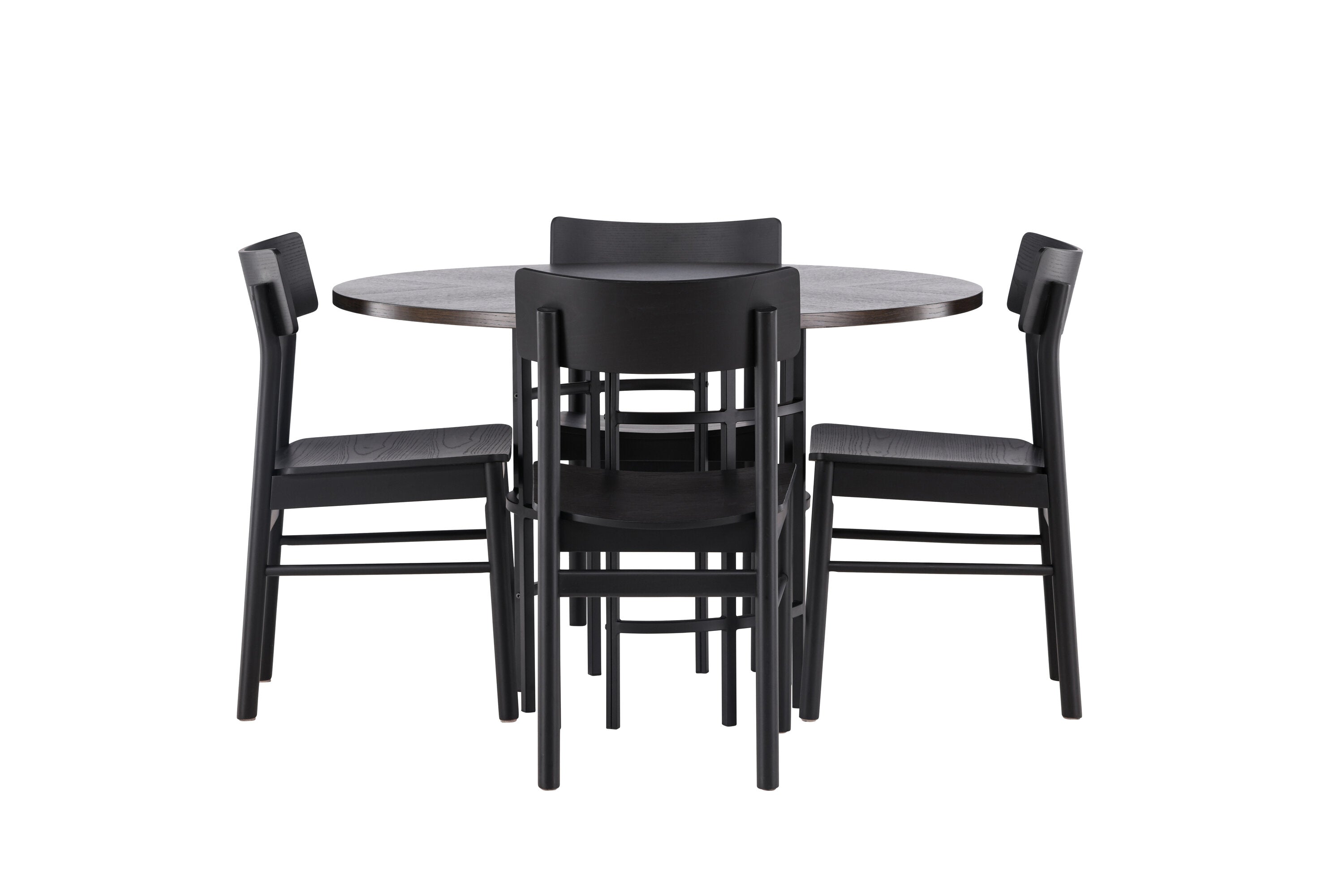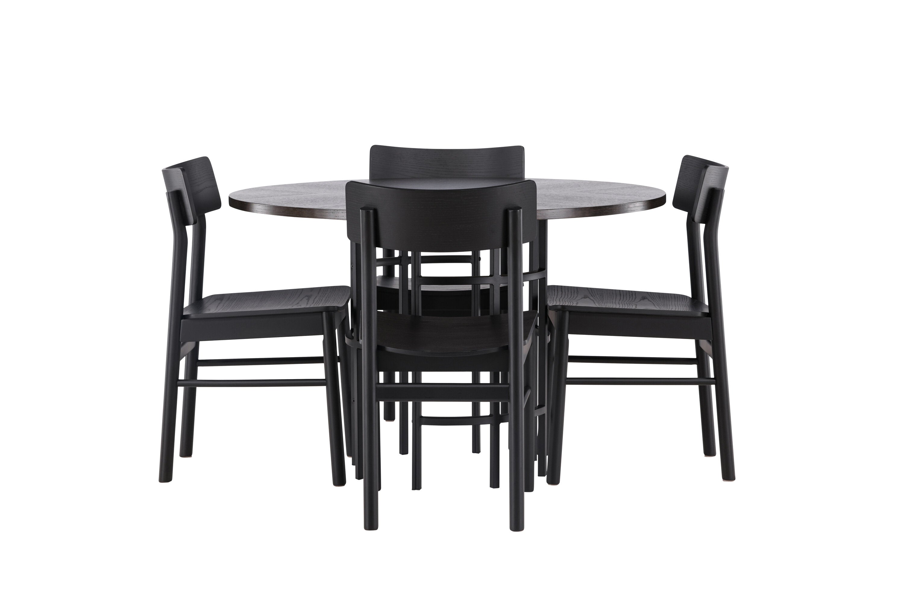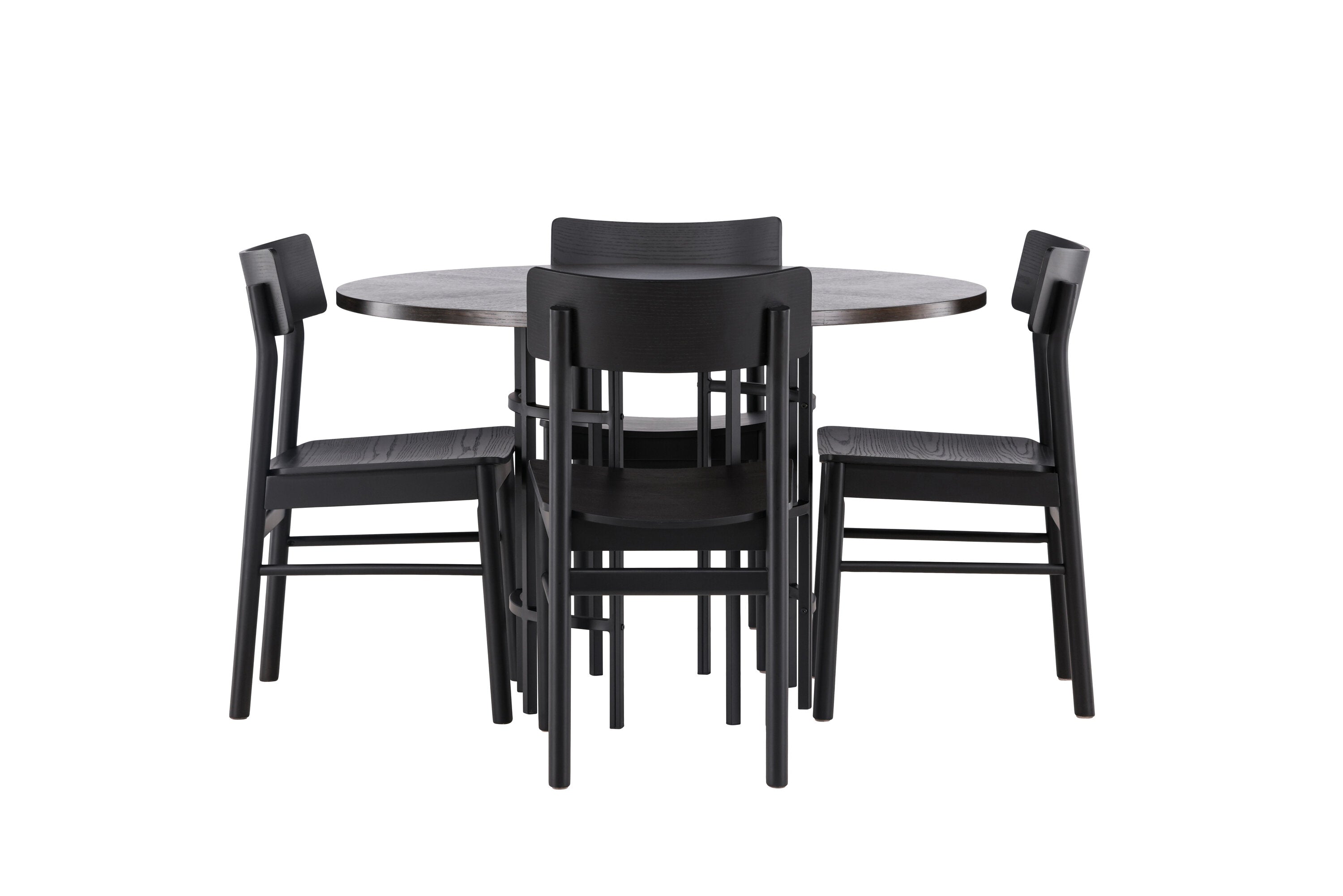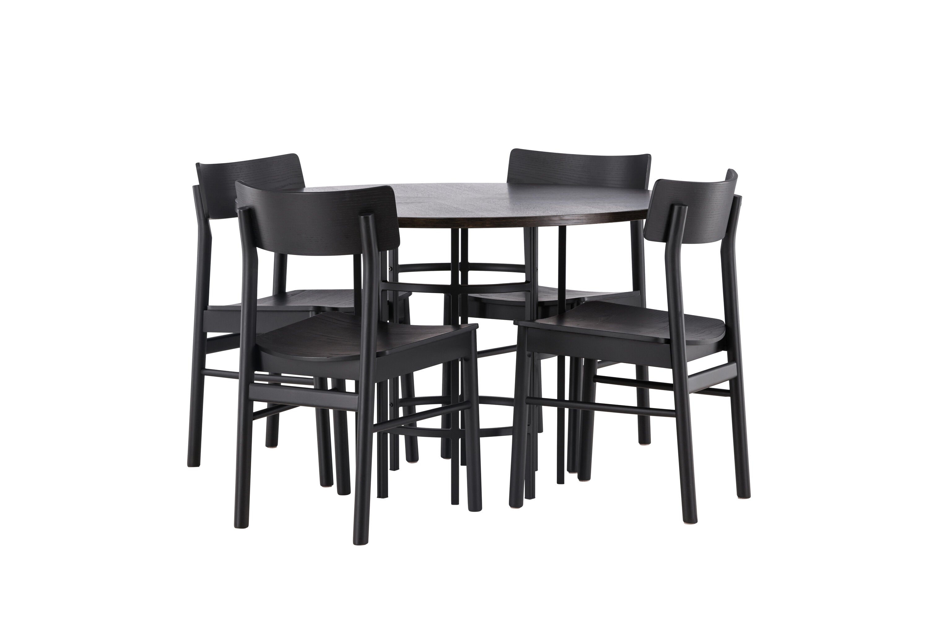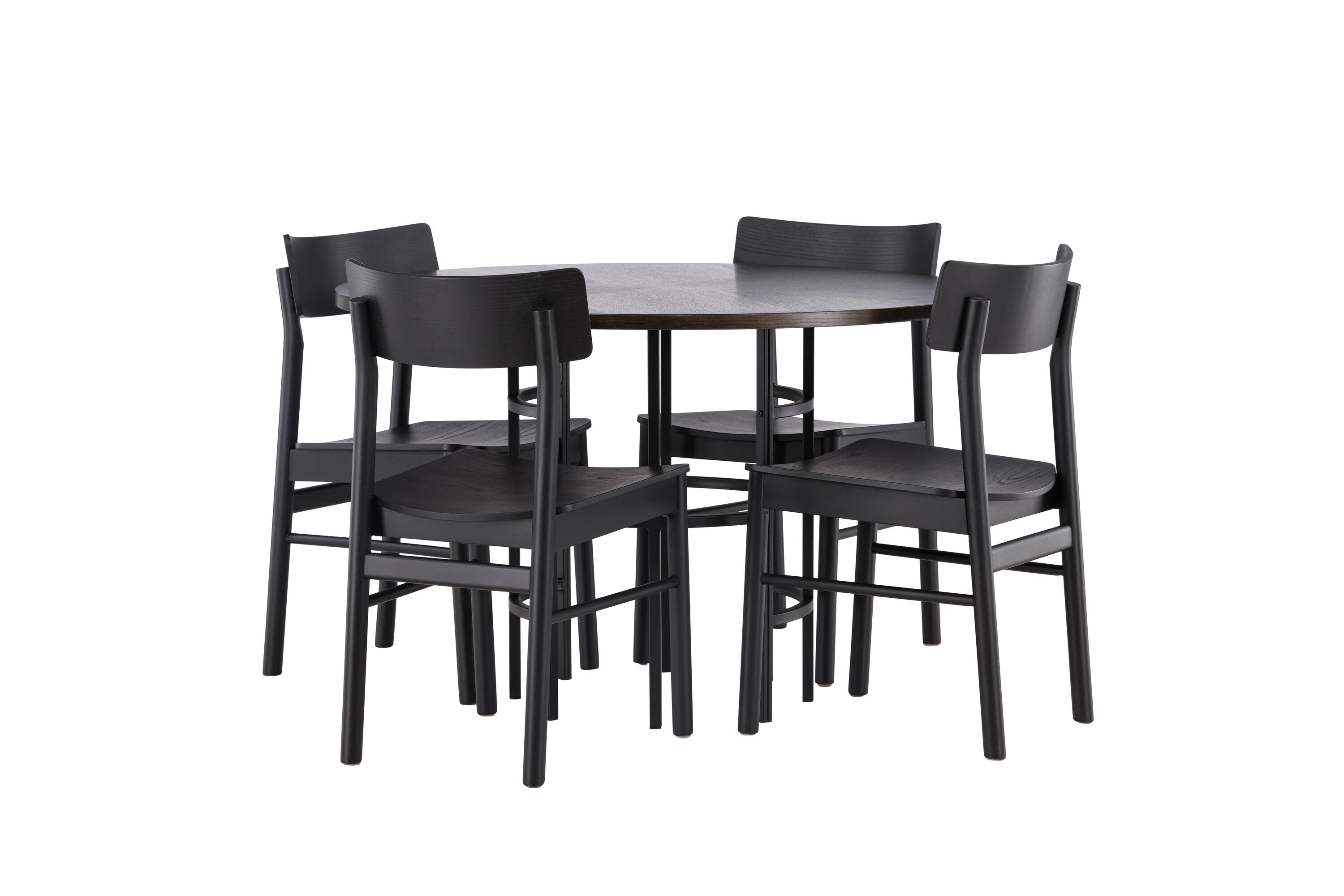 Židle Montros skvěle doplňují stůl svým jednoduchým a elegantním designem. Jsou vyrobeny z březového dřeva a sladěné v sofistikované černé barvě a dodávají celému jídelnímu setu nadčasový a elegantní vzhled. Tyto židle také nabízejí pohodlné sezení při dlouhém a uvolněném jídle s rodinou a přáteli.