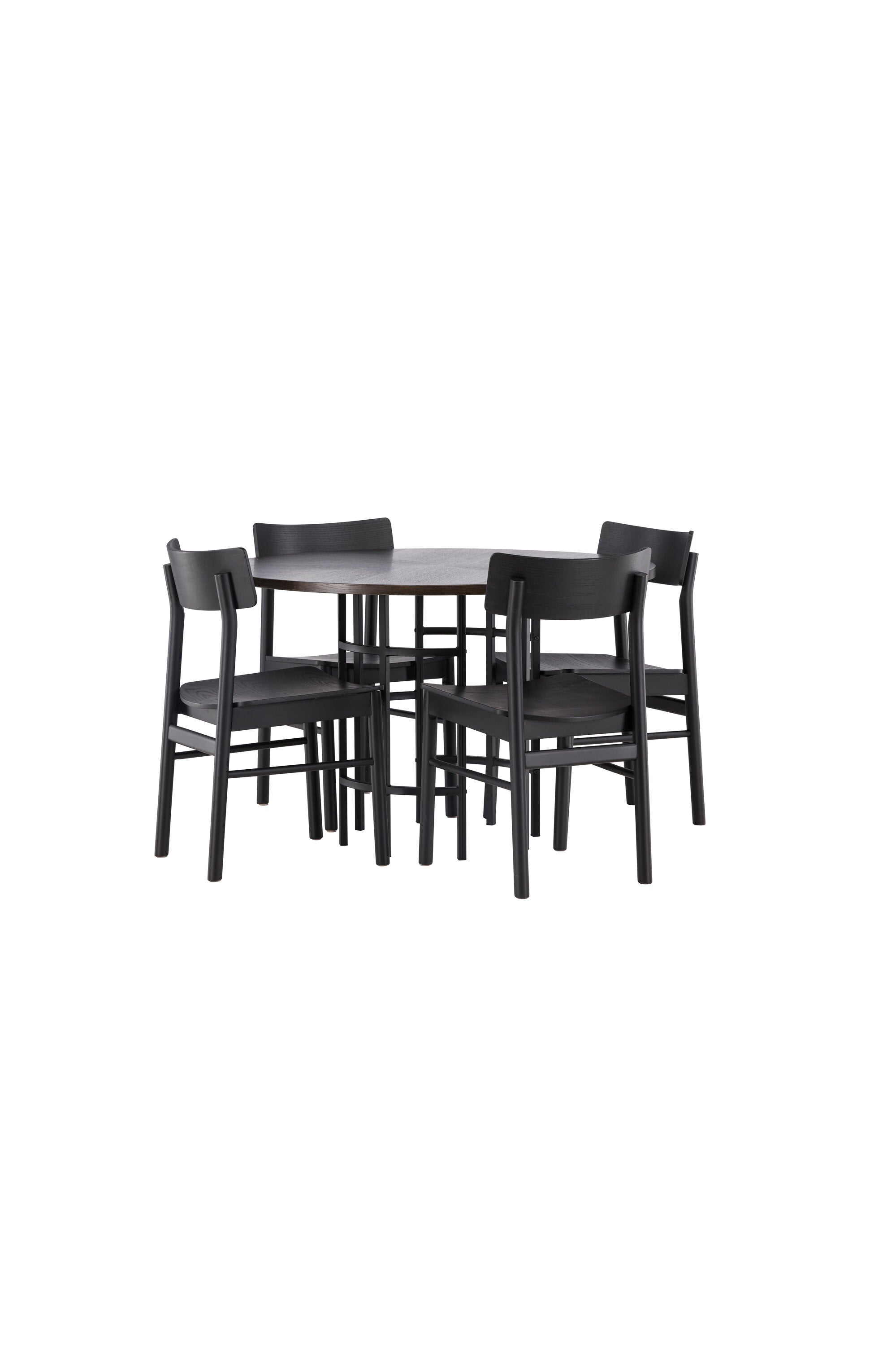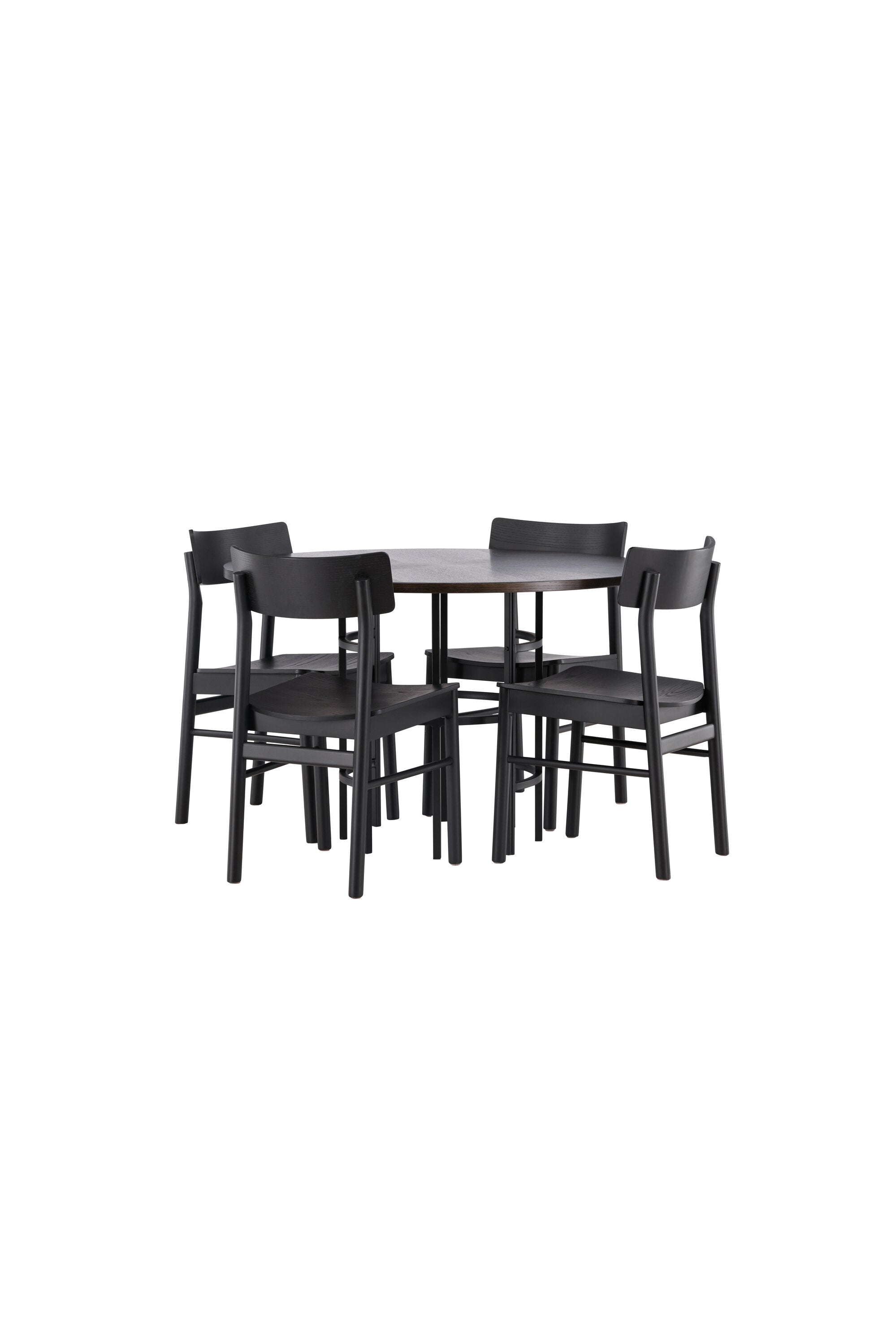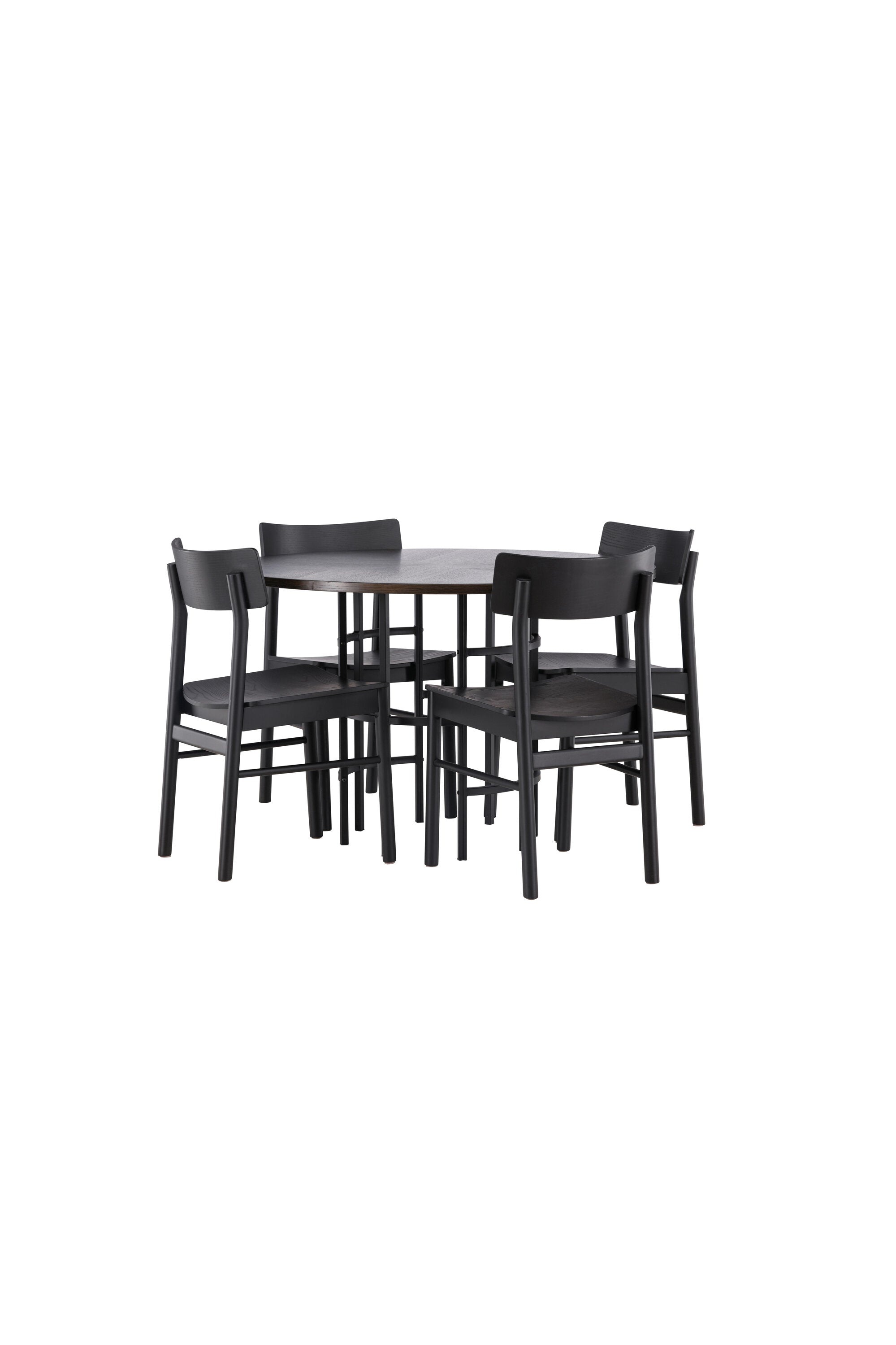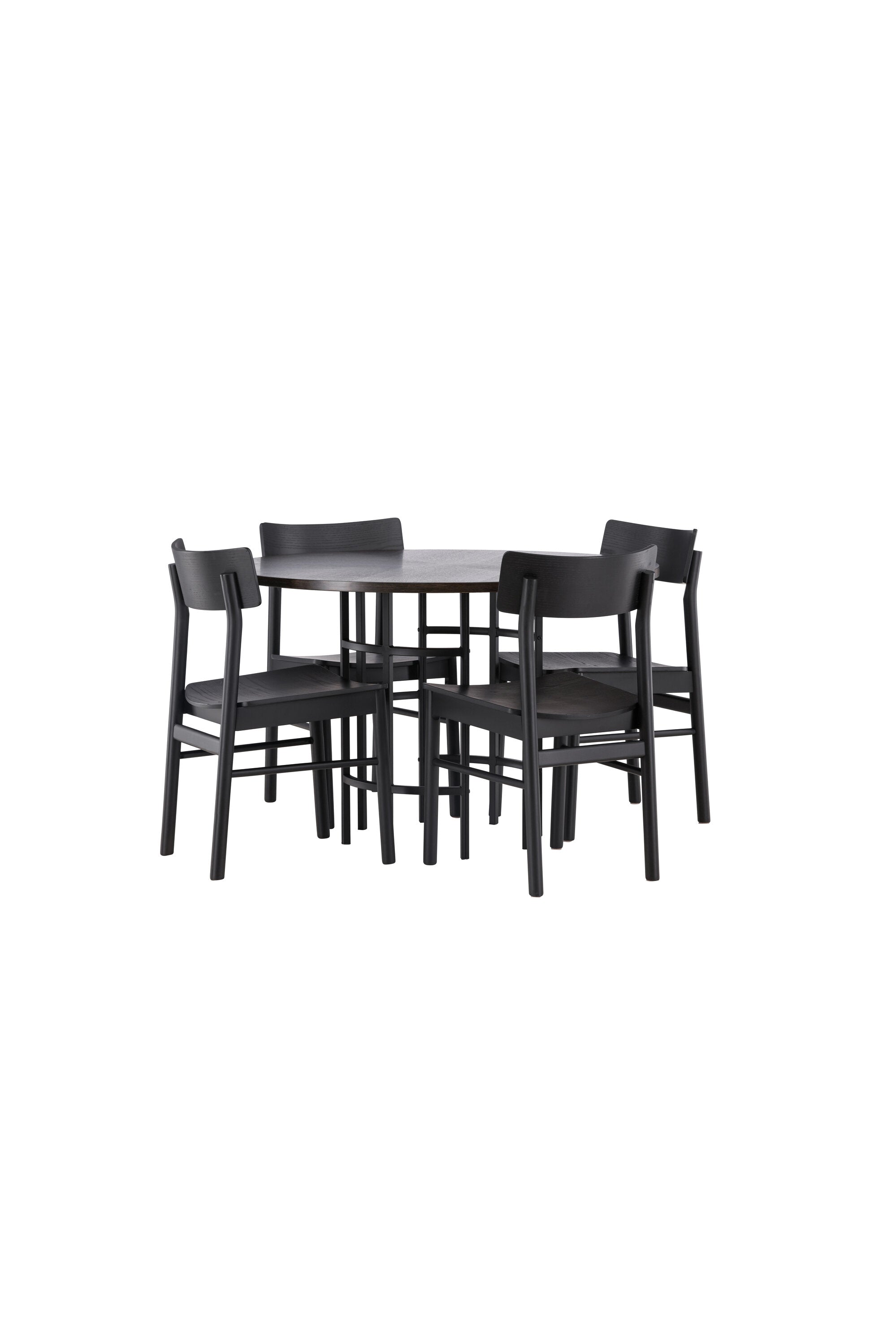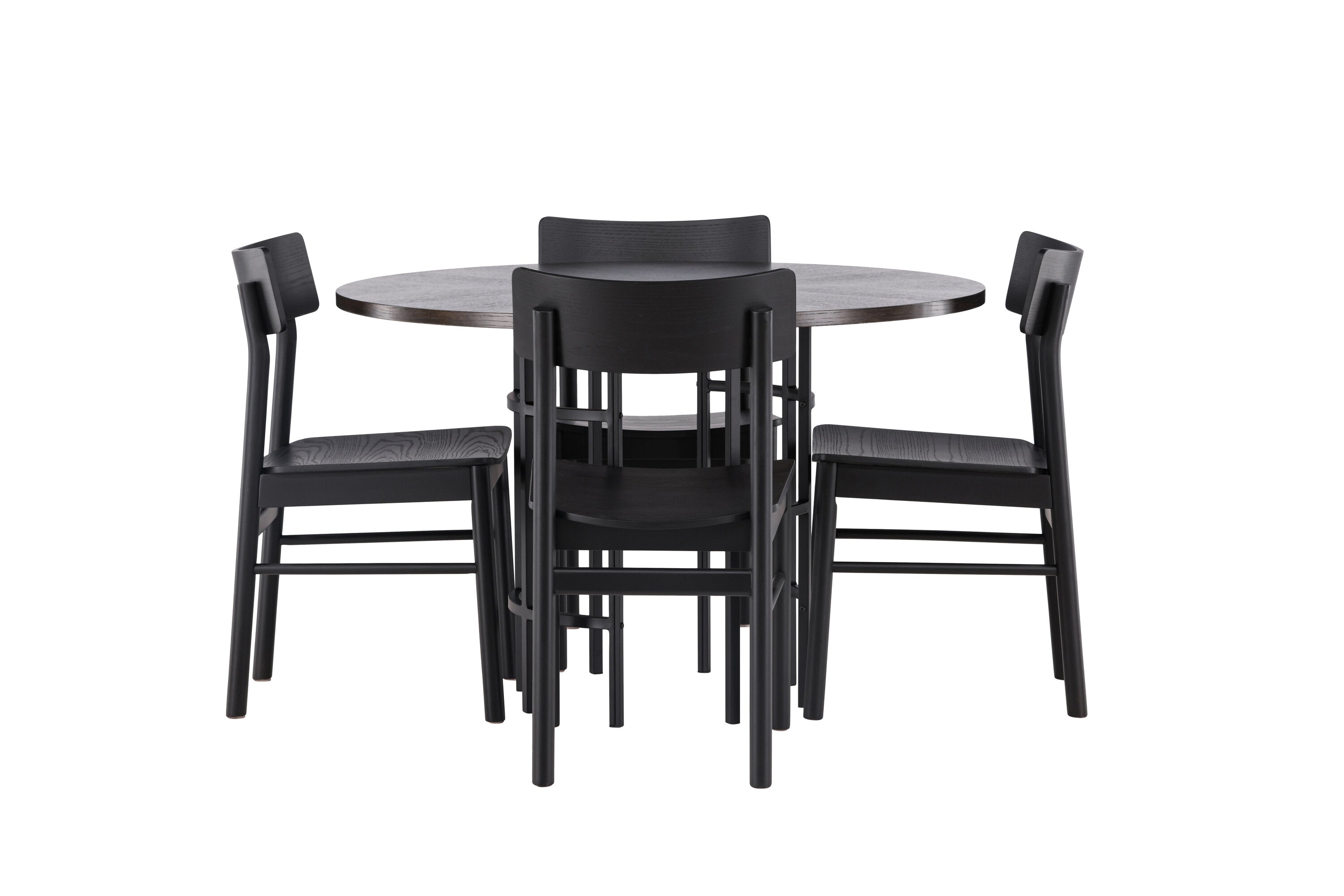 Židle Montros skvěle doplňují stůl svým jednoduchým a elegantním designem. Jsou vyrobeny z březového dřeva a sladěné v sofistikované černé barvě a dodávají celému jídelnímu setu nadčasový a elegantní vzhled. Tyto židle také nabízejí pohodlné sezení při dlouhém a uvolněném jídle s rodinou a přáteli.