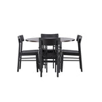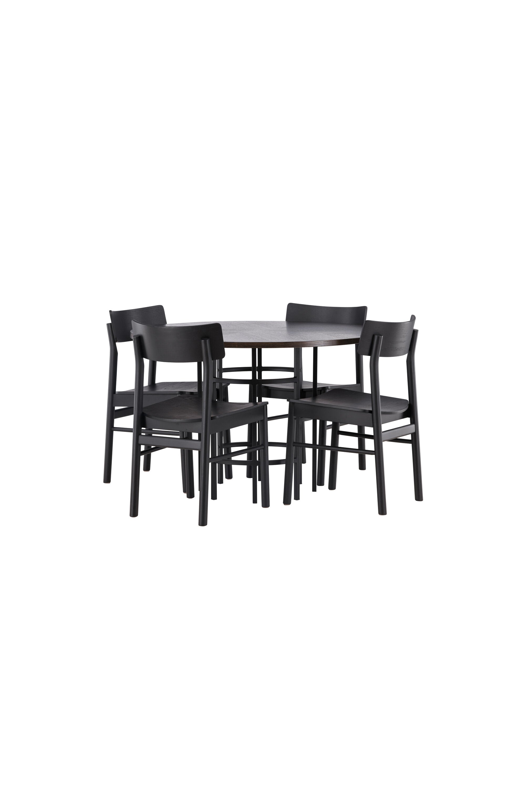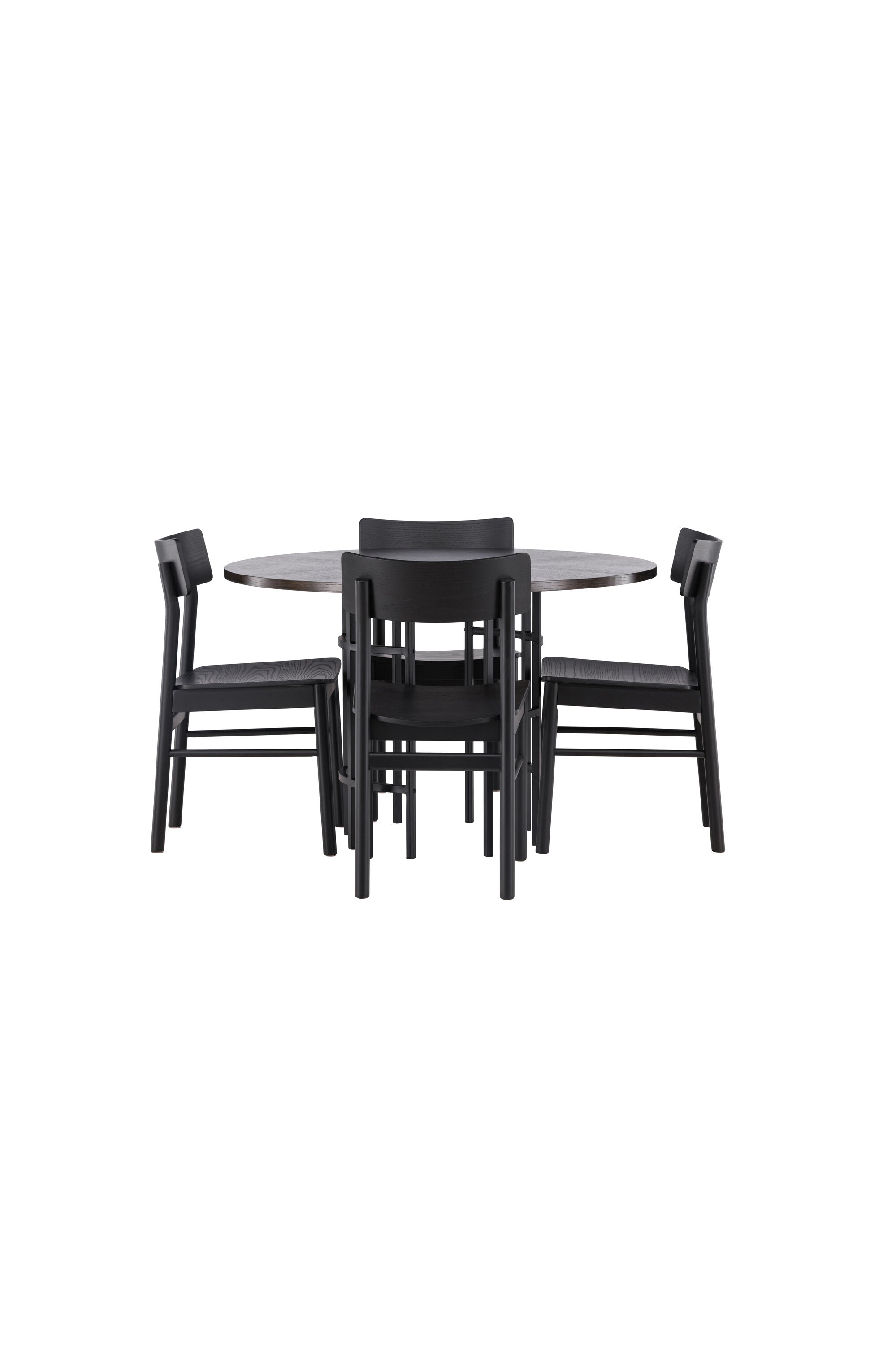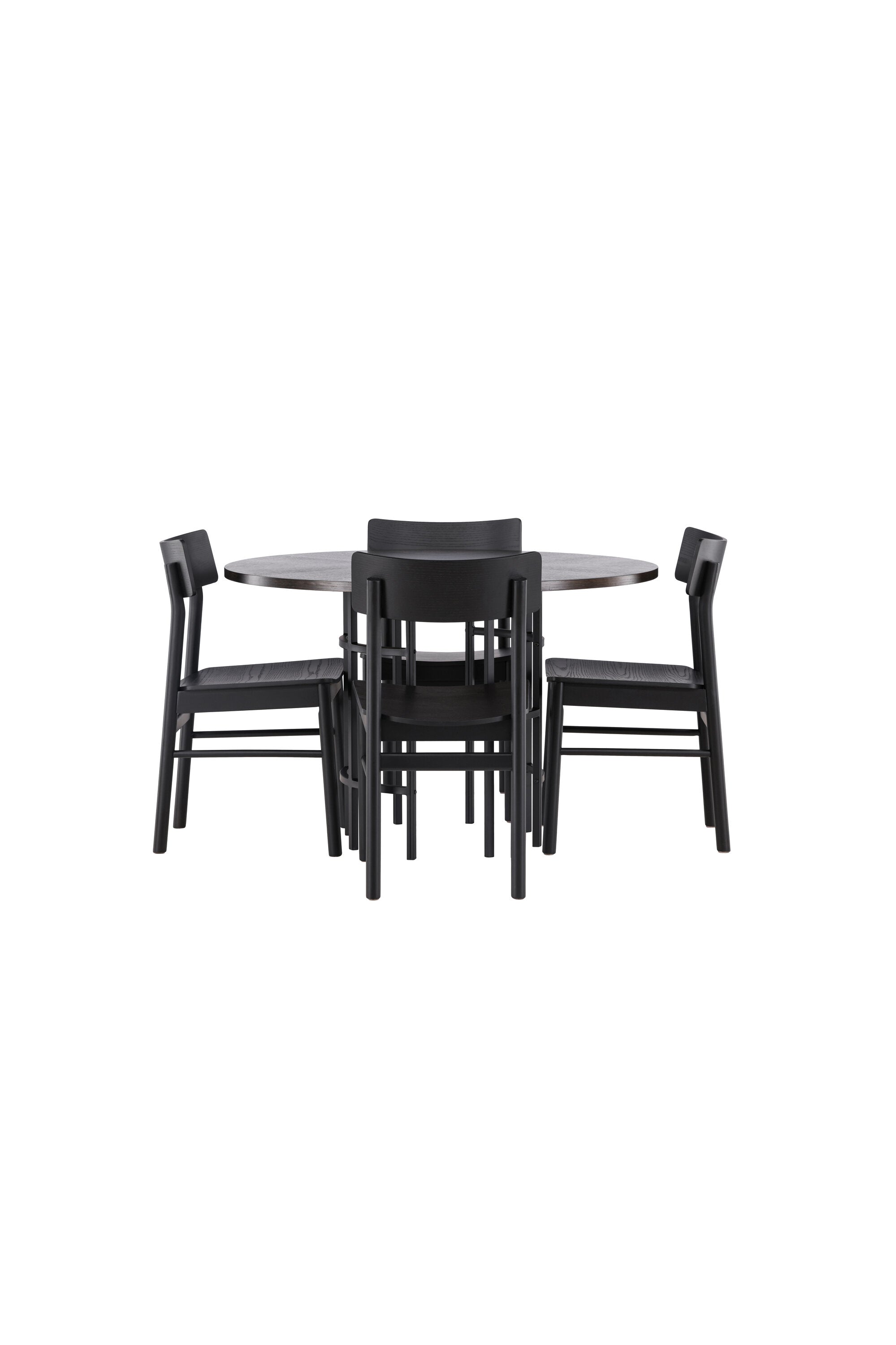 Jídelní stůl Copenhagen – černá / mocca dýha + jídelní židle Montros – přírodní / přírodní kaučuk _4