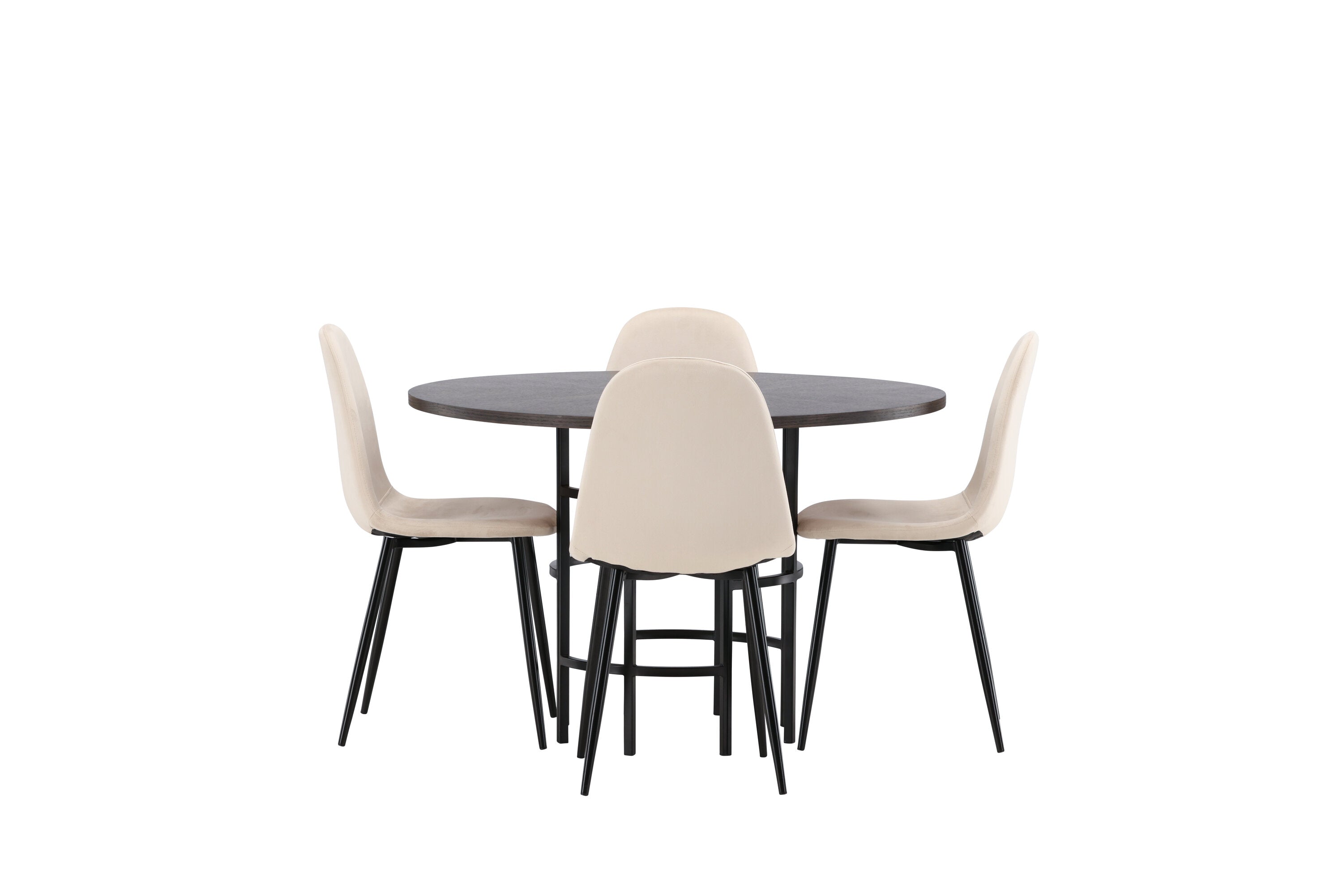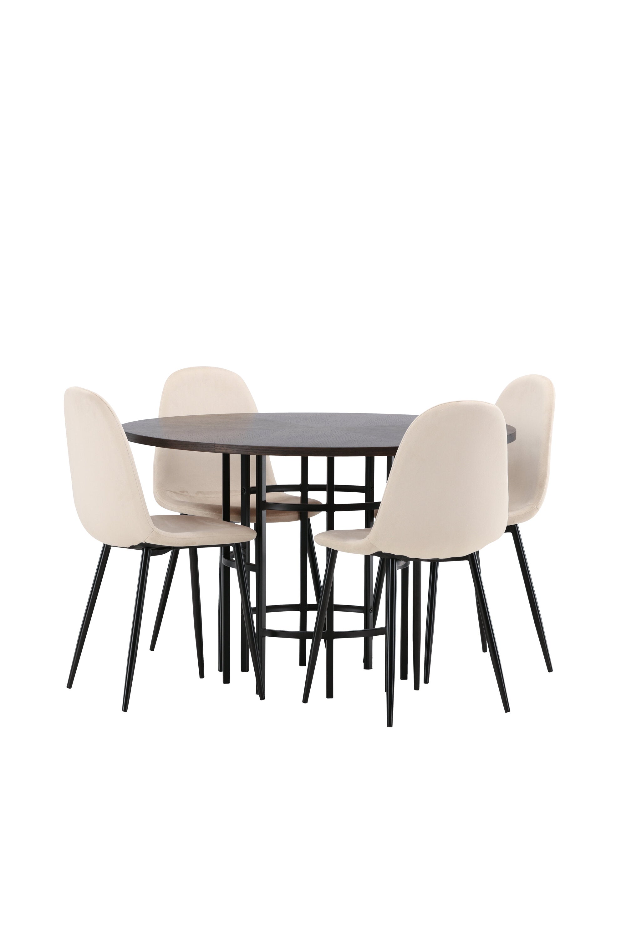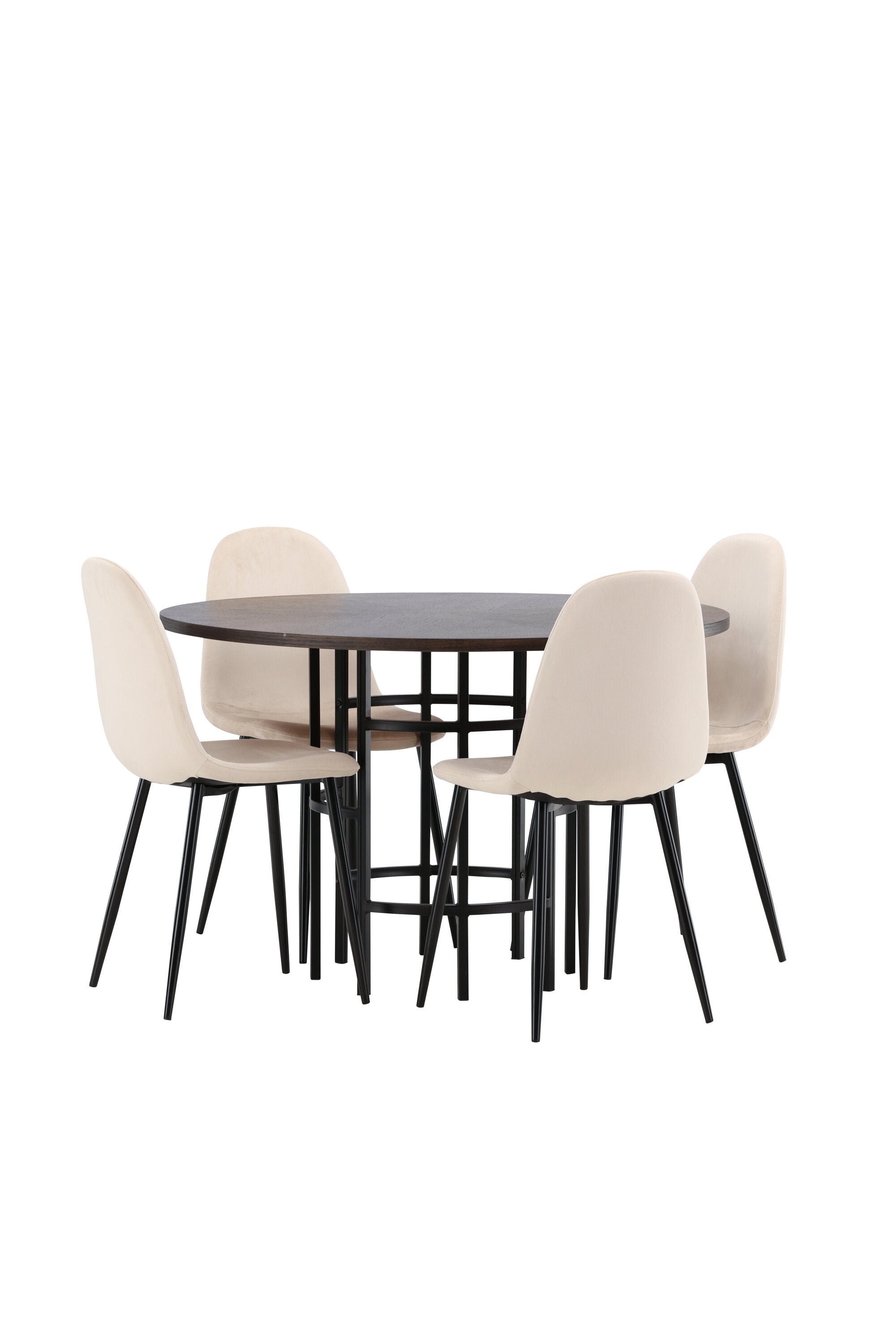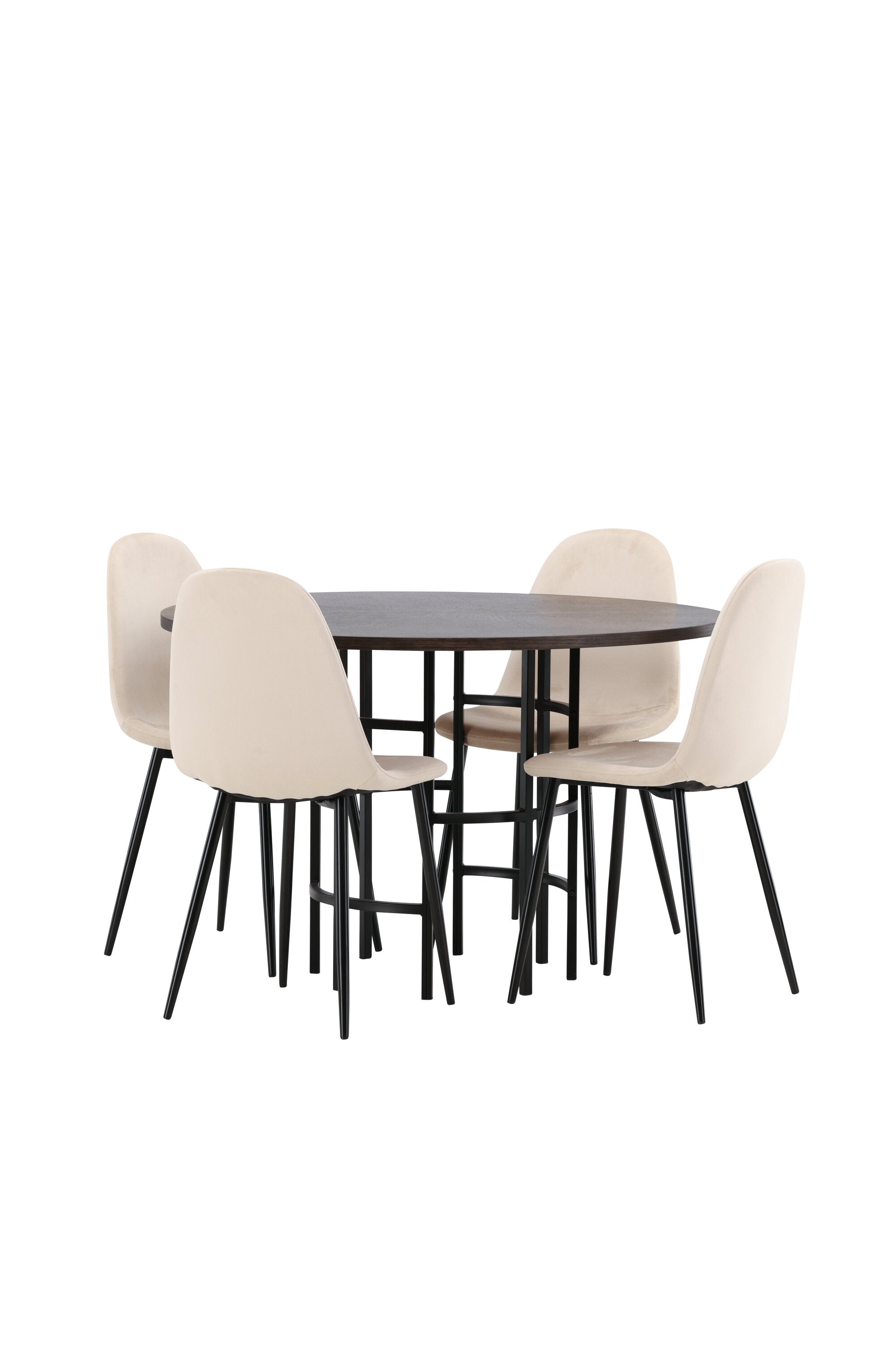 Stylový, moderní a nadčasový – jídelní skupina, která zaujme! Tento trendový jídelní stůl ze série Copenhagen patří do kolekce Furniture Fashion a má krásnou hnědou desku z MDF s dýhou a ozdobnou válcovou základnu z černého kovu. Zde společně s našimi pohodlnými jídelními židlemi ze série Polar. Židle má celočalouněný design se zaobleným opěradlem a sedákem z béžové sametové látky s měkkým polstrováním a nohami z černého kovu s práškovým nástřikem. Nedělejte kompromisy mezi pohodlím a designem!