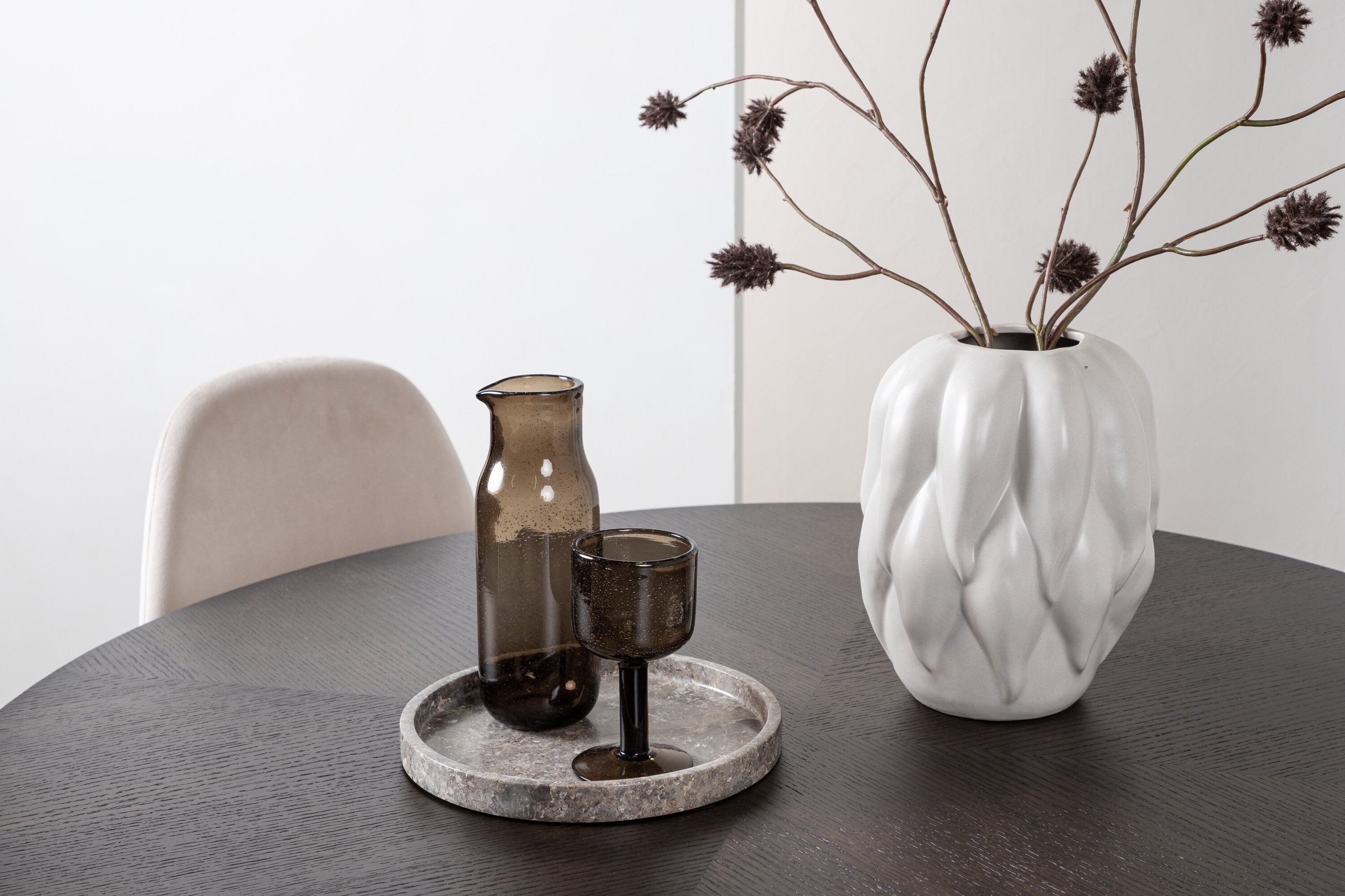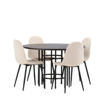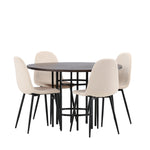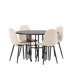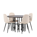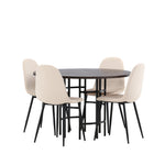 Jídelní stůl Copenhagen – černá / mocca dýha + jídelní židle Polar – černé nohy / béžový samet _4