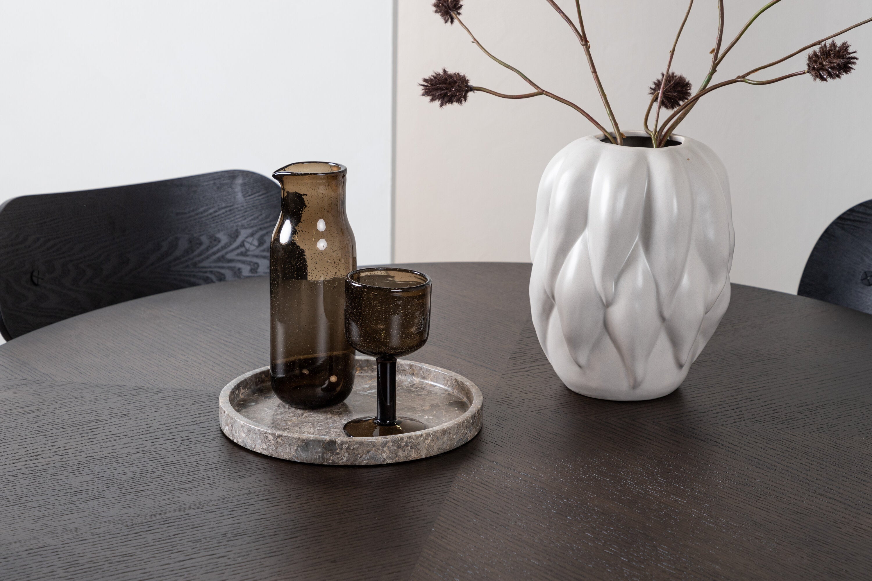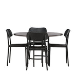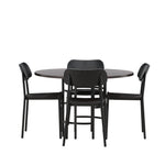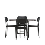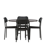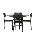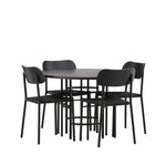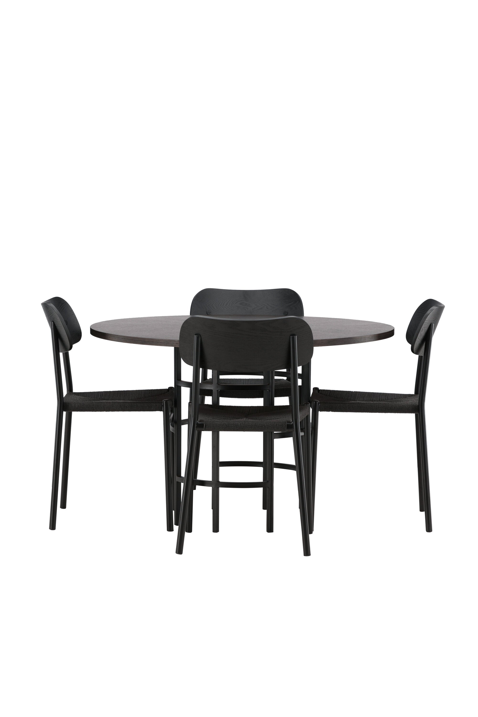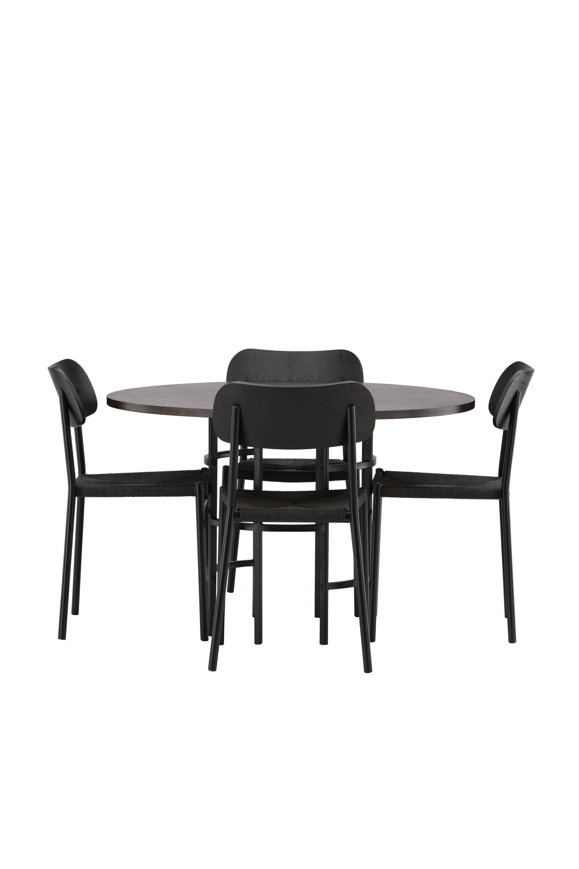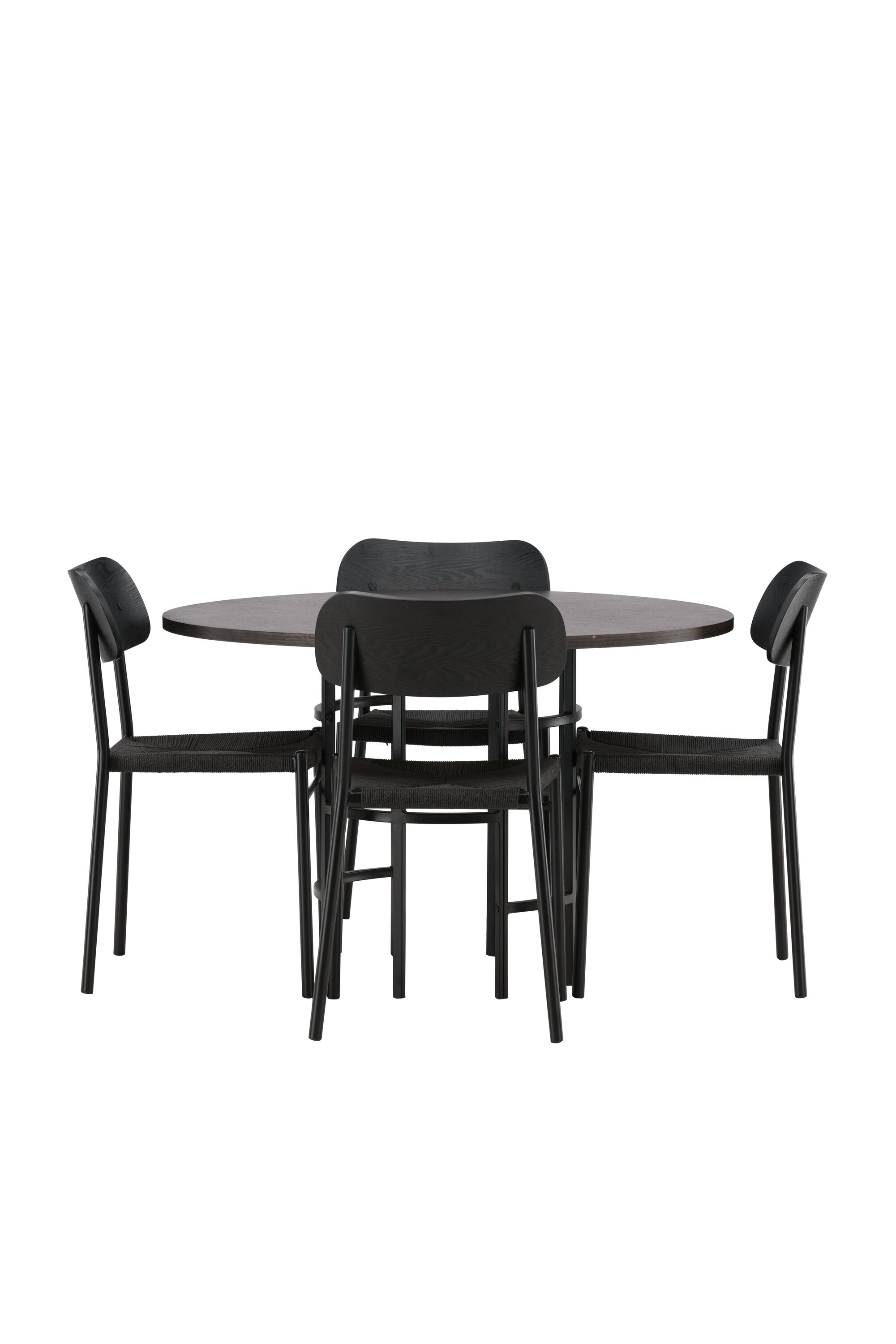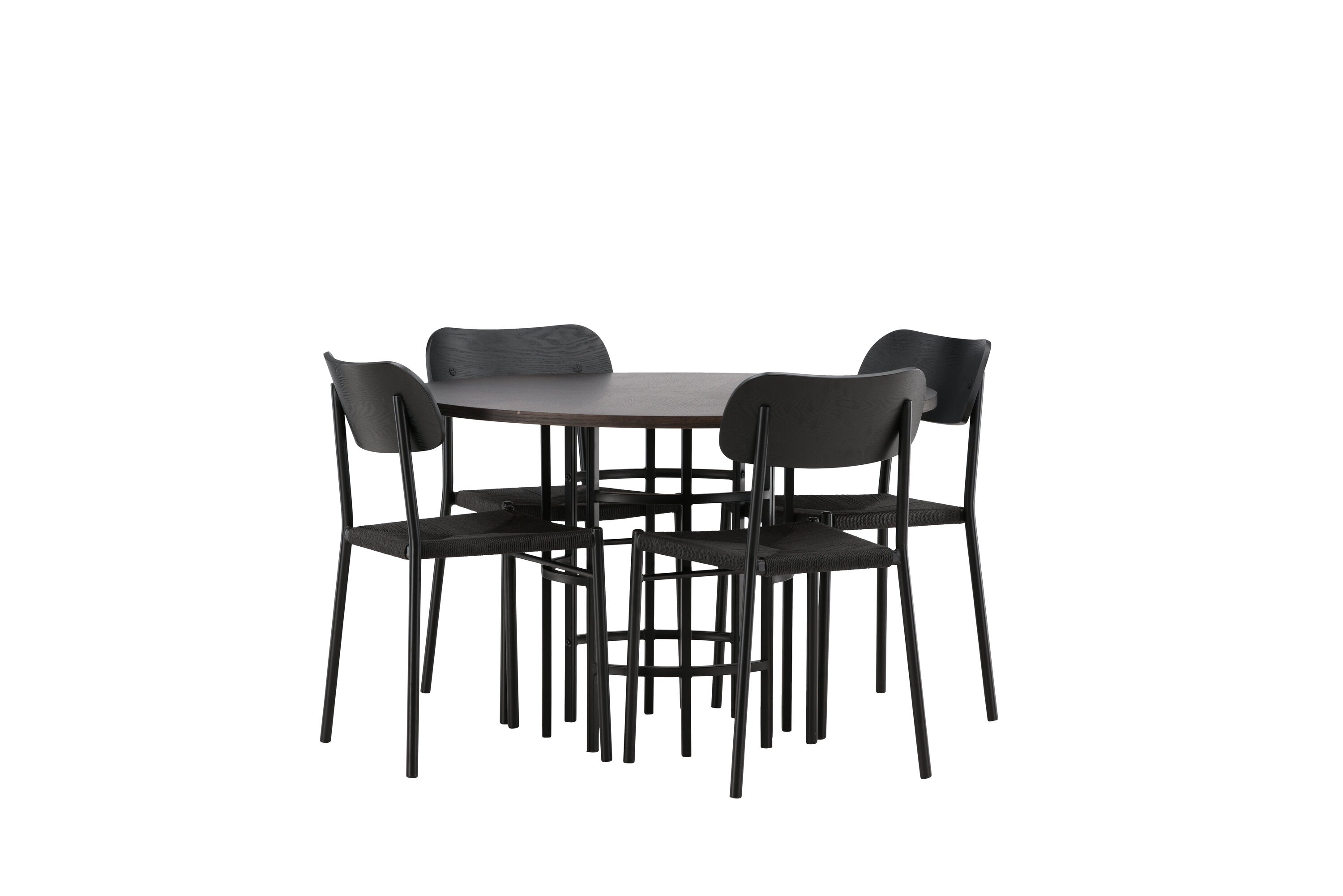 Vytvořte si okouzlující středobod v srdci vašeho domova! Máme zde naše stylové jídelní židle ze série Polly, navržené zcela podle trendů minimalistických tvarů. Zadní část je z černé MDF s dýhou, sedák z módní černé tkaniny z přírodních vláken a nohy jsou z kovu s černým práškovým nástřikem. Zde společně s naším oblíbeným jídelním stolem Copenhagen. Stůl z kolekce Furniture Fashion má krásnou hnědou desku z MDF s dýhou a ozdobnou, válcovou podnož v černém kovu. Stejně známé jako odolné vůči trendům!