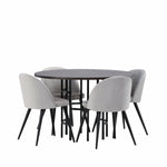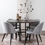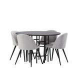 Jídelní stůl Copenhagen – černá / mocca dýha + sametová jídelní židle – světle šedá / černá _4