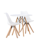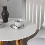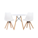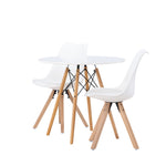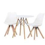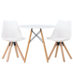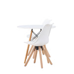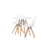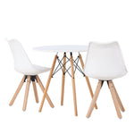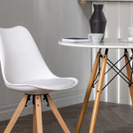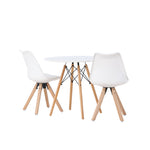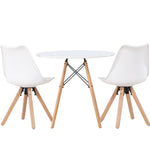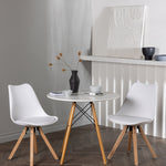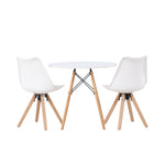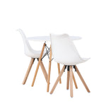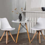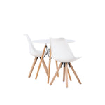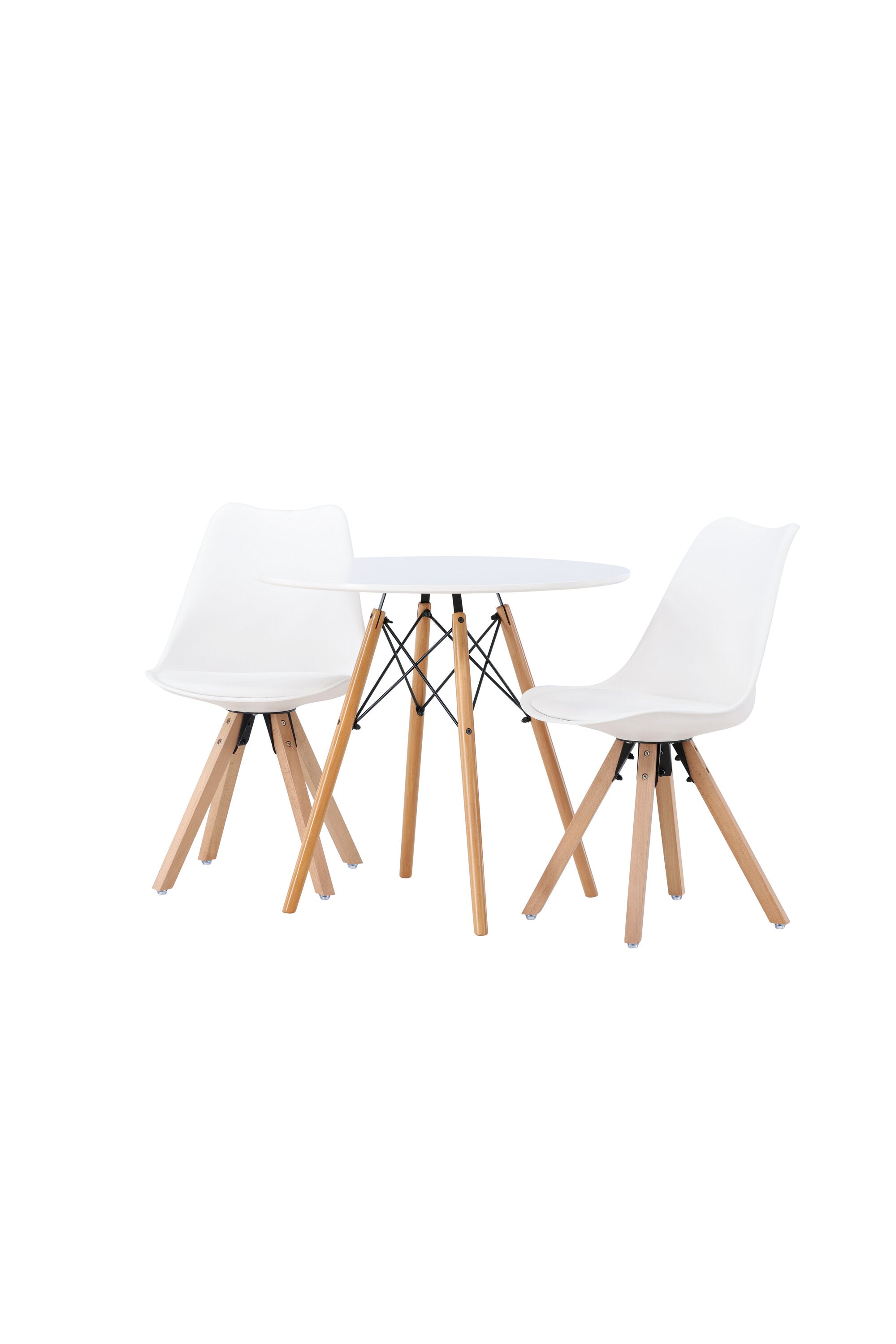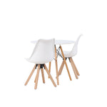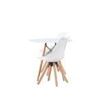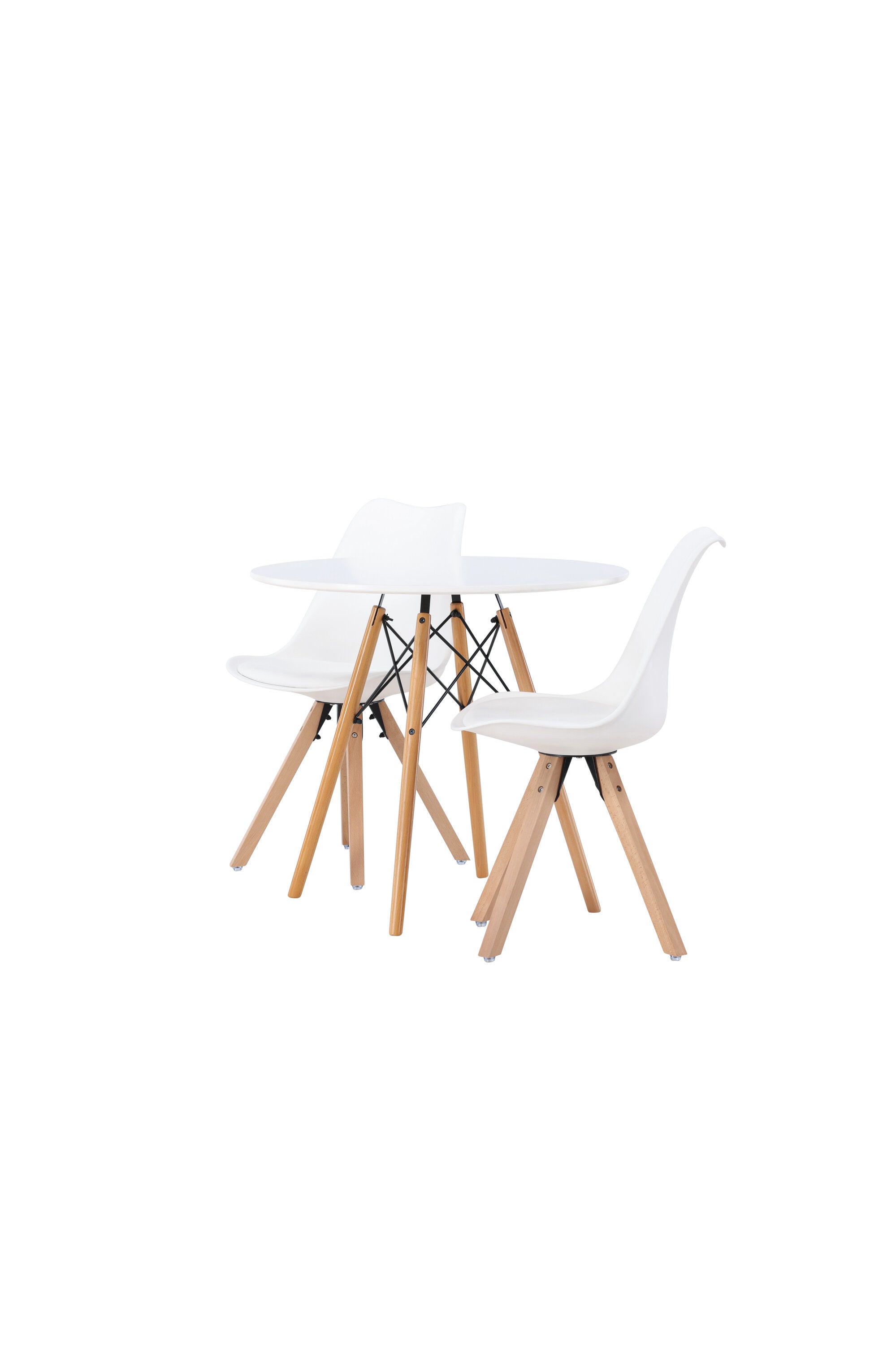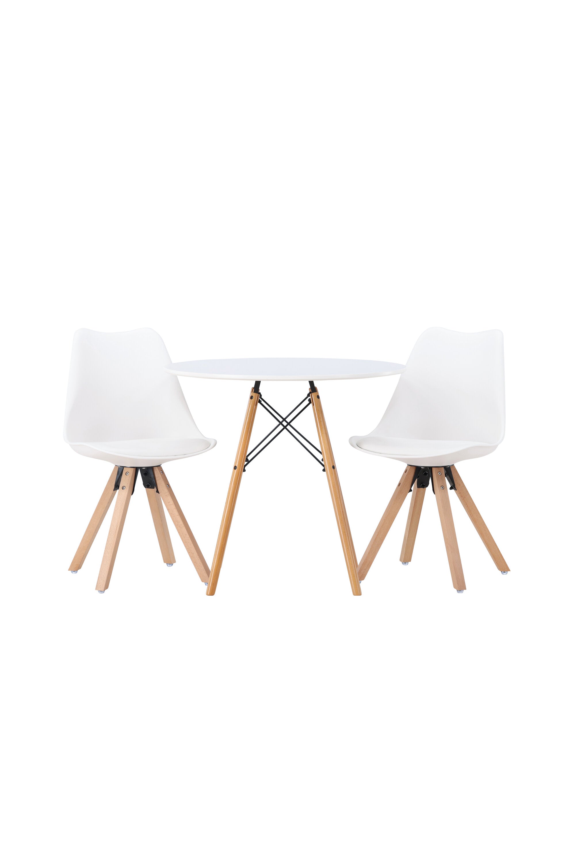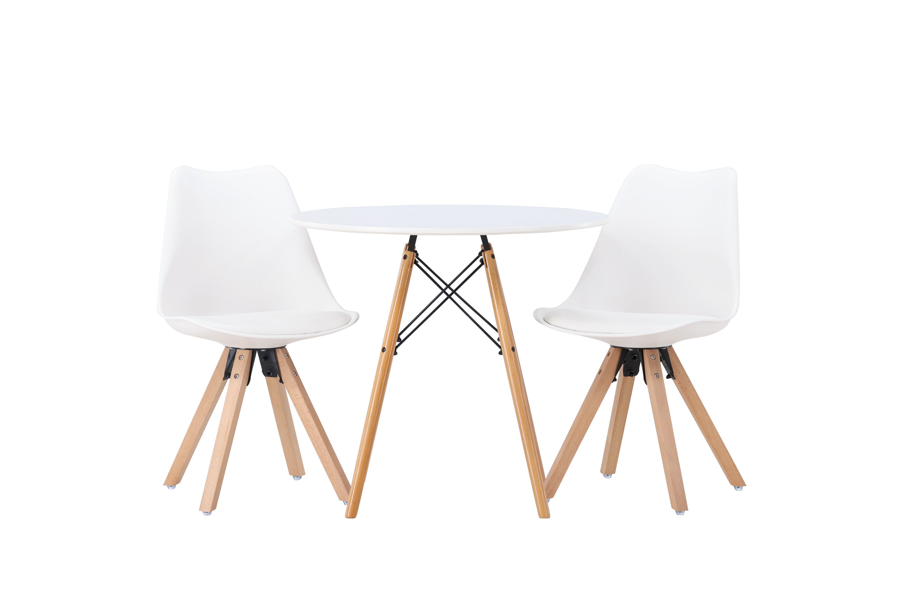 Skvělá jídelní skupina v malé velikosti! Kulatý jídelní stůl Danburi má klasický design s kulatou stolní deskou z bílé MDF a mírně rozšířenými nohami z bukového dřeva s ozdobnými detaily v černé oceli. Zde spolu s našimi fantastickými, bílými jídelními židlemi ze série Zeno. Židle má příjemný design s opěradlem a sedákem z bílého plastu, vestavěným sedákem s vysokým komfortem a čtyřmi rozšířenými nohami ze dřeva. Už to nebude lepší než tohle! Průměr stolu: 60 cm.