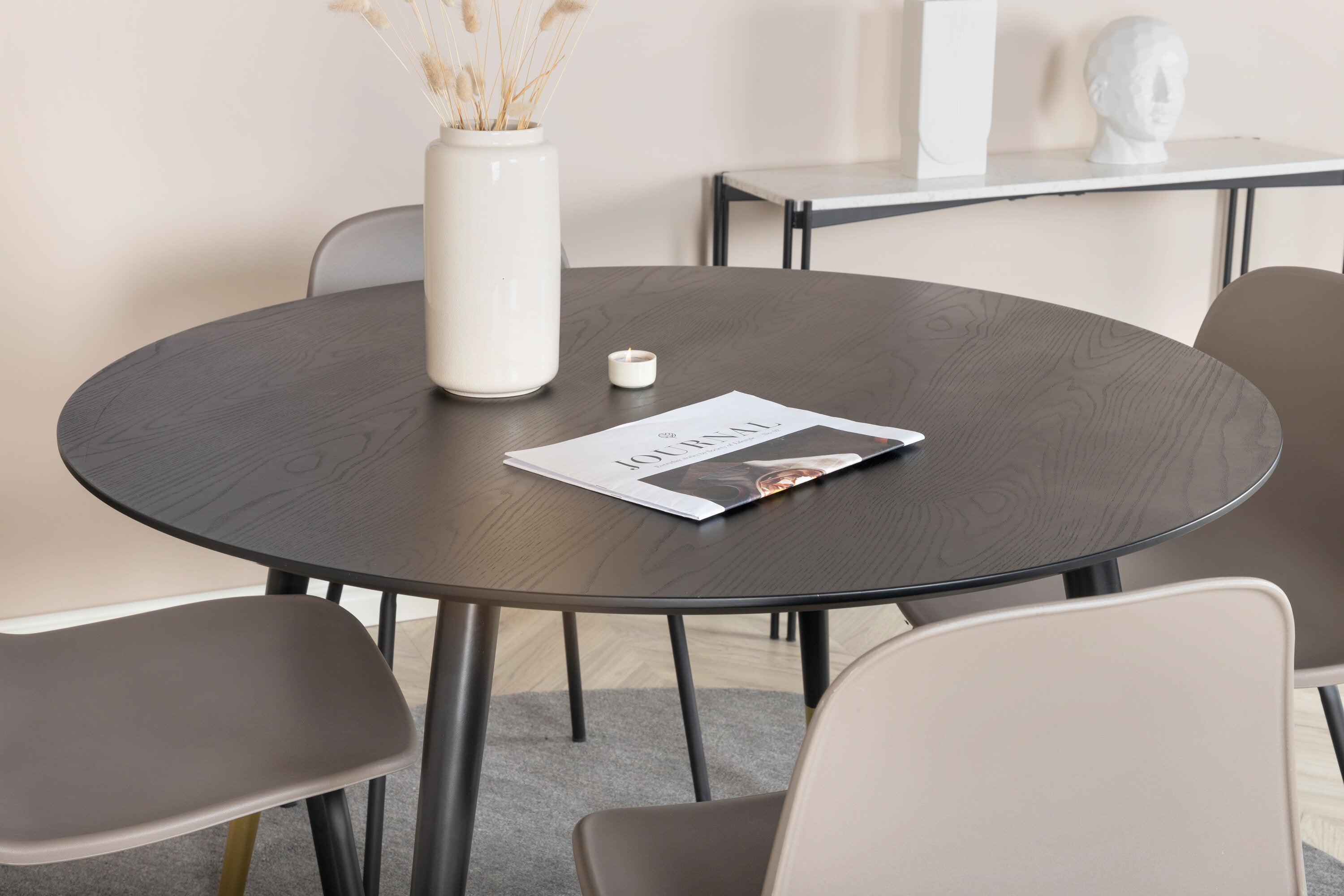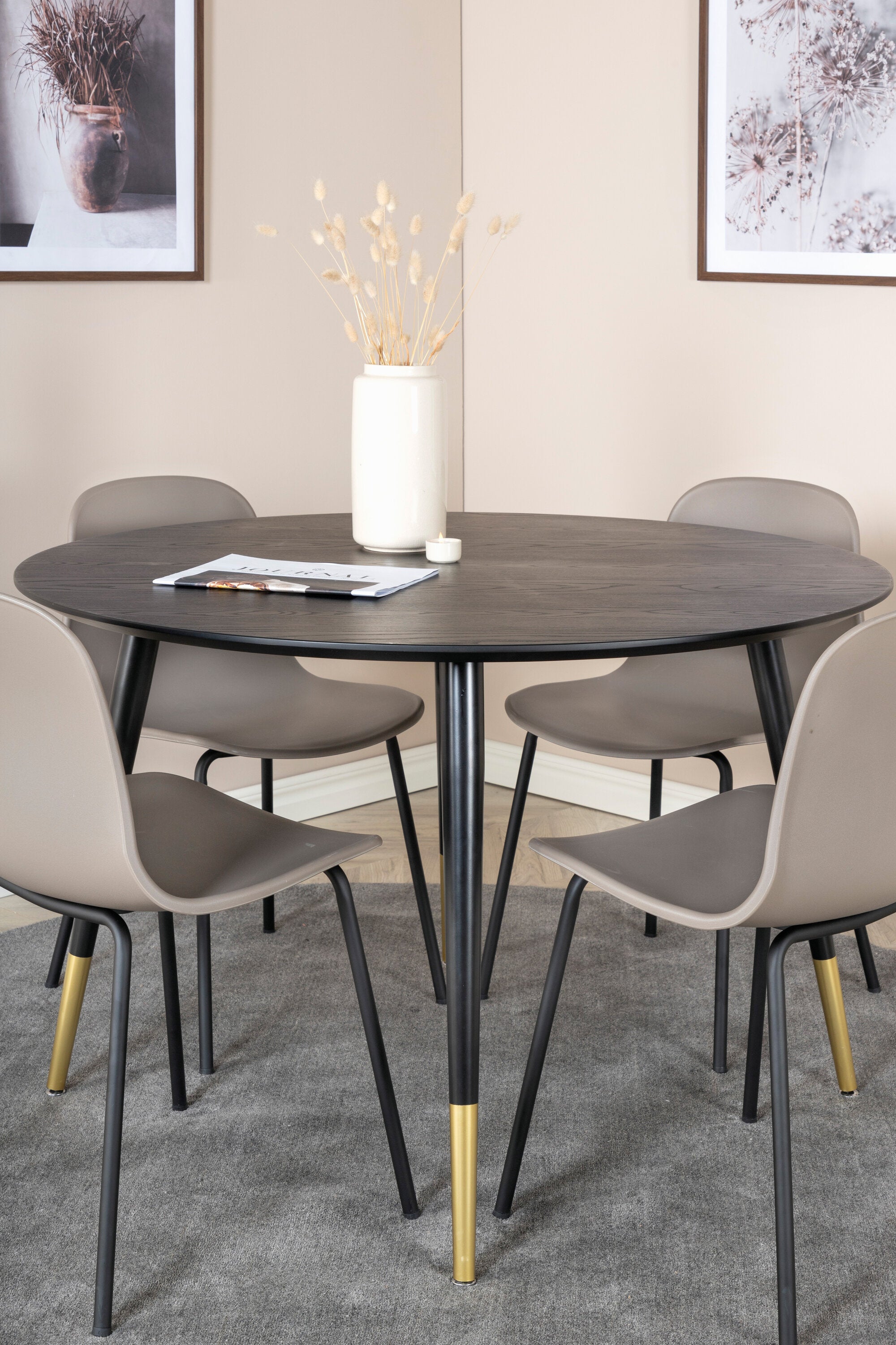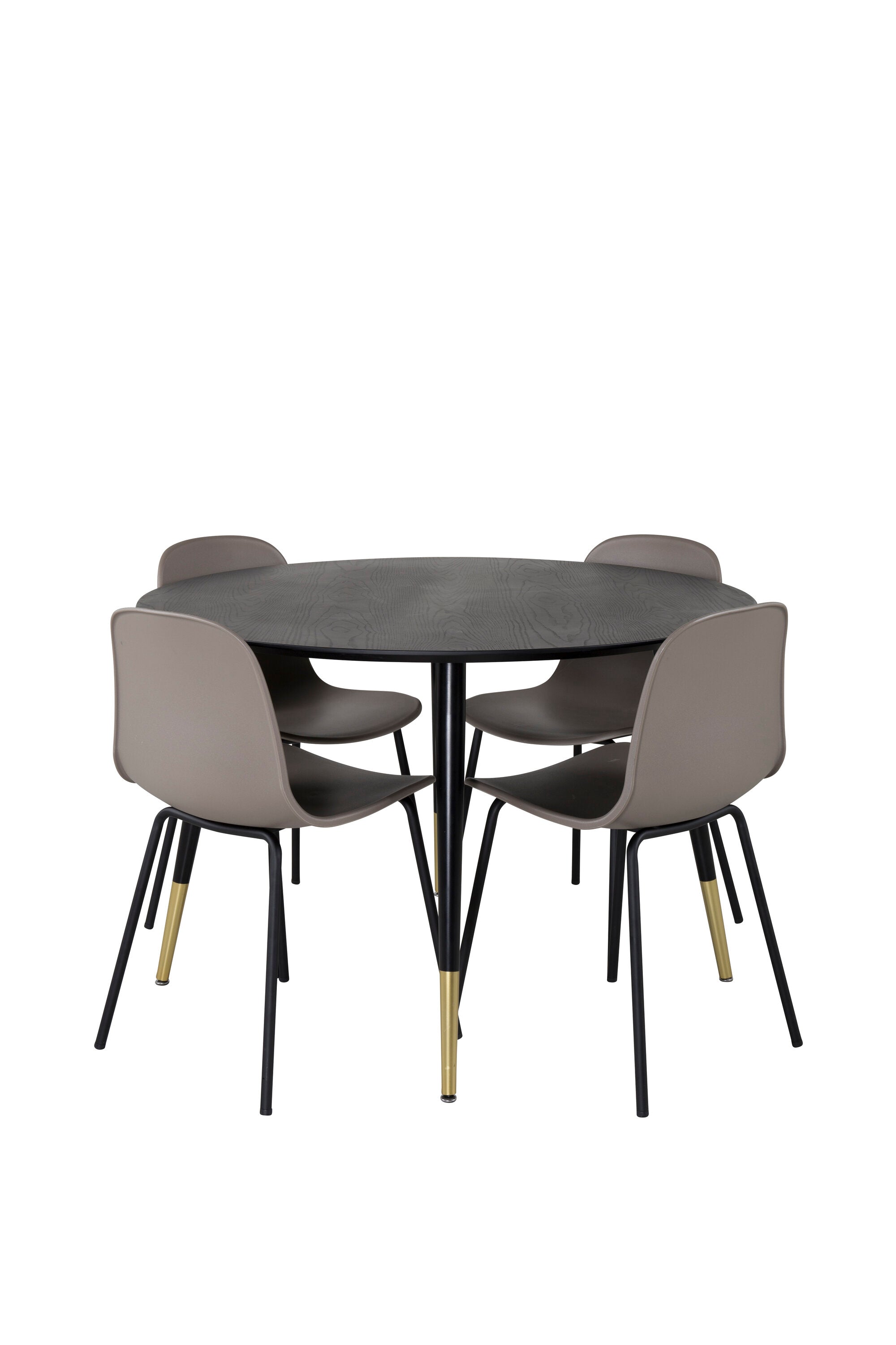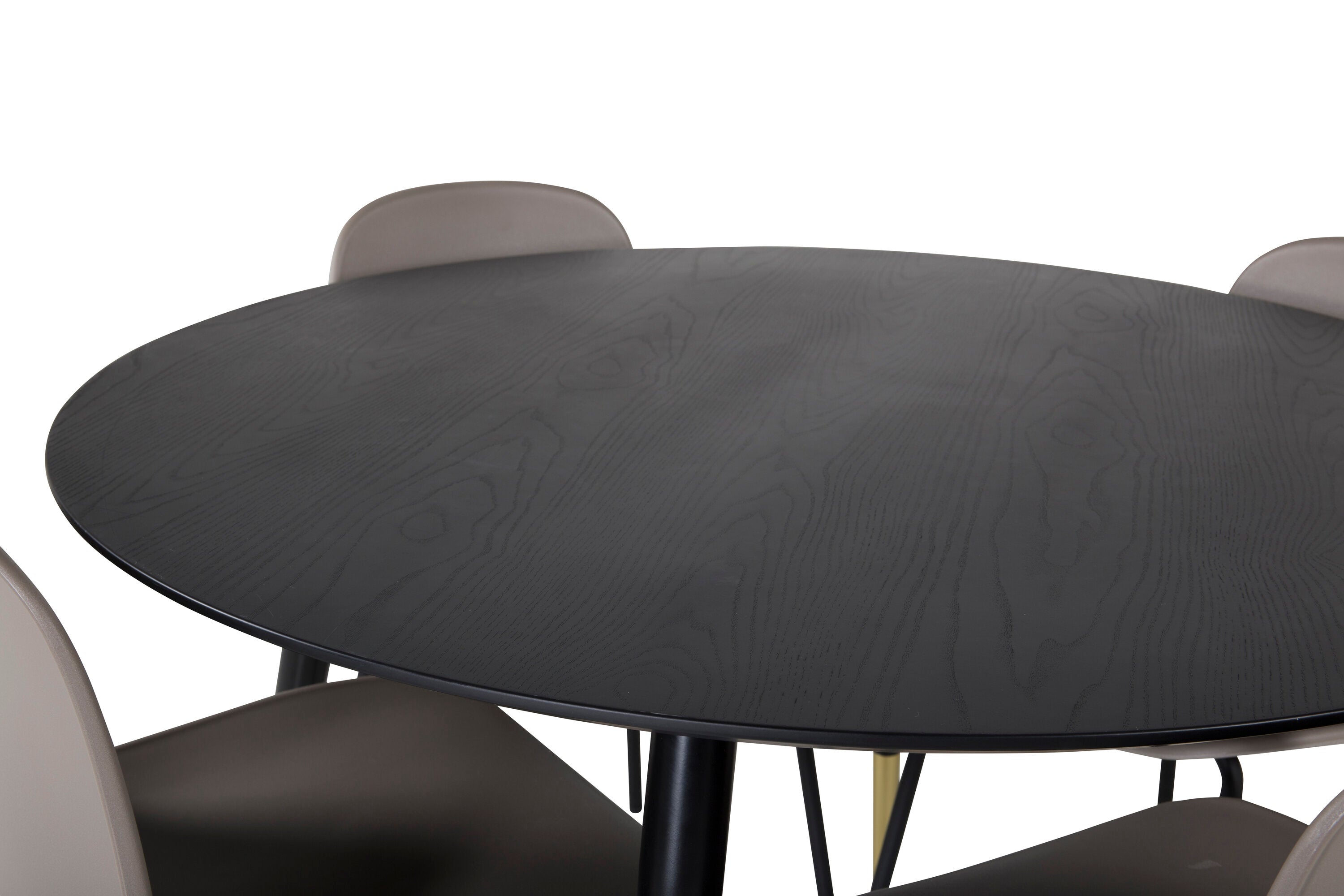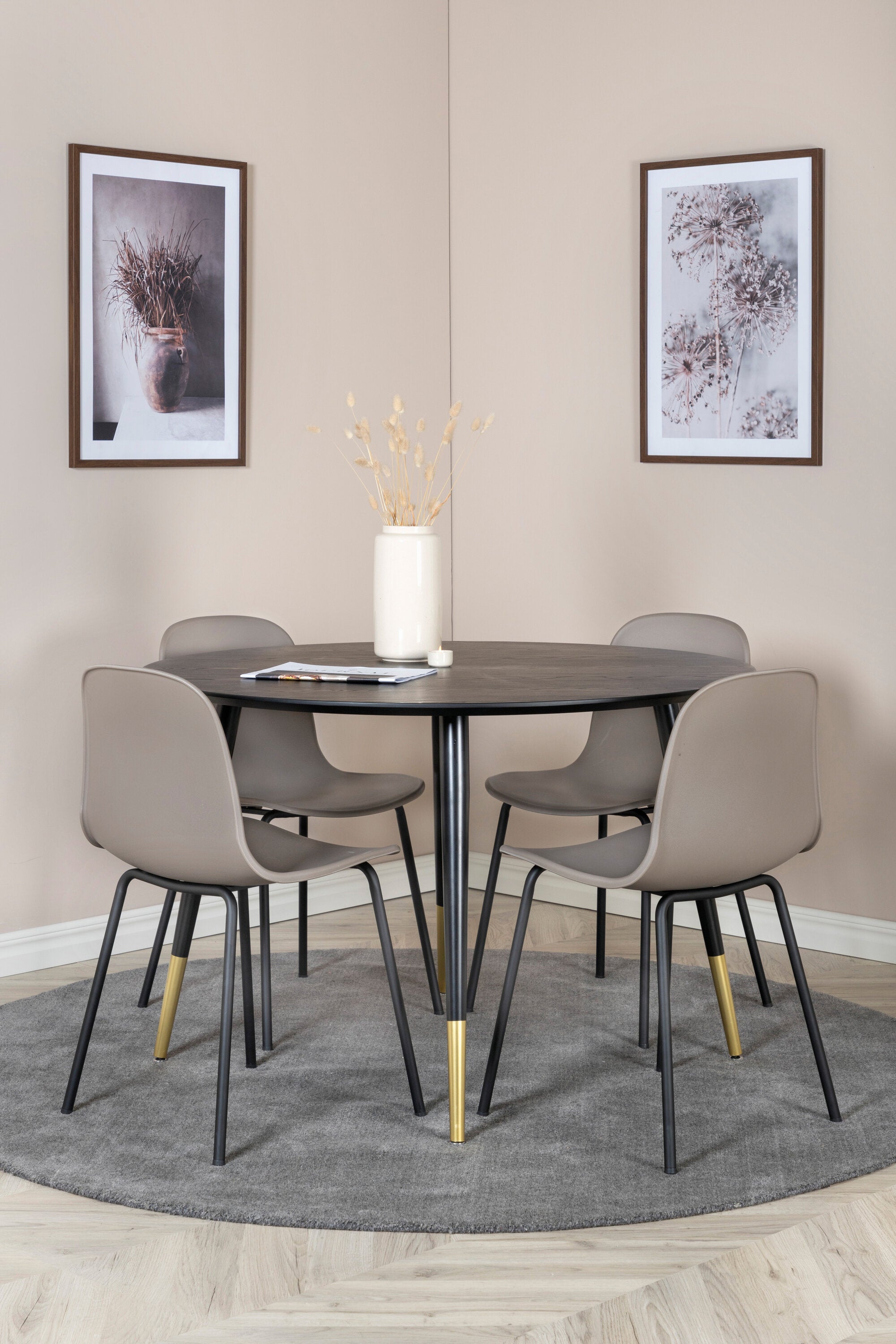Jídelní stůl Dipp - 115 cm - Černá / Černá mosaz + Arktická jídelní židle - Černé nohy - Khaki Plast_4