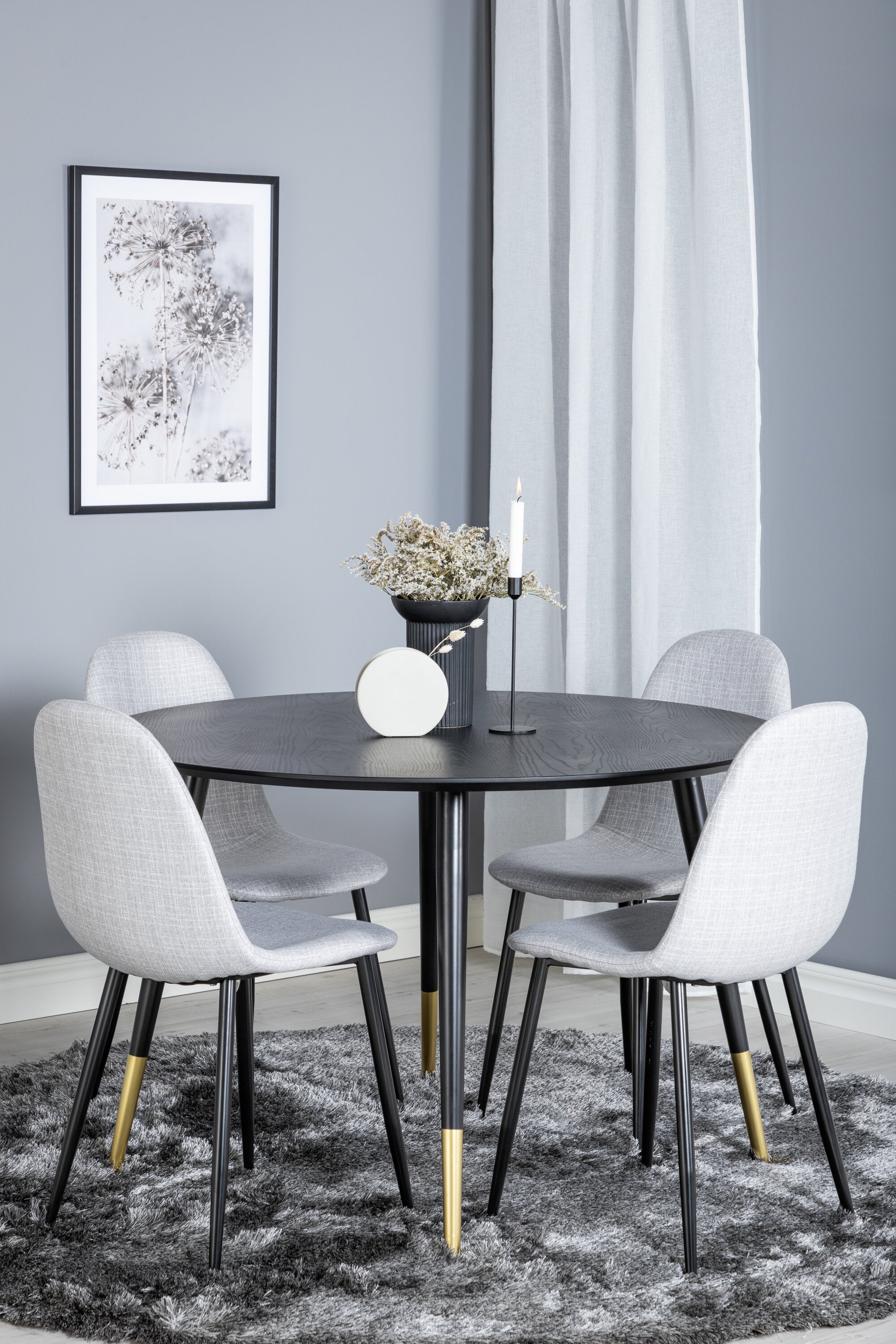 Jídelní stůl Dipp - 115 cm - Černá / Černá mosaz + Polar Jídelní židle - Černé nohy - Světle šedá látka_4