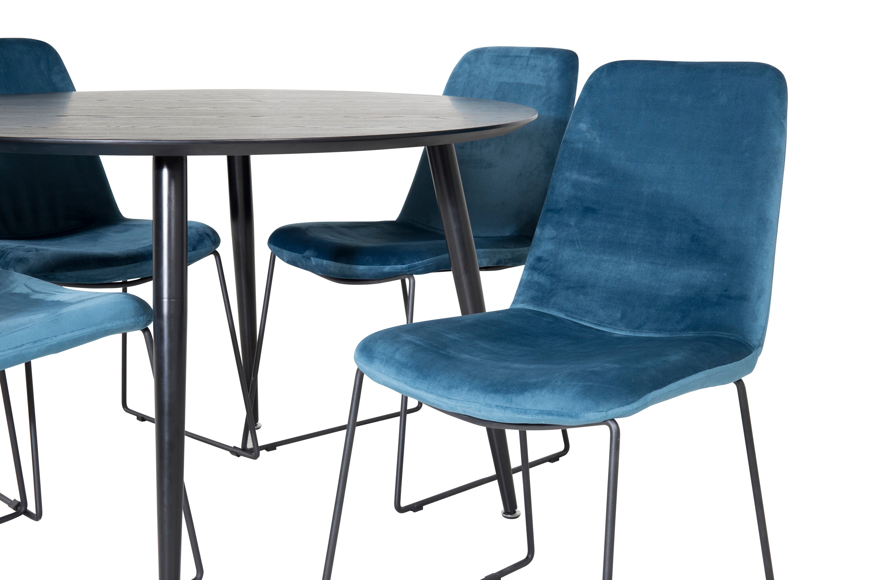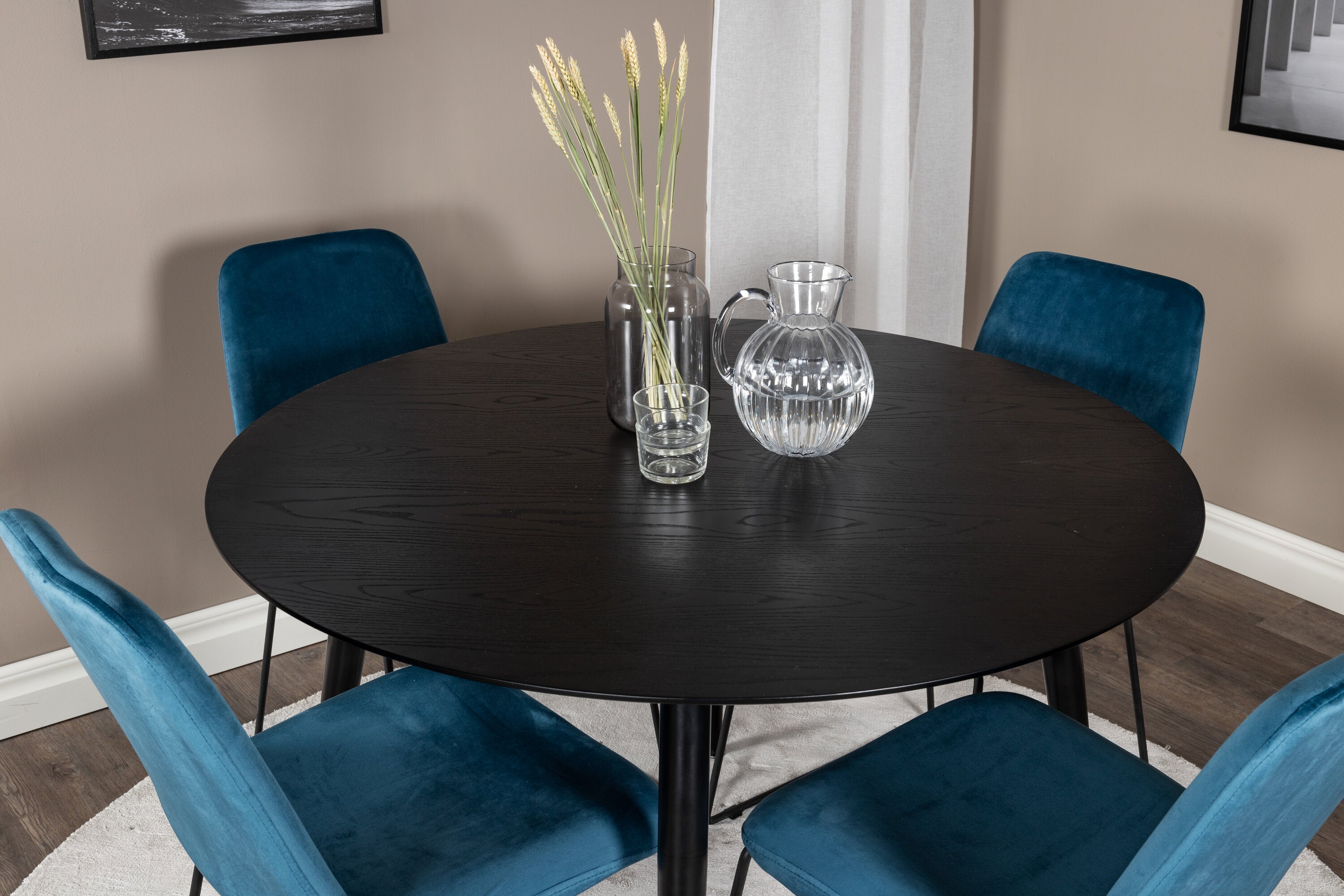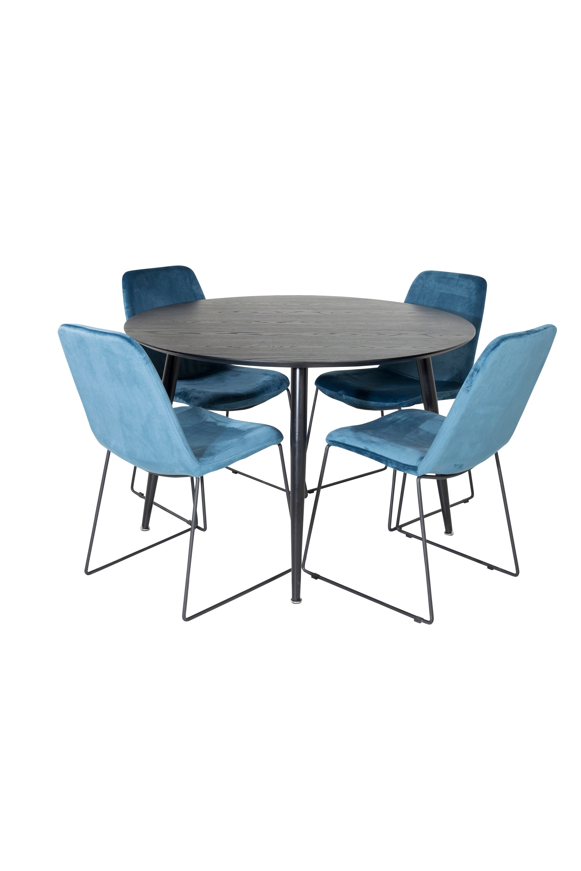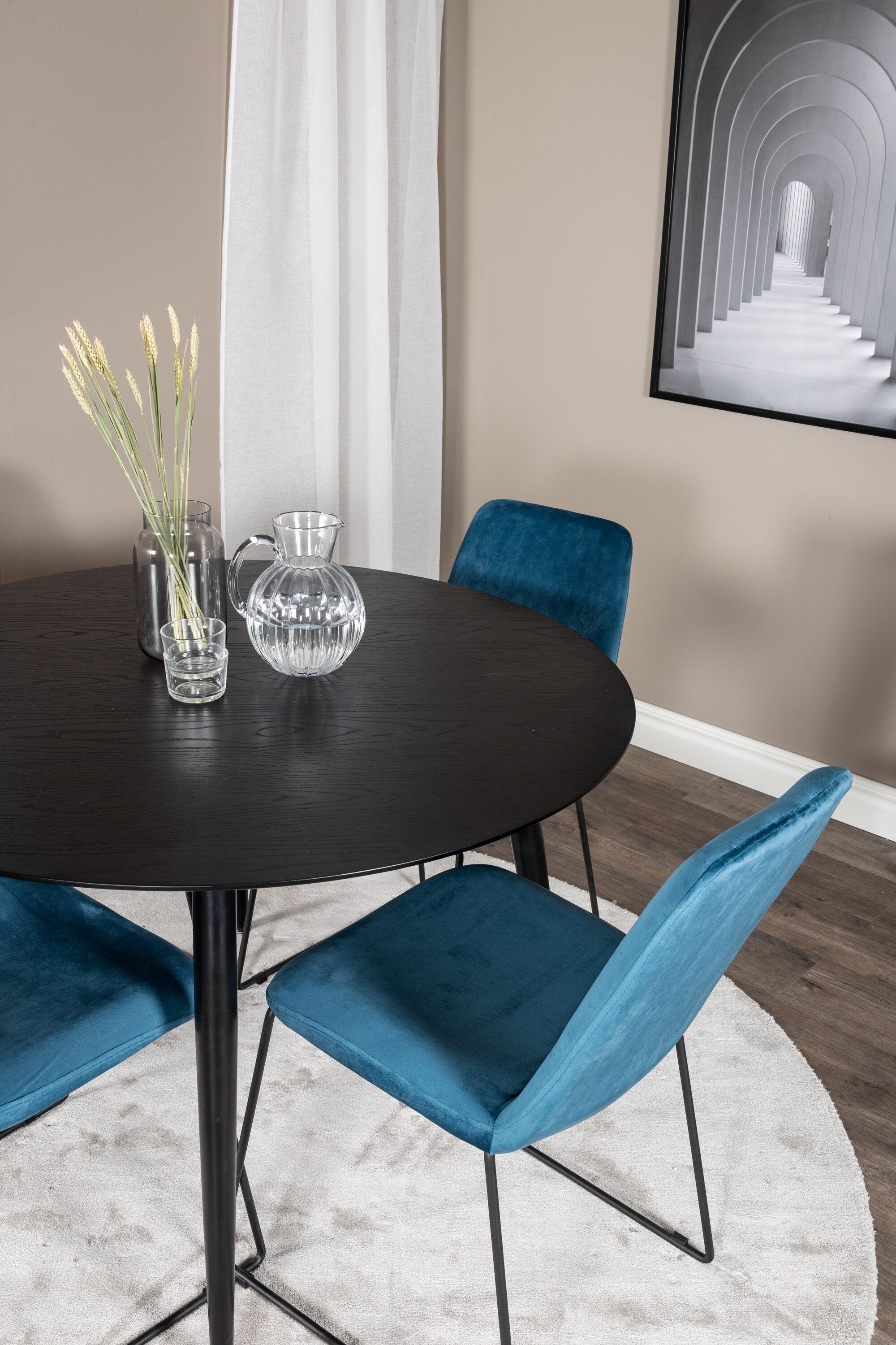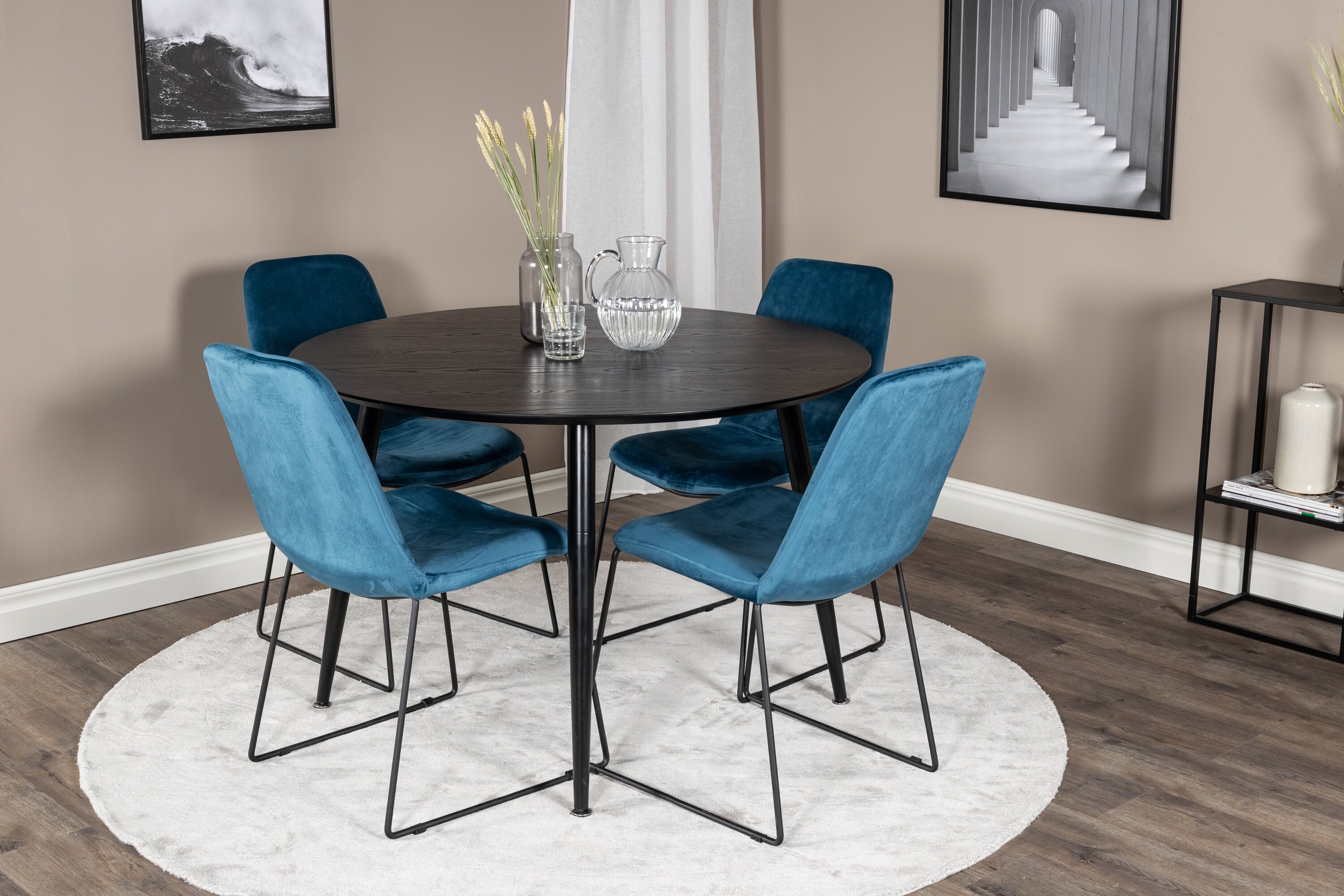 Jídelní stůl Dipp - 115 cm - Černá dýha / Celé černé nohy + Jídelní židle Muce - Černé nohy - Blue Velvet_4