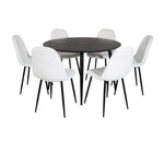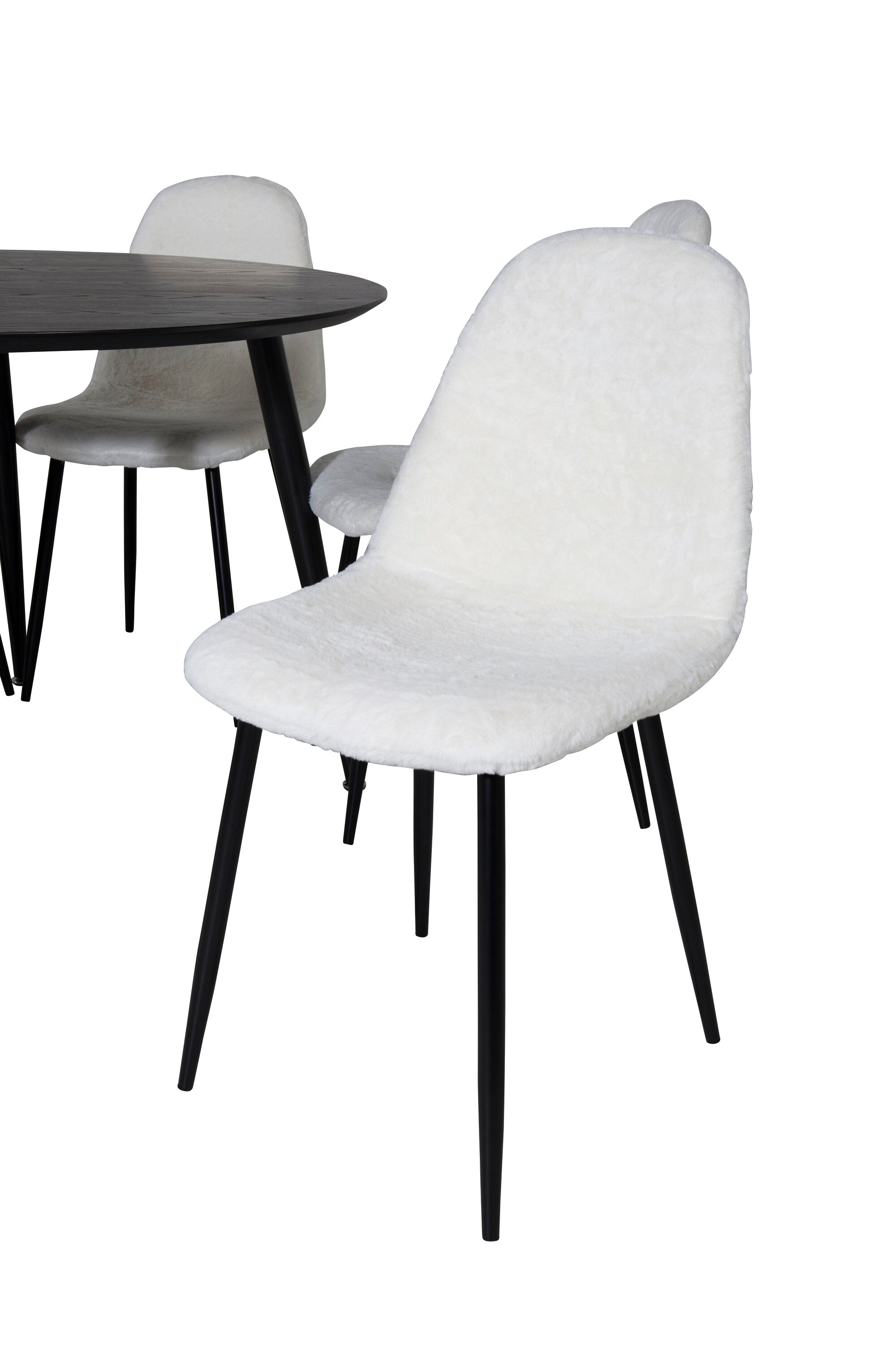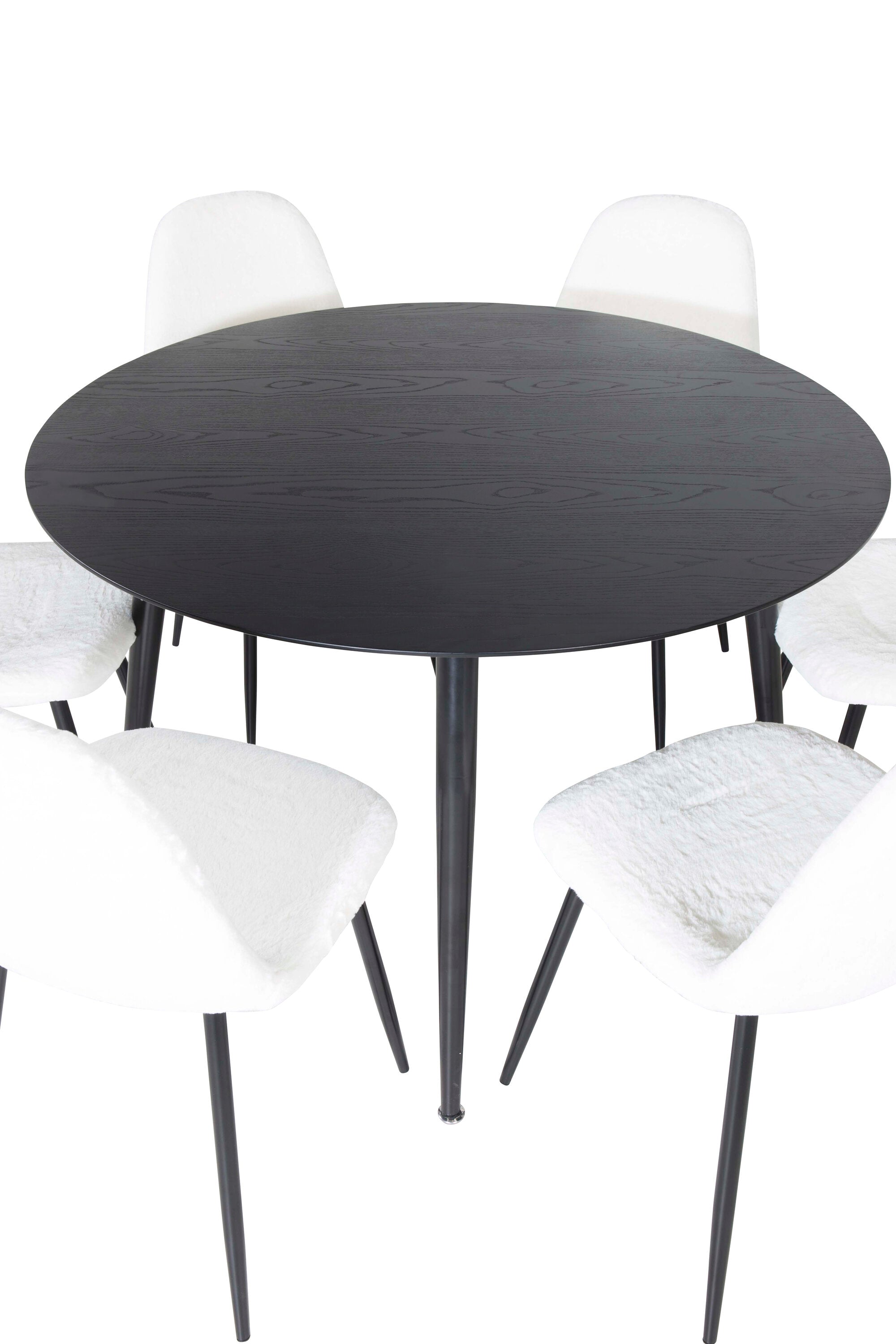 Jídelní stůl Dipp - 115 cm - Černá dýha / Celé černé nohy + Jídelní židle Polar Fluff - Černé nohy - White Teddy _6