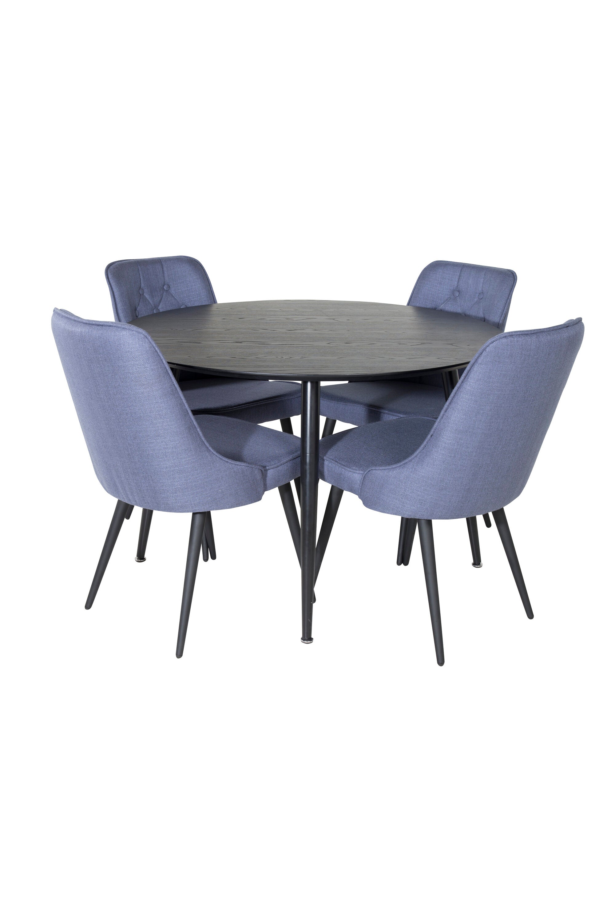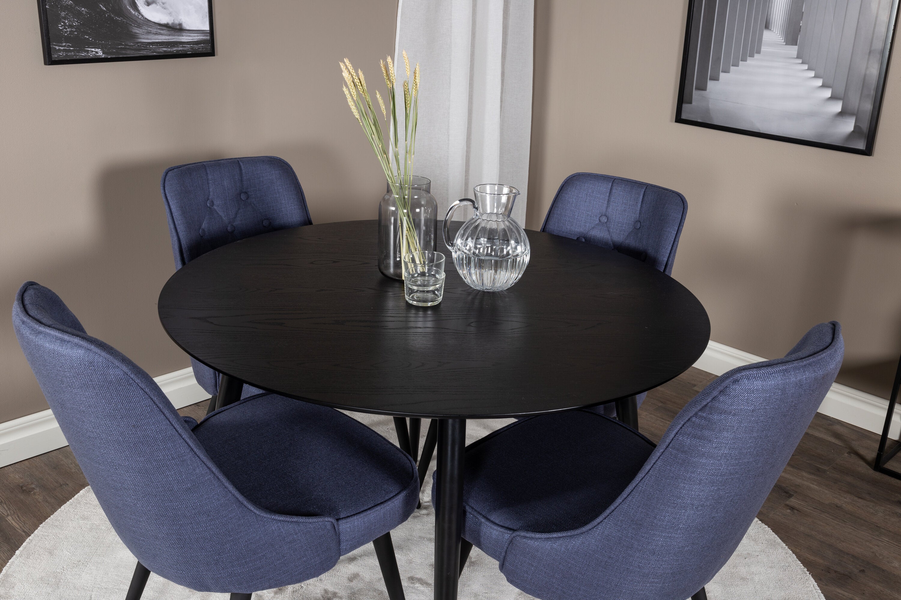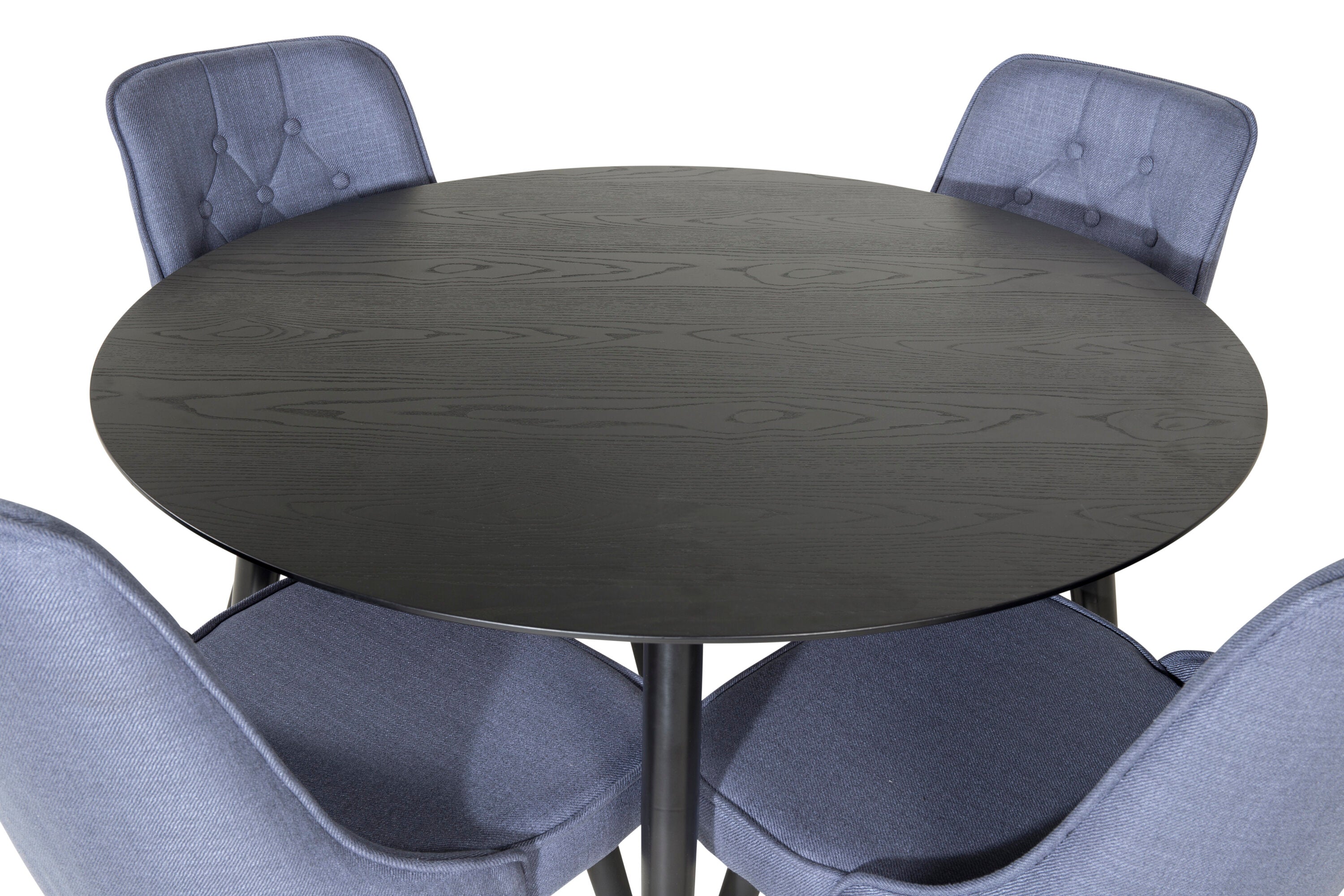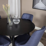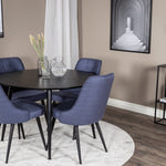 Jídelní stůl Dipp - 115 cm - Černá dýha / Celé černé nohy + Jídelní židle Velvet Deluxe - Černé nohy - Modrá látka_4