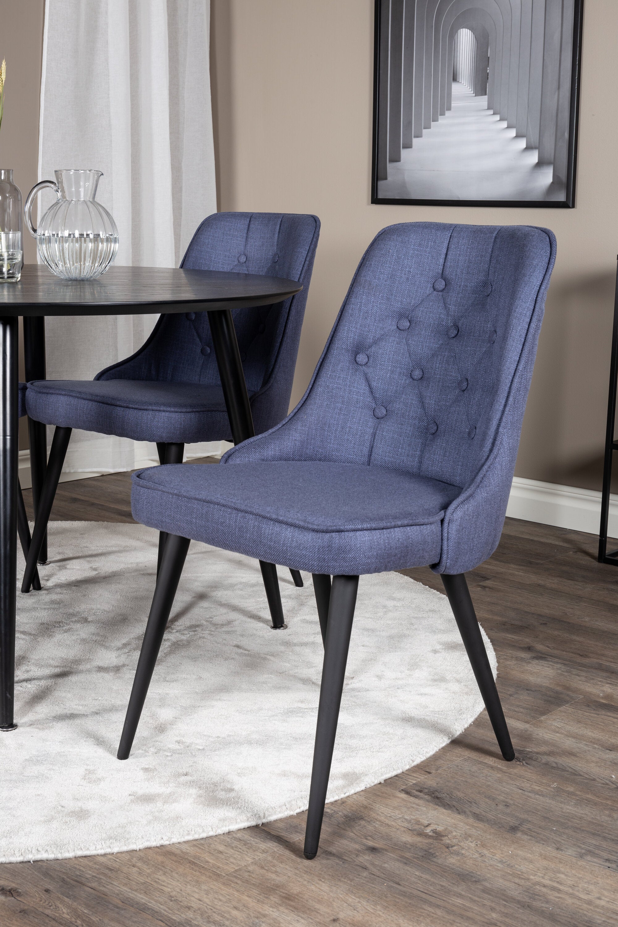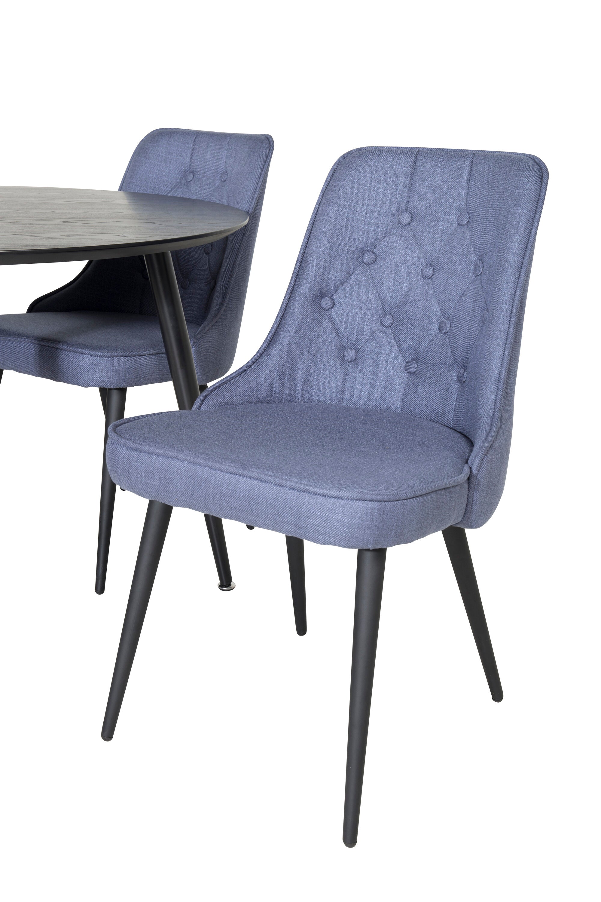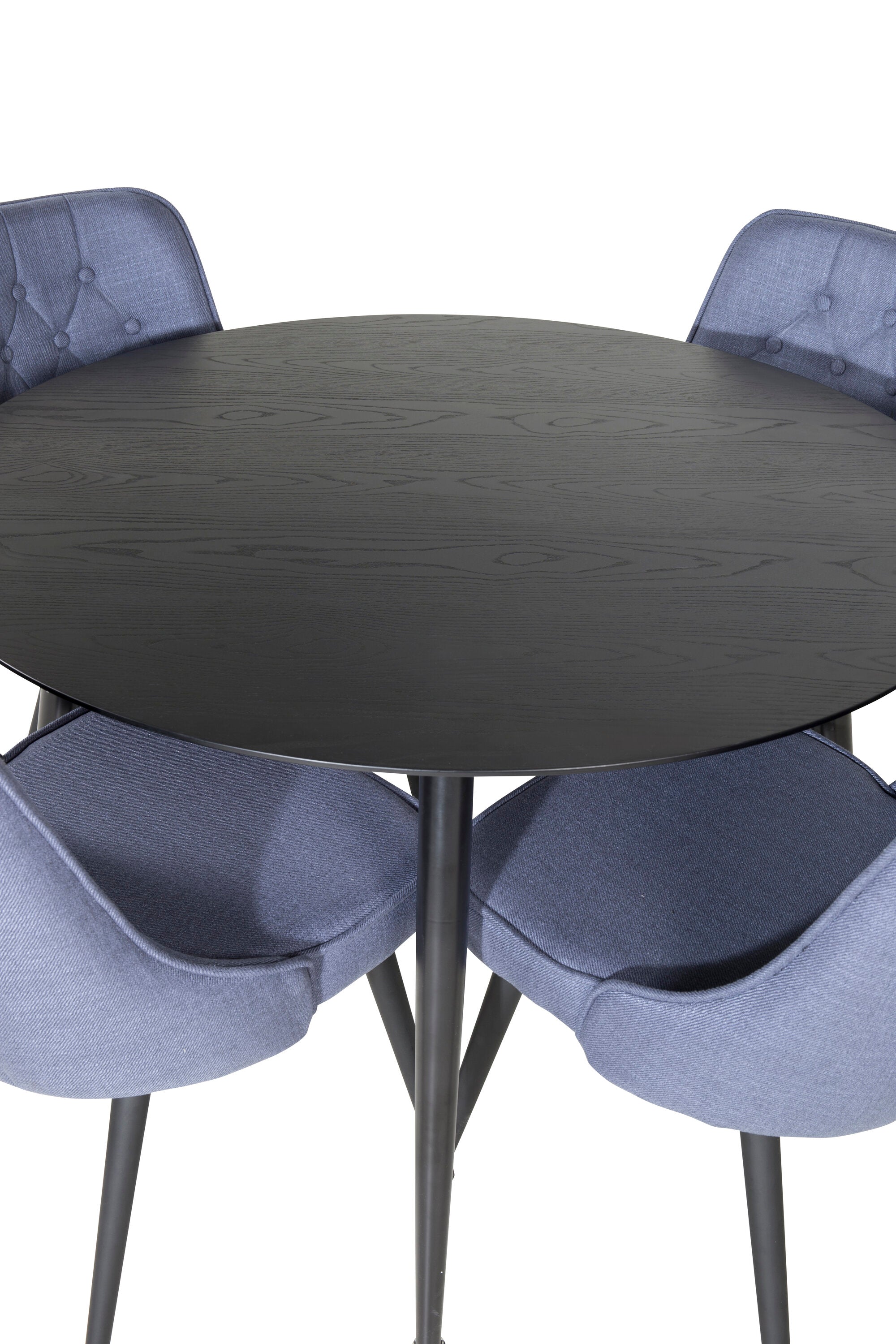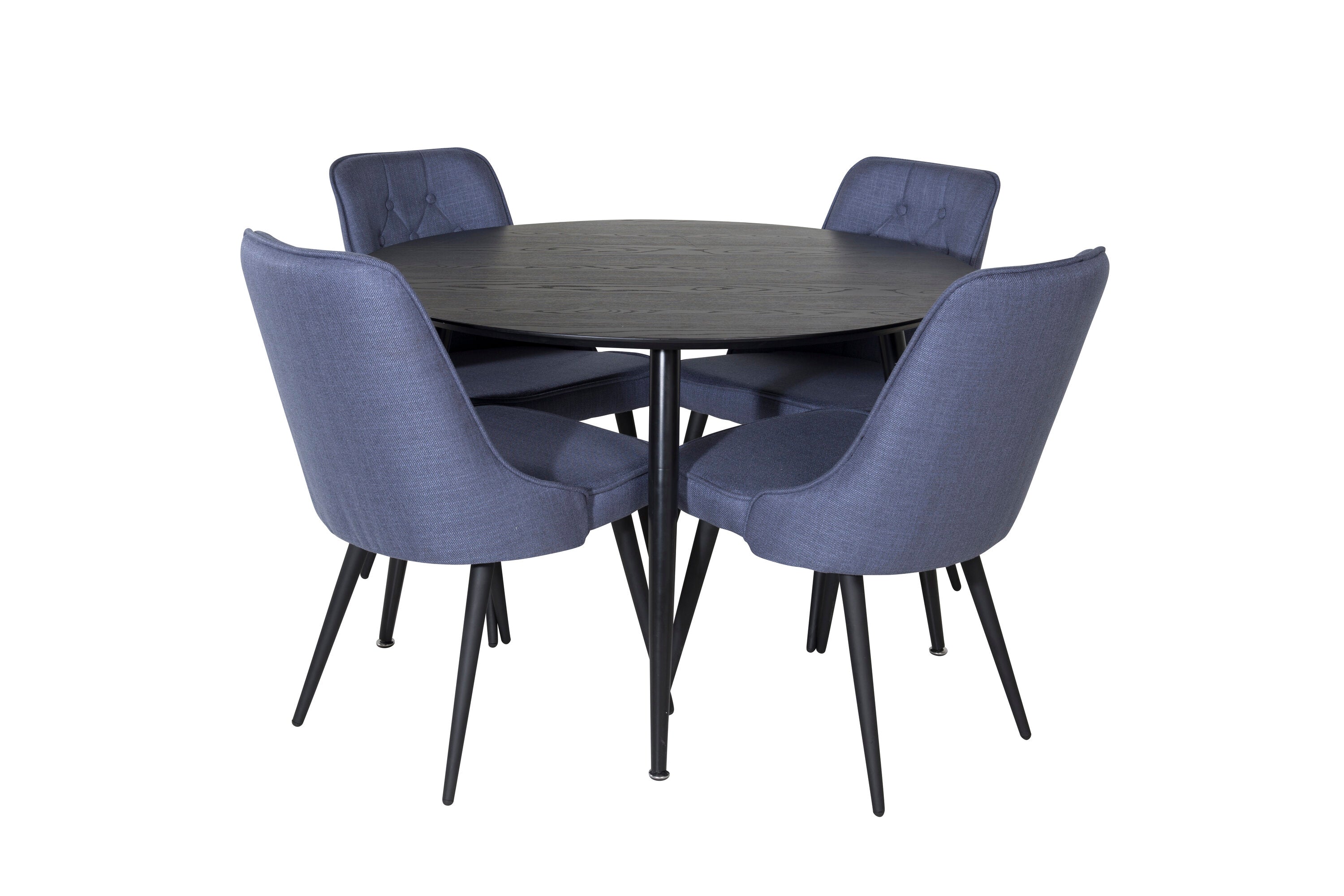 Jídelní stůl Dipp - 115 cm - Černá dýha / Celé černé nohy + Jídelní židle Velvet Deluxe - Černé nohy - Modrá látka_4