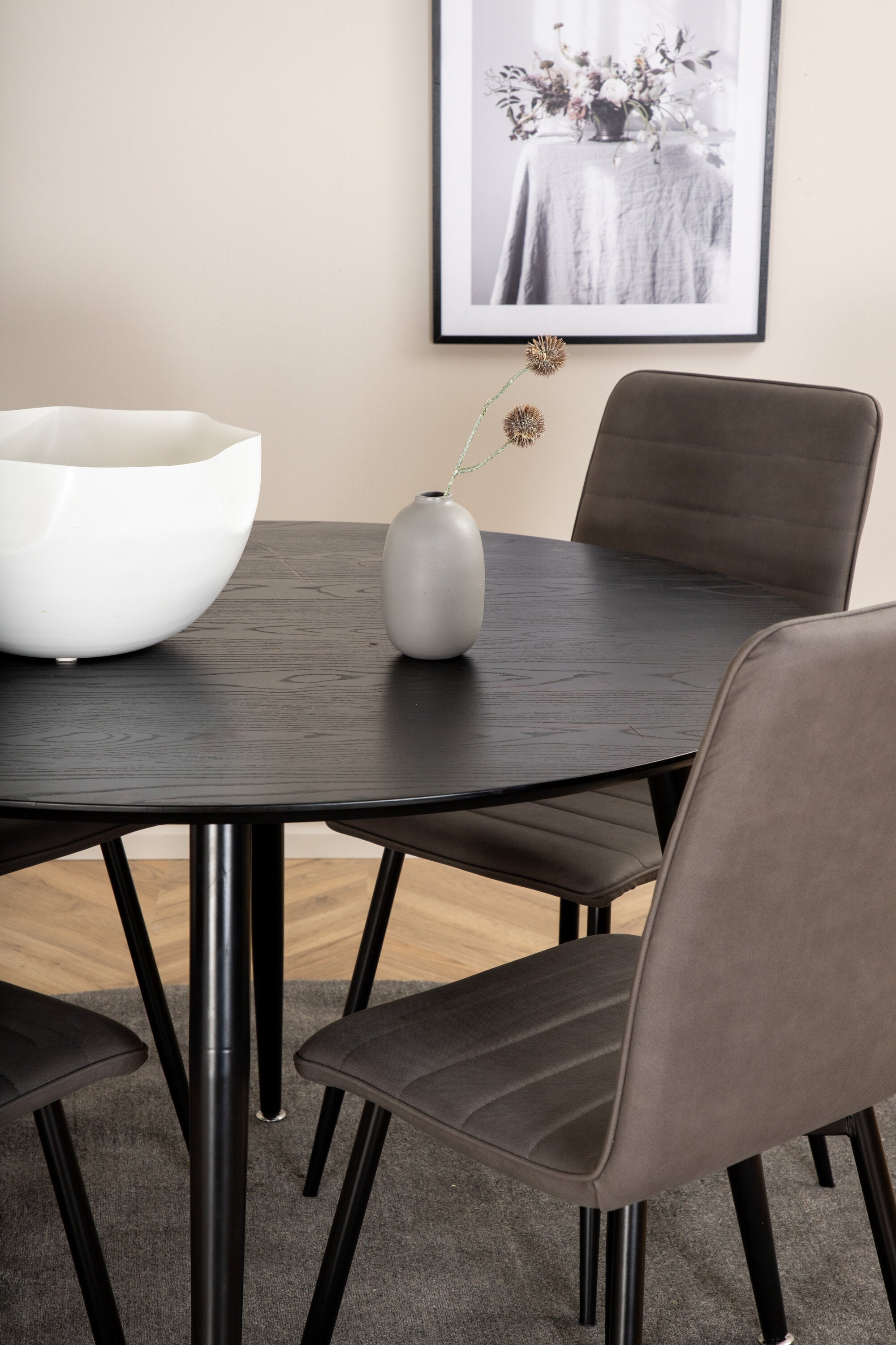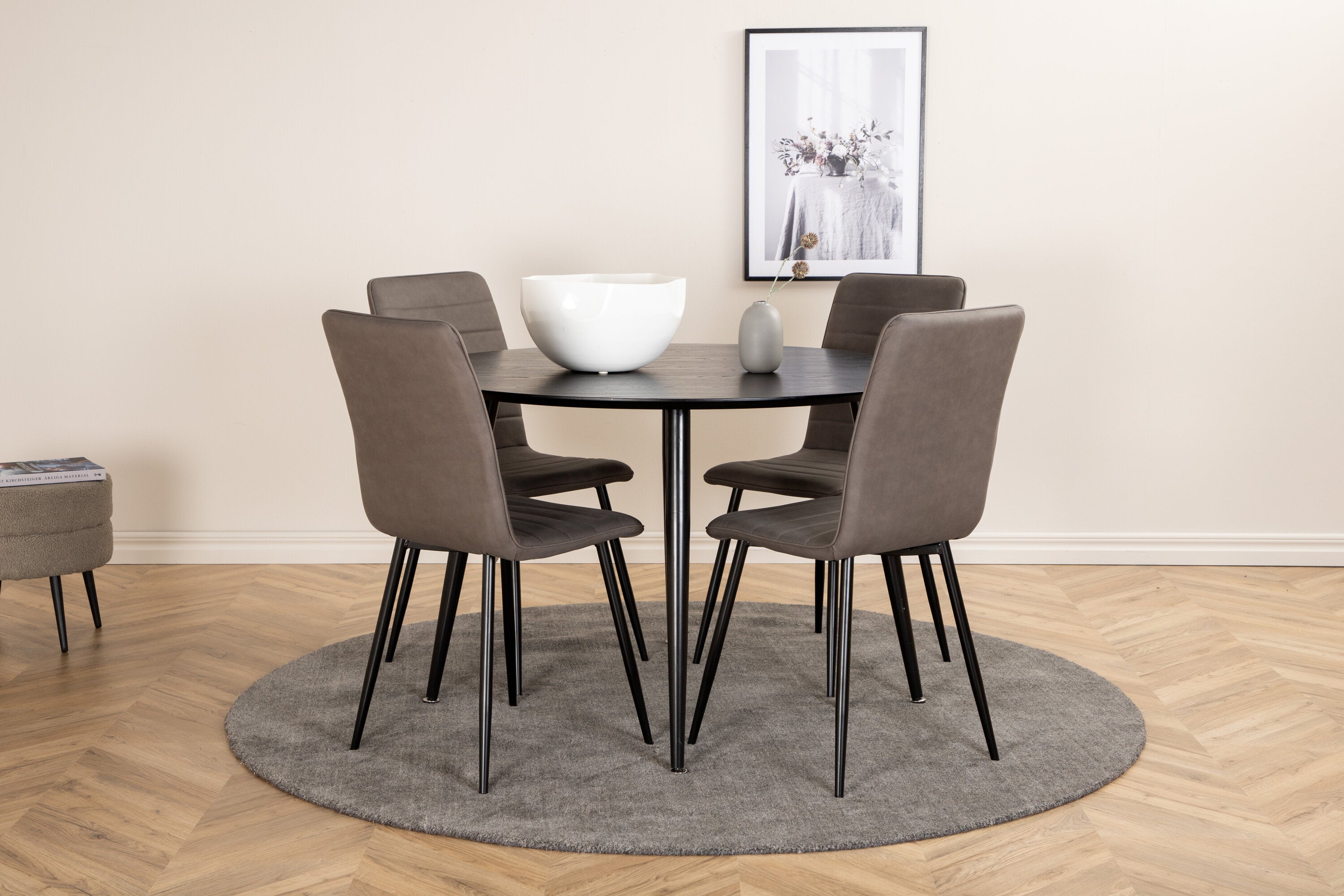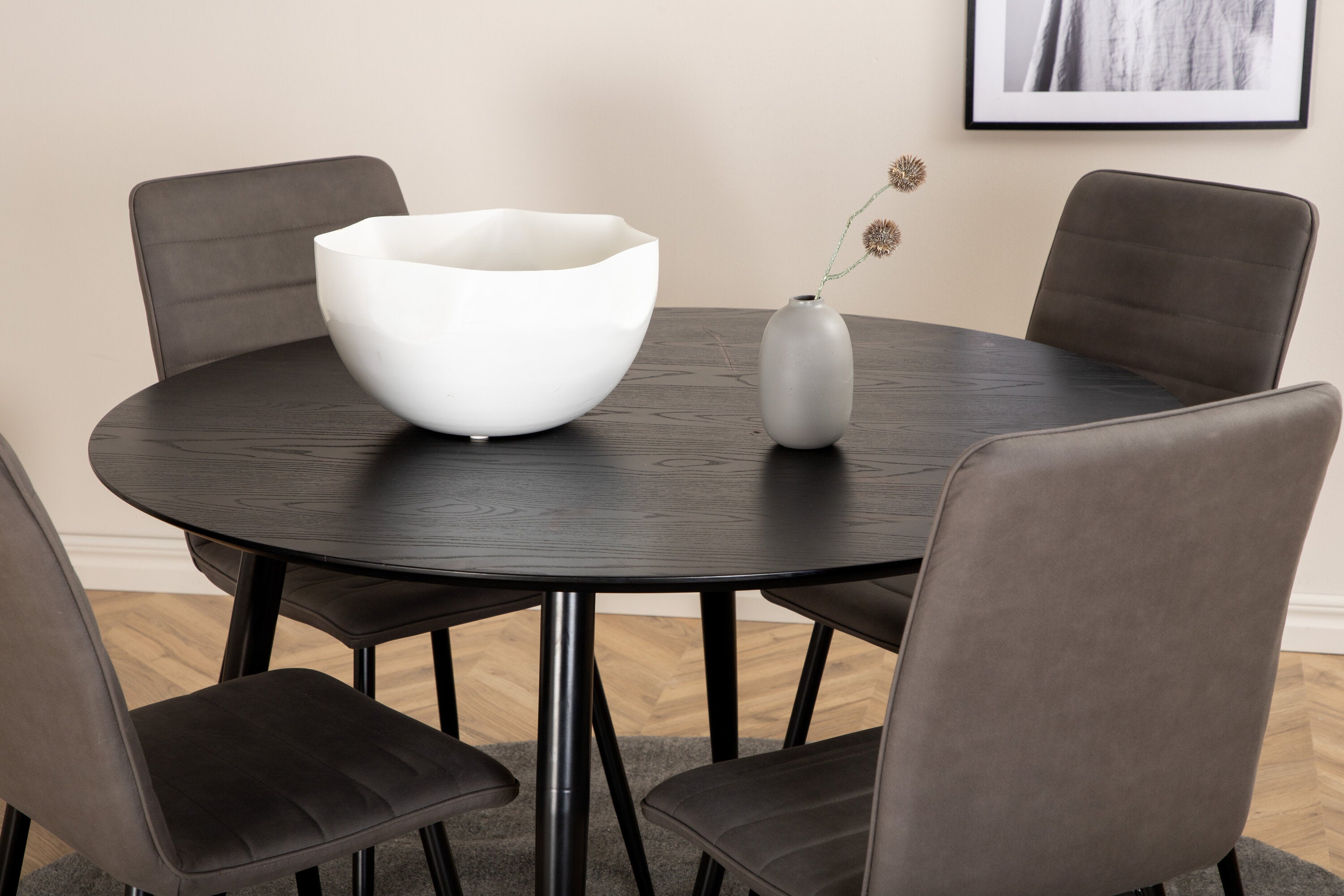 Jídelní stůl Dipp - 115 cm - černá dýha / celé černé nohy + židle Windu Lyx - černá / šedá Micro Fibre_4